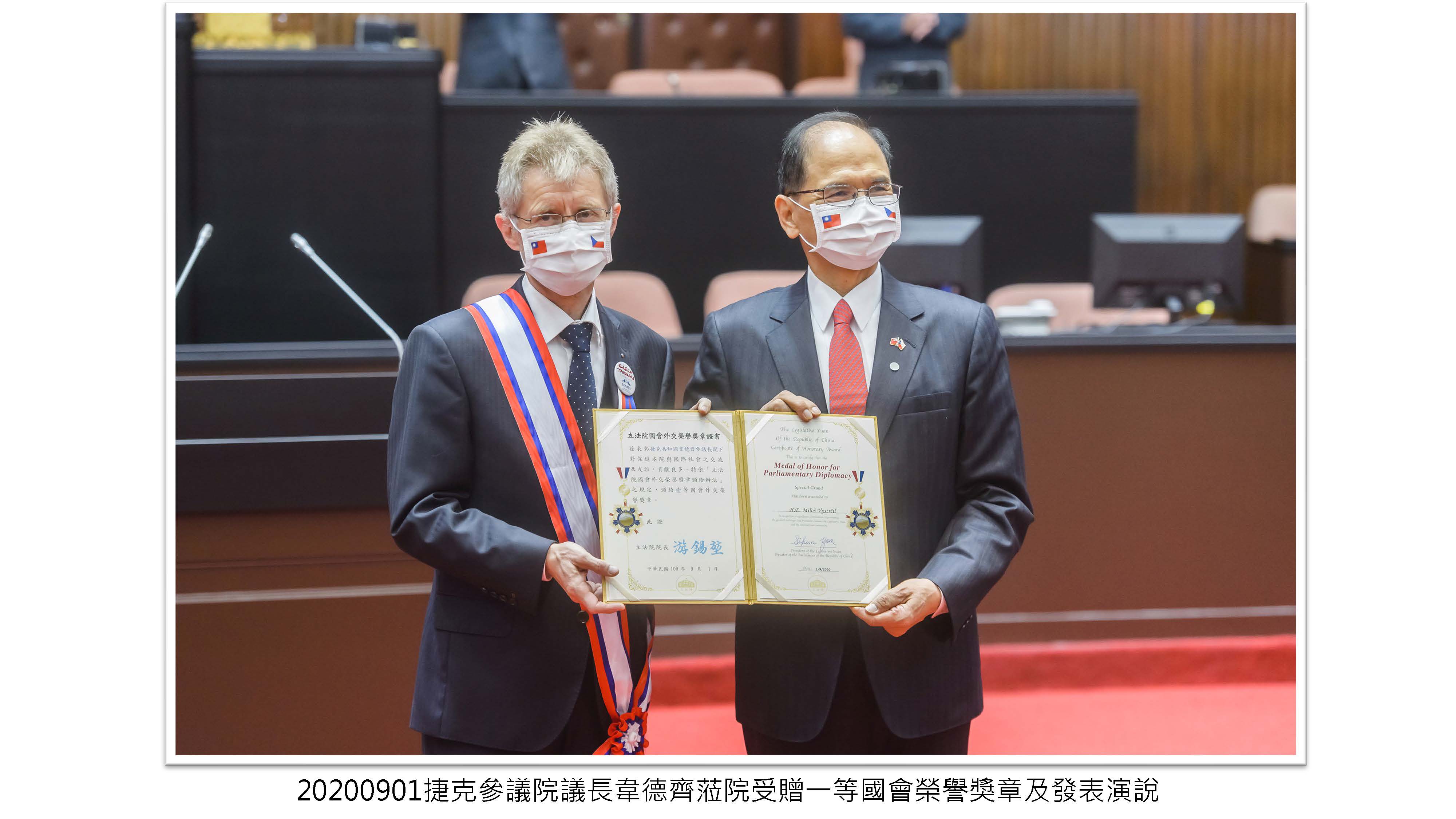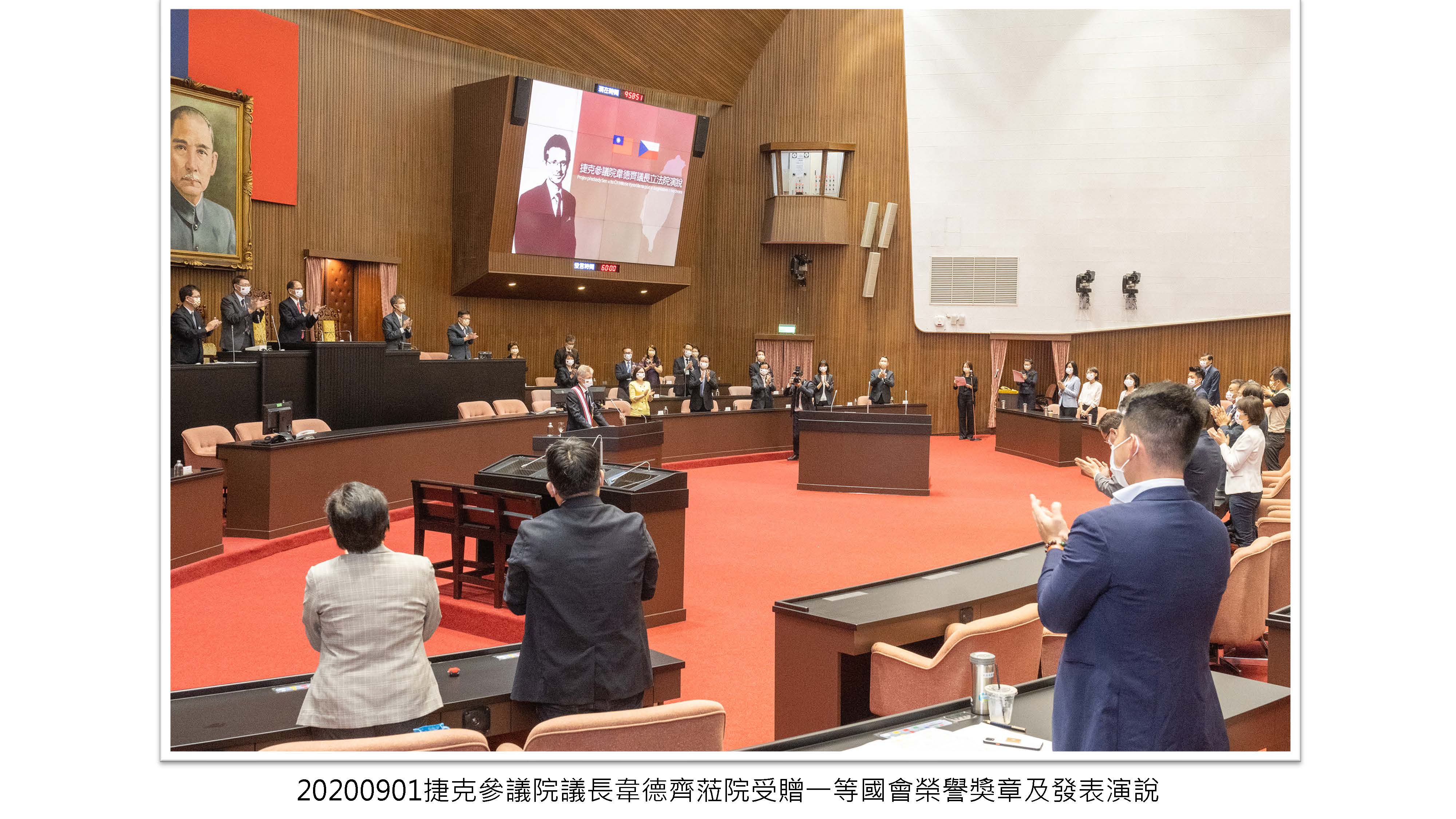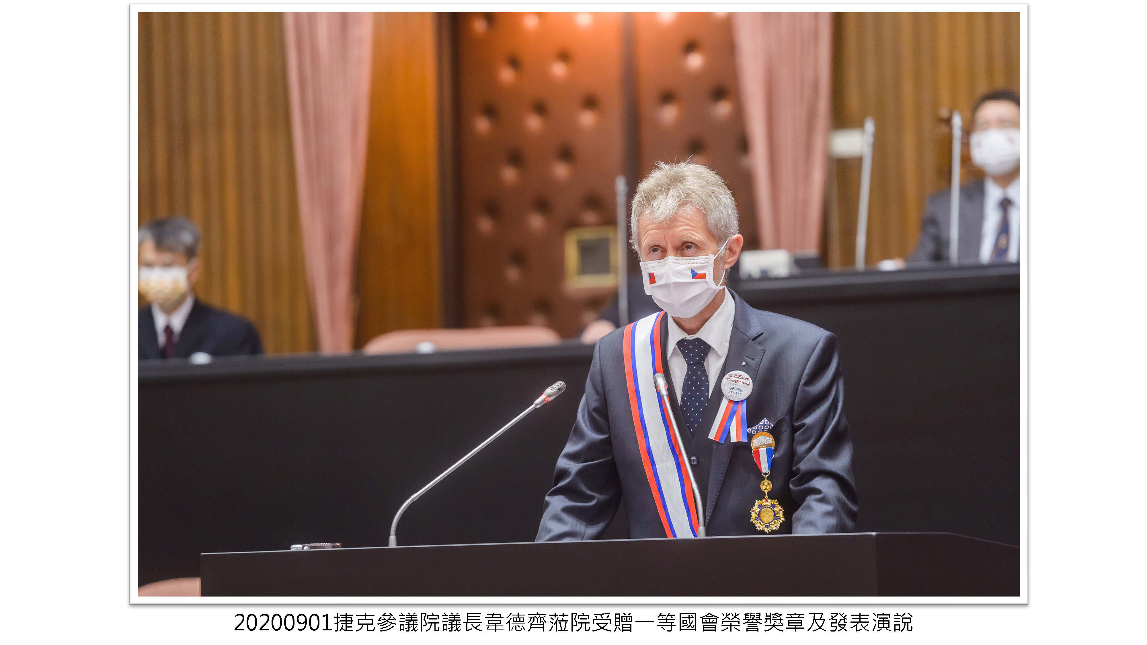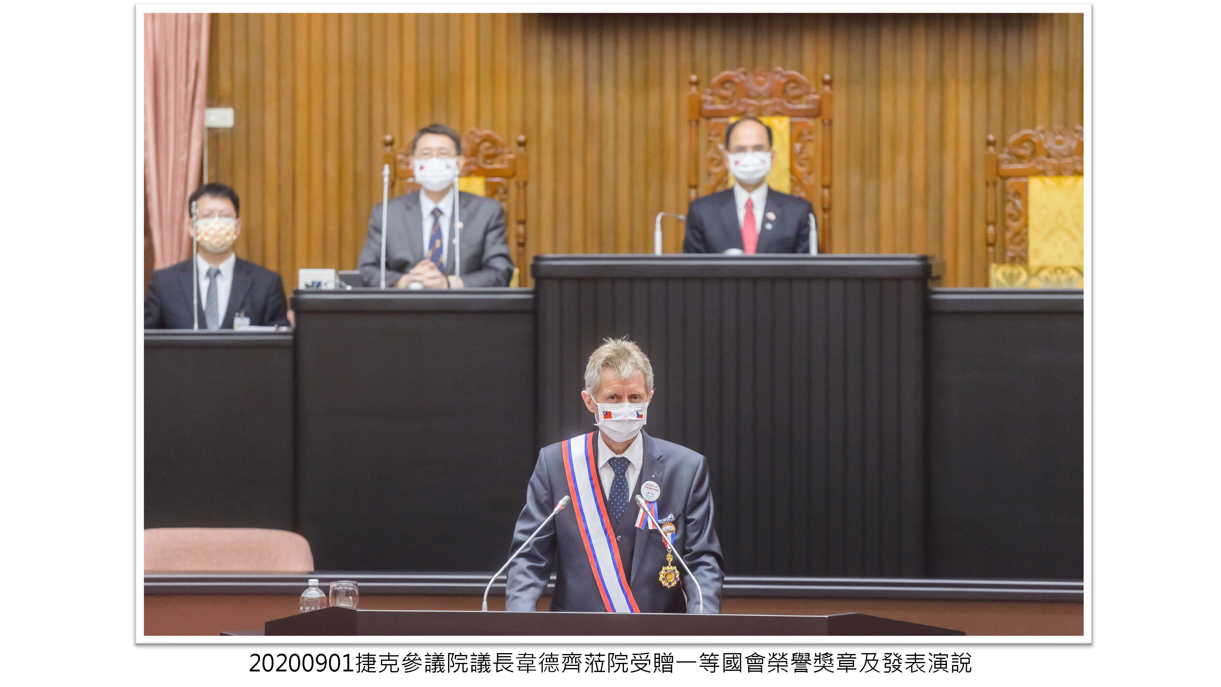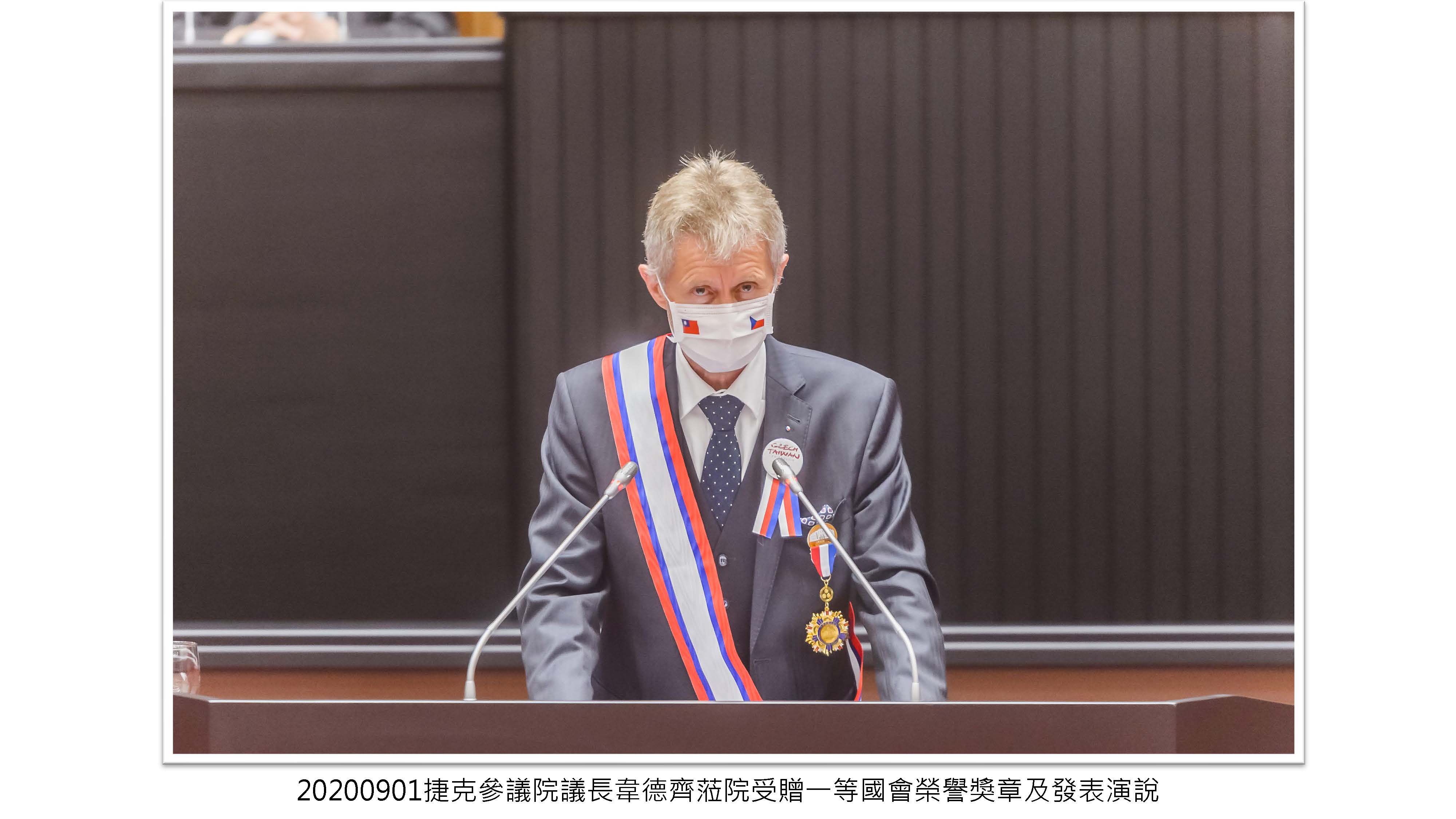 捷克參議院議長韋德齊(Miloš Vystrčil)蒞院受贈一等國會外交榮譽獎章及發表演說,表達對臺民主自由之支持,反對共產壓迫並盼擴大臺捷合作。