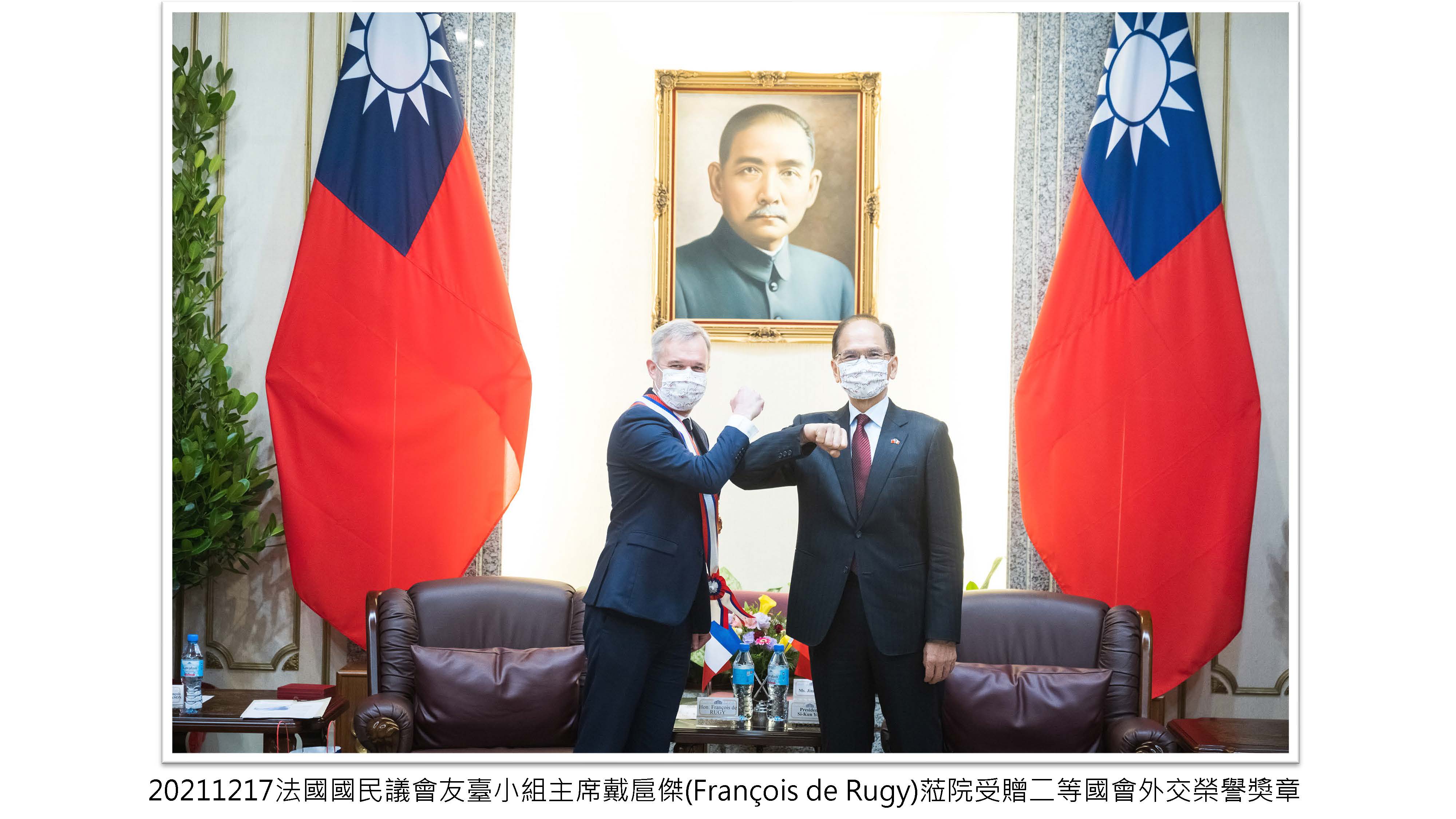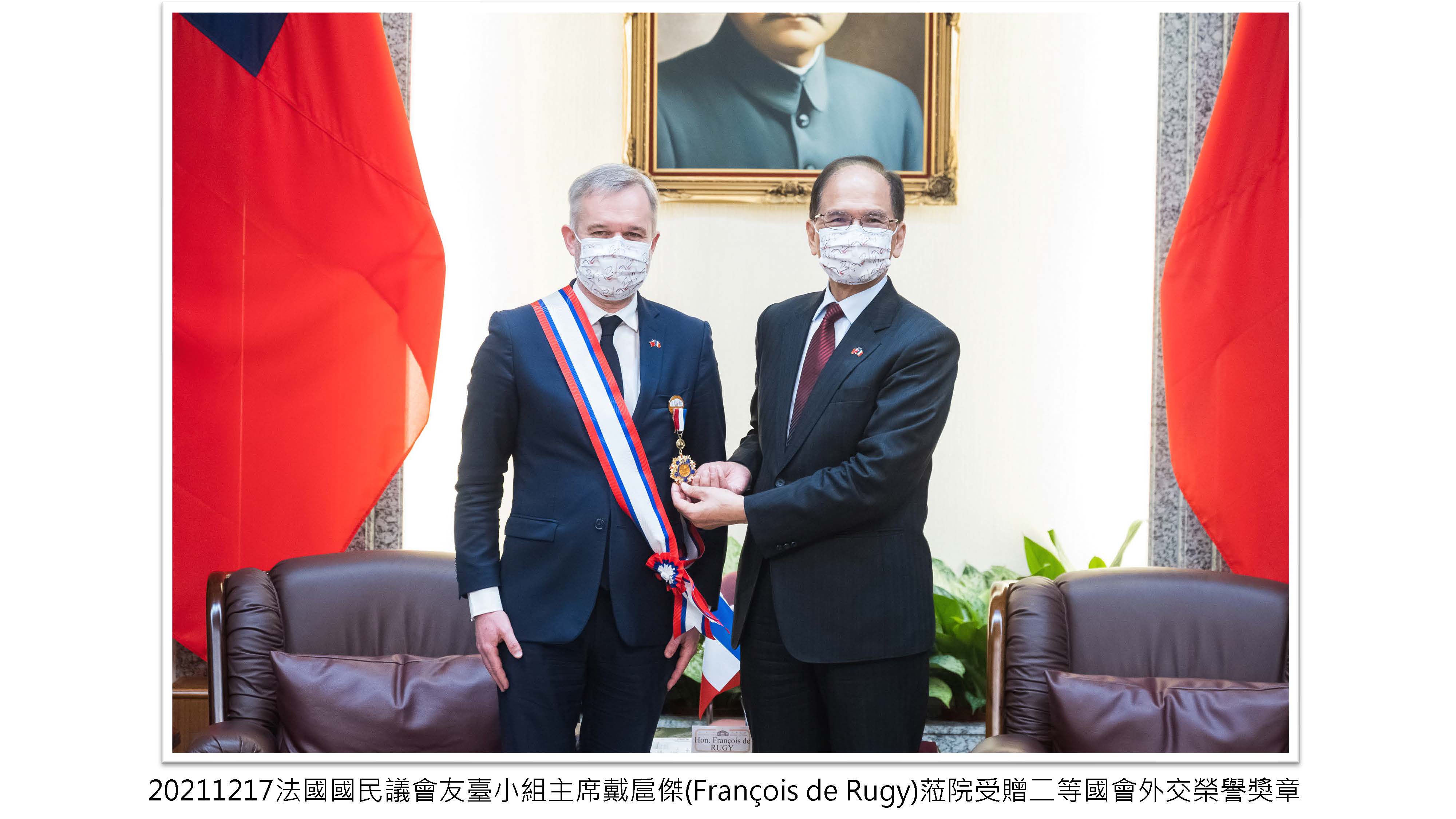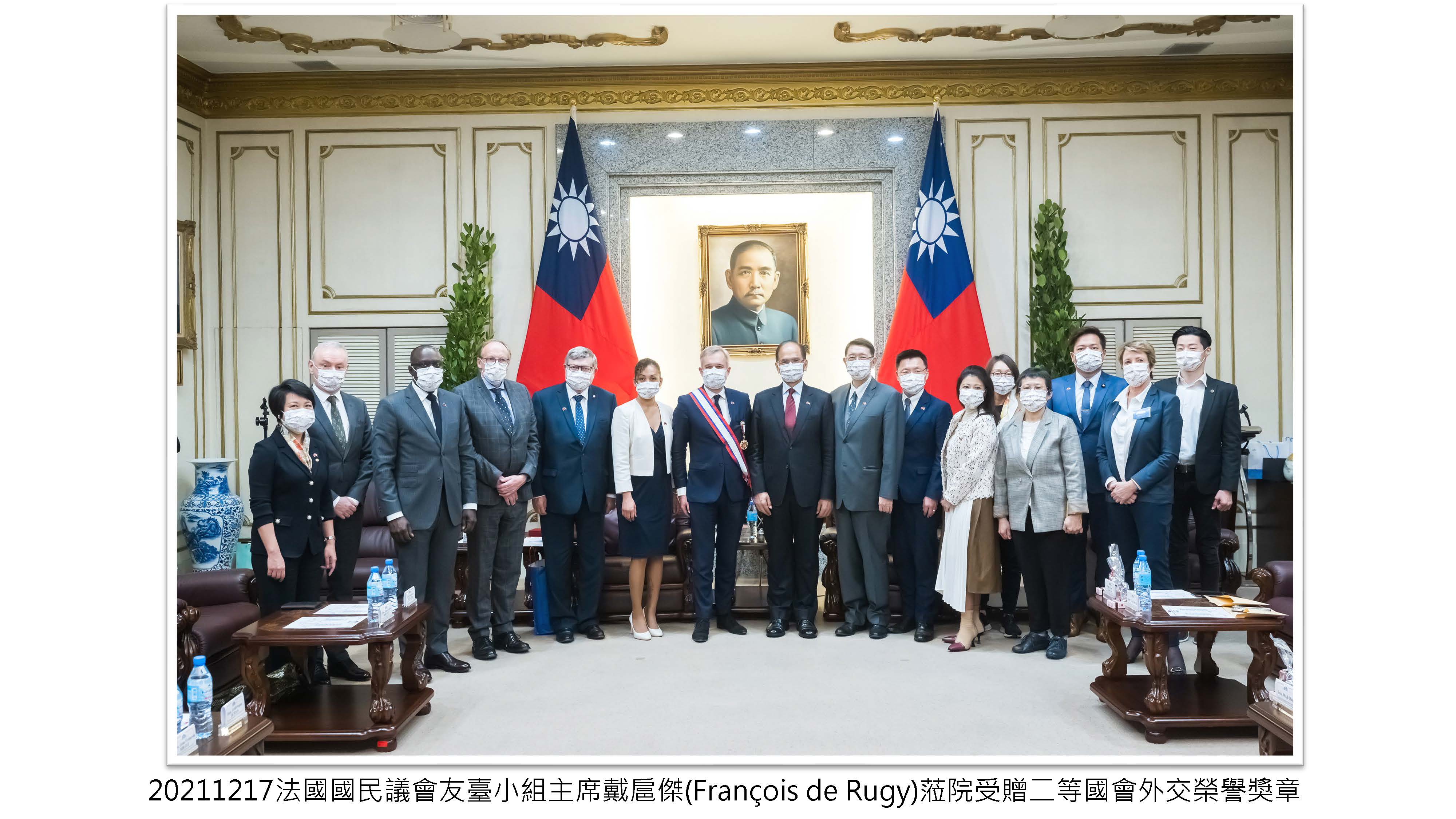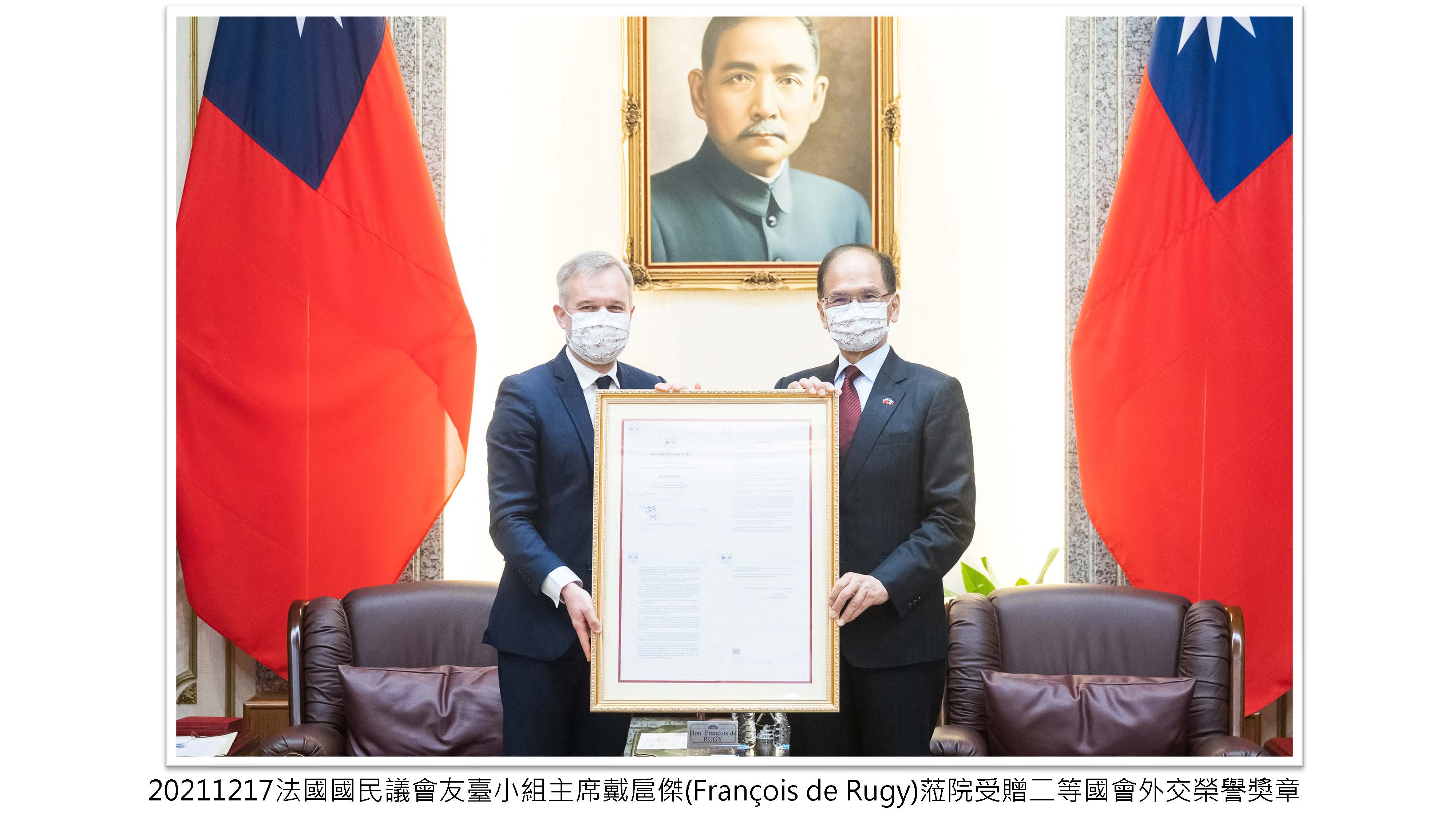 法國國民議會友臺小組主席戴扈傑(François de Rugy)蒞院受贈二等國會外交榮譽獎章,並致贈本院友臺決議文,表達法國會對臺強烈支持。