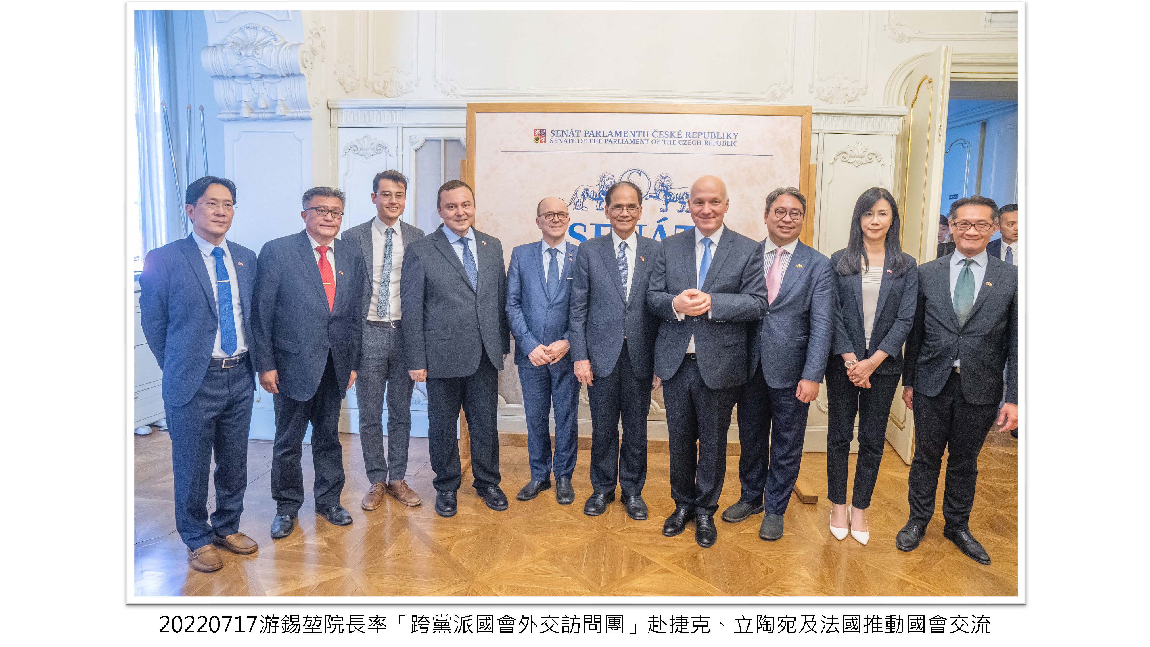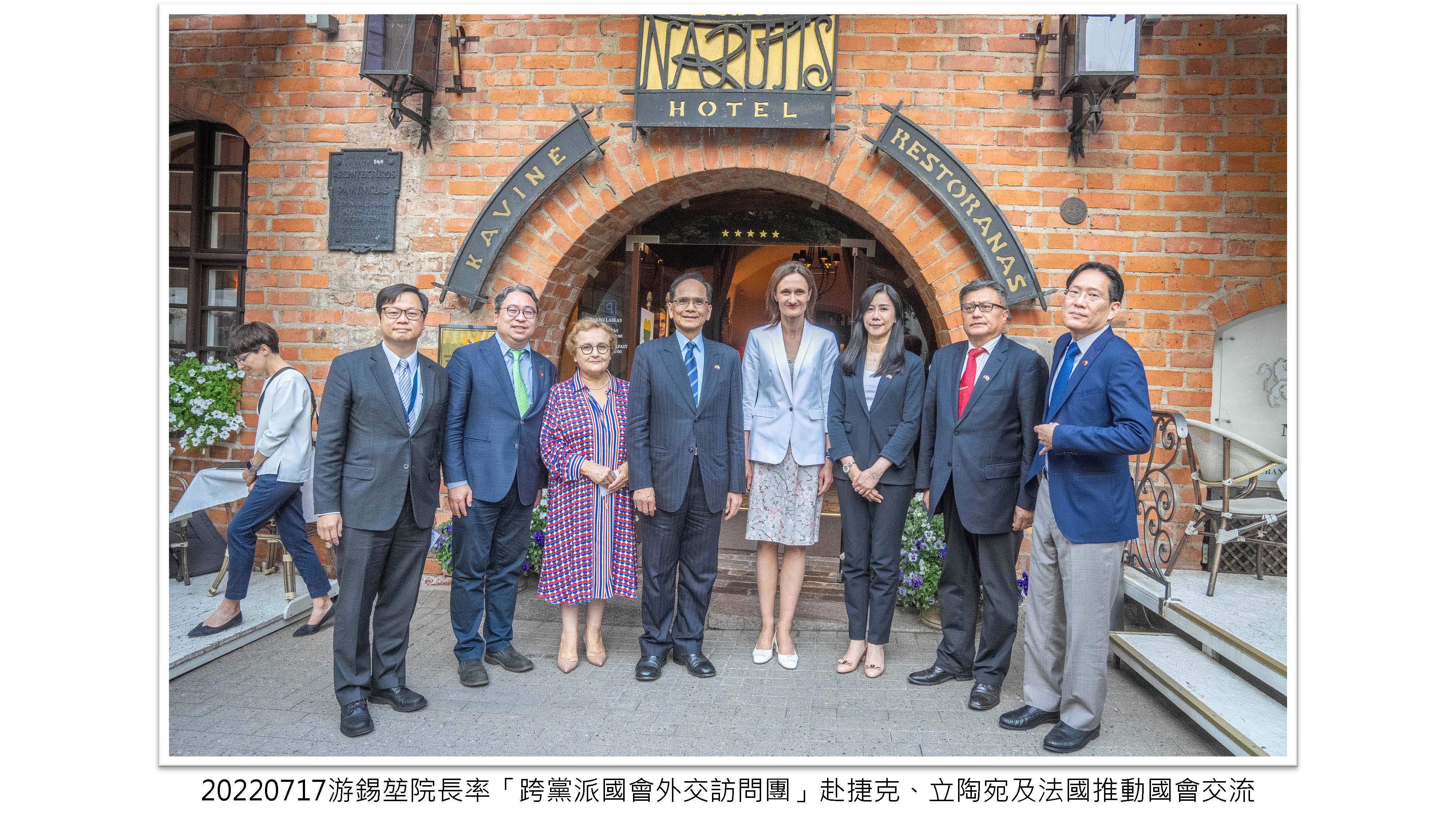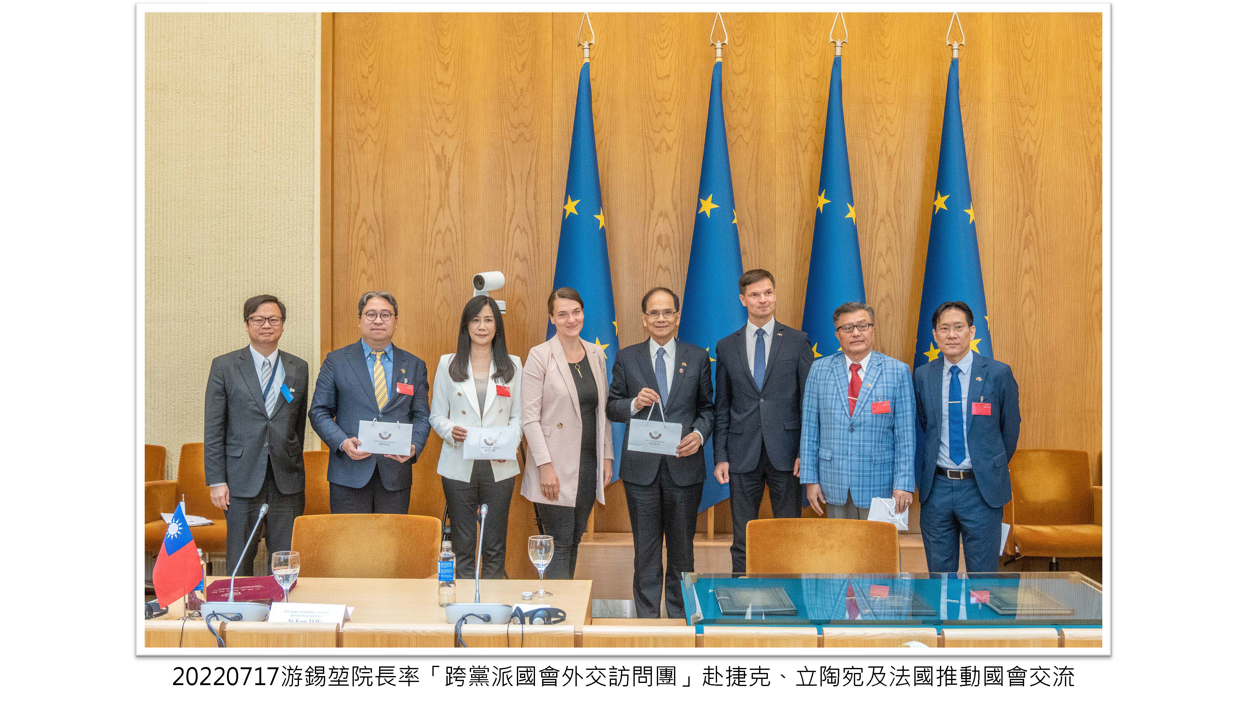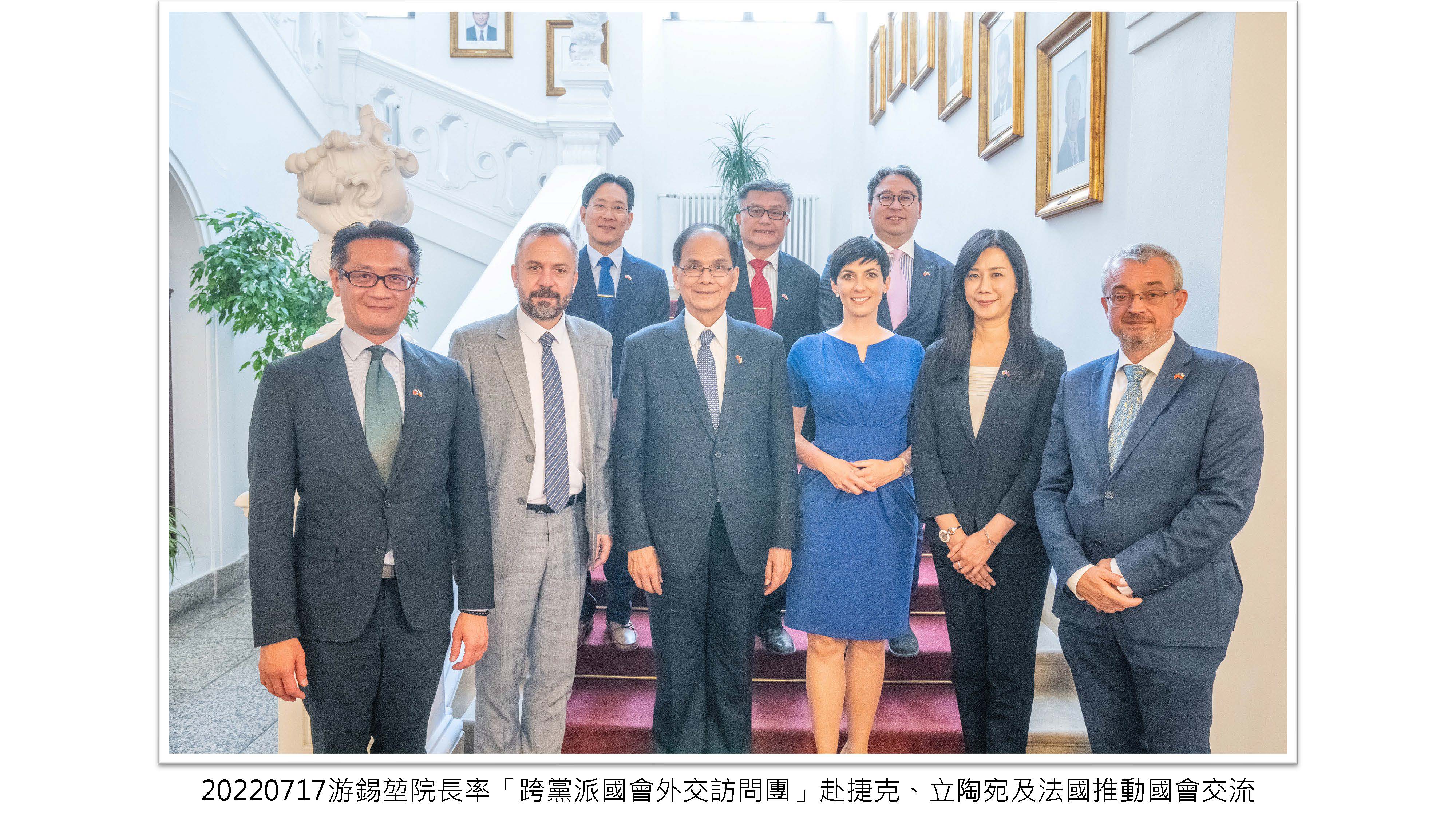 院長率「跨黨派國會外交訪問團」赴捷克、立陶宛及法國推動國會交流,讓更多歐洲民主盟友認識及支持臺灣,為臺灣爭取更多的國際空間。