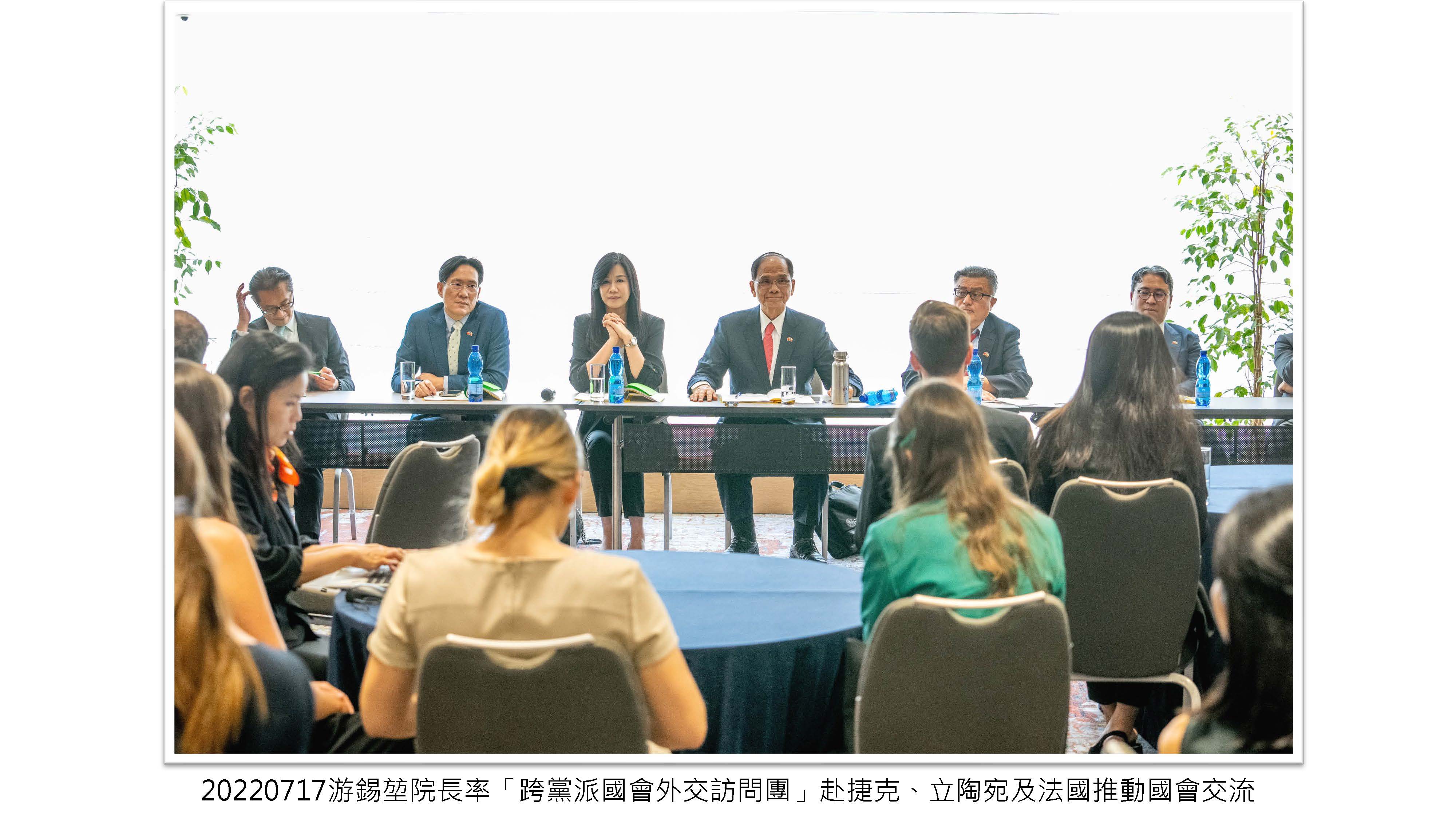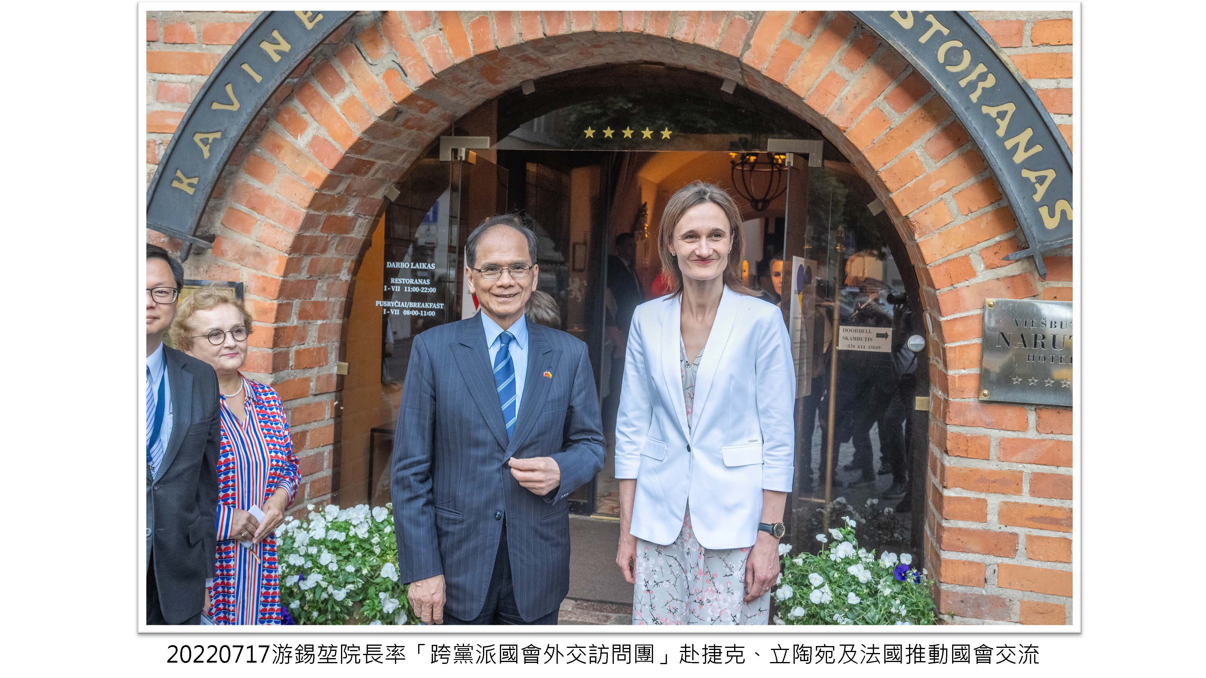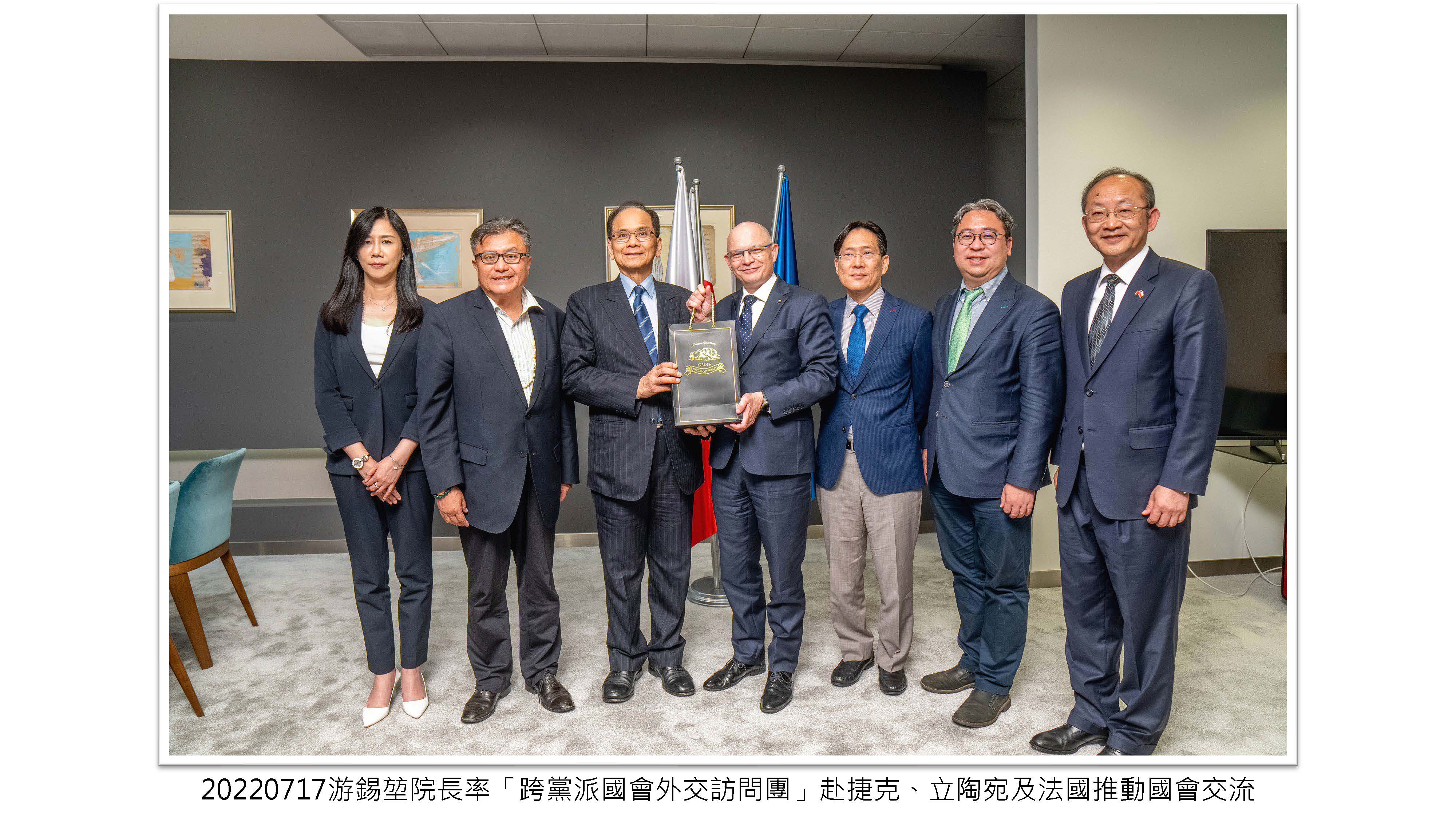 院長率「跨黨派國會外交訪問團」赴捷克、立陶宛及法國推動國會交流,讓更多歐洲民主盟友認識及支持臺灣,為臺灣爭取更多的國際空間。