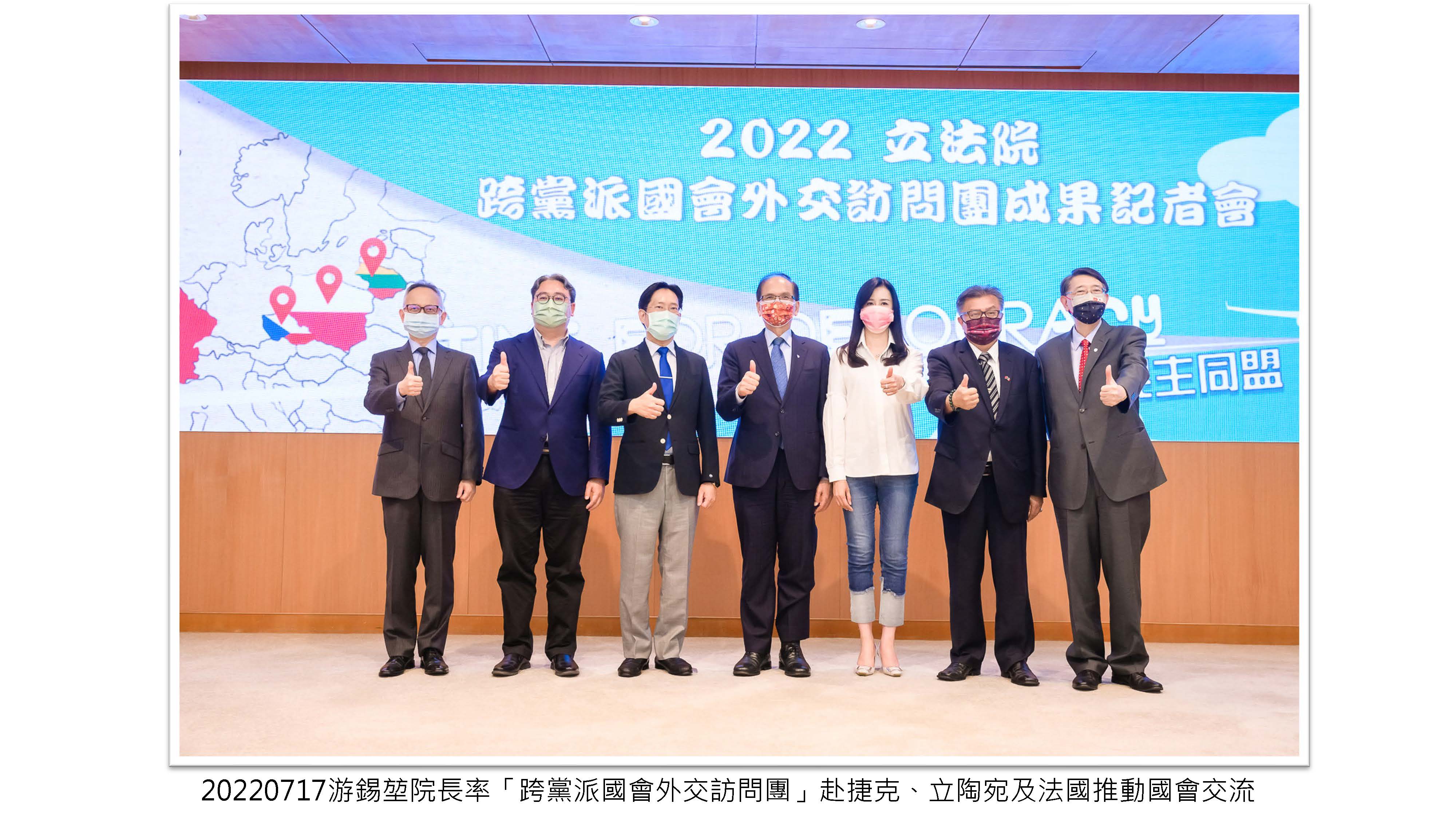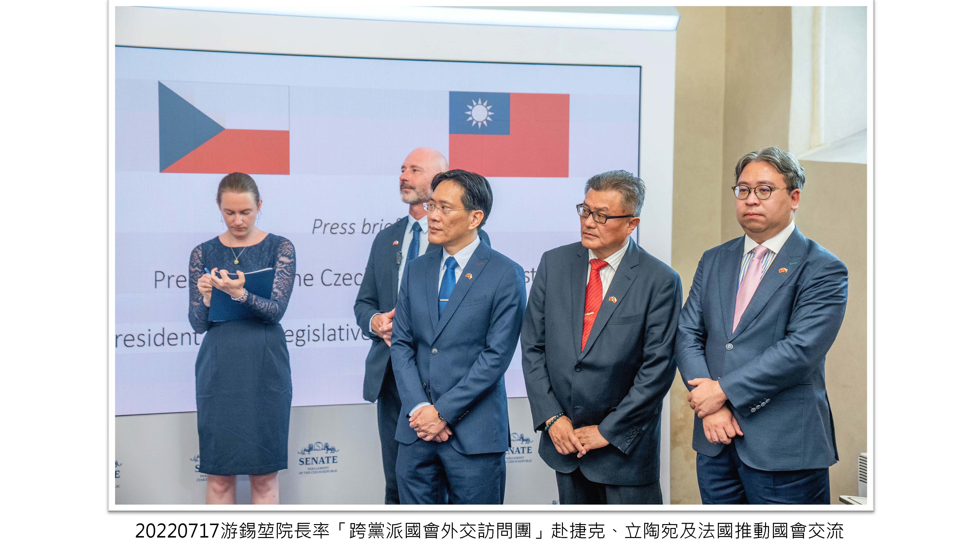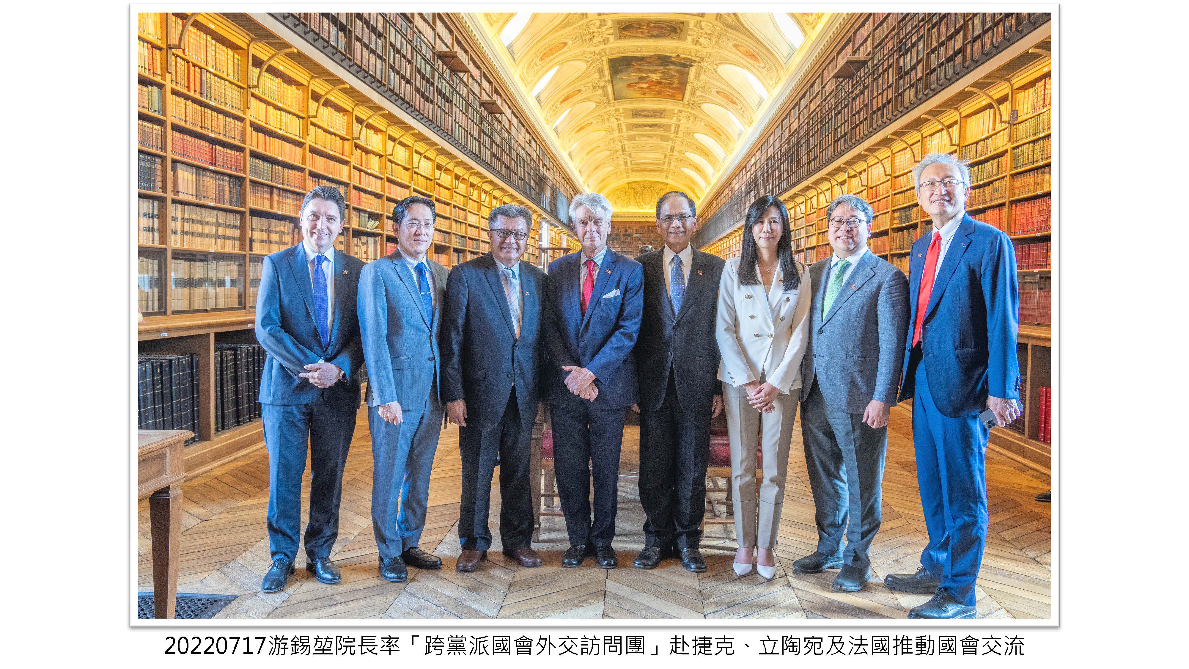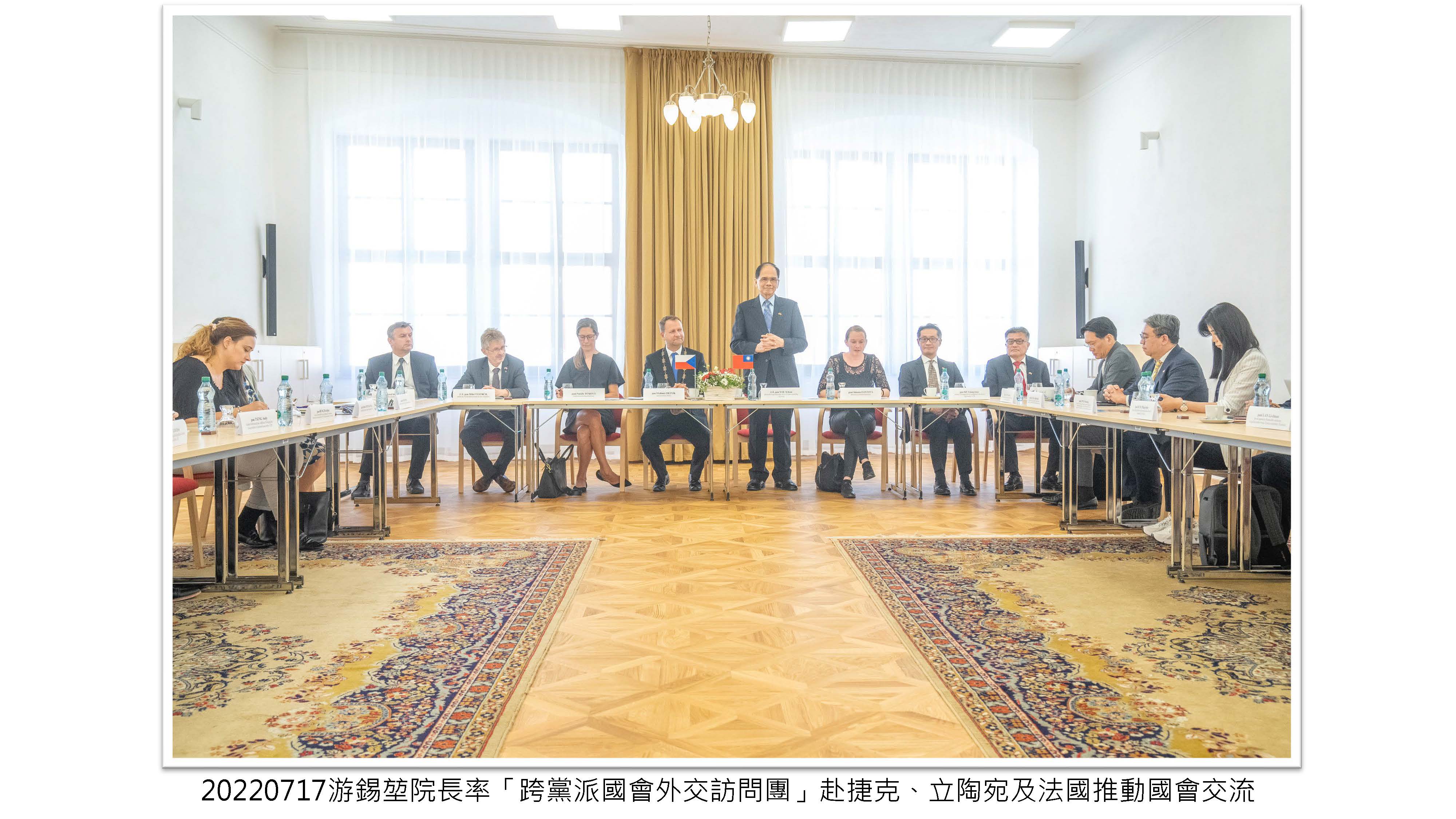 院長率「跨黨派國會外交訪問團」赴捷克、立陶宛及法國推動國會交流,讓更多歐洲民主盟友認識及支持臺灣,為臺灣爭取更多的國際空間。