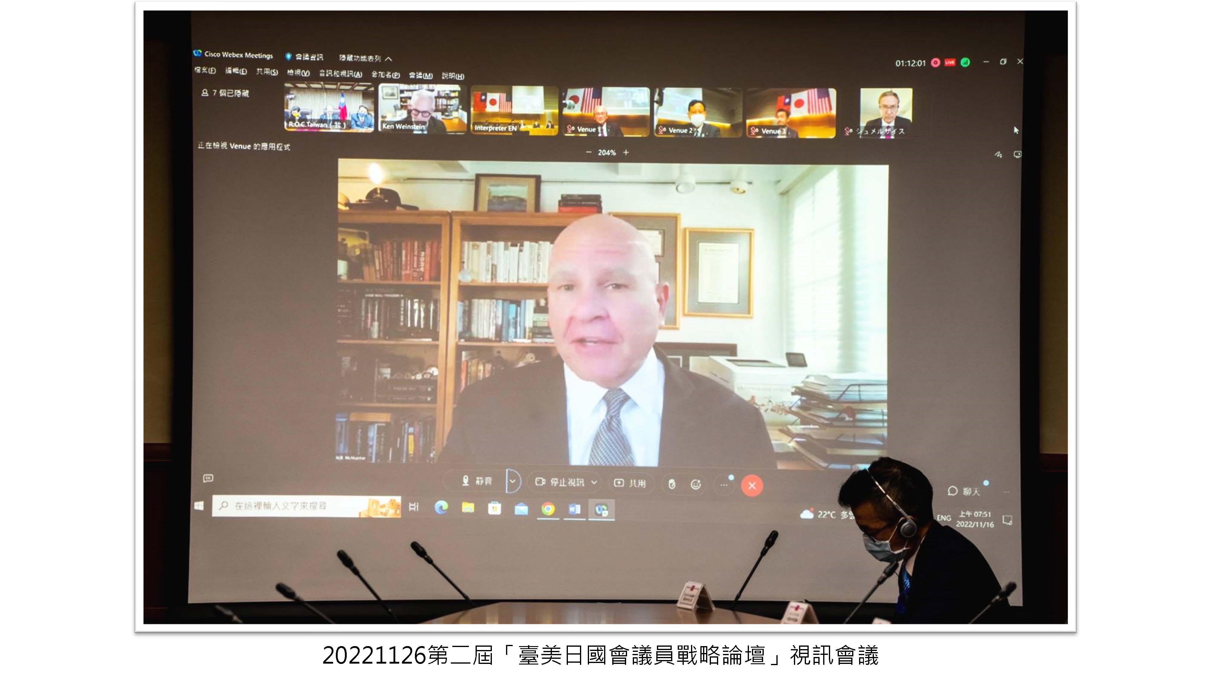 第二屆「臺美日國會議員戰略論壇」視訊會議
