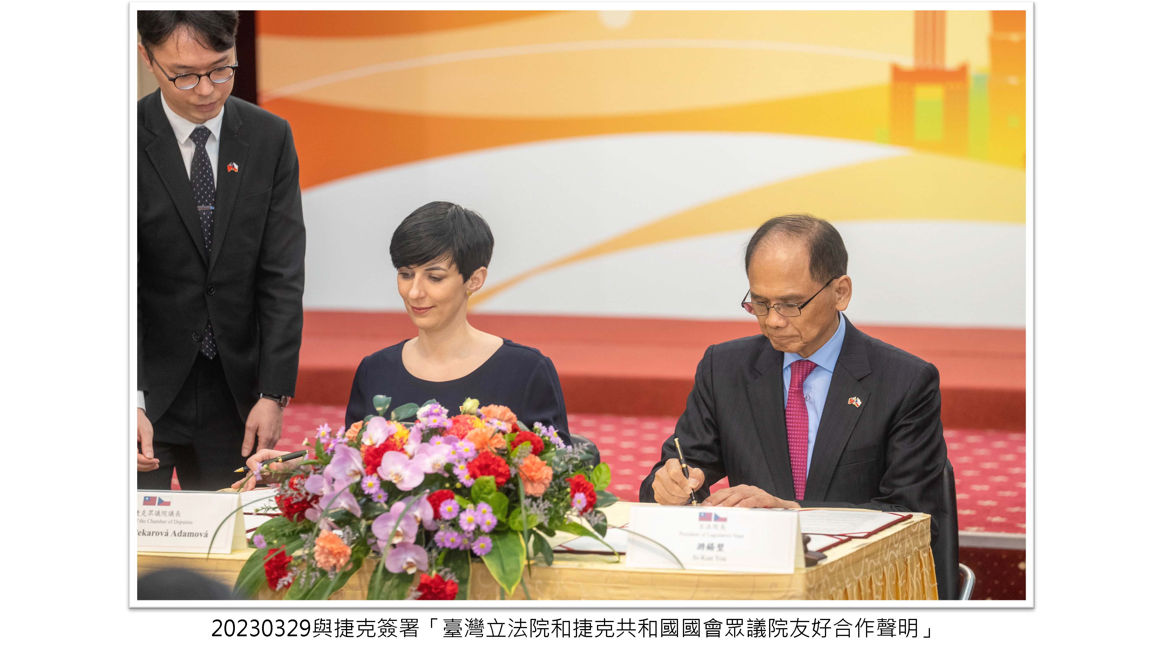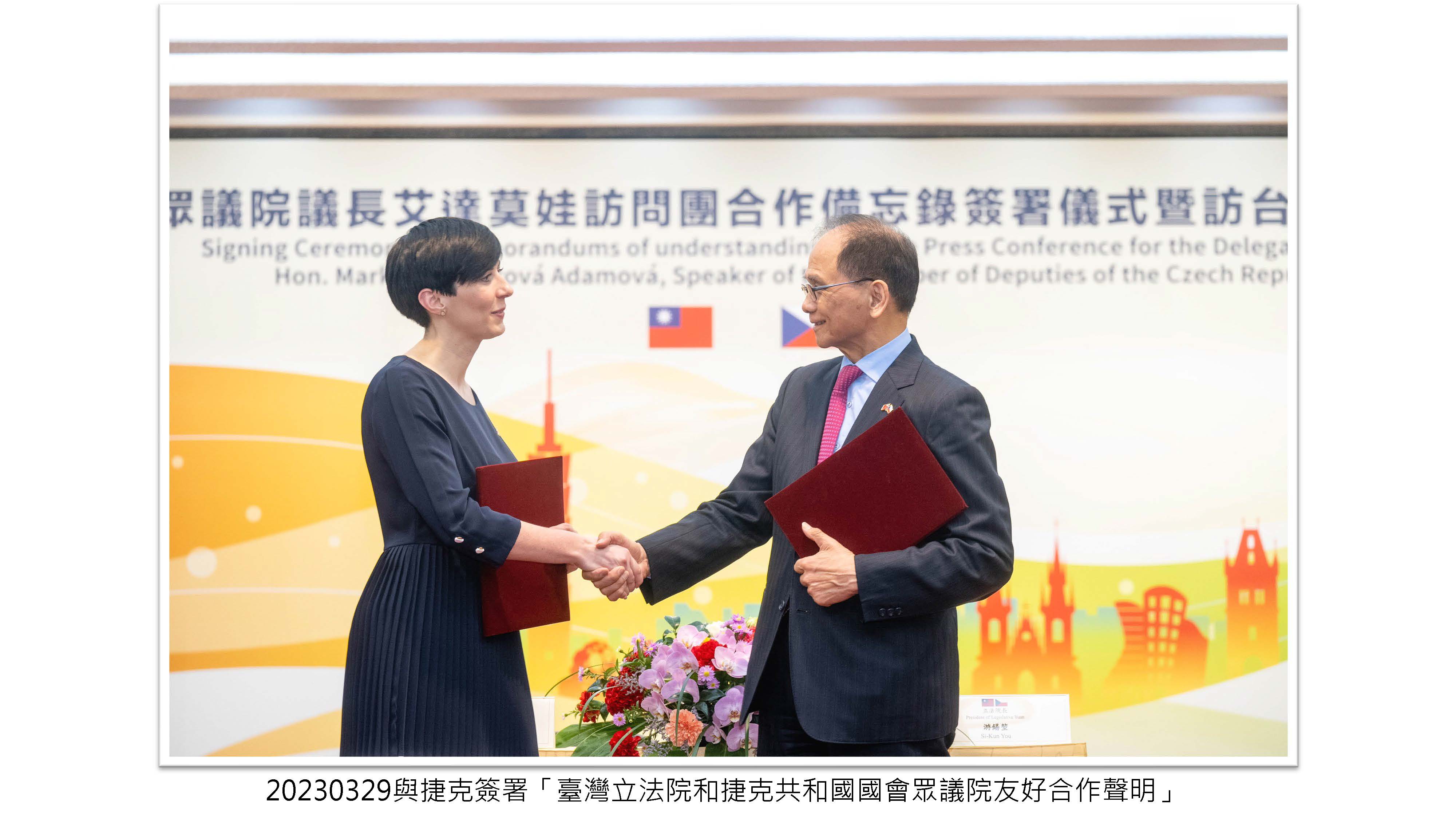與捷克簽署「臺灣立法院和捷克共和國國會眾議院友好合作聲明」