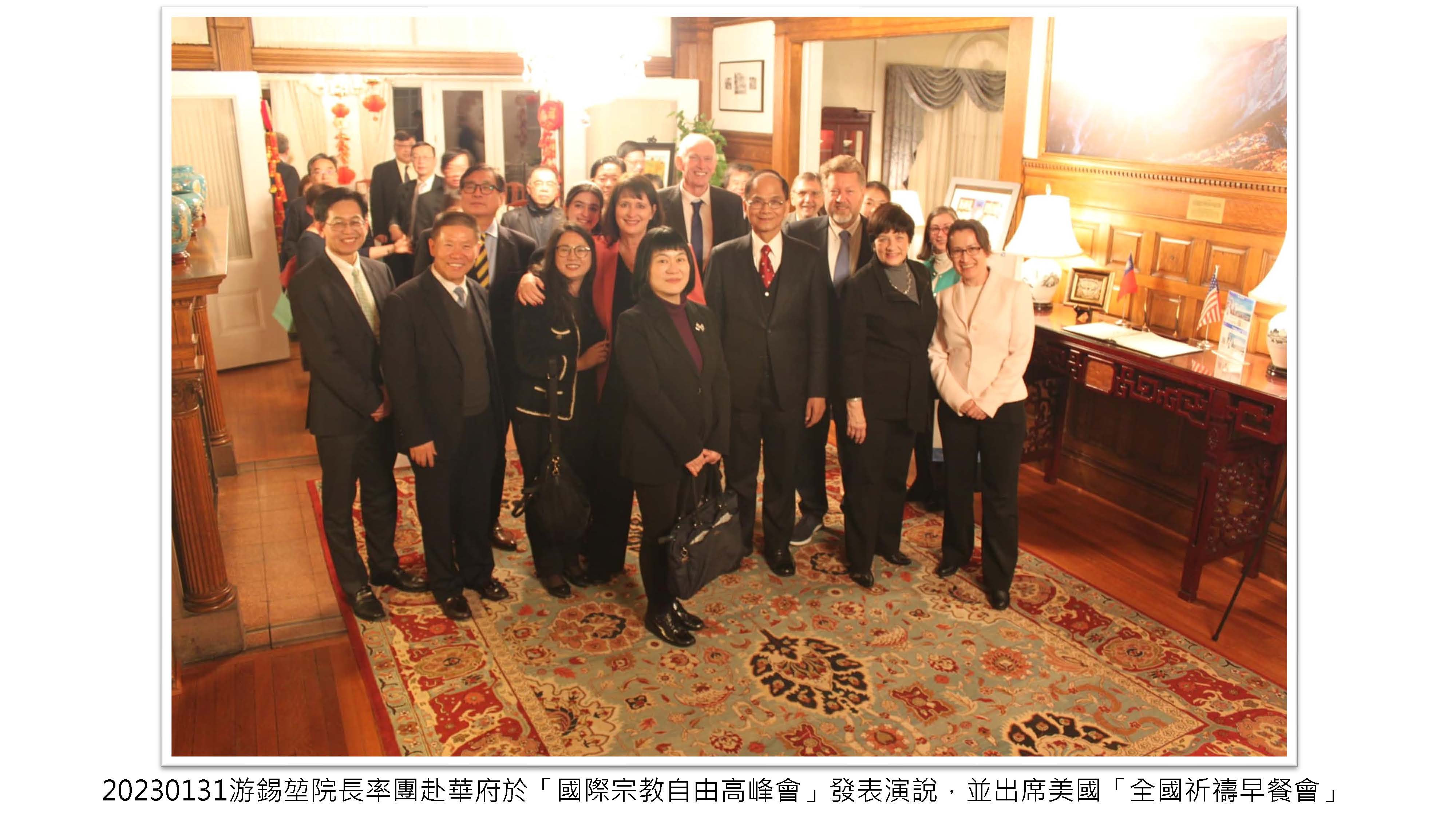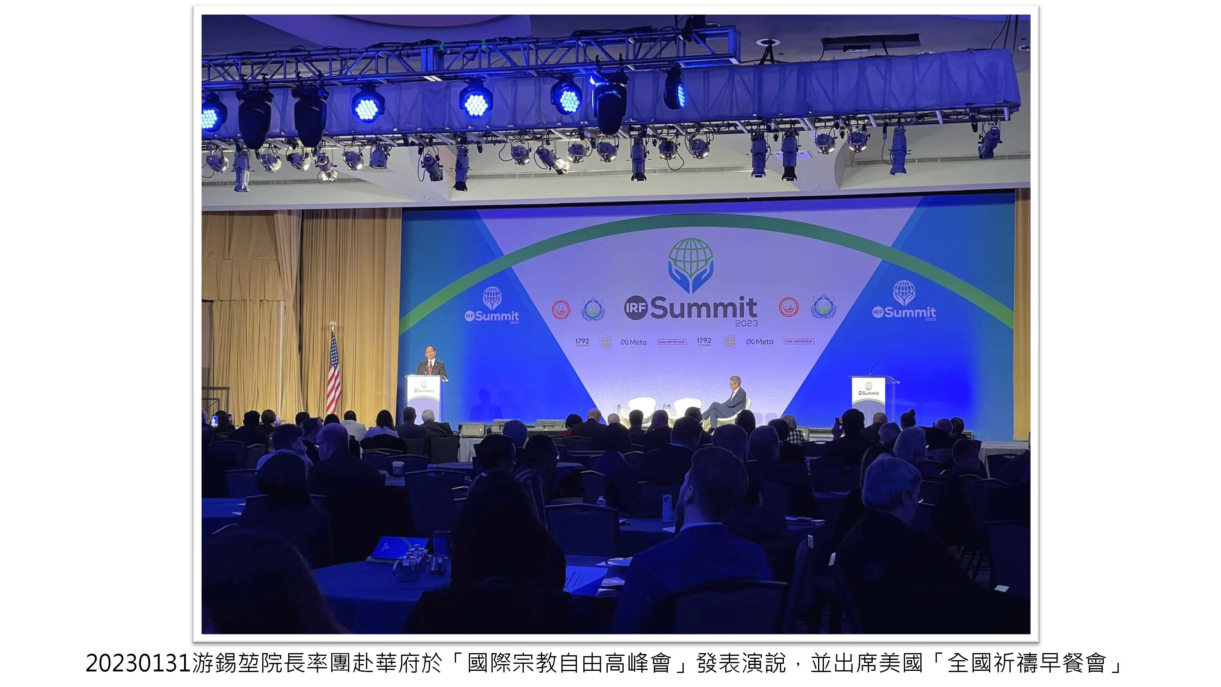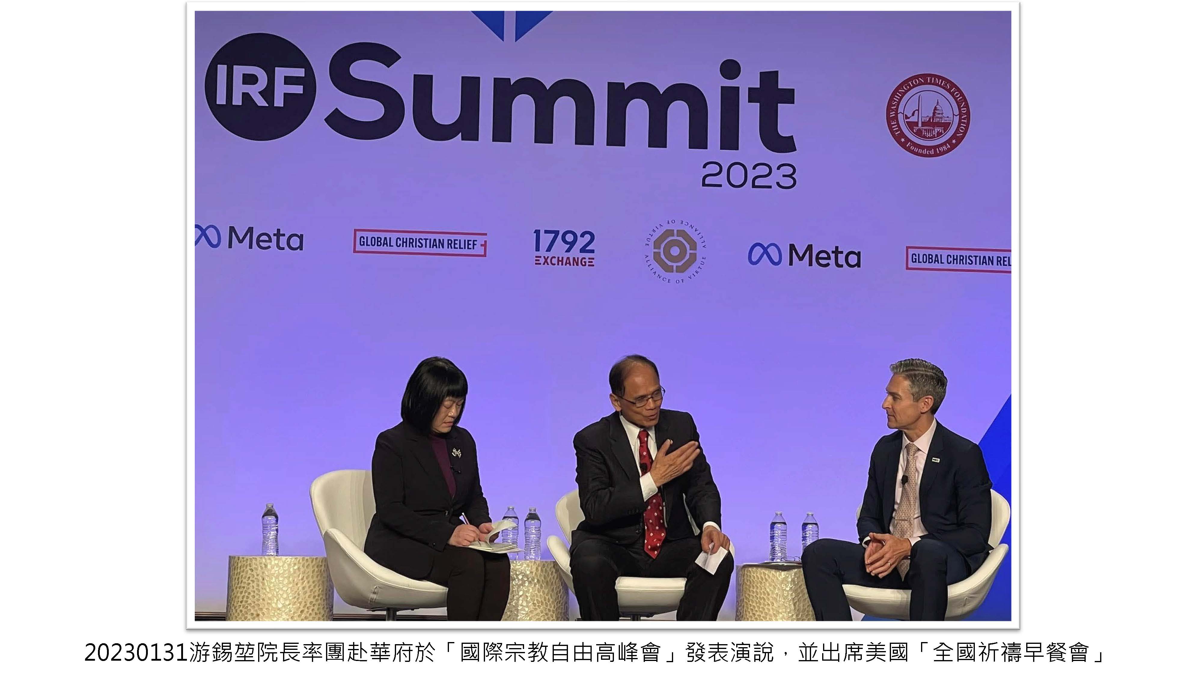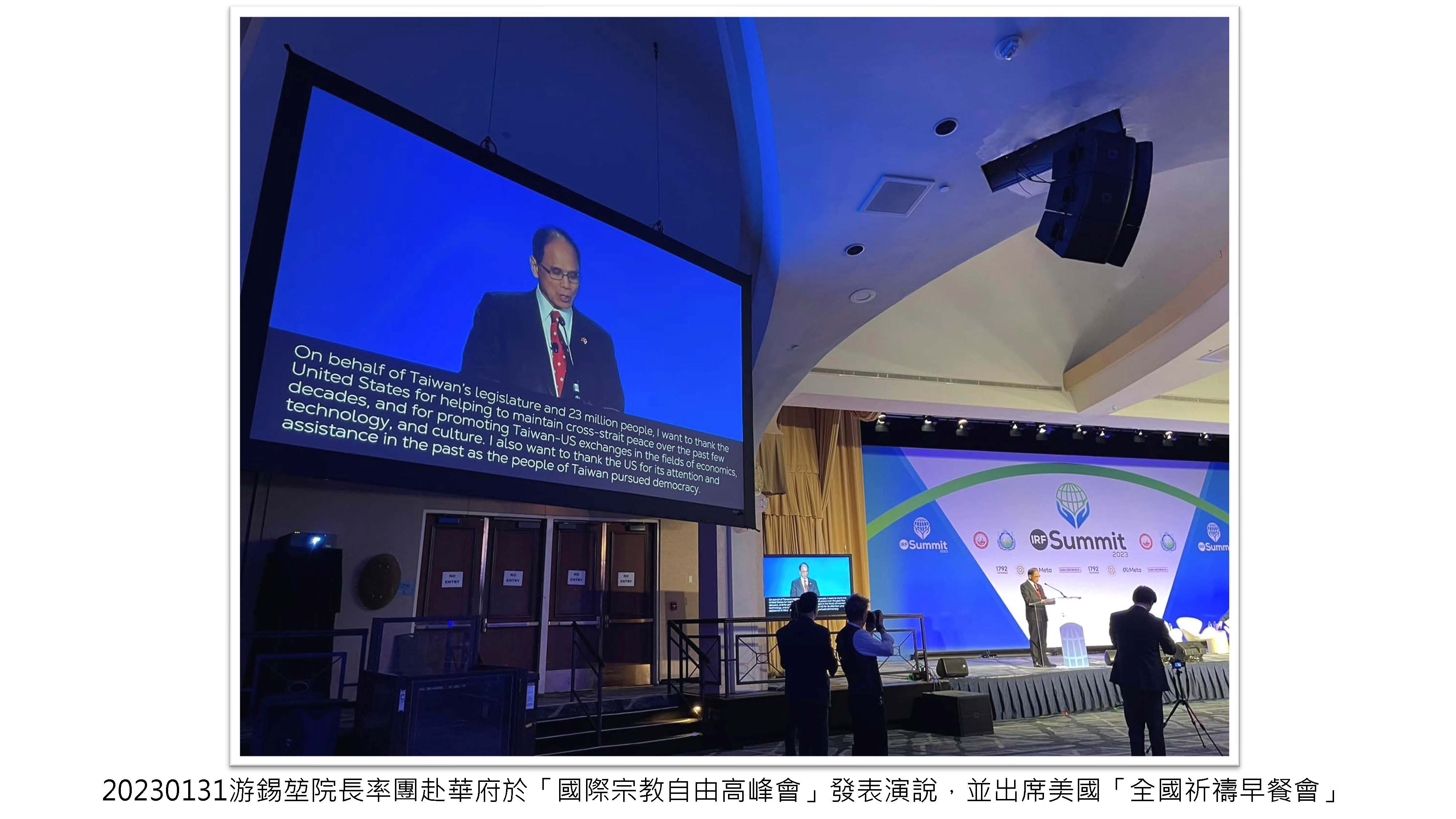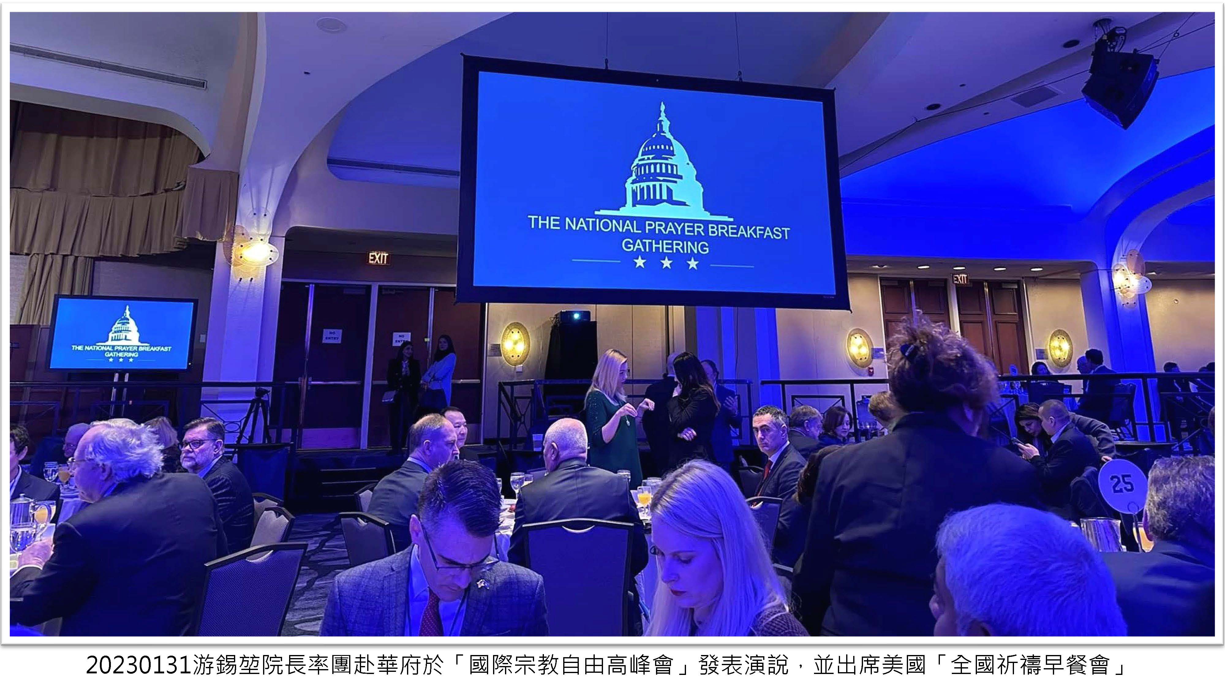 應「國際宗教自由高峰會」(International Religious Freedom Summit, IRF Summit)及美國「全國祈禱早餐會」(National Prayer Breakfast)之邀,率團赴華府於「國際宗教自由高峰會」發表演說,並出席美國「全國祈禱早餐會」,介紹臺灣民主歷程,為宗教自由發聲。
