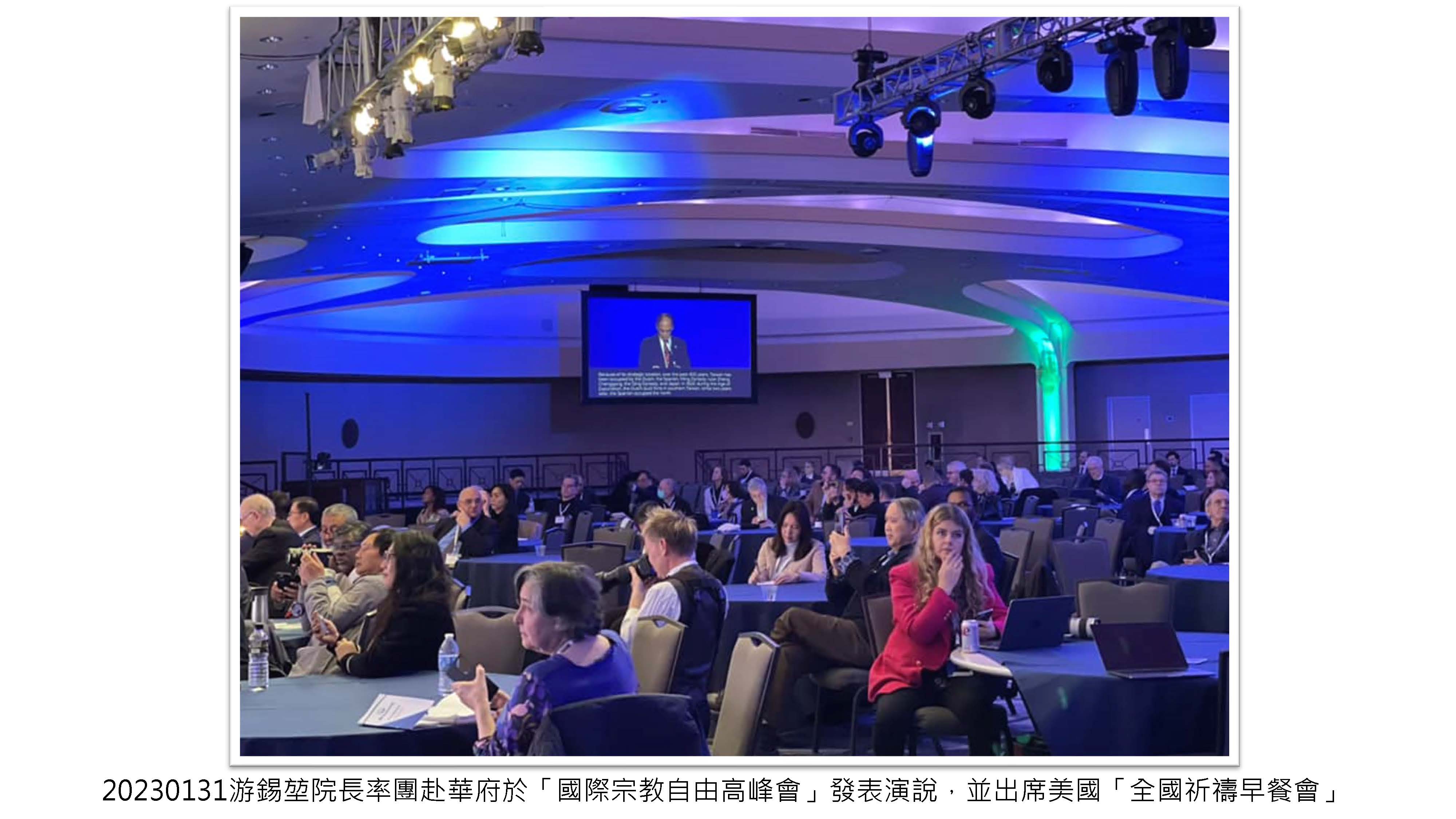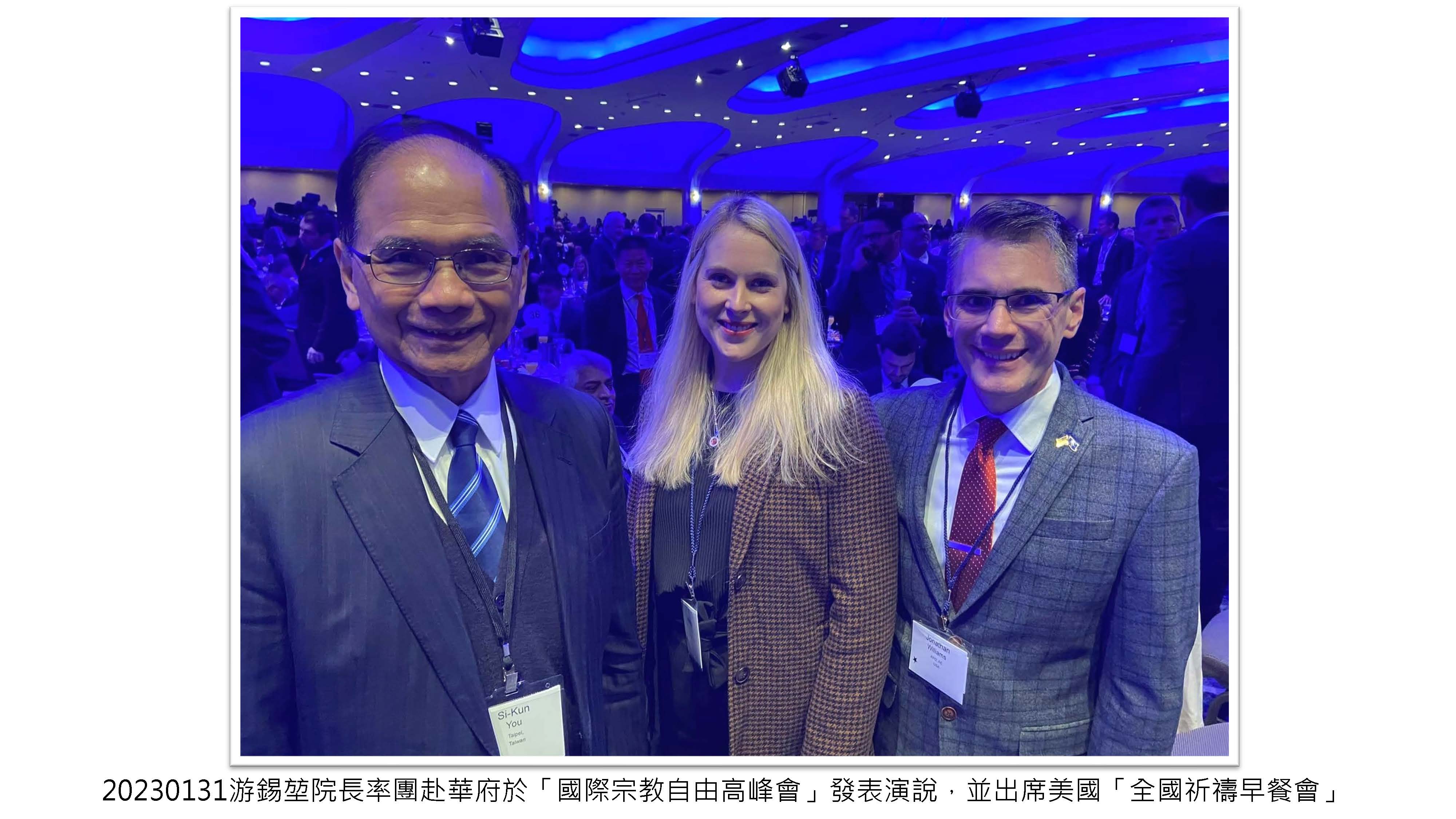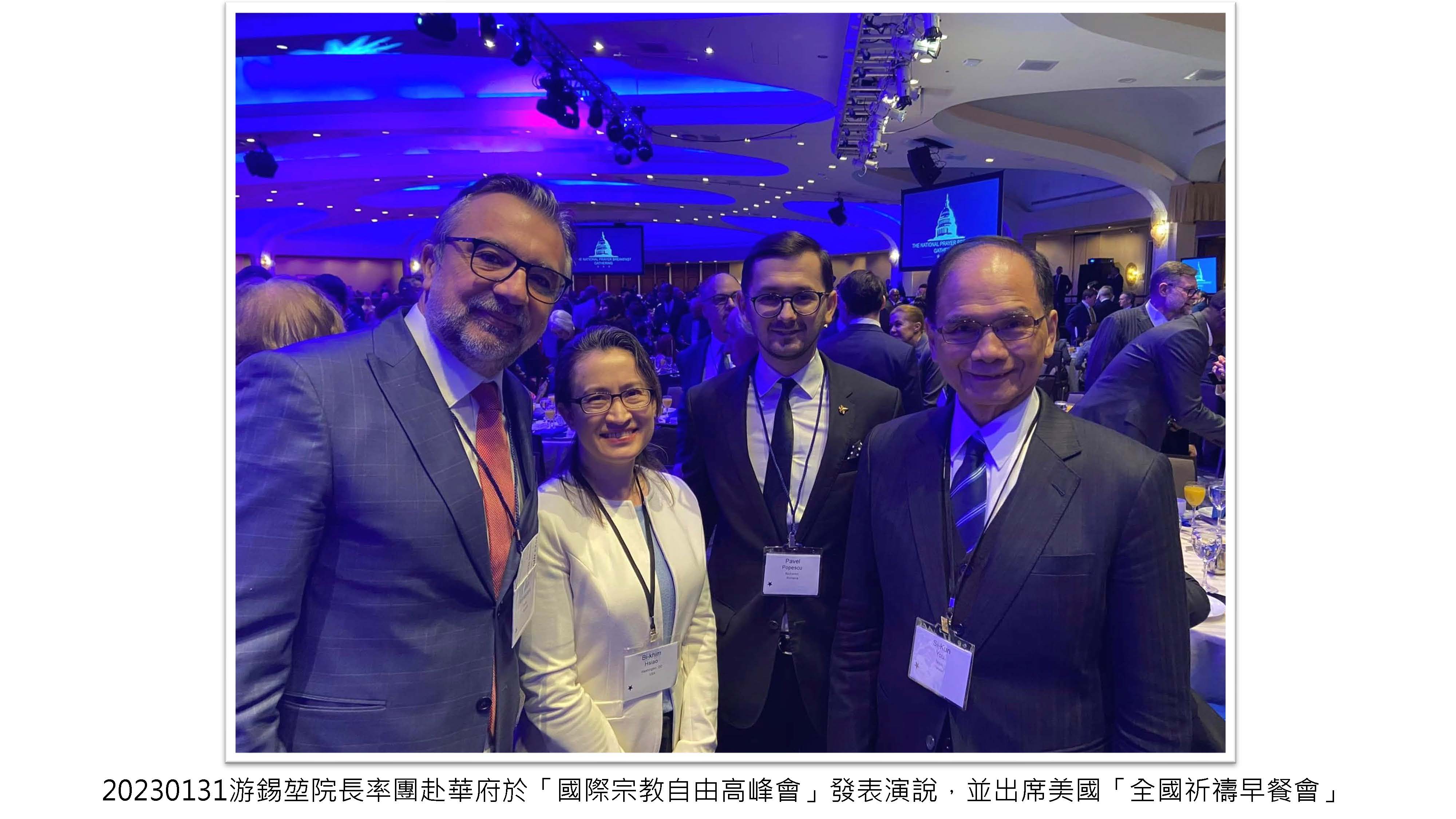 游錫堃院長率團赴華府於「國際宗教自由高峰會」發表演說,並出席美國「全國祈禱早餐會」