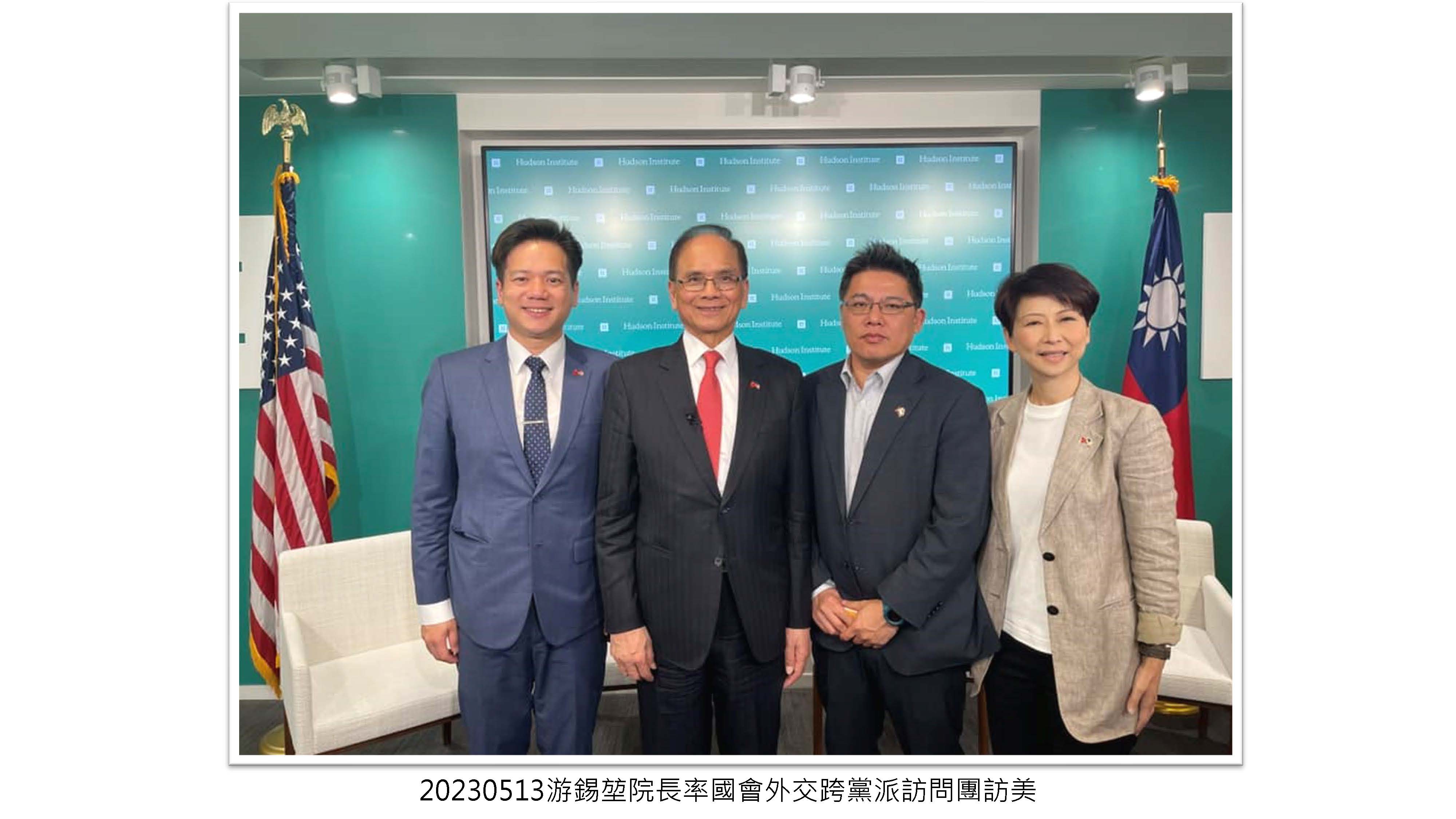 院長率國會外交跨黨派訪問團訪美,於哈德森研究所以「文明存續,捨美其誰?公義伸張,非美不可」為題進行公開演說 ,對臺灣民主成就、國際友邦協助之重要性及中共威脅以理性務實方式呈現,獲國際媒體正面肯定及報導。