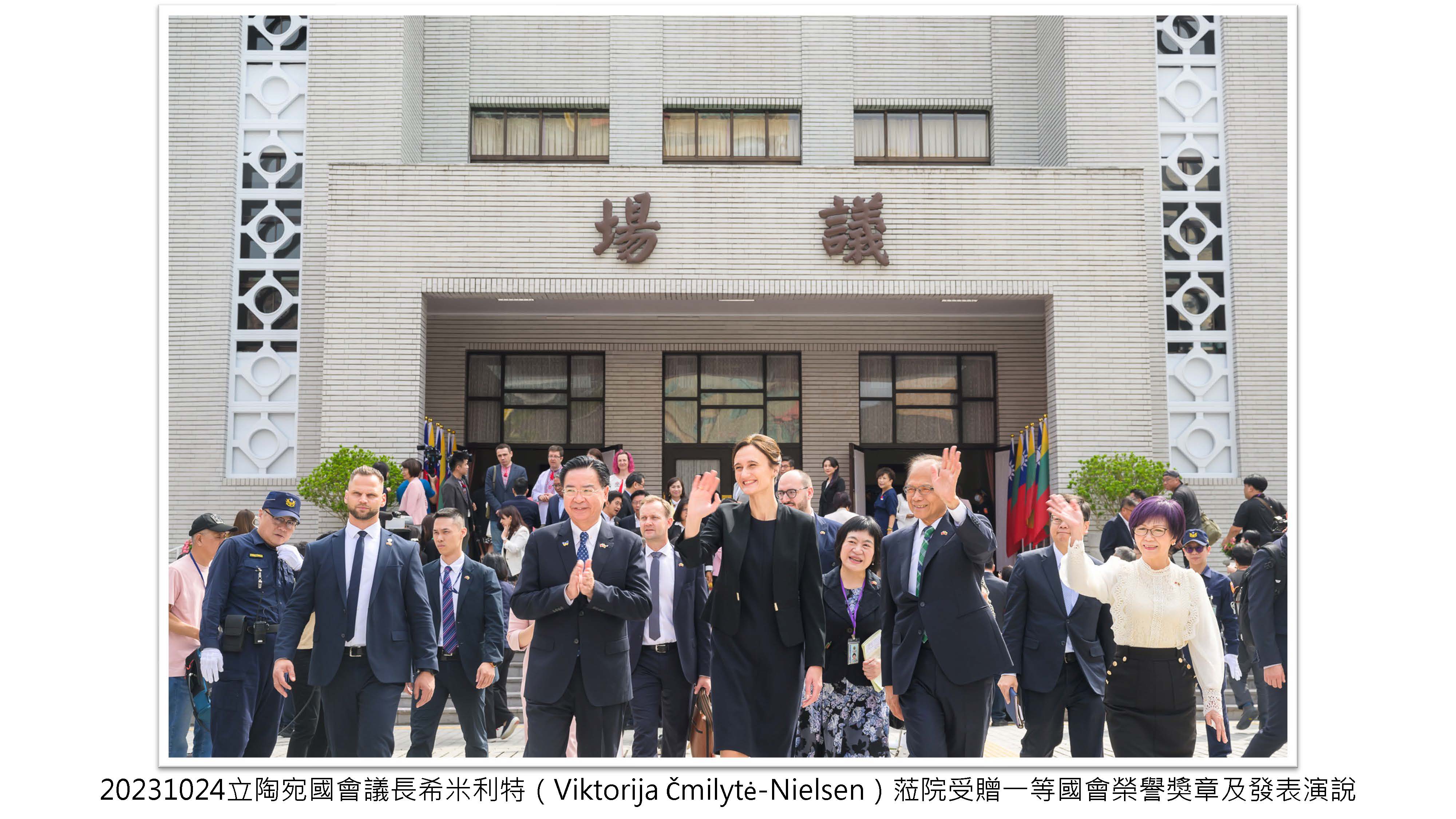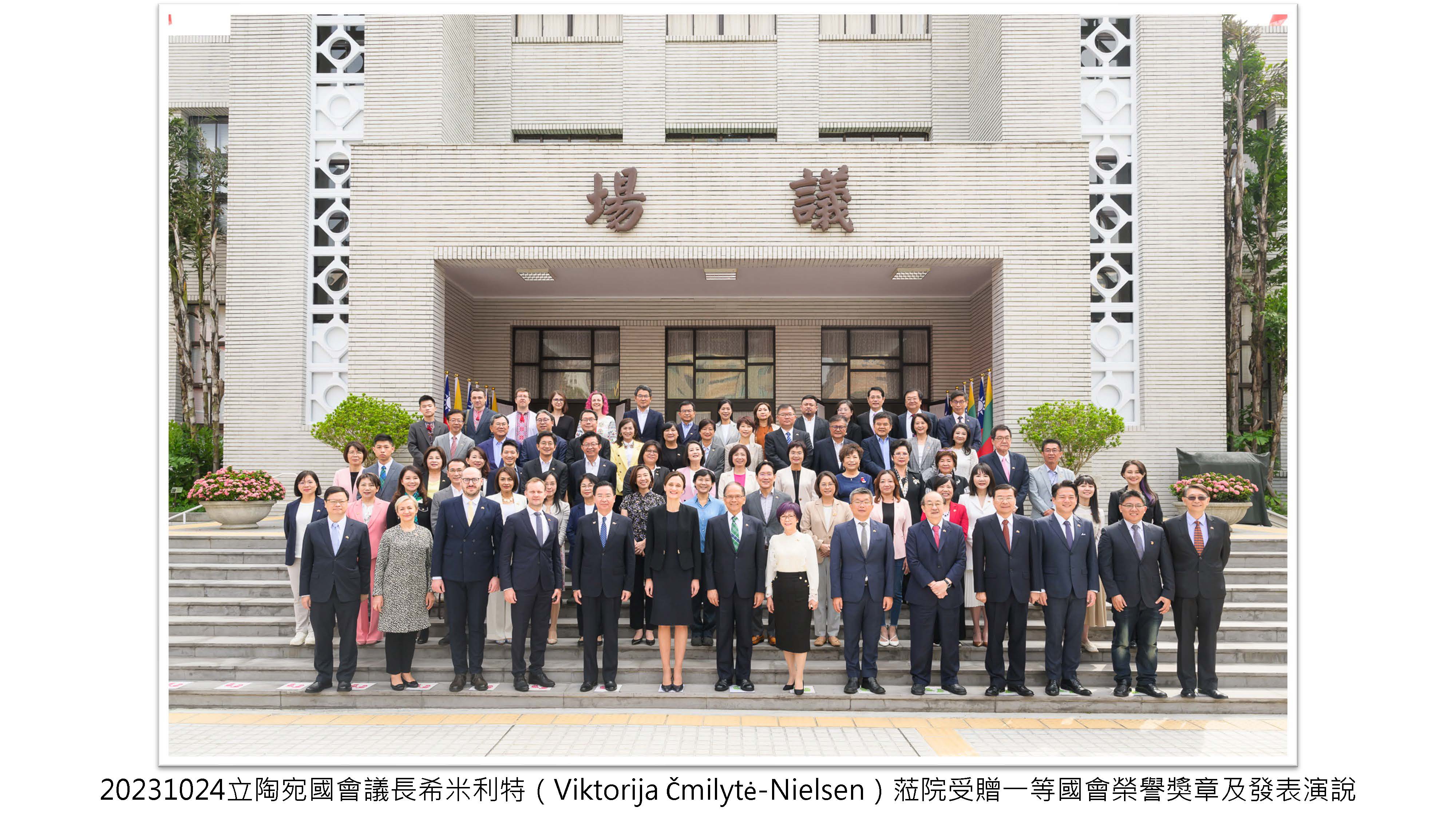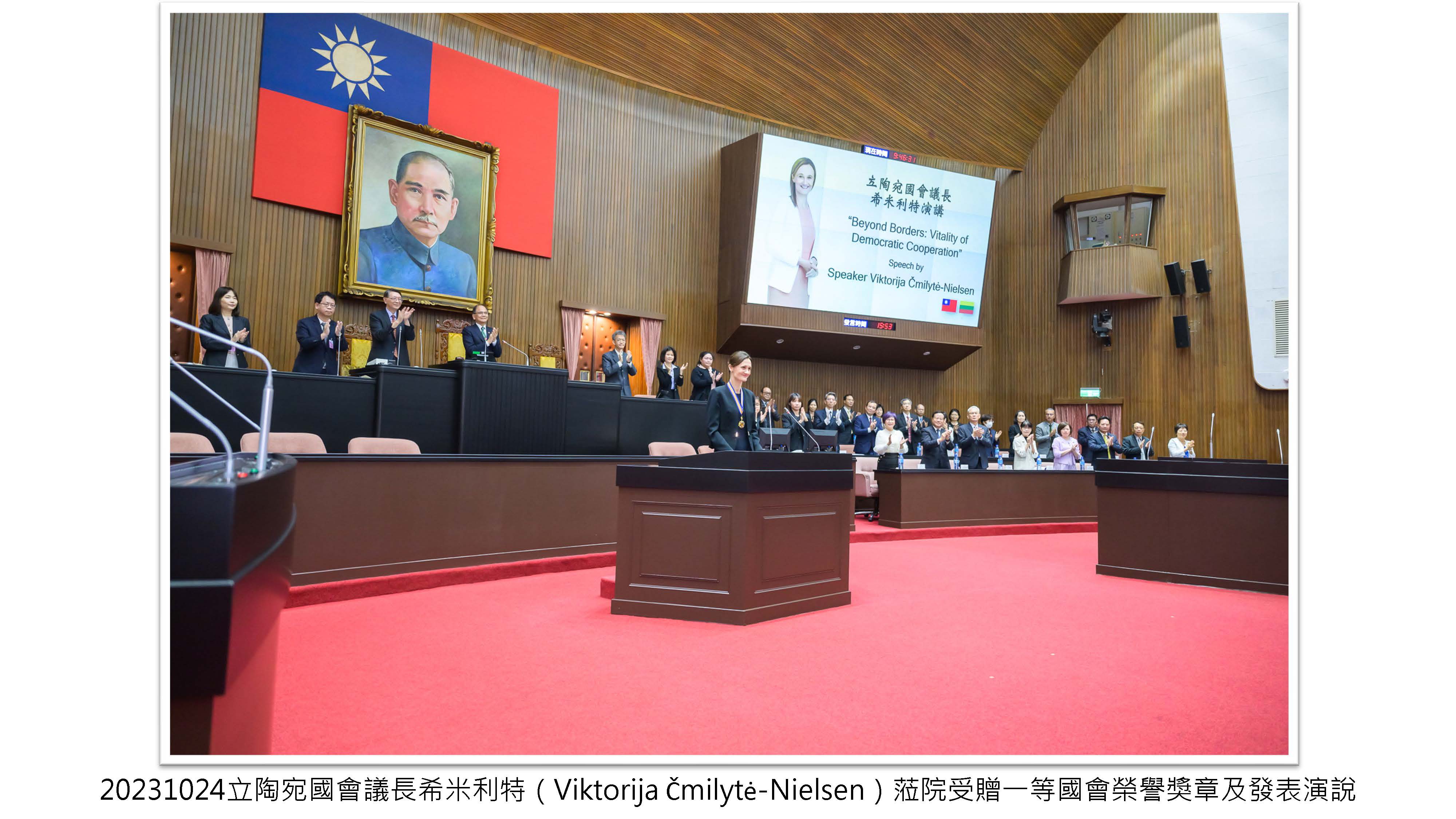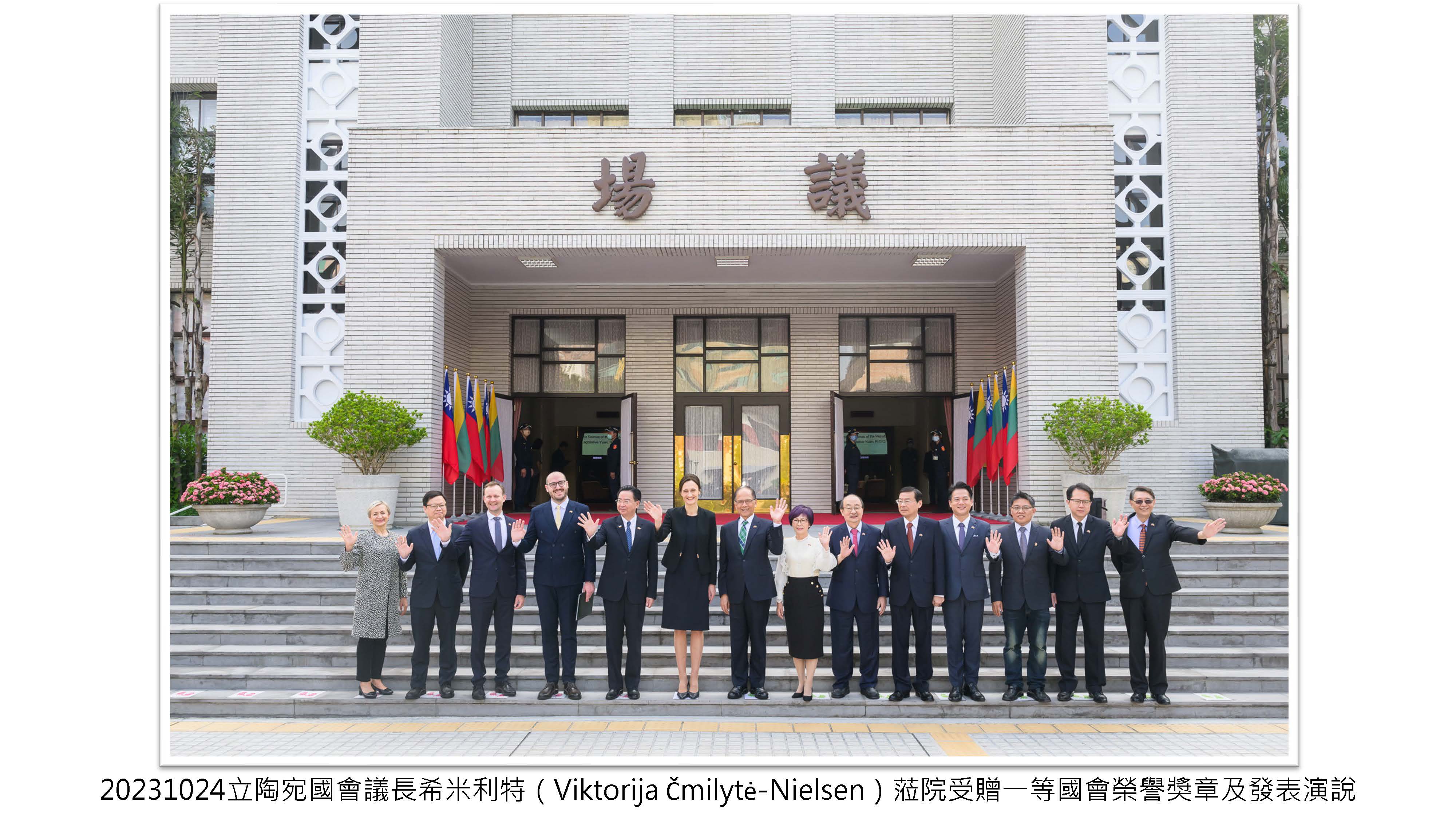 立陶宛國會議長希米利特(Viktorija Čmilytė-Nielsen)蒞院受贈一等國會榮譽獎章及發表演說,聲明臺立團結共同捍衛自由民主。