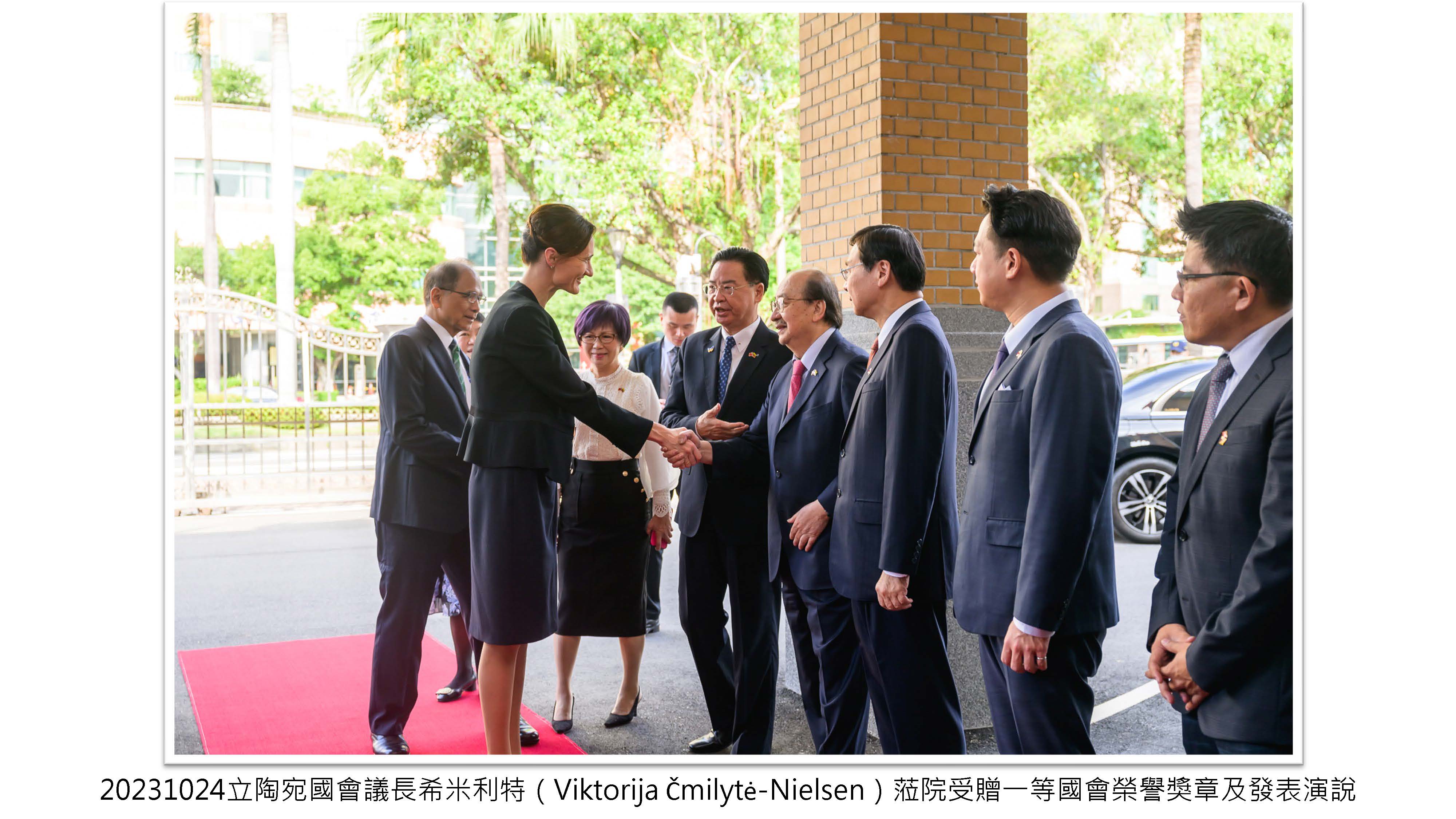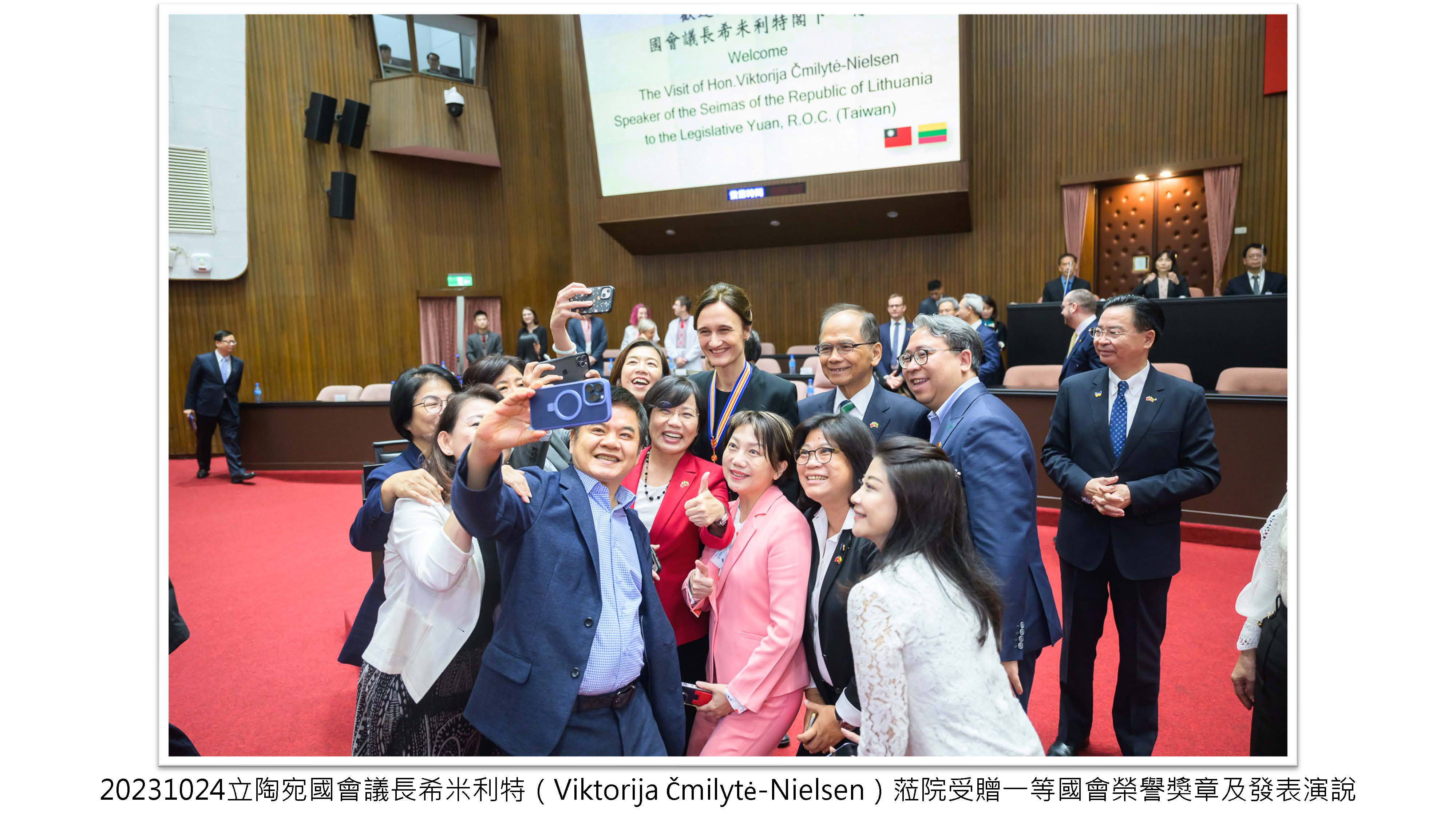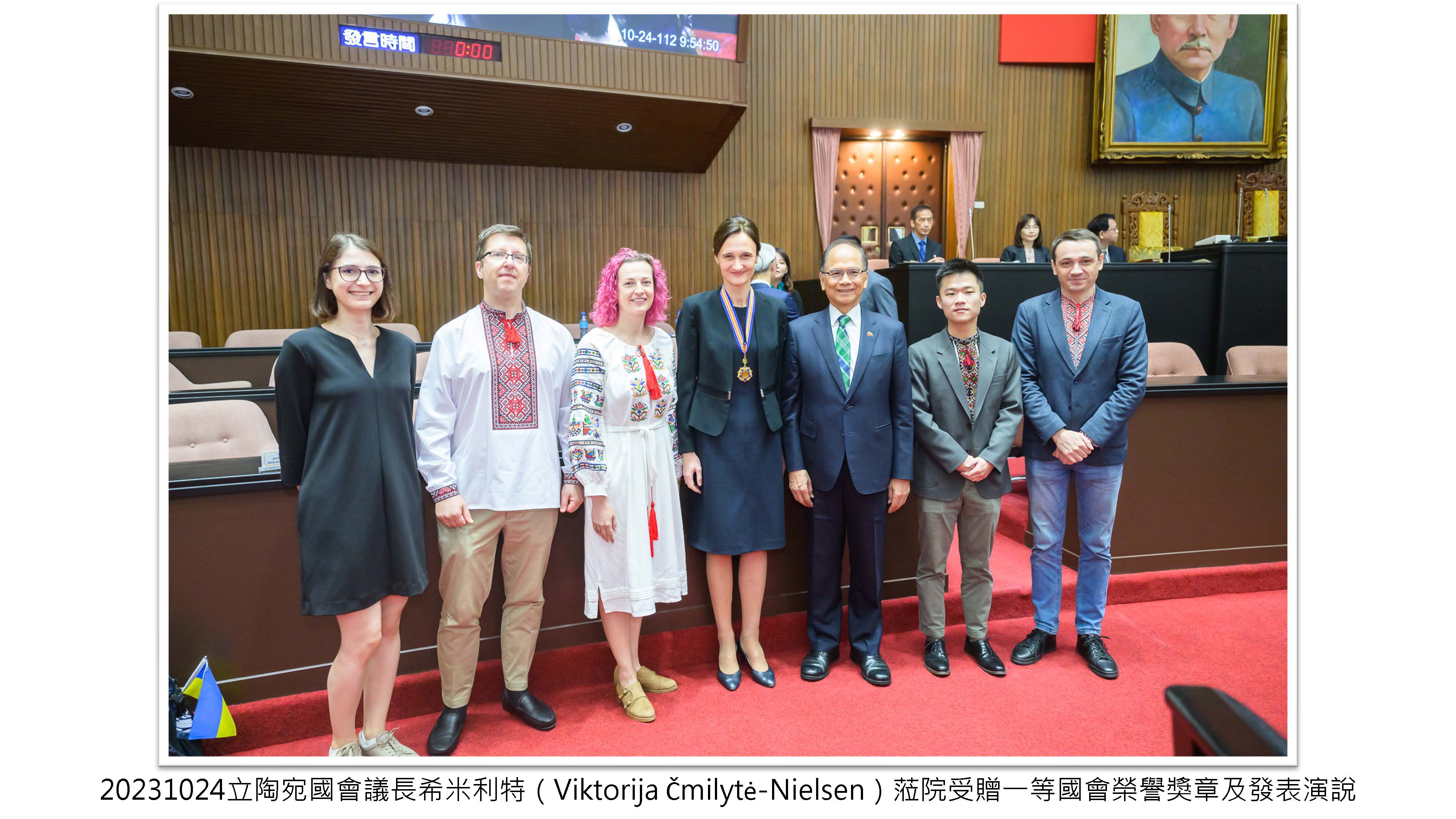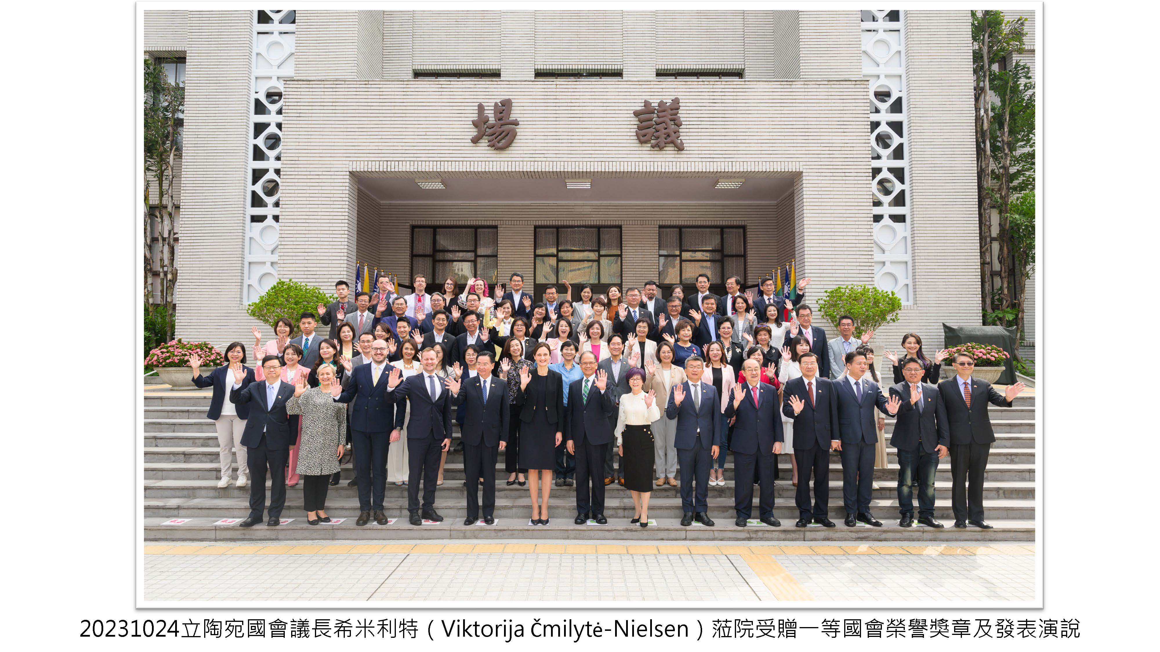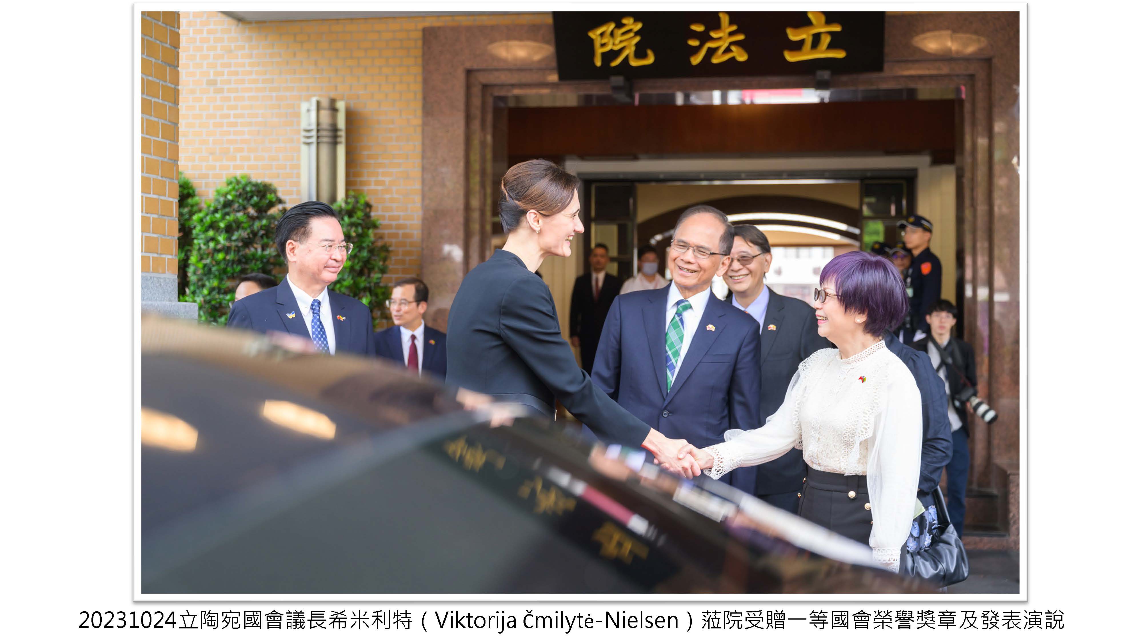 立陶宛國會議長希米利特(Viktorija Čmilytė-Nielsen)蒞院受贈一等國會榮譽獎章及發表演說,聲明臺立團結共同捍衛自由民主。
