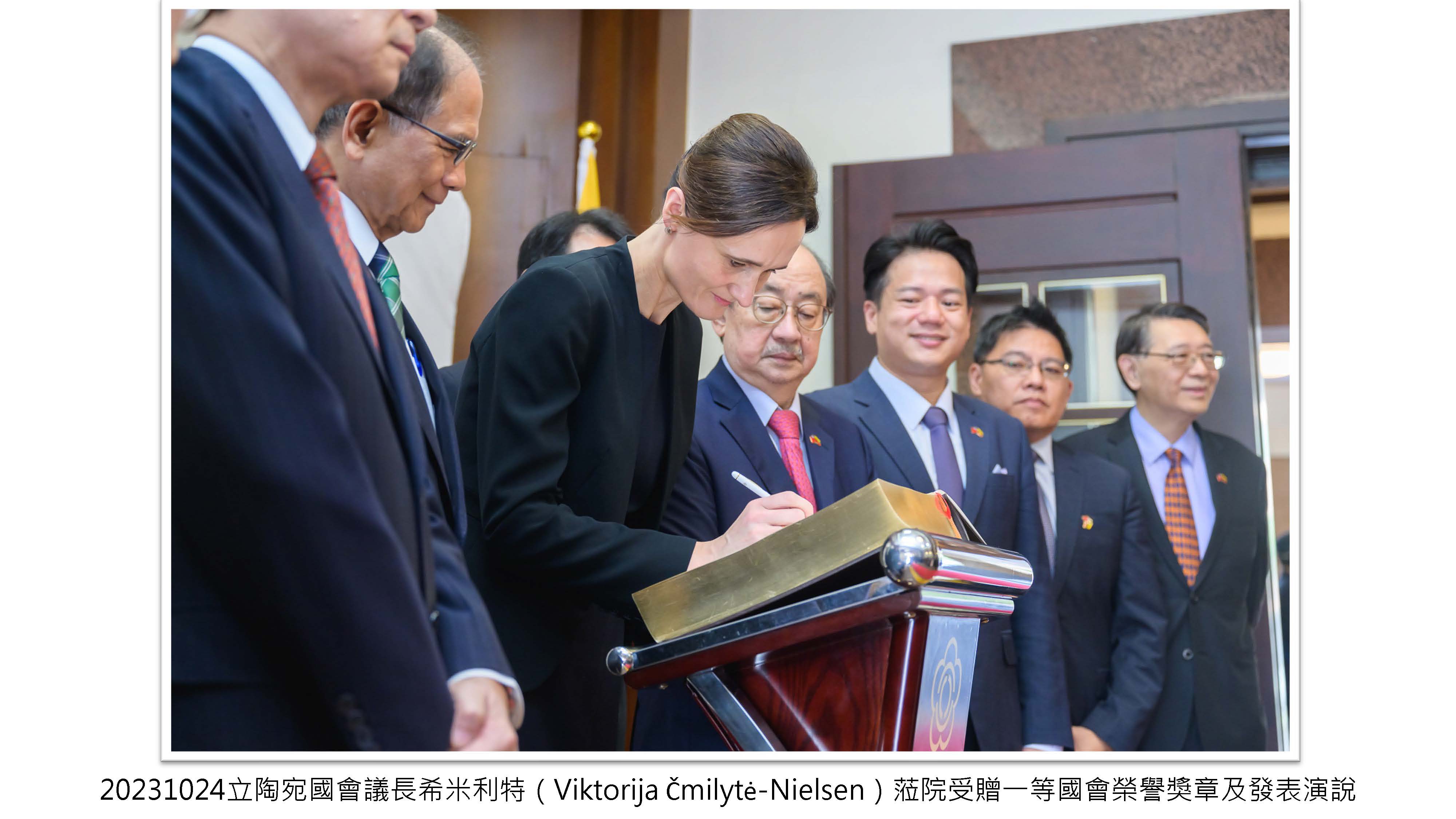 立陶宛國會議長希米利特(Viktorija Čmilytė-Nielsen)蒞院受贈一等國會榮譽獎章及發表演說