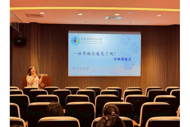 陳怡成律師蒞館進行「一條界線你看見了嗎—談職場霸凌」專題講座