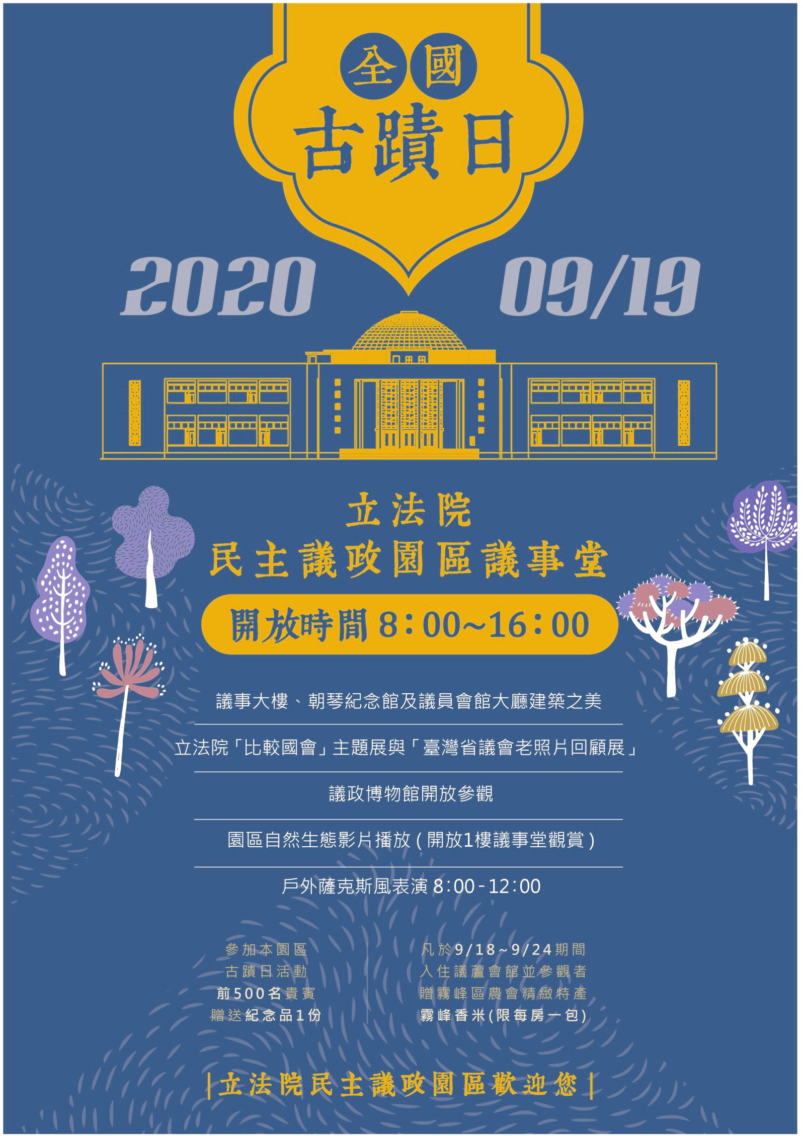 109年9月19日(星期六)本館配合全國古蹟日開放民眾自由參觀。