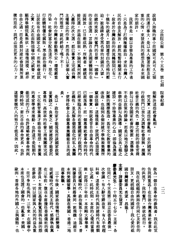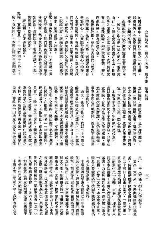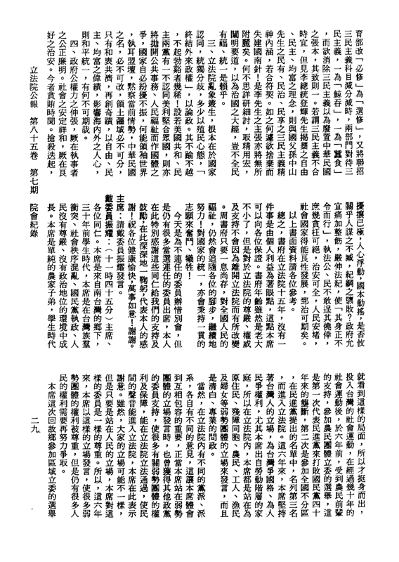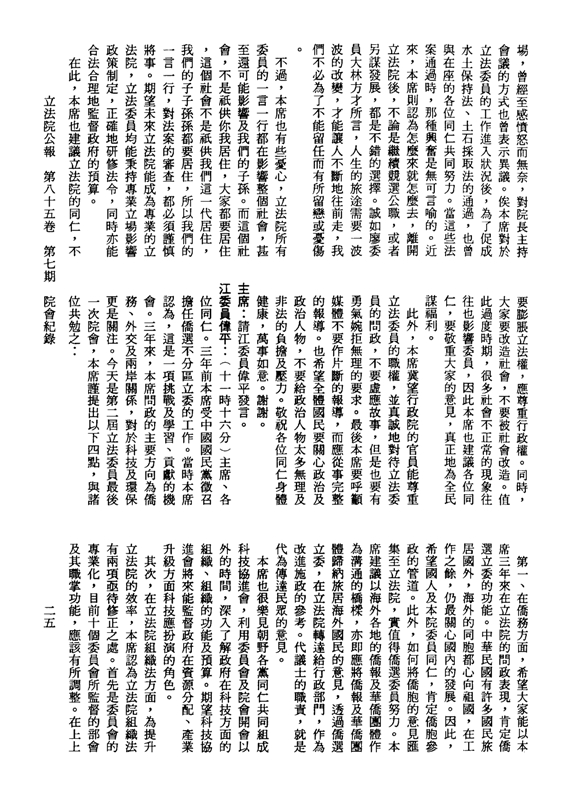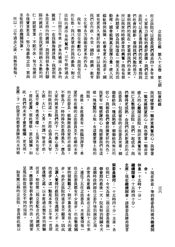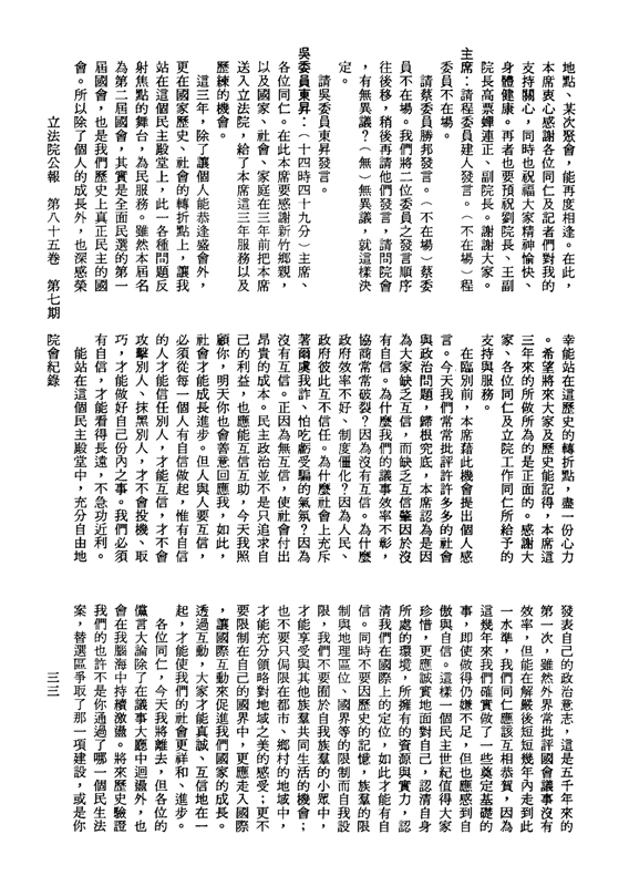 立法院、立法委員、離別感言、呂秀蓮、陳昭男、廖光生、王建煊、李源泉、江偉平、李宗正、張建國、張堅華、周書府、戴振輝、陳錫章、魏耀乾、嚴啟昌、吳德美、馬賴‧古麥、吳東昇、魏鏞、黃煌雄、程建人、蔡勝邦