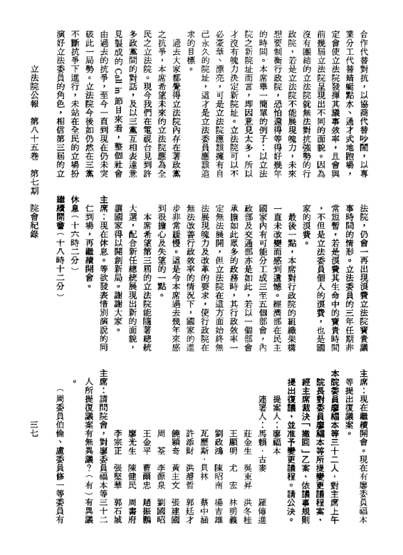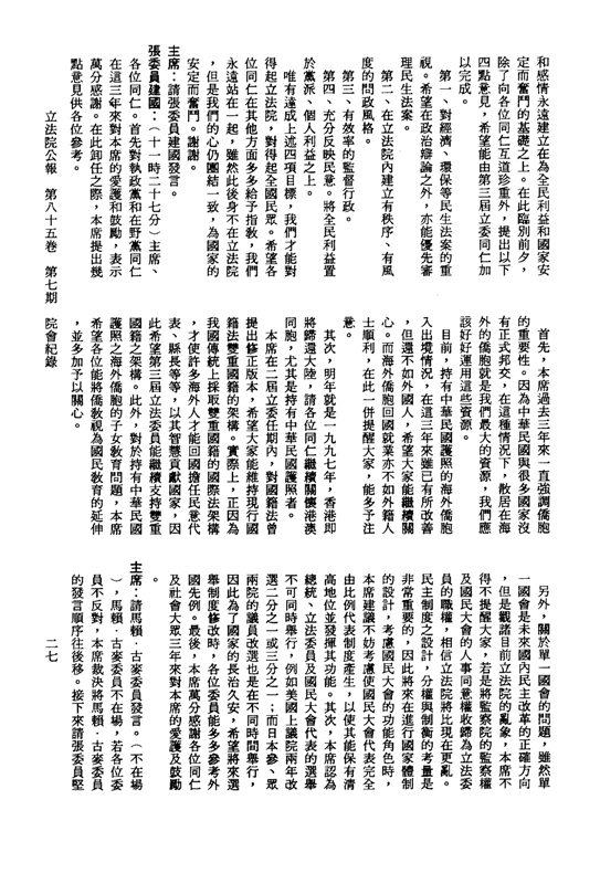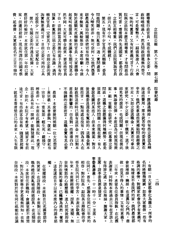 立法院第2屆最後一個會期的最後一天,院長依例開闢一個時段,供卸任委員作離別感言,計有呂秀蓮、陳昭男、廖光生、王建煊、李源泉、江偉平、李宗正、張建國、張堅華、周書府、戴振輝、陳錫章、魏耀乾、嚴啟昌、吳德美、馬賴‧古麥、吳東昇、魏鏞、黃煌雄、程建人、蔡勝邦等21位未連任委員發言。