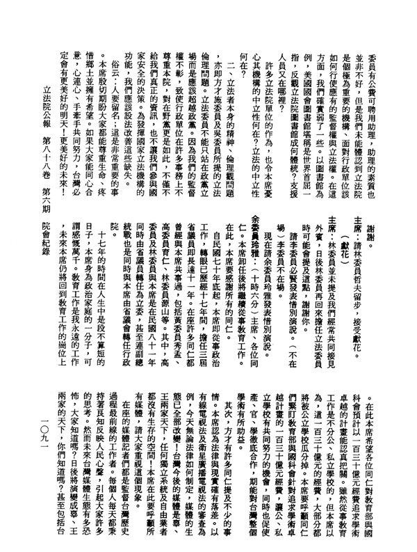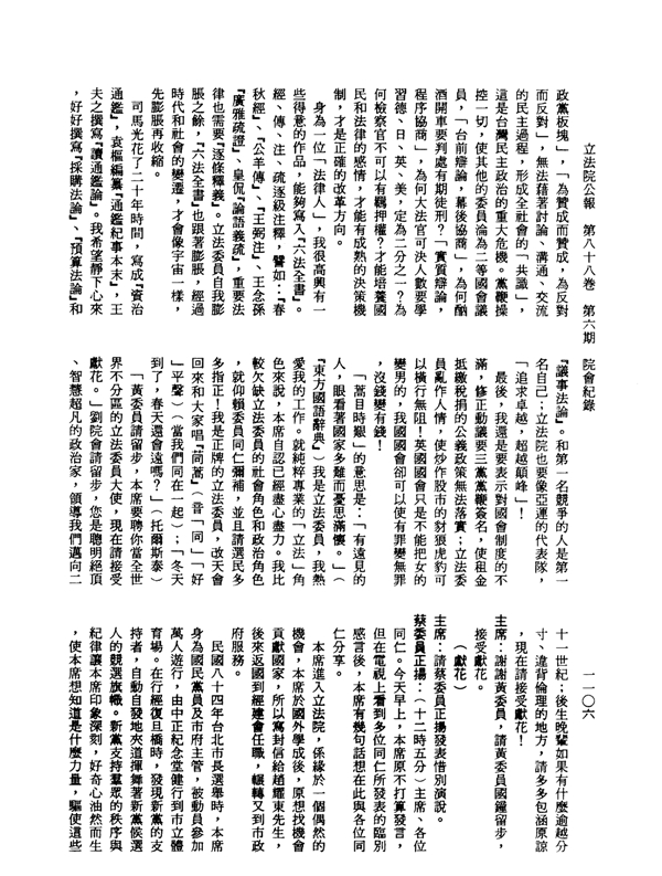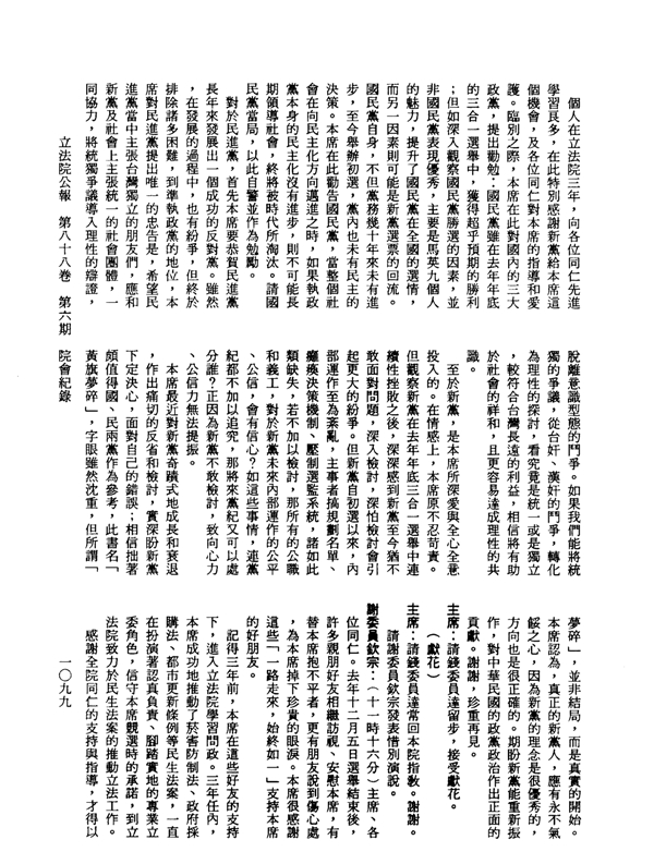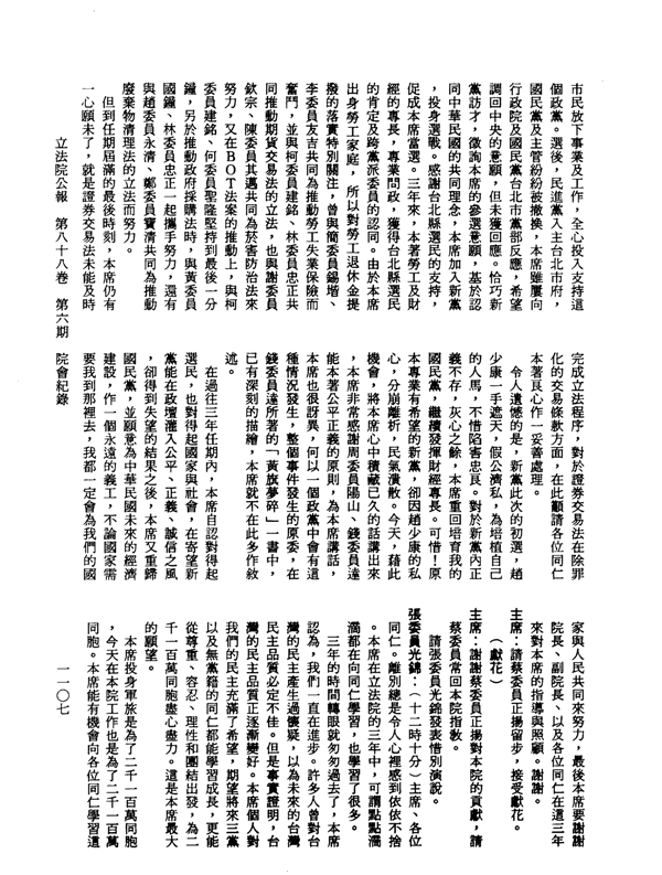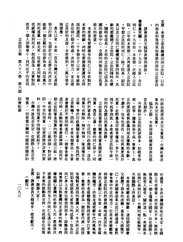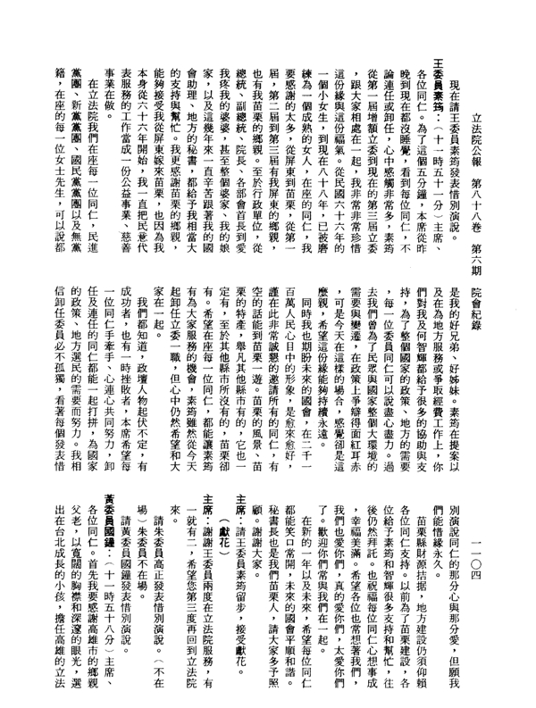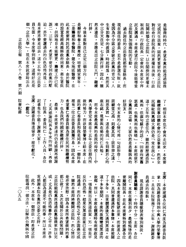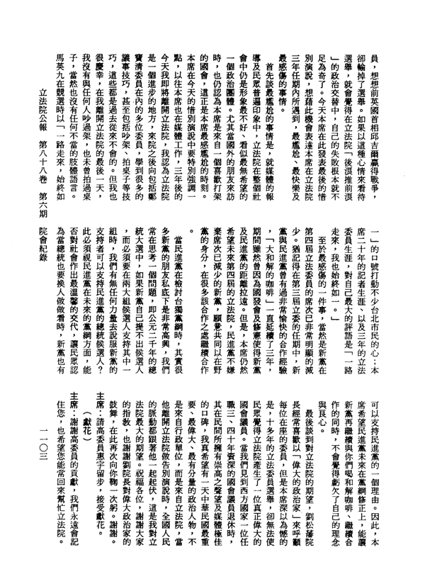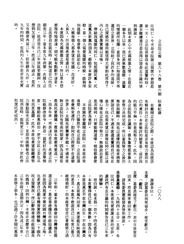 立法院、立法委員、離別感言、黃清林、葛雨琴、吳惠祖、施台生、林哲夫、余玲雅、尤宏、黃天福、莊金生、羅傳進、謝聰敏、李文郎、周陽山、陳癸淼、錢達、謝欽宗、何聖隆、李友吉、謝錦川、高惠宇、王素筠、黃國鐘、蔡正揚、張光錦