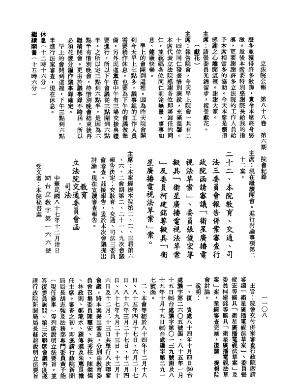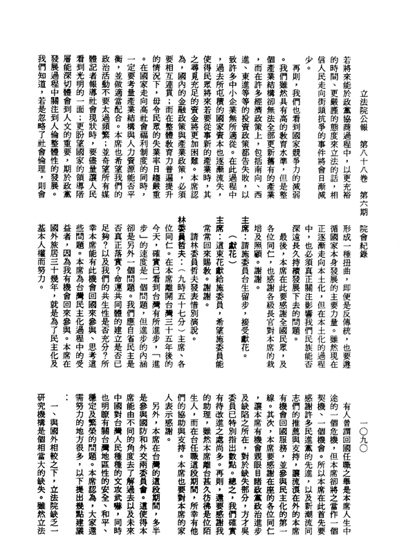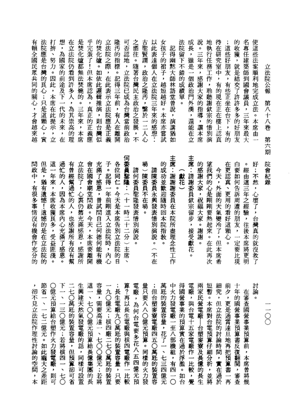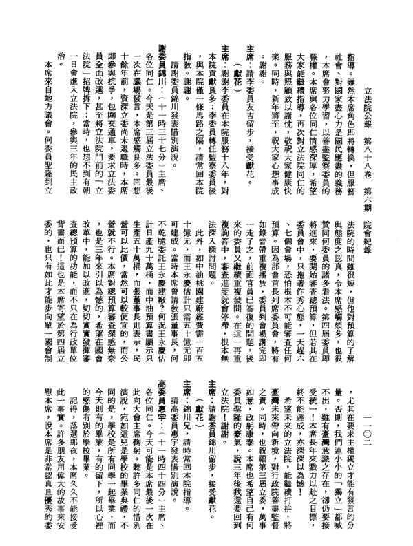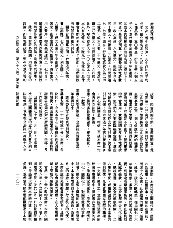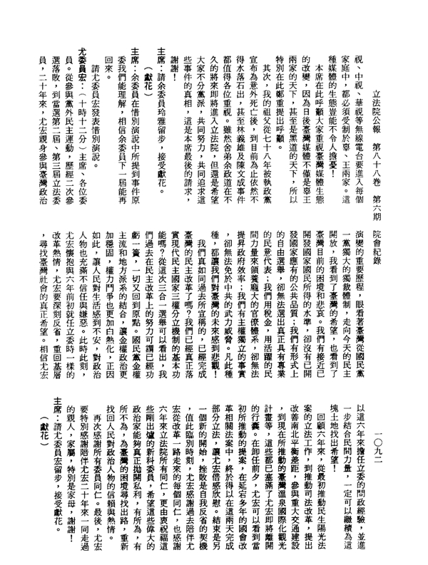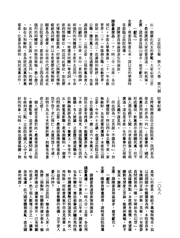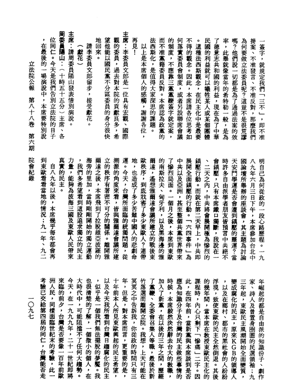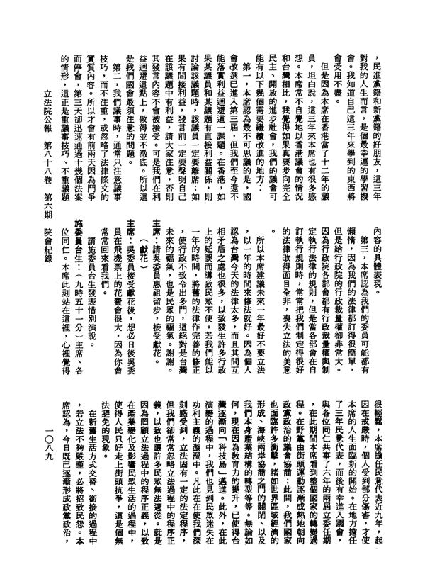 立法院、立法委員、離別感言、黃清林、葛雨琴、吳惠祖、施台生、林哲夫、余玲雅、尤宏、黃天福、莊金生、羅傳進、謝聰敏、李文郎、周陽山、陳癸淼、錢達、謝欽宗、何聖隆、李友吉、謝錦川、高惠宇、王素筠、黃國鐘、蔡正揚、張光錦
