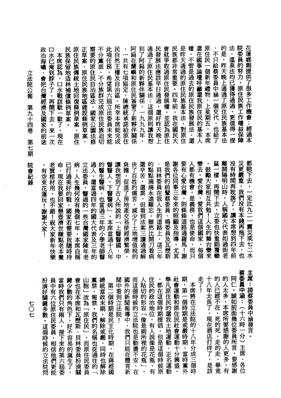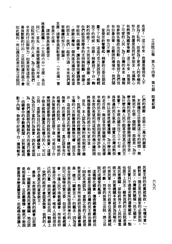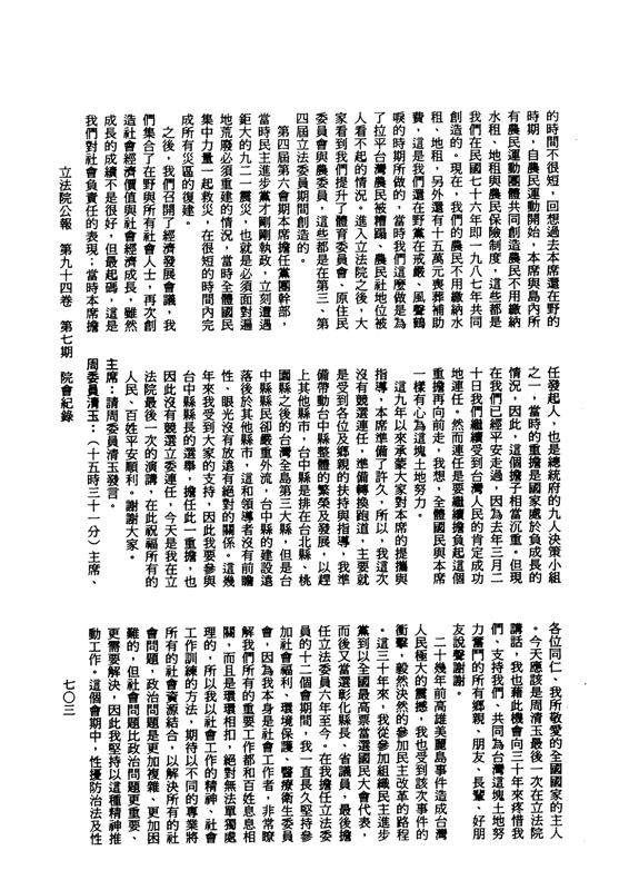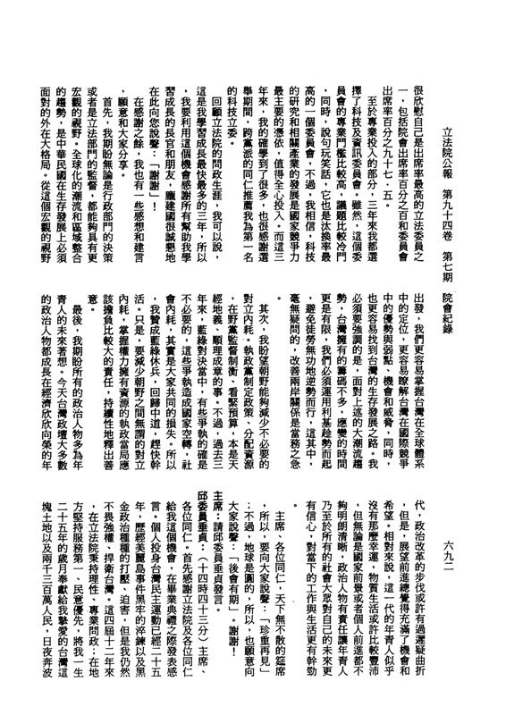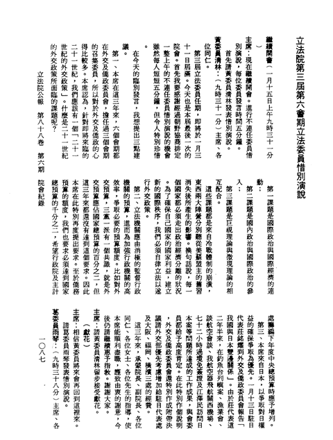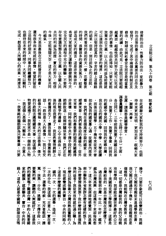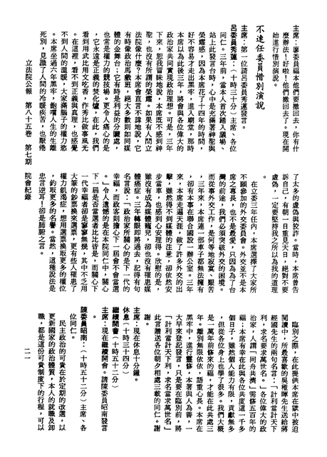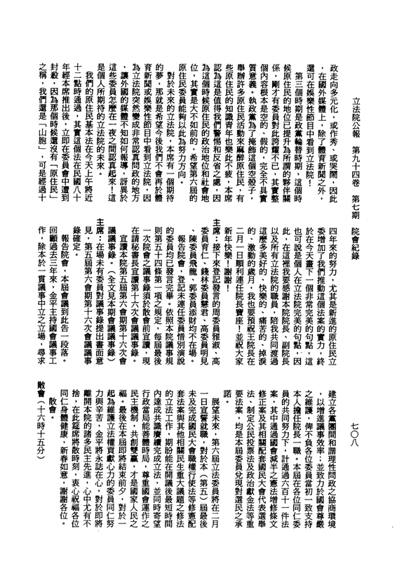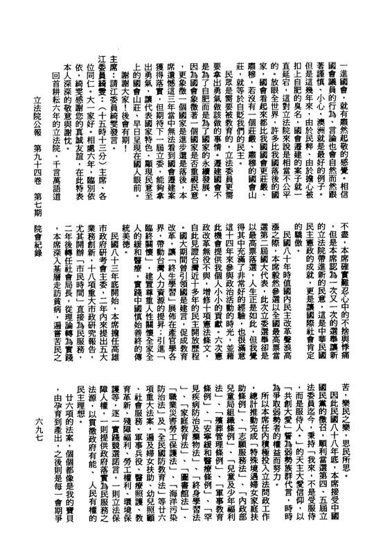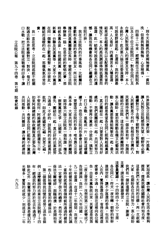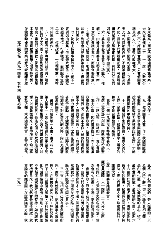 立法院、立法委員、離別感言、饒穎奇、龐建國、邱垂貞、沈富雄、蘇盈貴、李桐豪、林政義、江綺雯、關沃暖、林豐喜、周清玉、孫國華、瓦歷斯‧貝林、陳進興、陳道明、蔡中涵