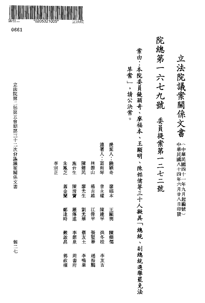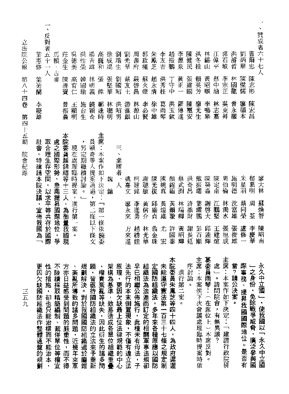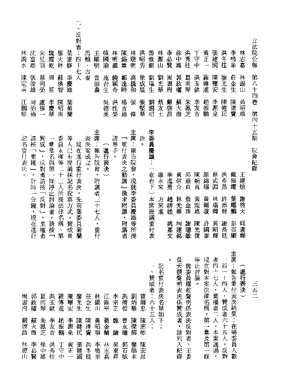 饒穎奇委員等30人提案第1章章名、及第1條討論及表決經過