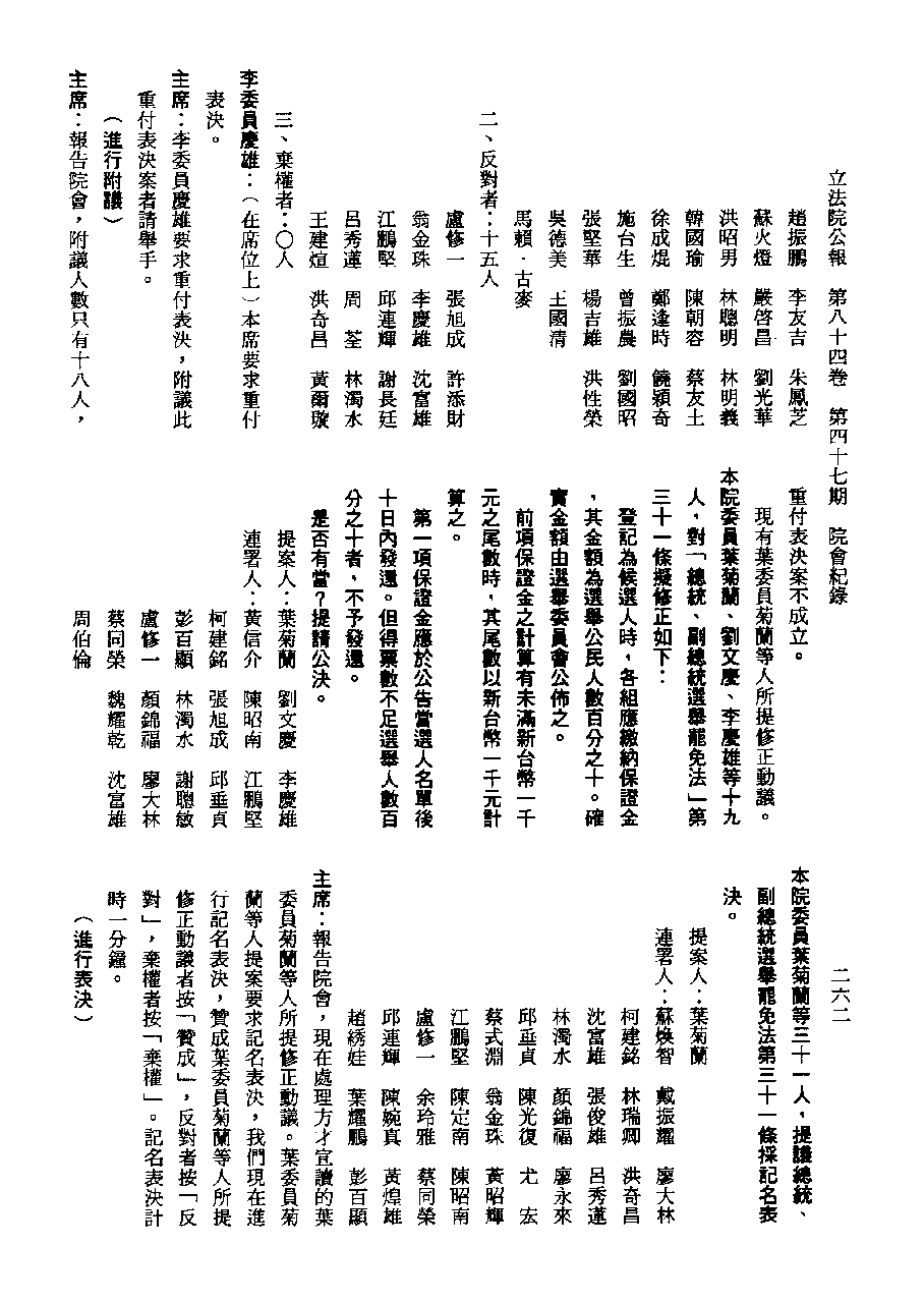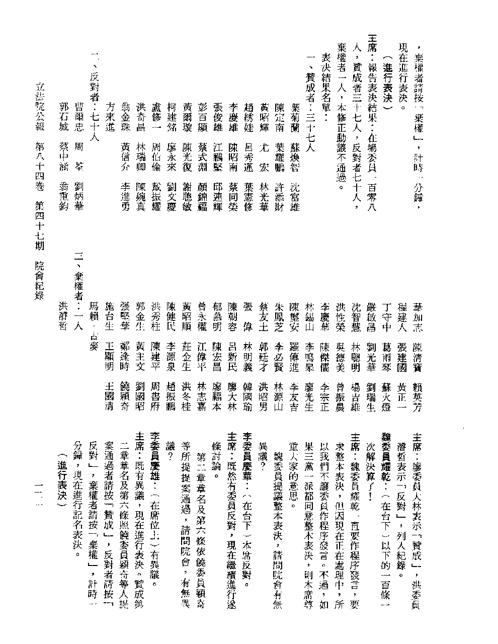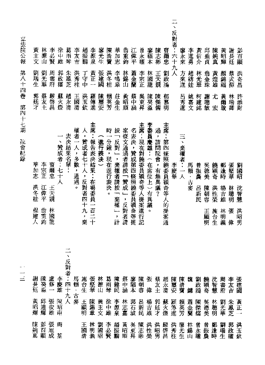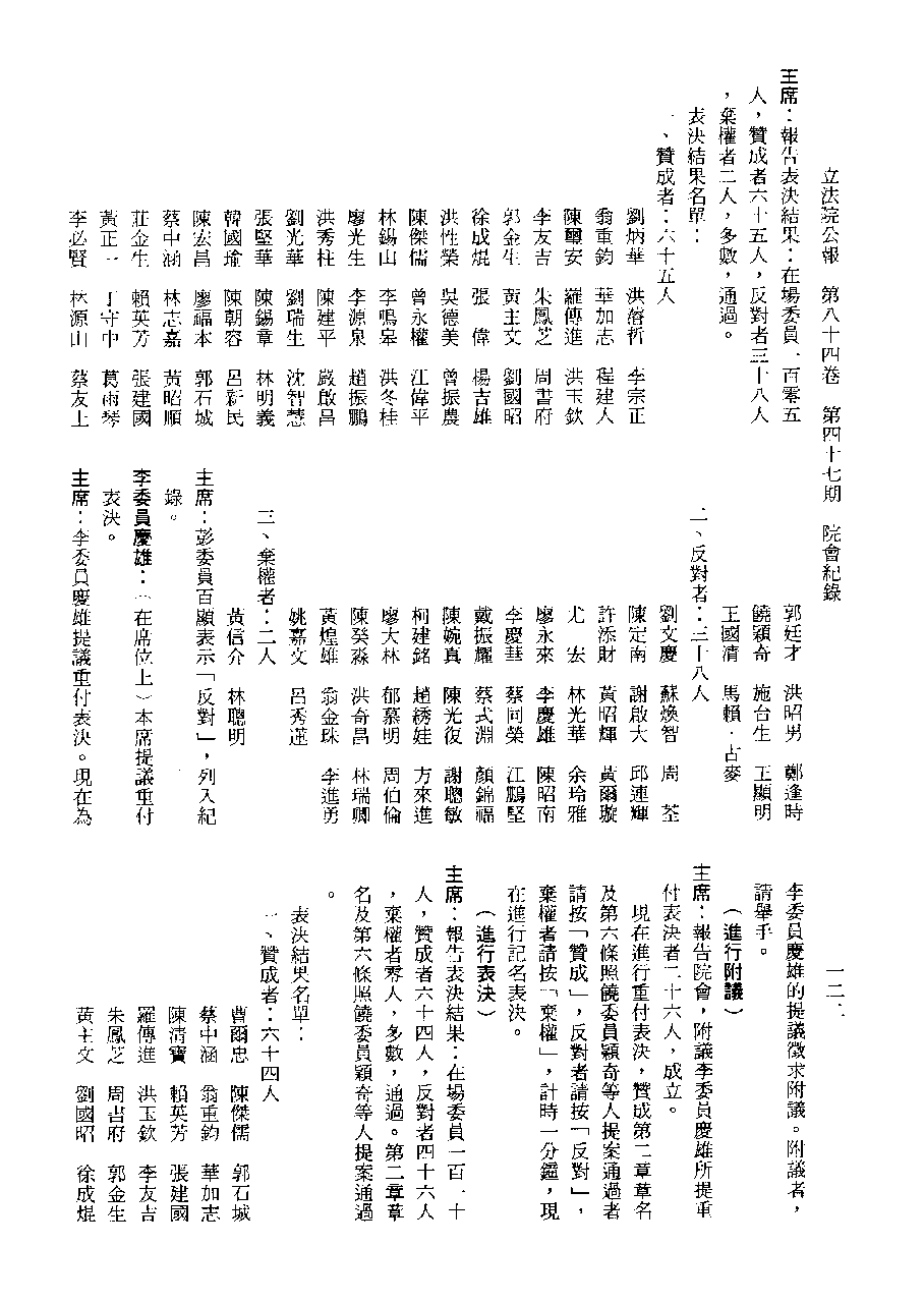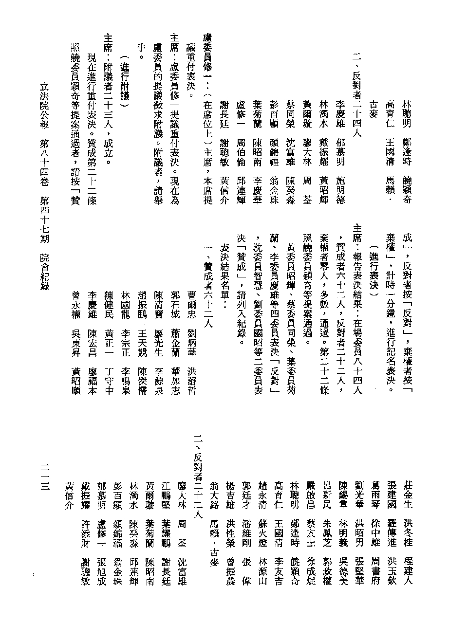 饒穎奇委員等30人提案第2條以下討論及表決經過