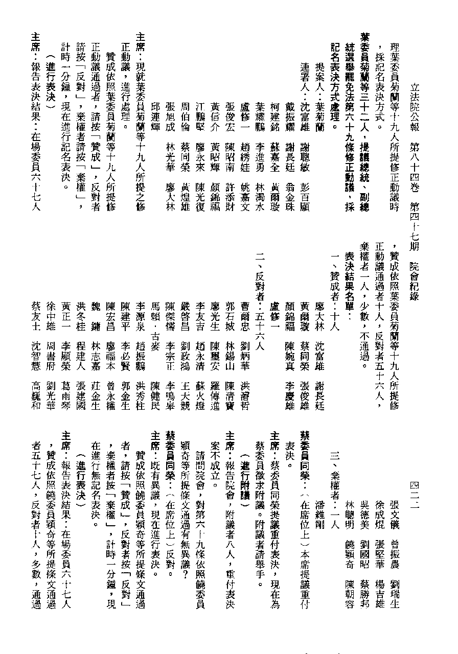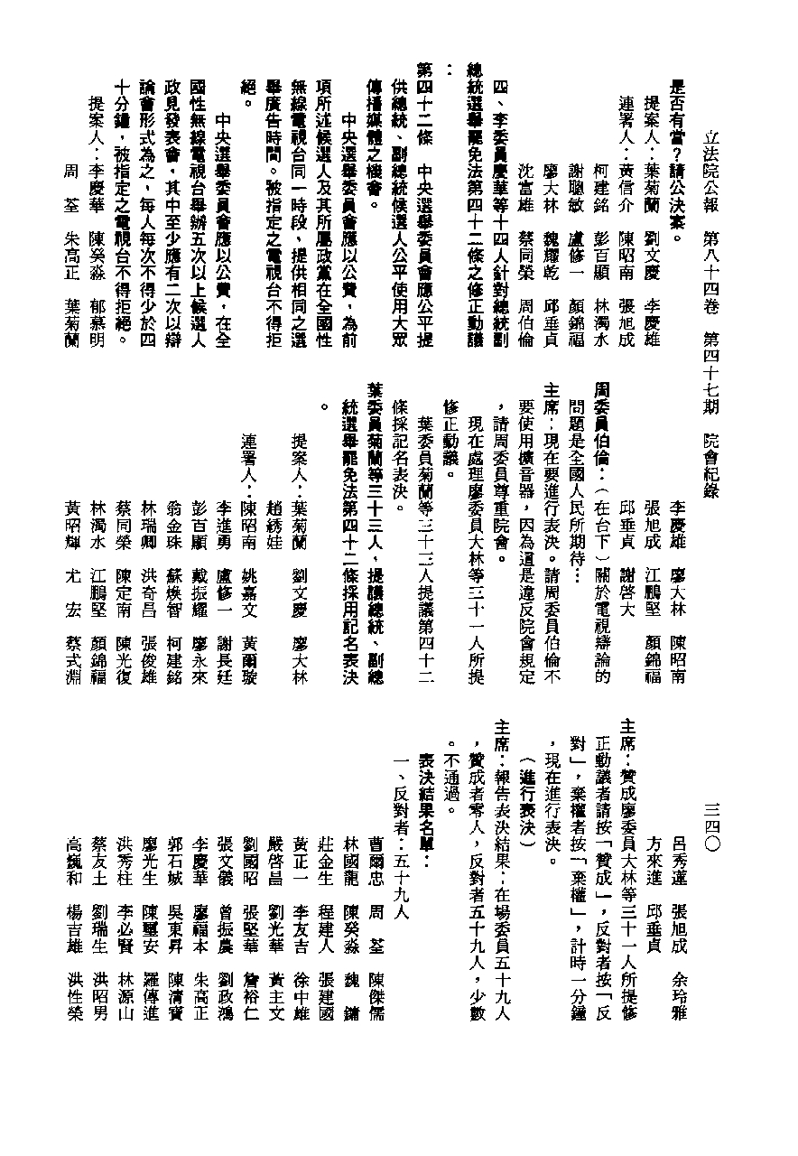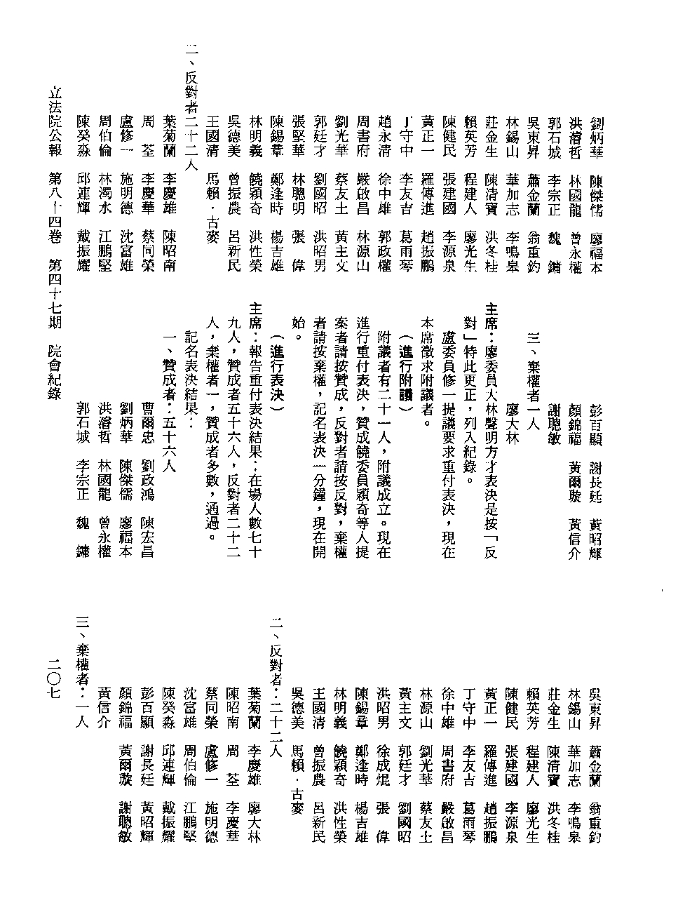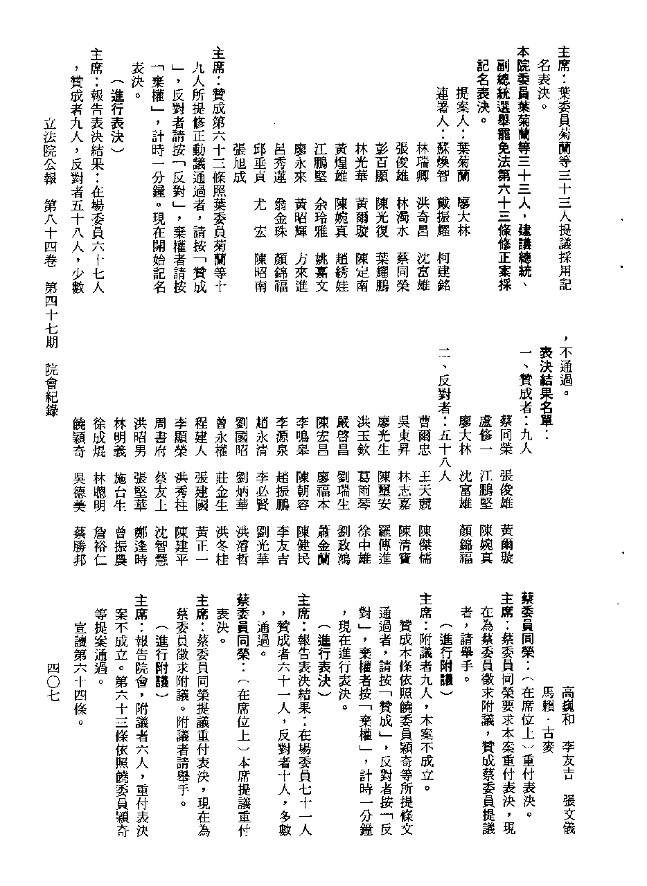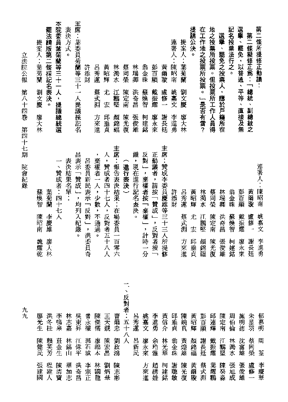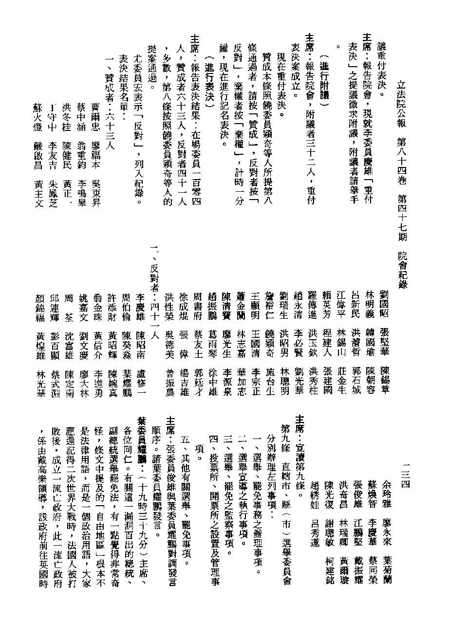 饒穎奇委員等30人提案第2條以下討論及表決經過