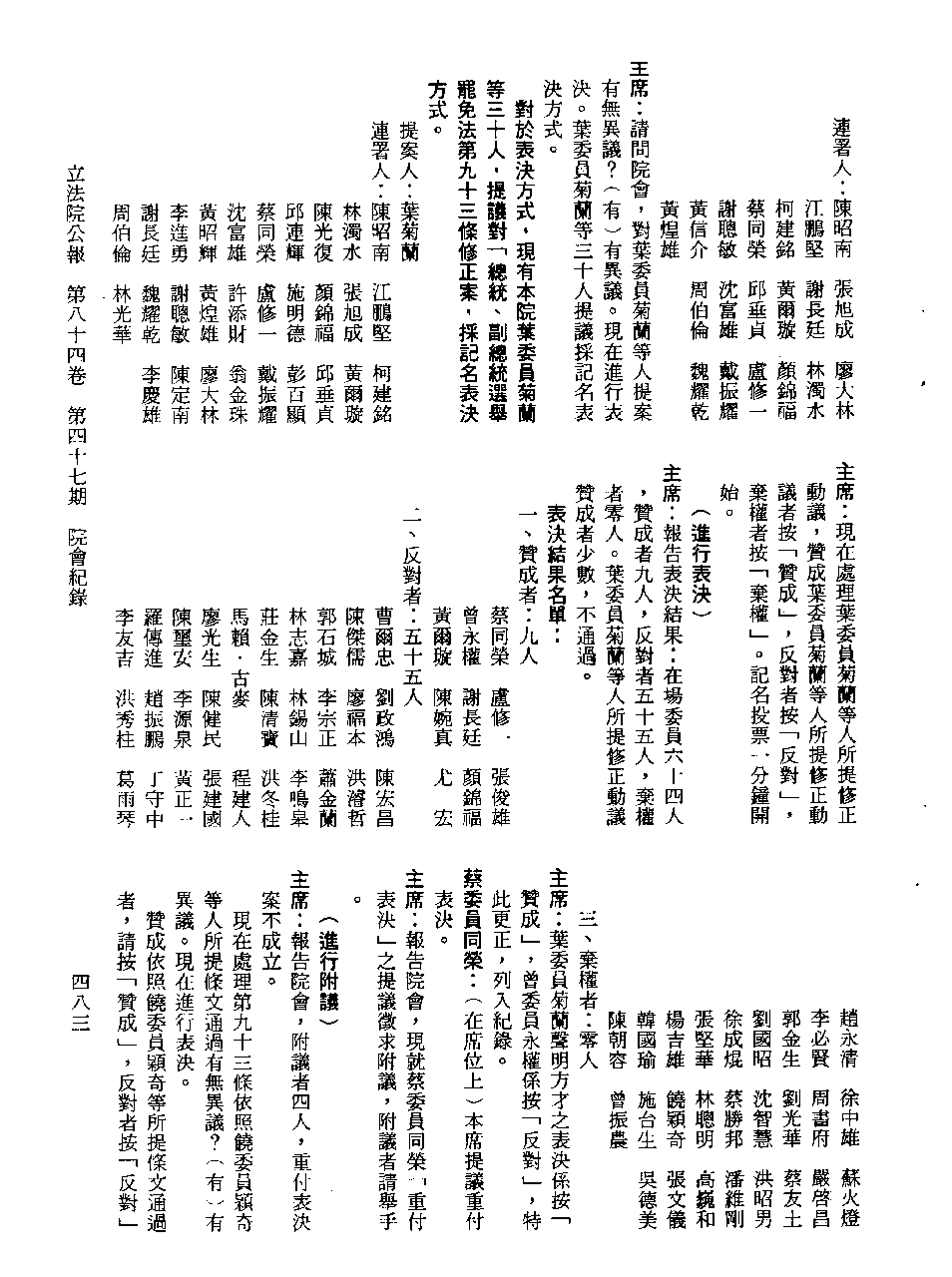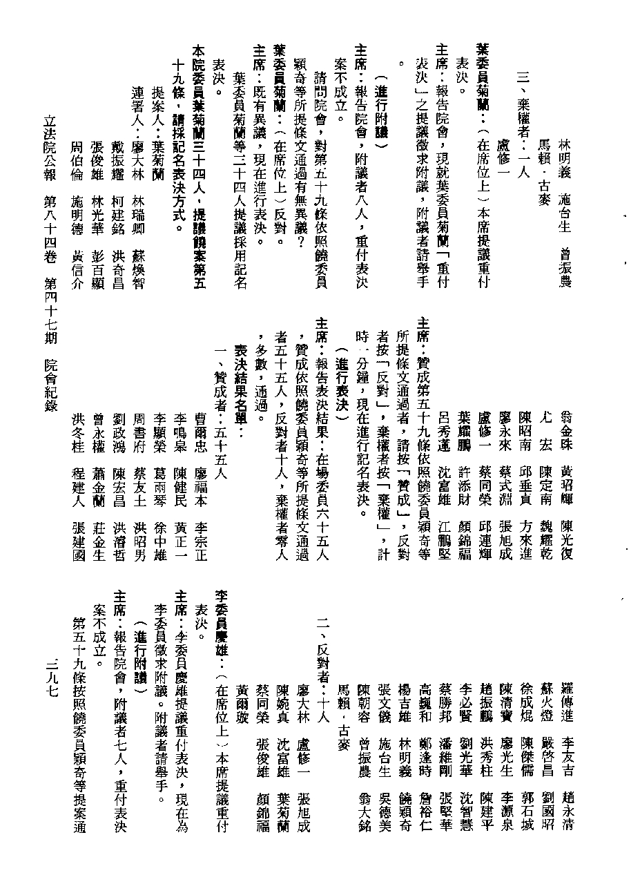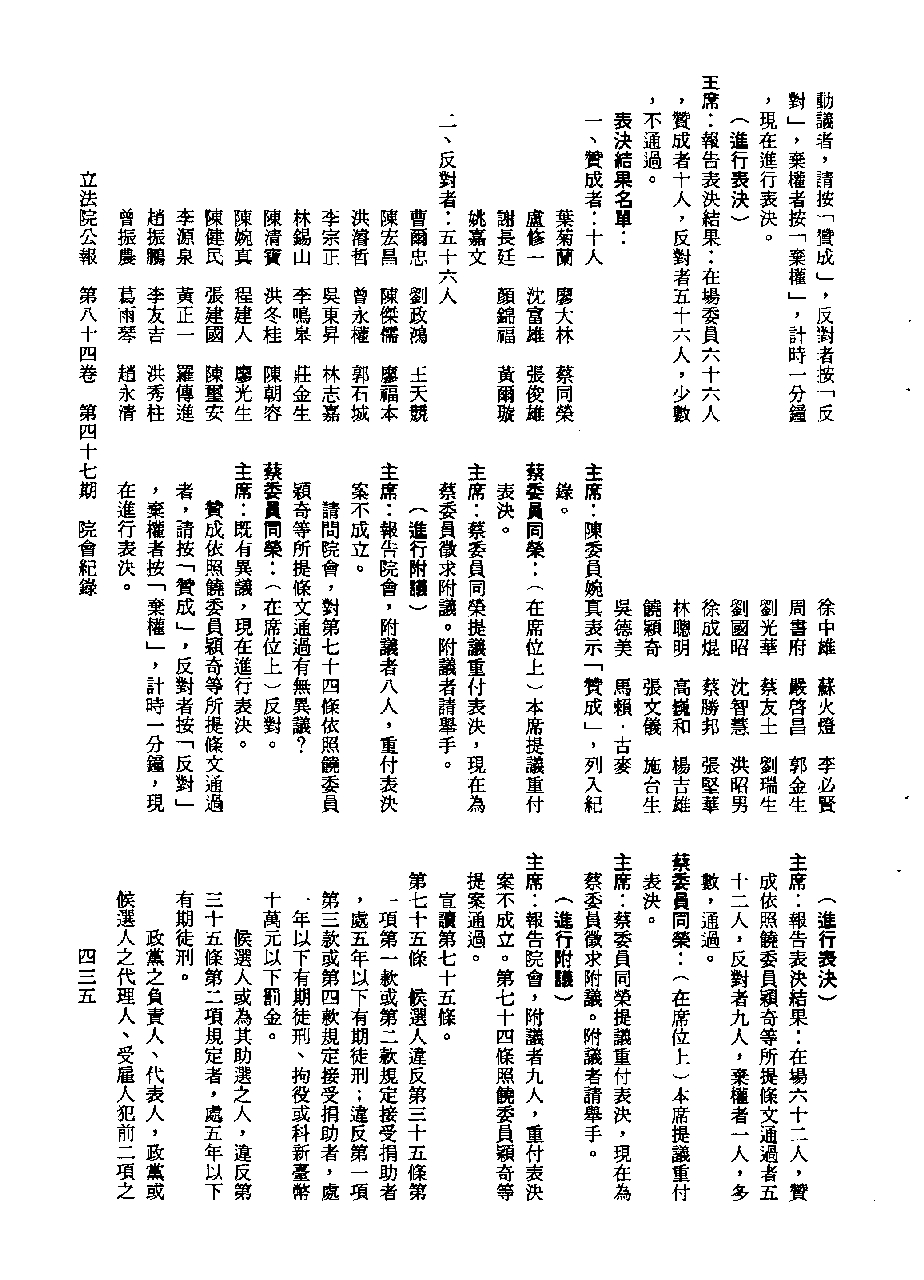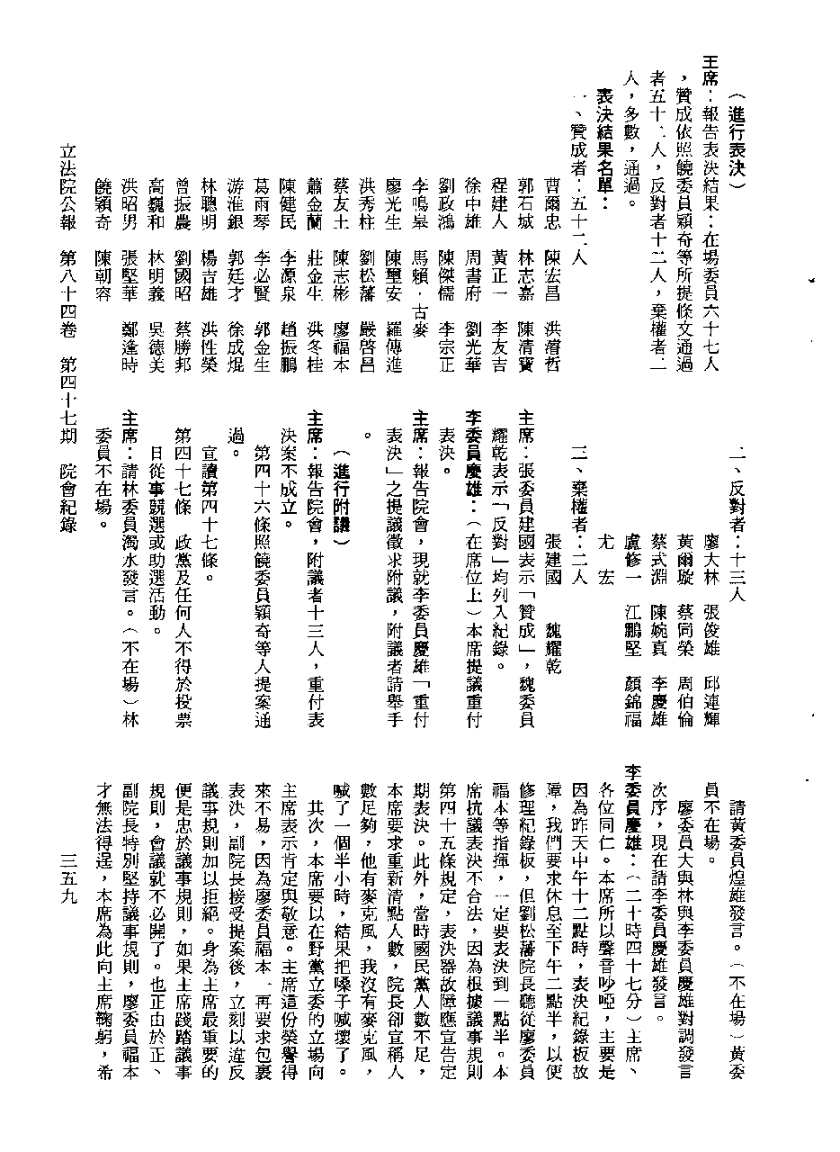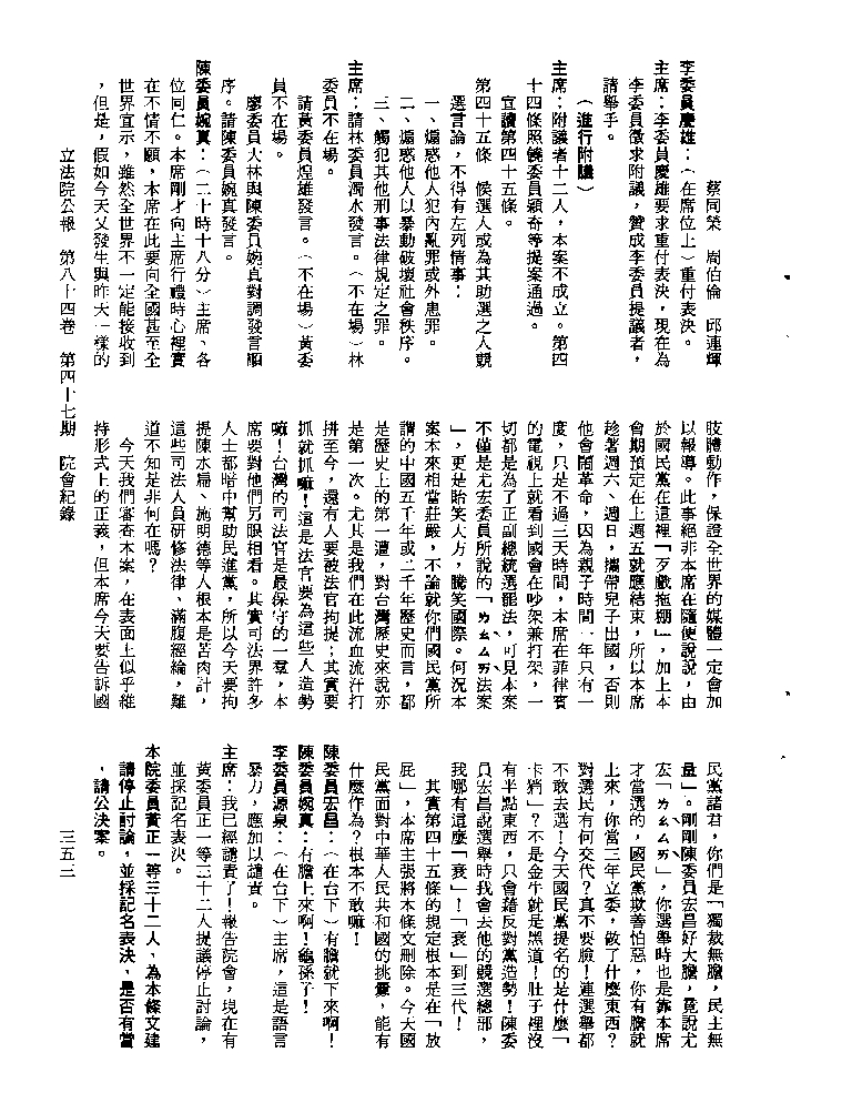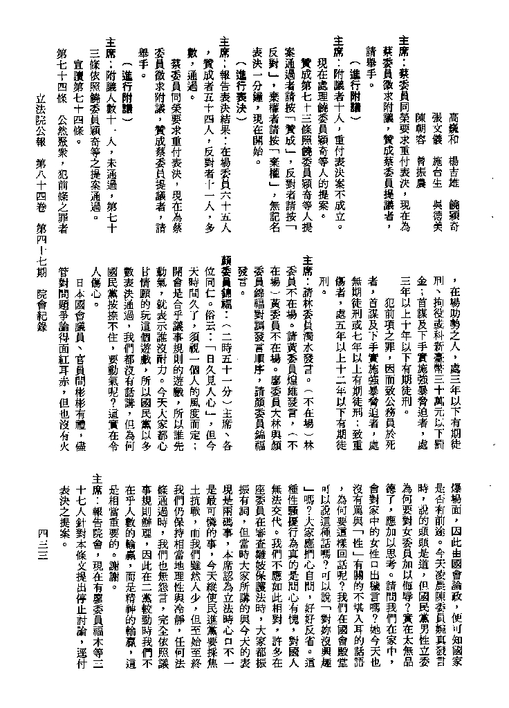 饒穎奇委員等30人提案第2條以下討論及表決經過