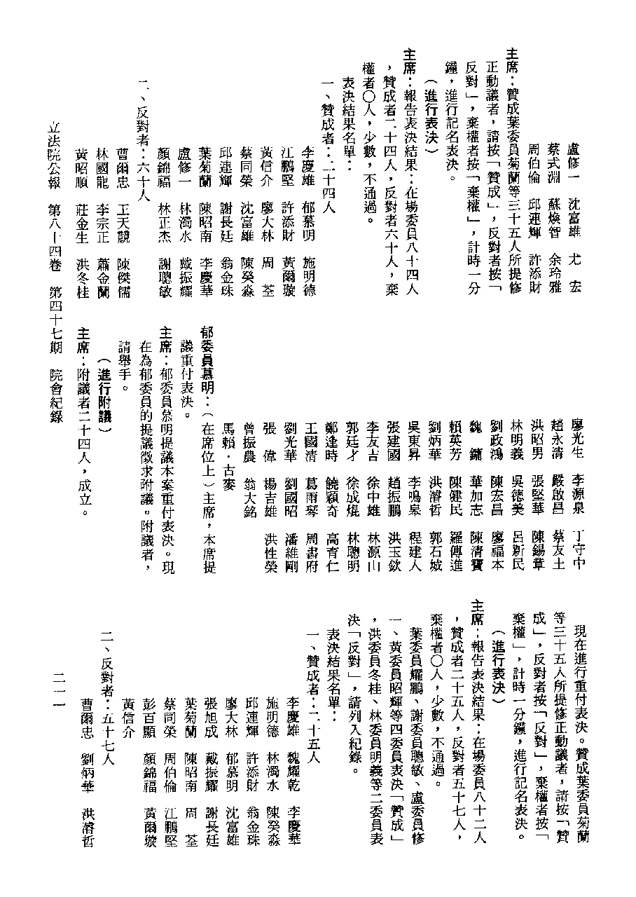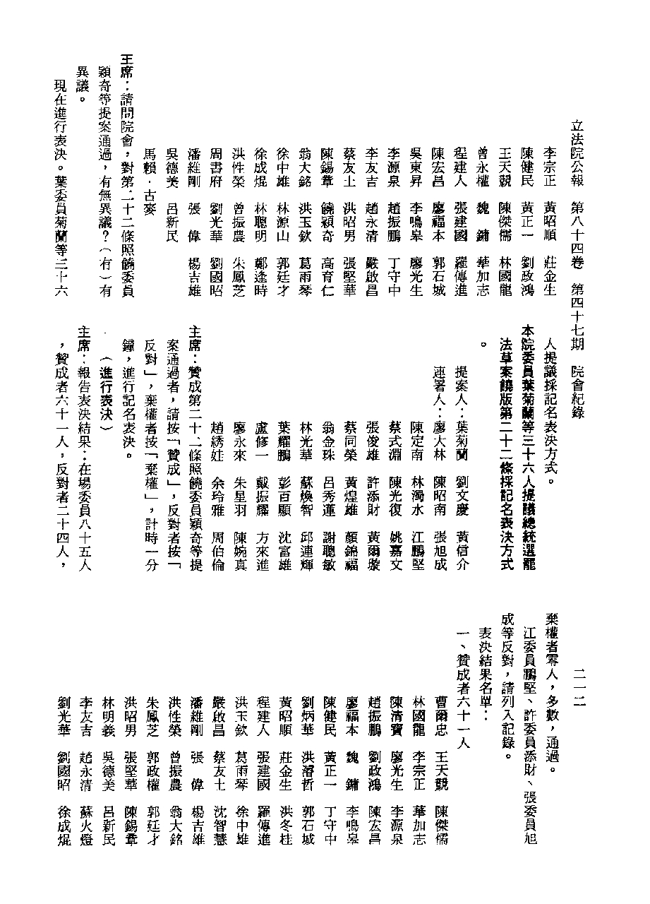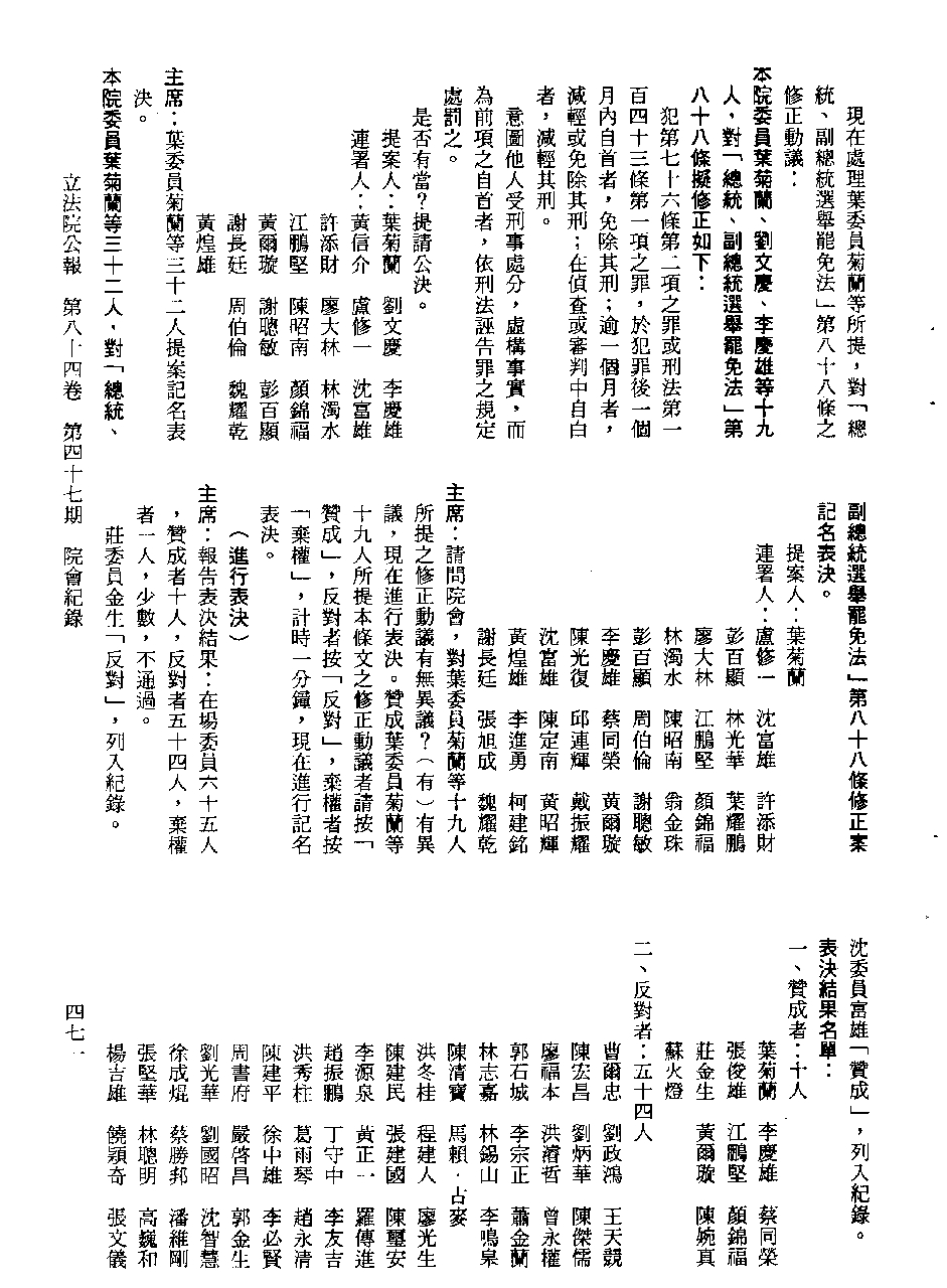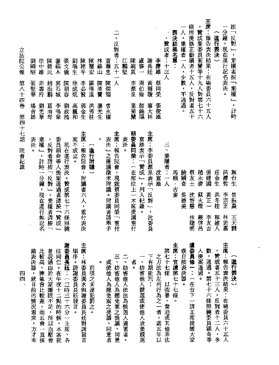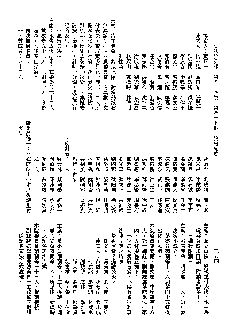 饒穎奇委員等30人提案第2條以下討論及表決經過