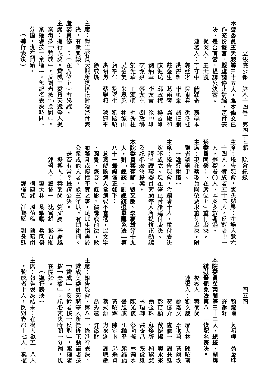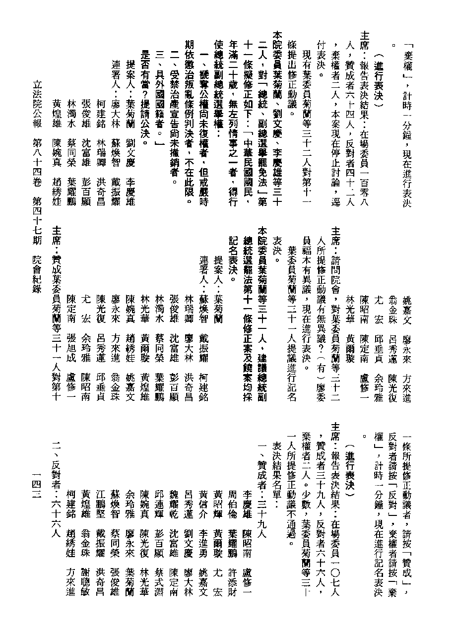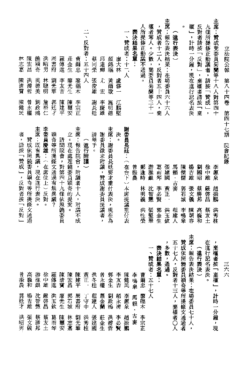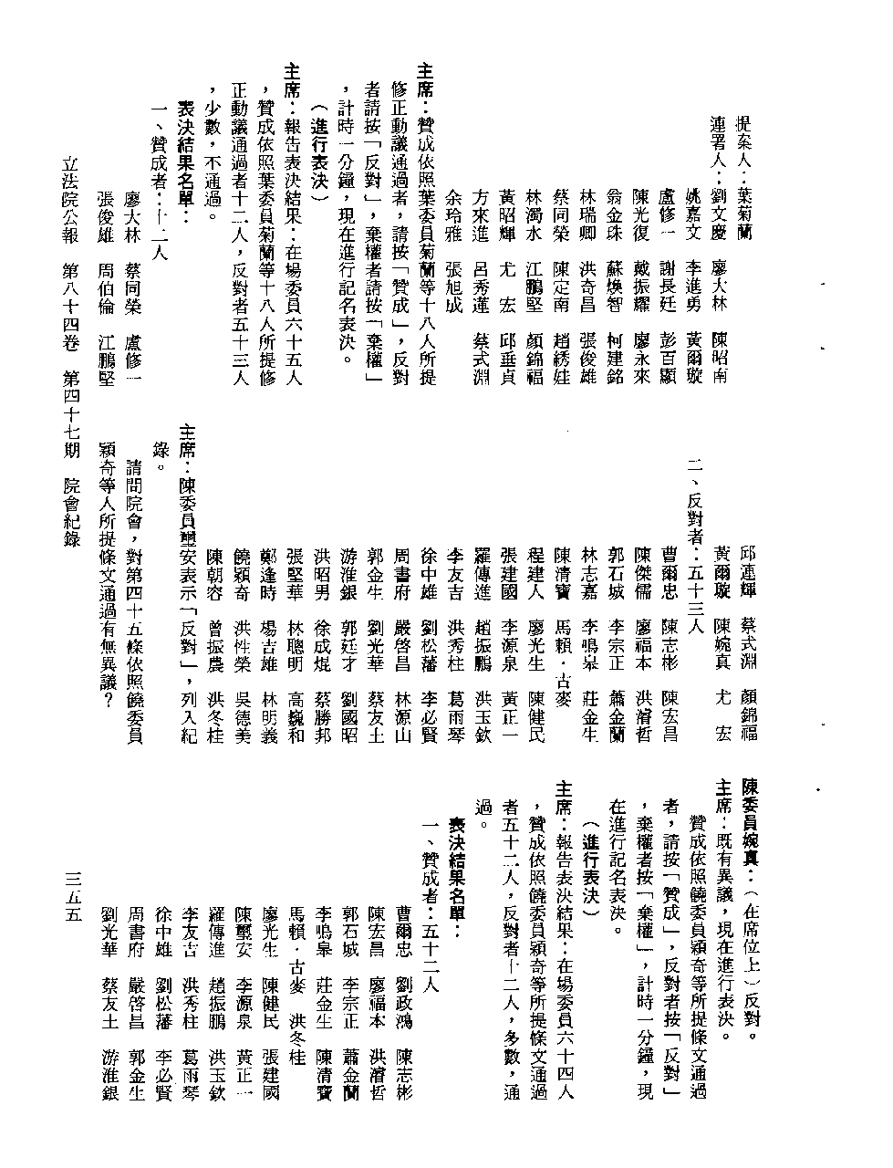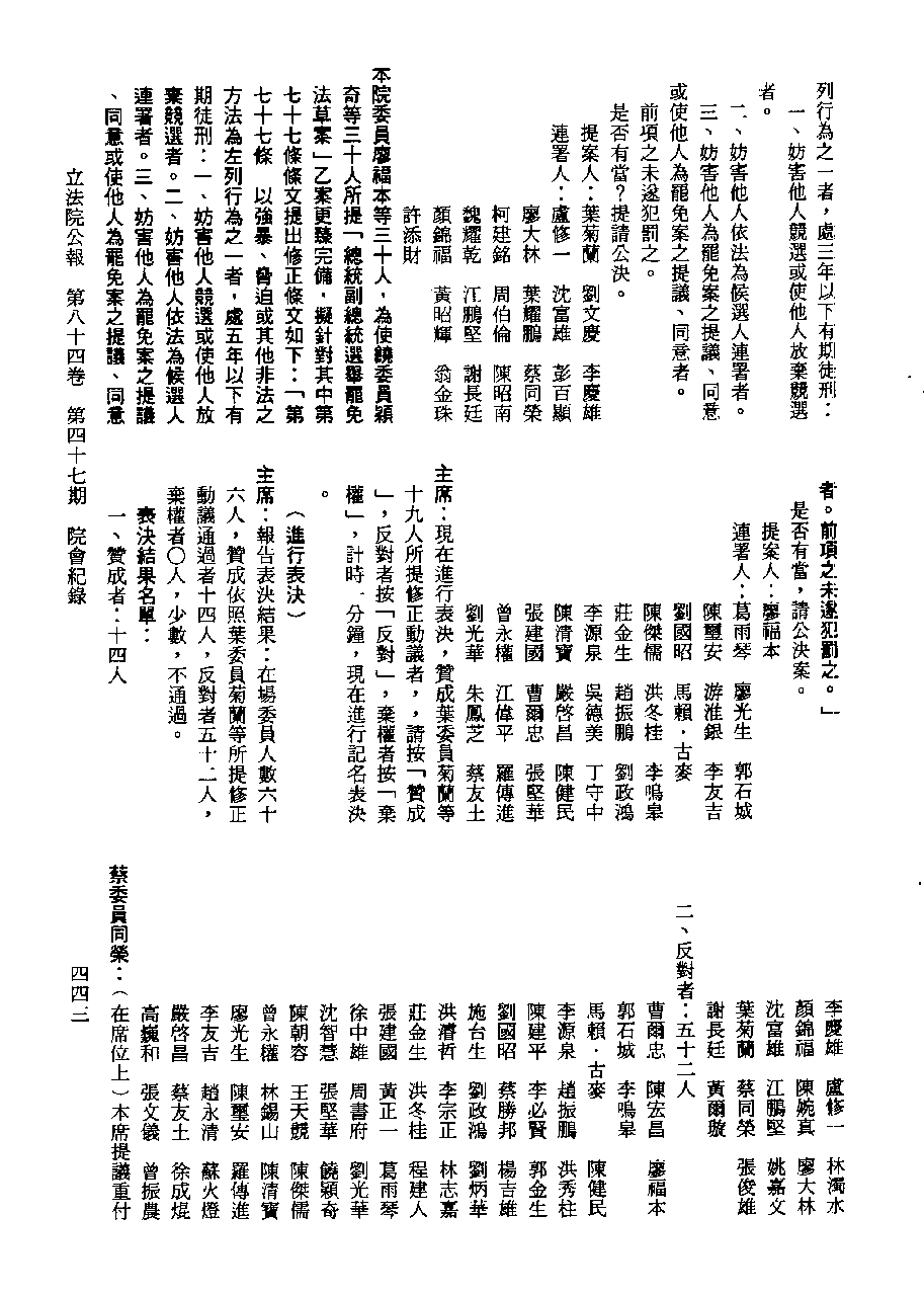 饒穎奇委員等30人提案第2條以下討論及表決經過