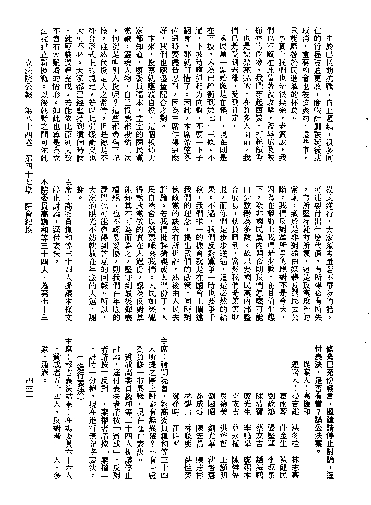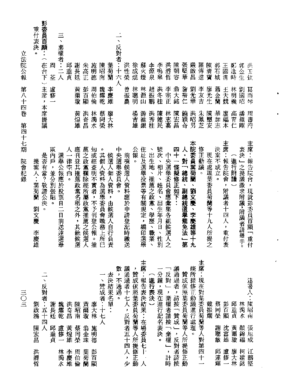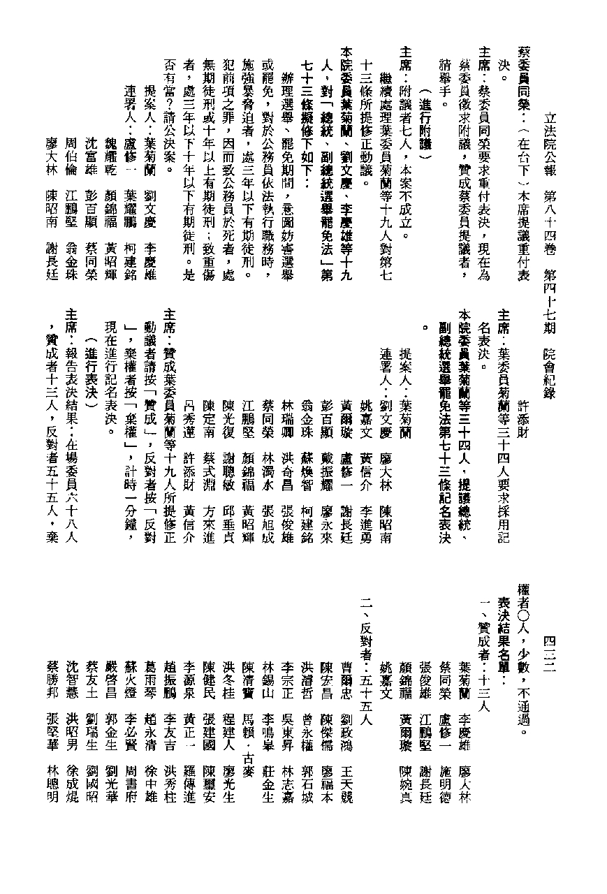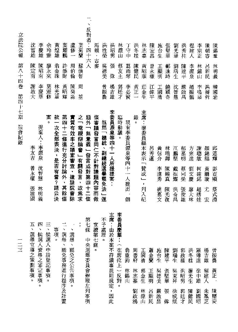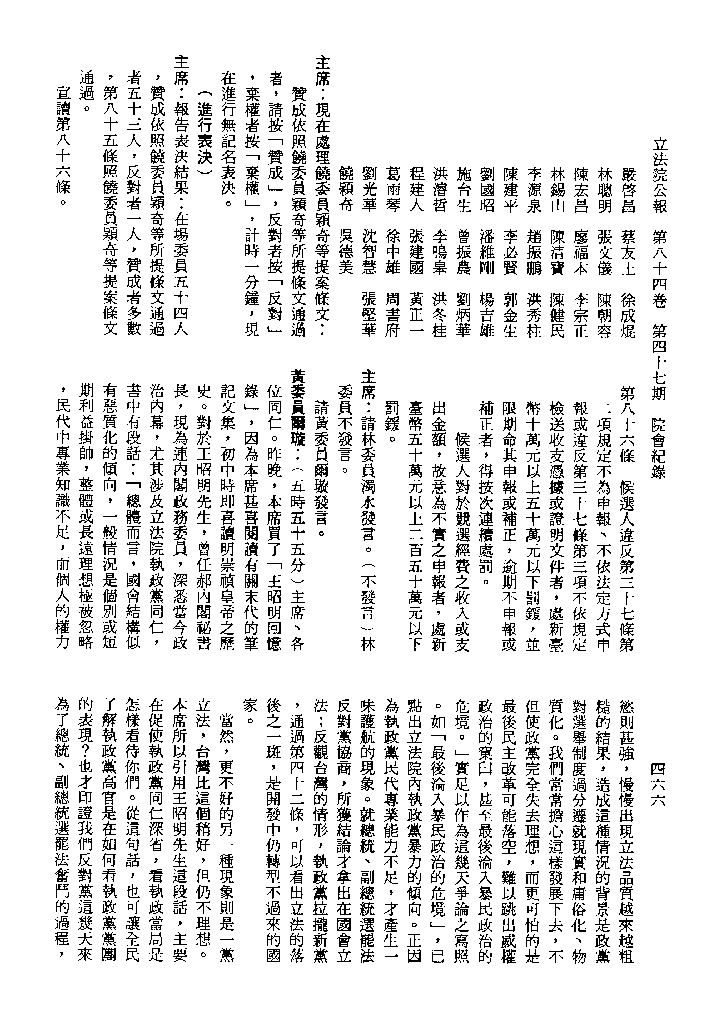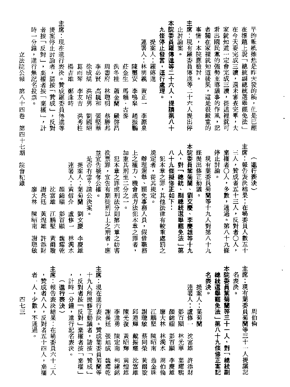 饒穎奇委員等30人提案第2條以下討論及表決經過