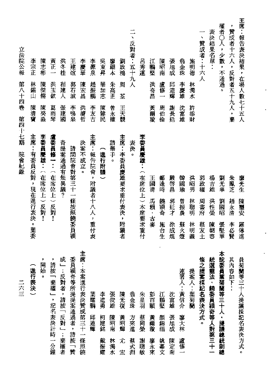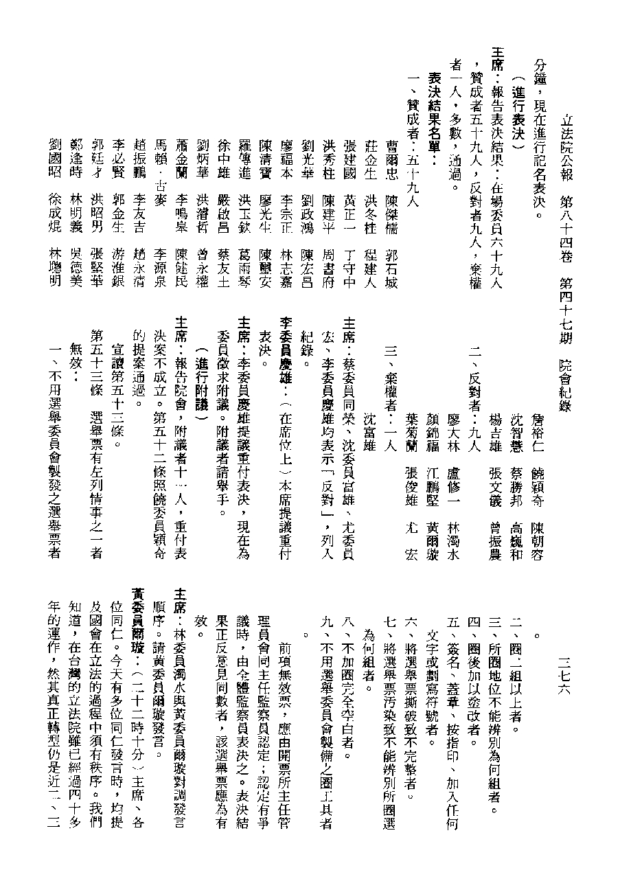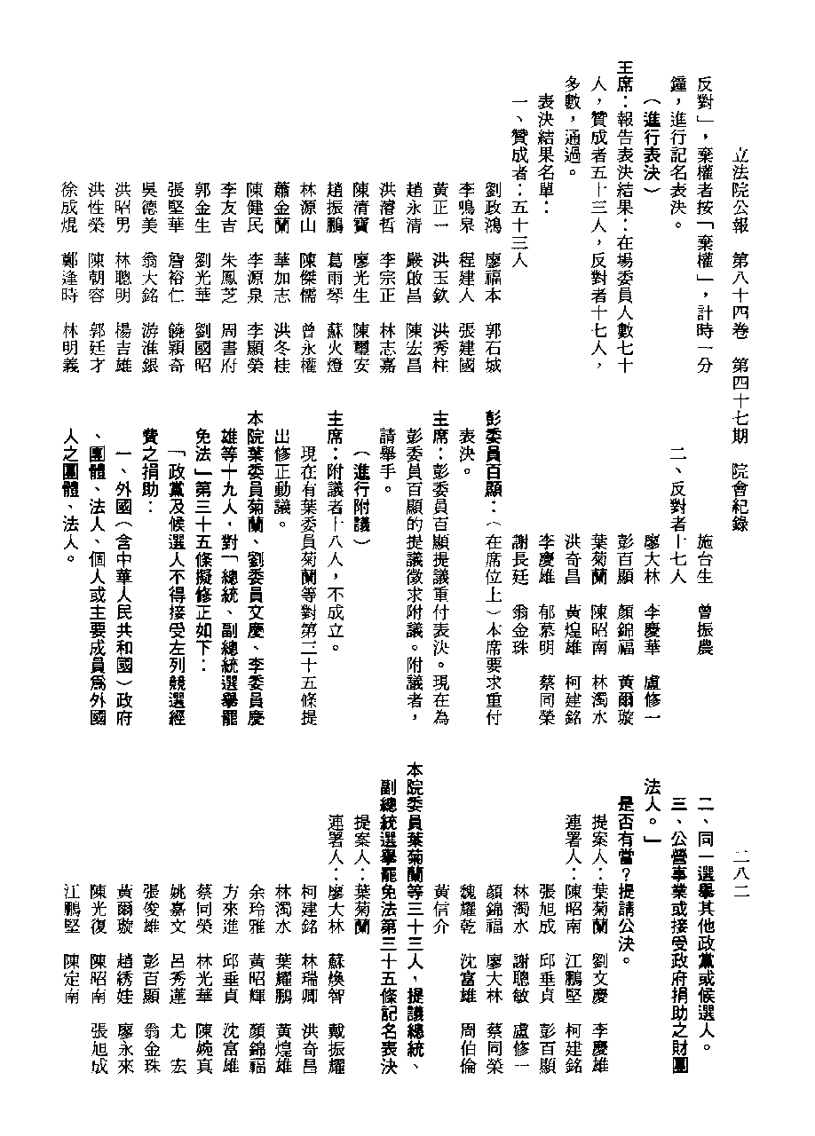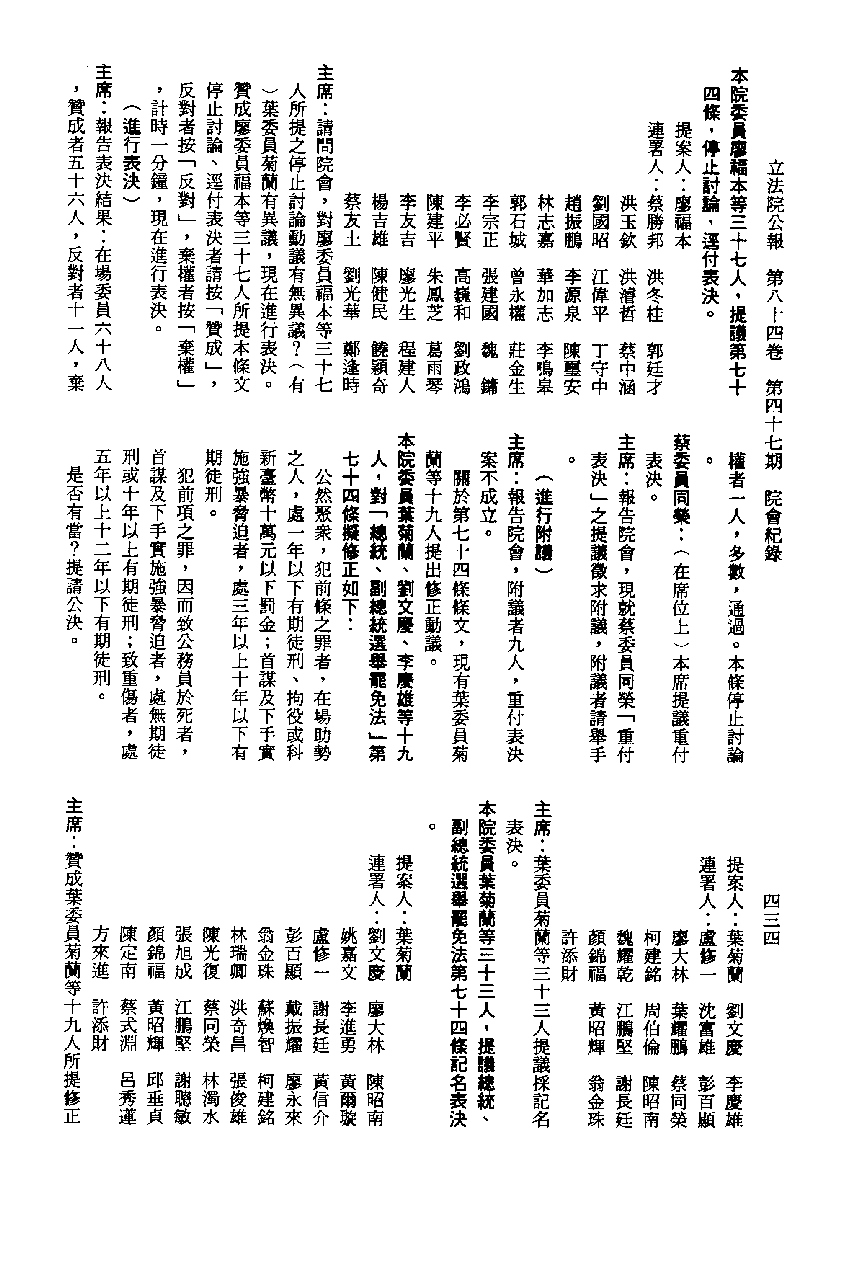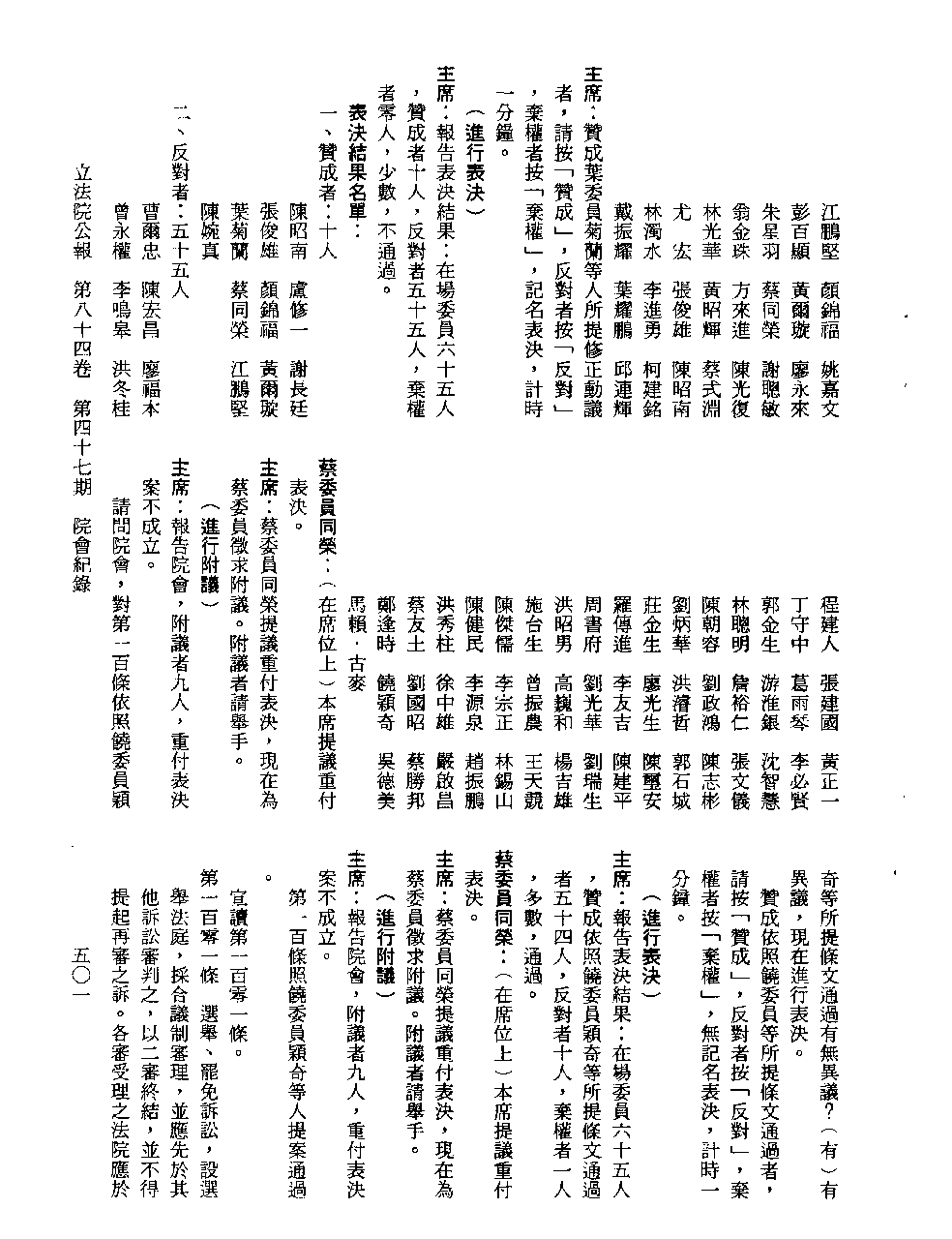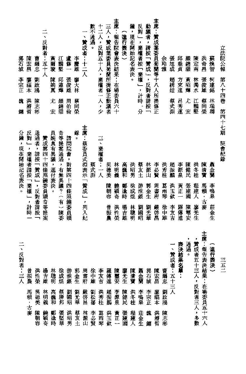 饒穎奇委員等30人提案第2條以下討論及表決經過