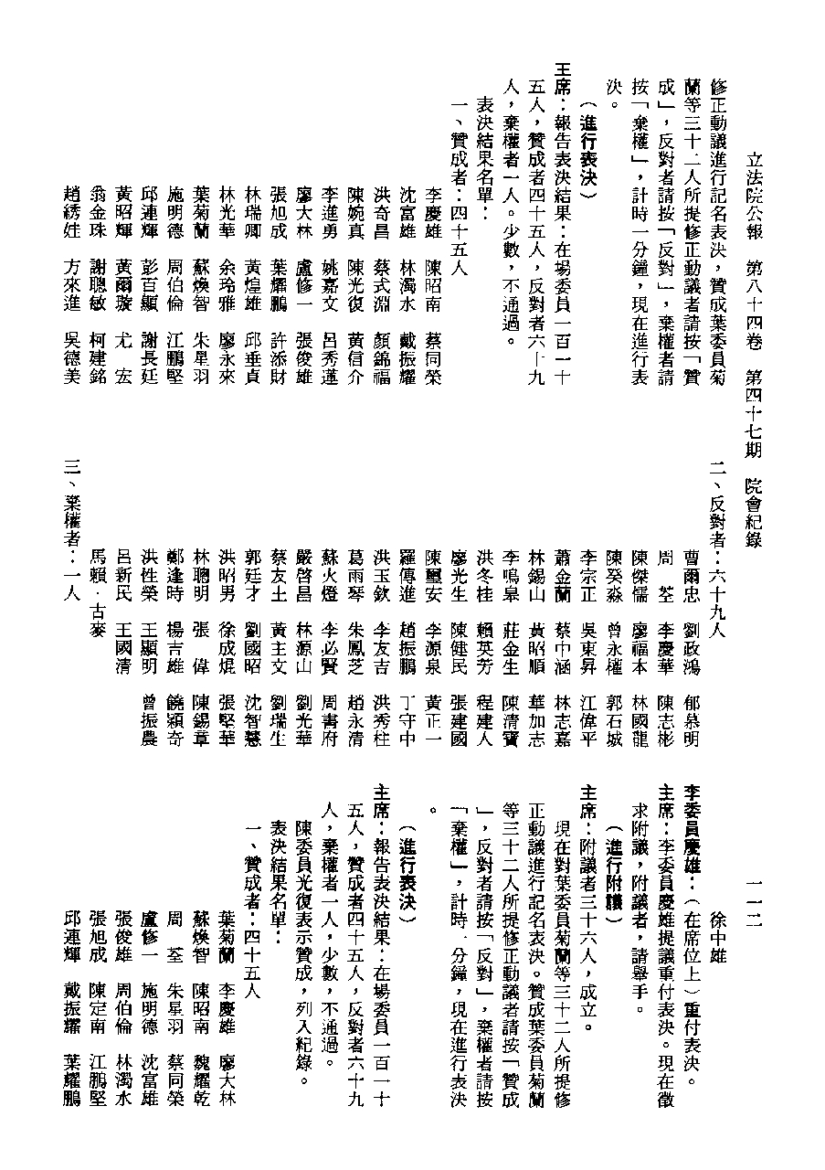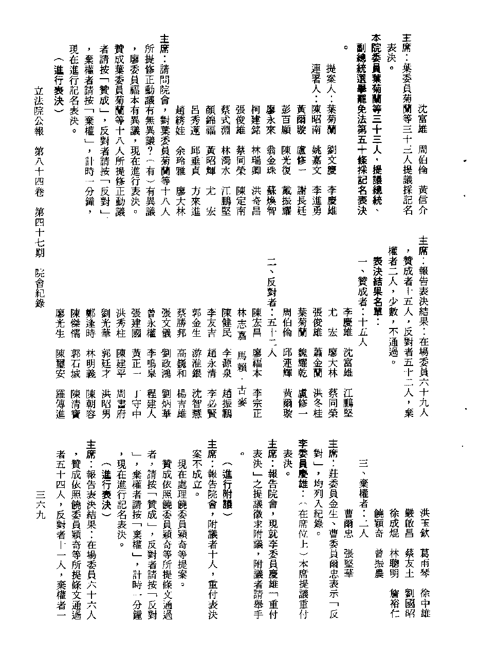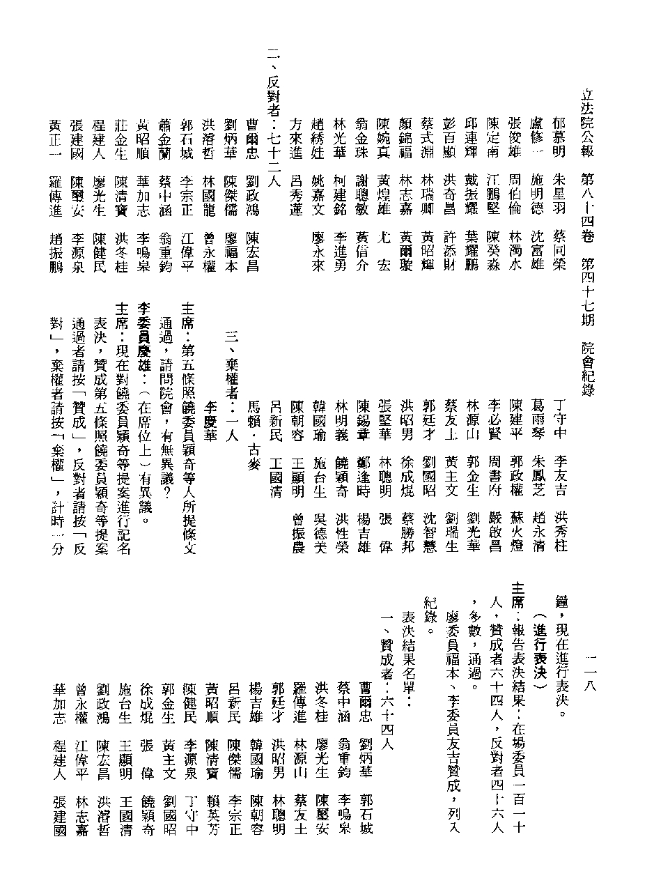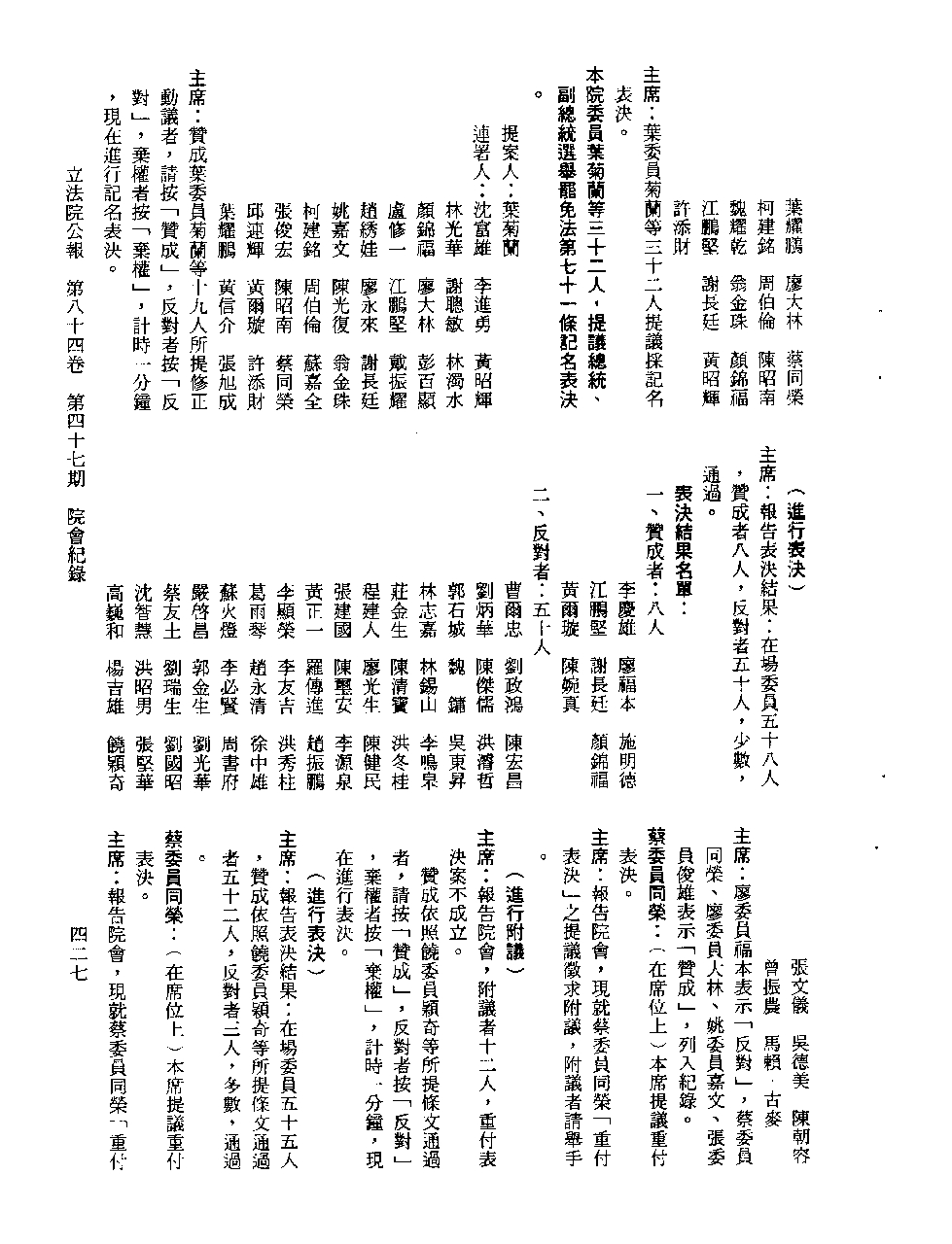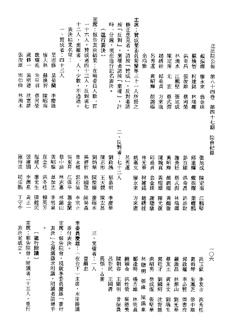 饒穎奇委員等30人提案第2條以下討論及表決經過