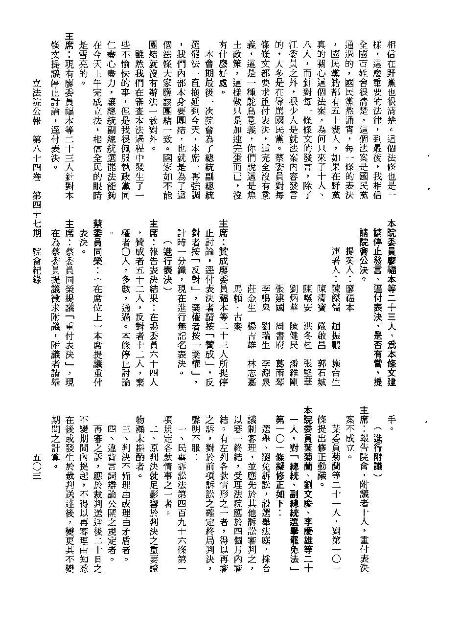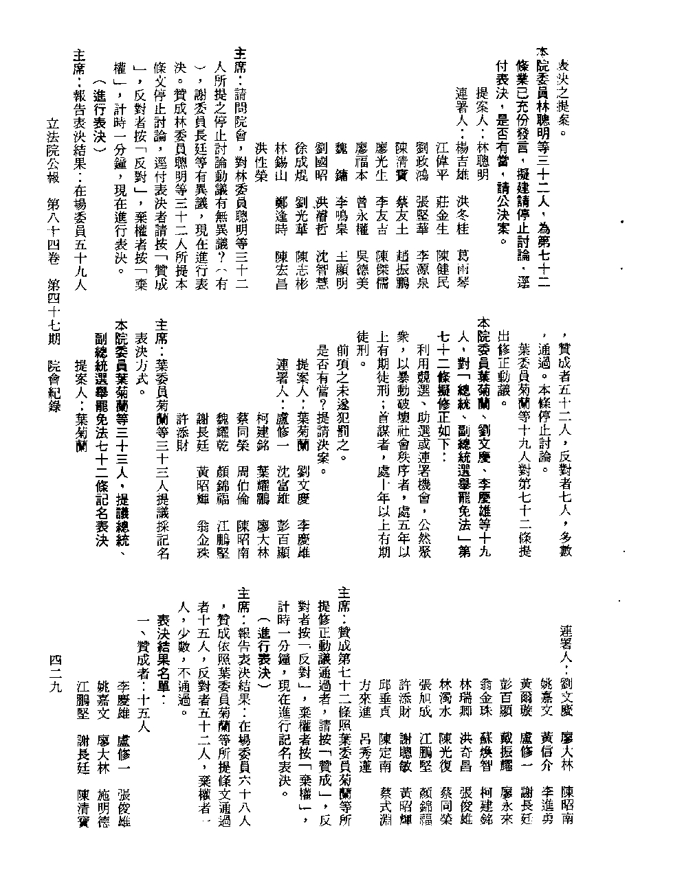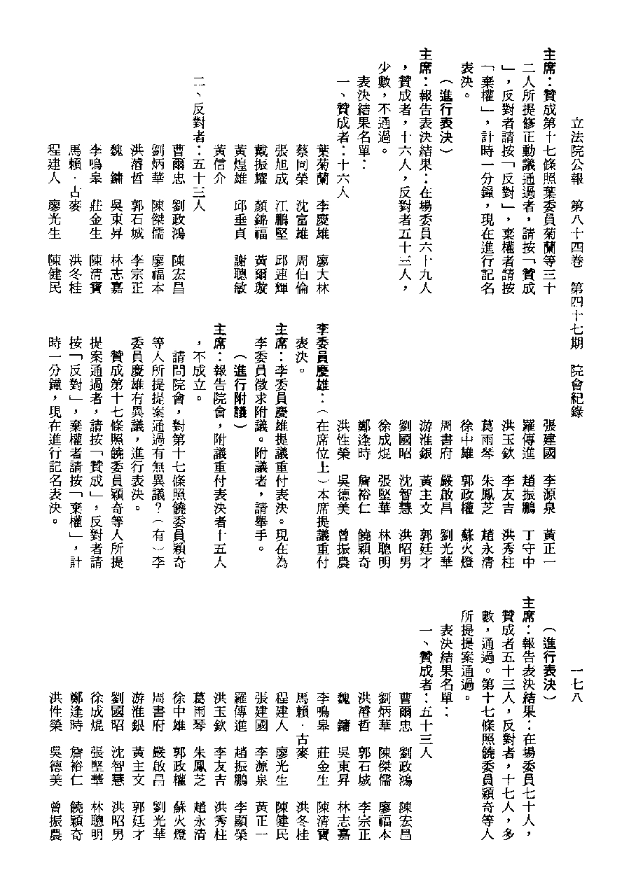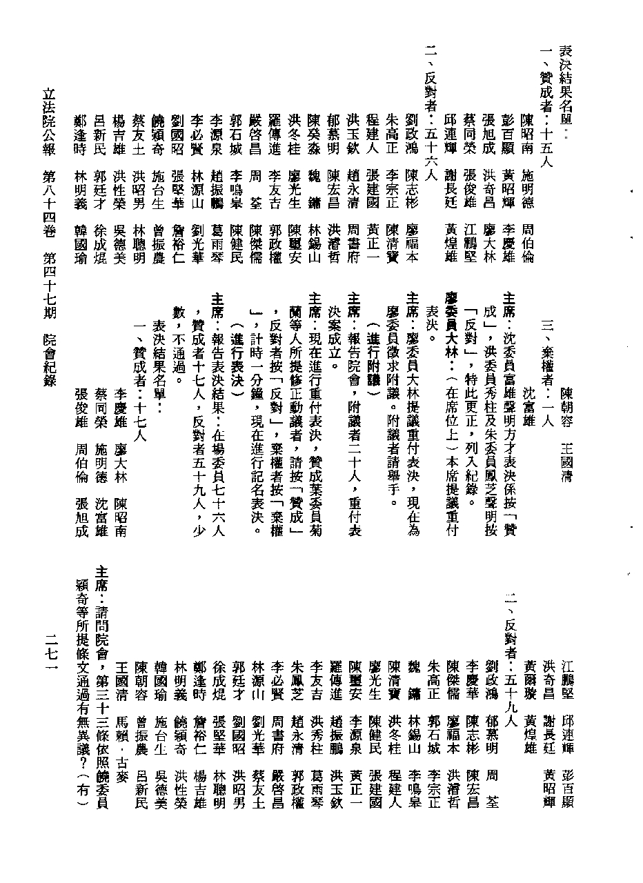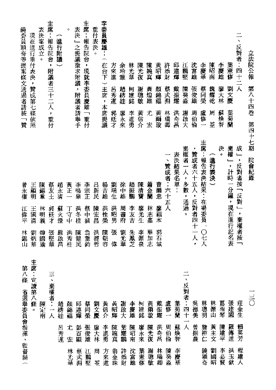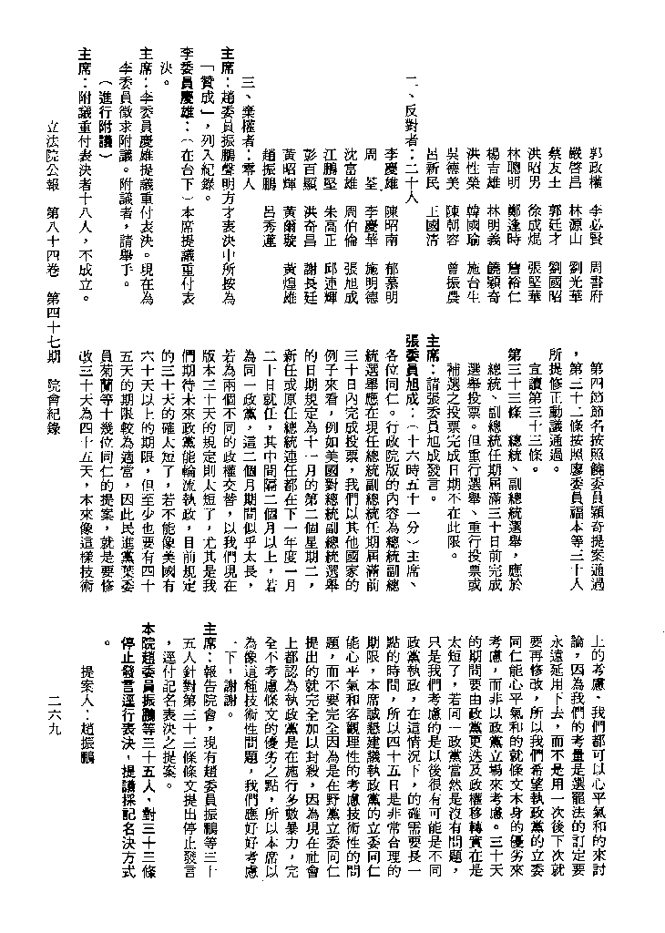 饒穎奇委員等30人提案第2條以下討論及表決經過