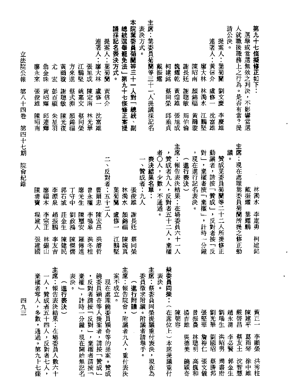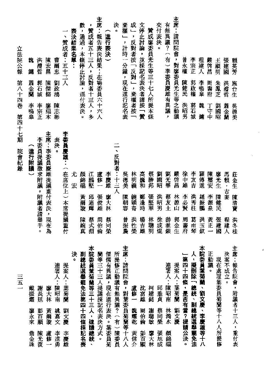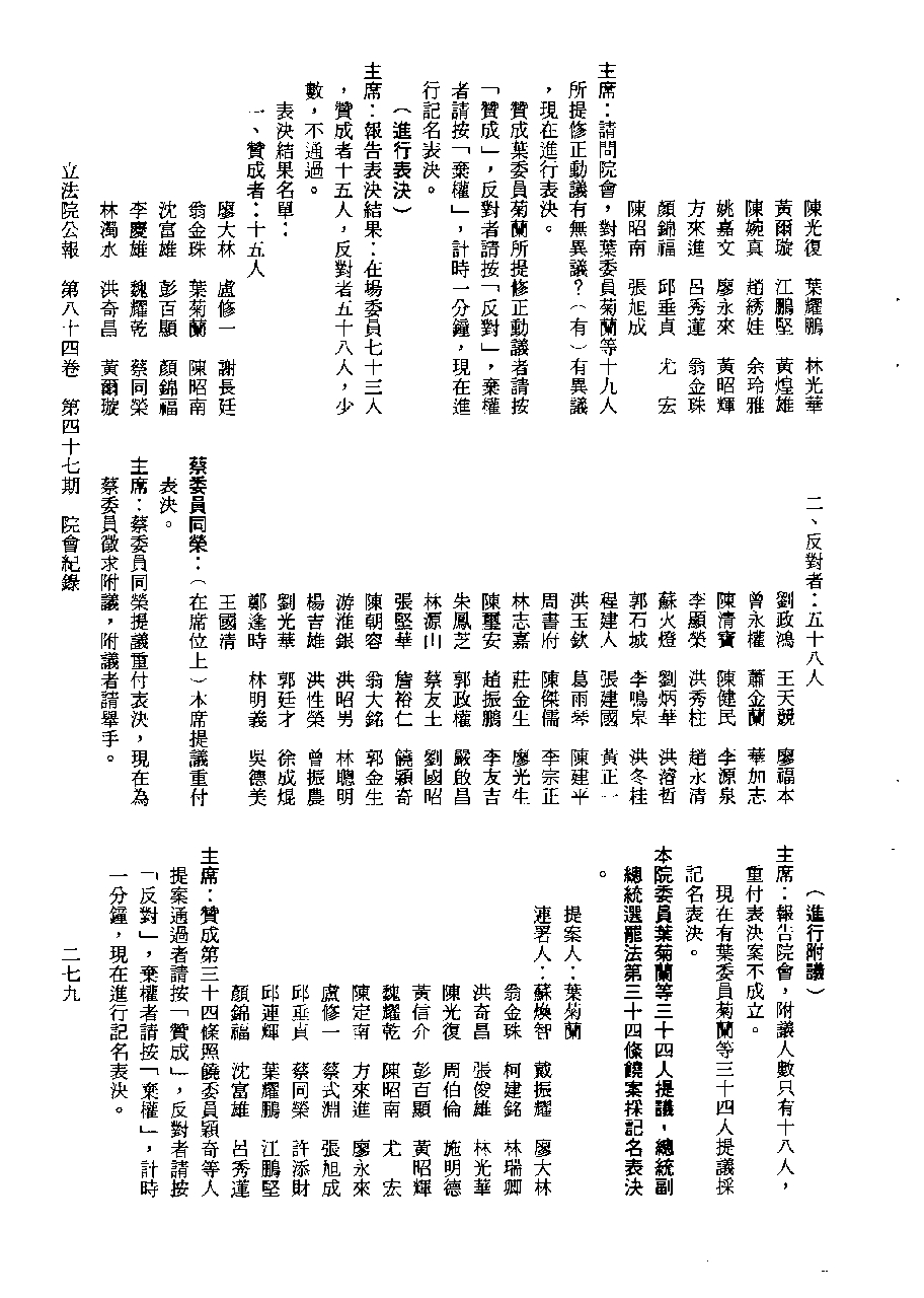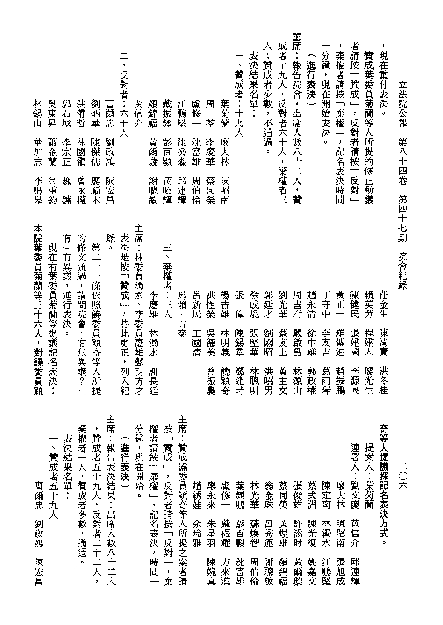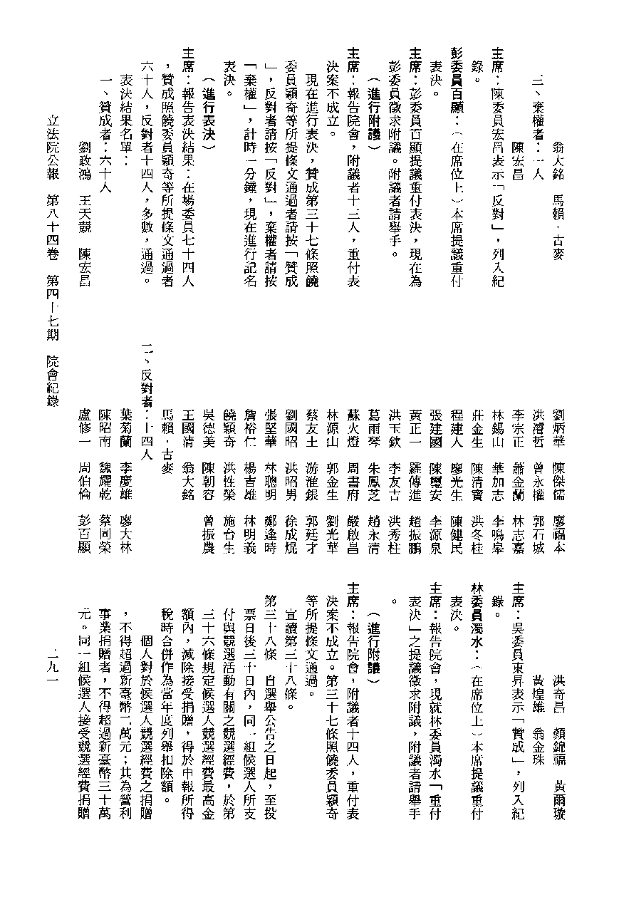 饒穎奇委員等30人提案第2條以下討論及表決經過