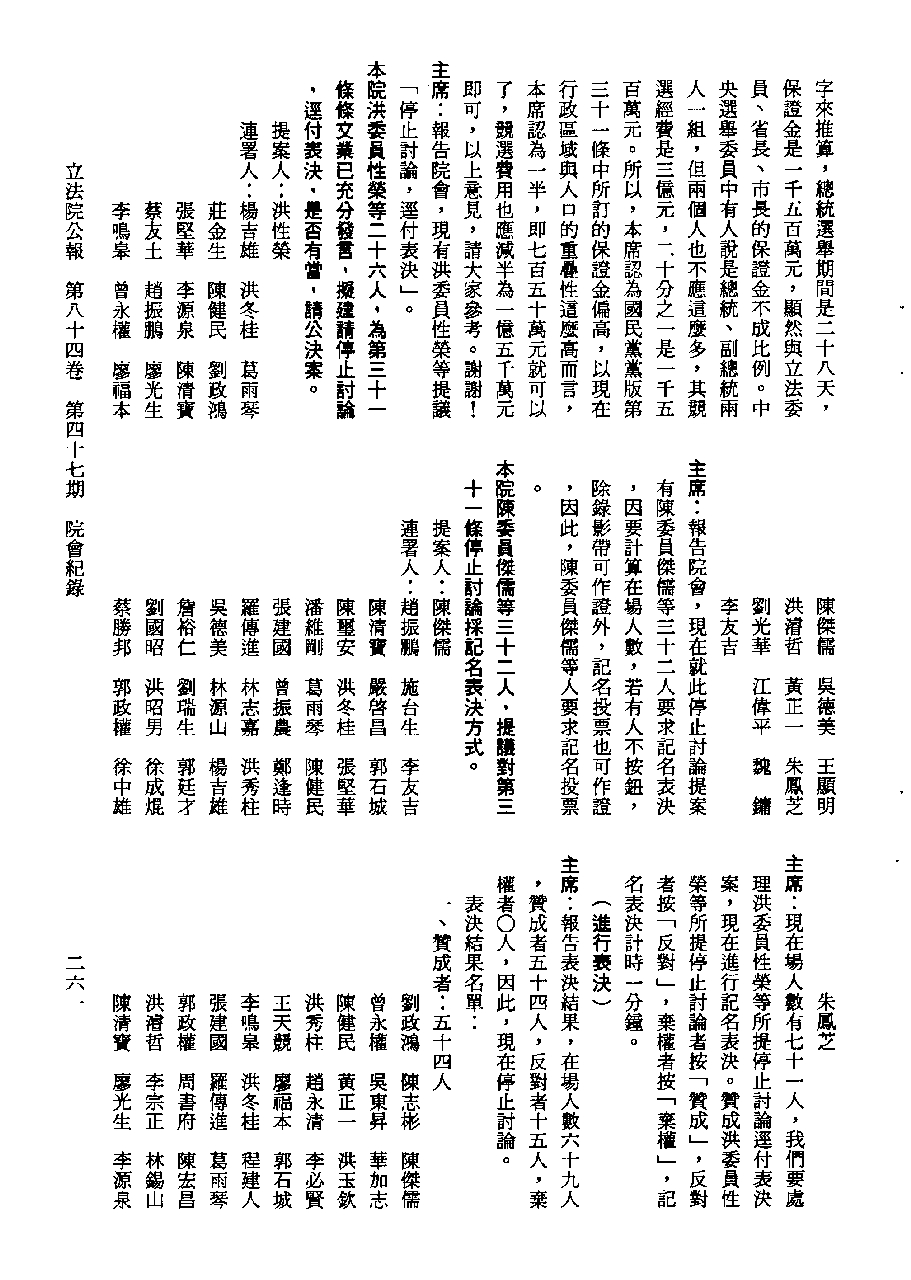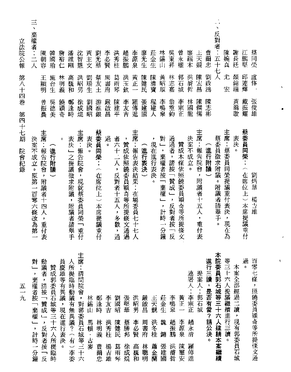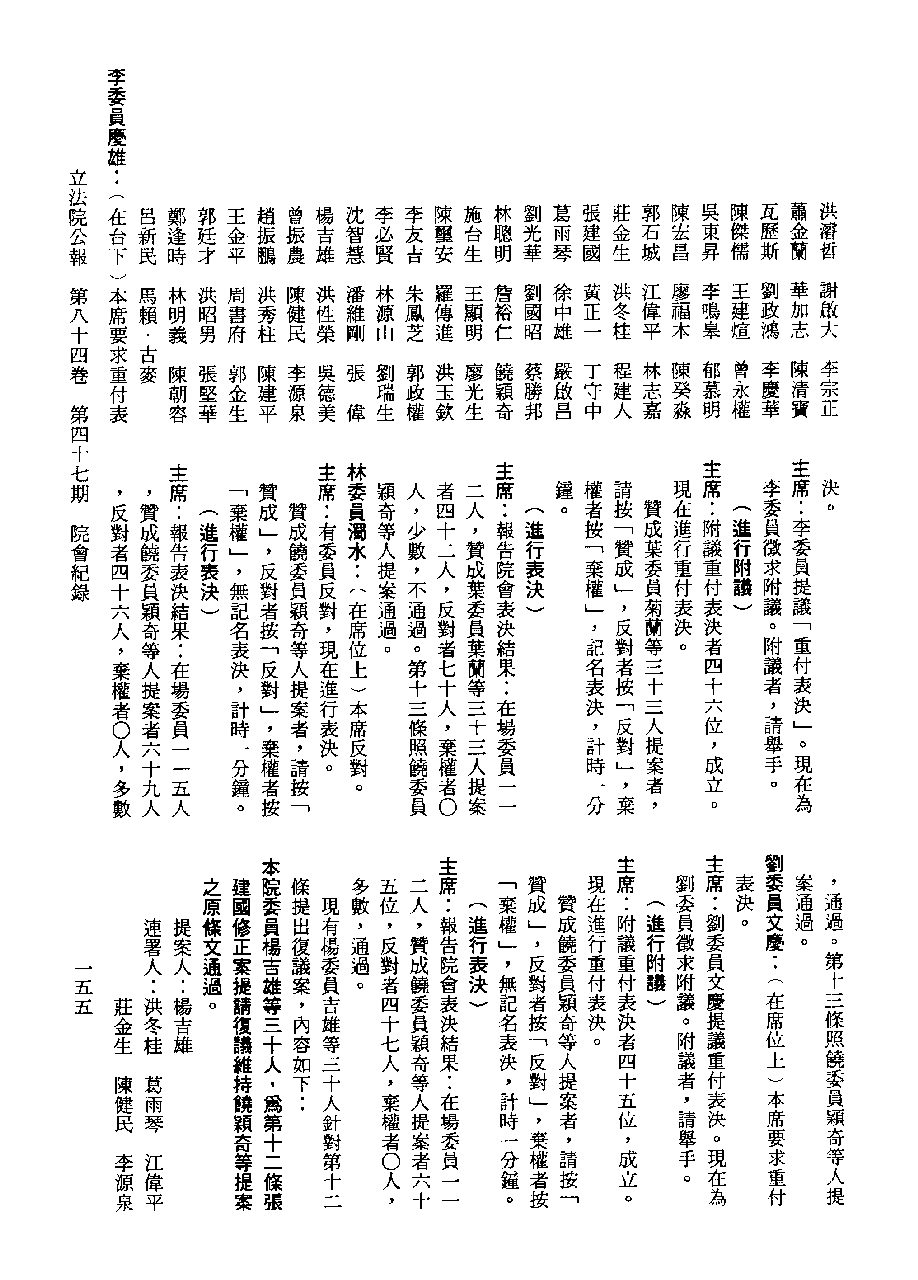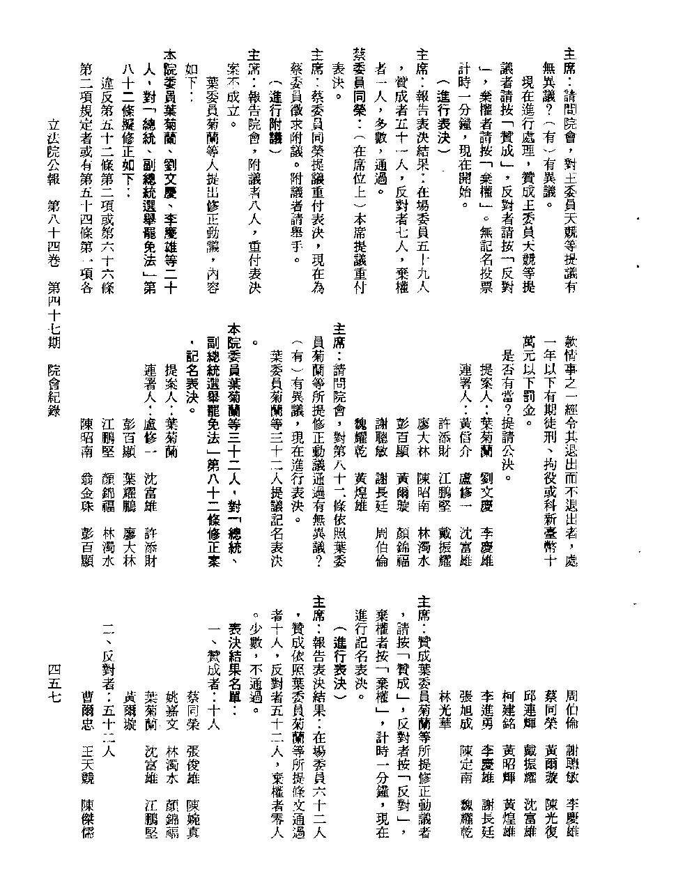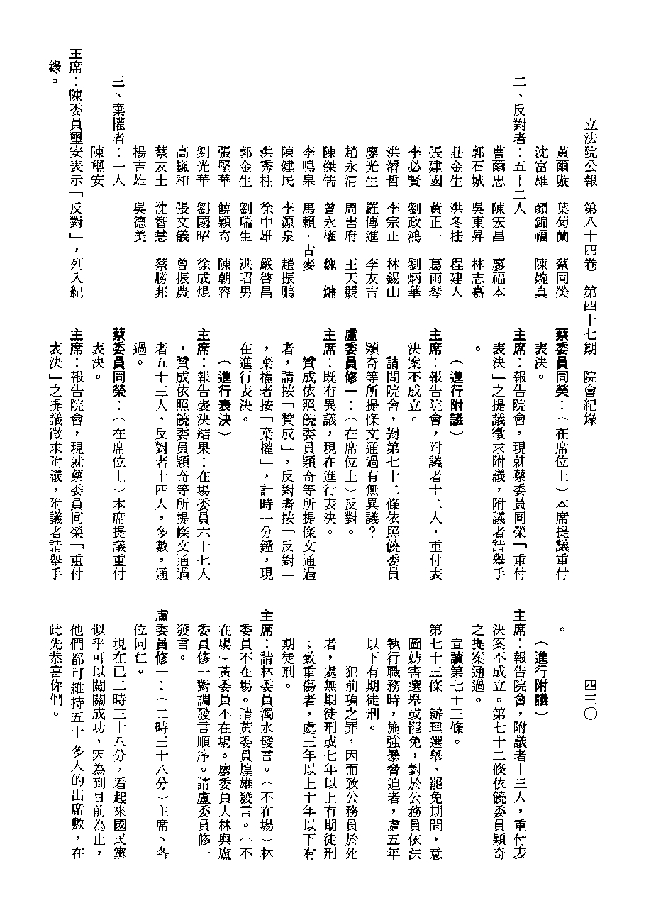 饒穎奇委員等30人提案第2條以下討論及表決經過