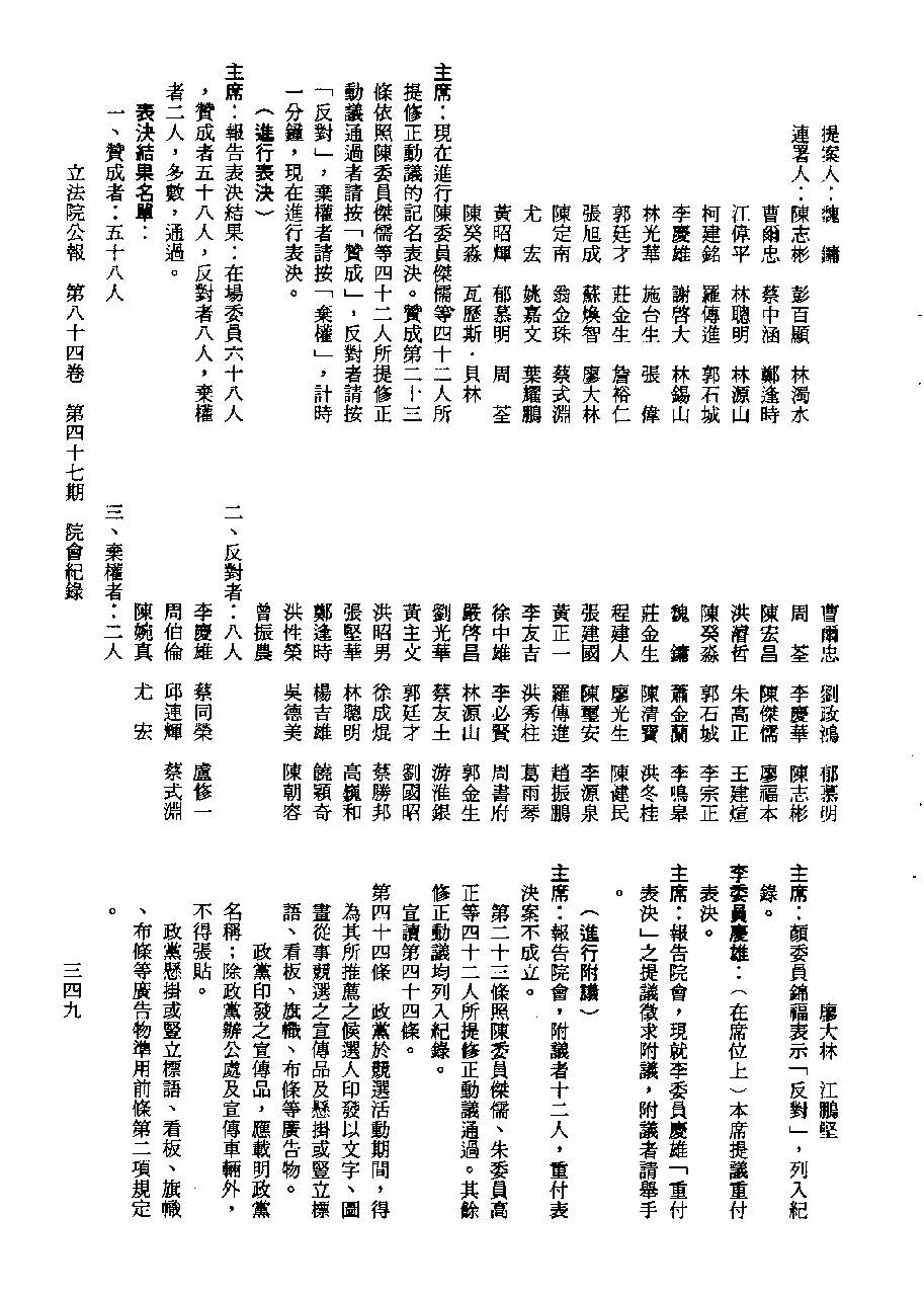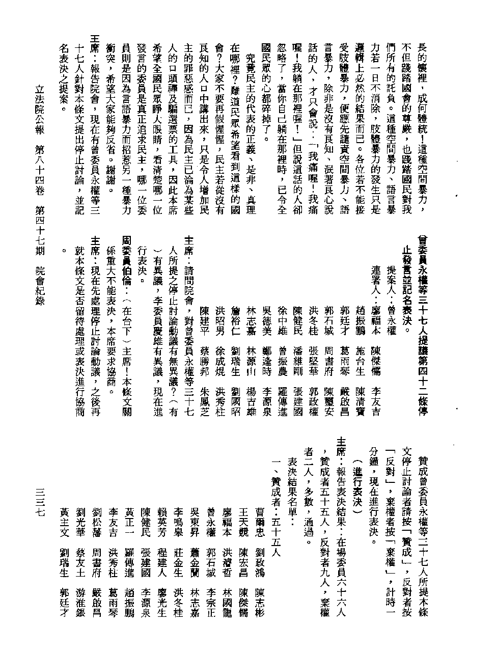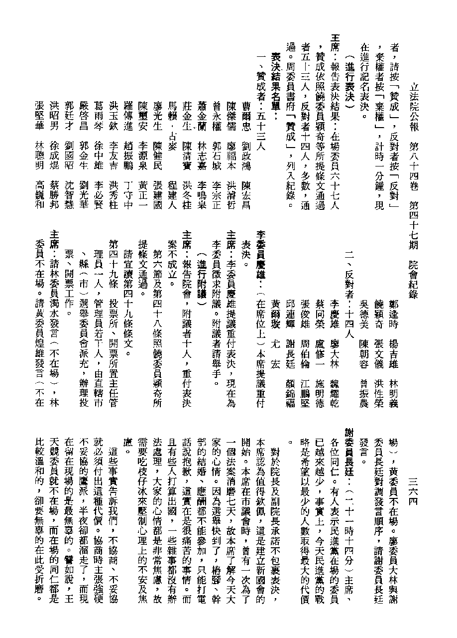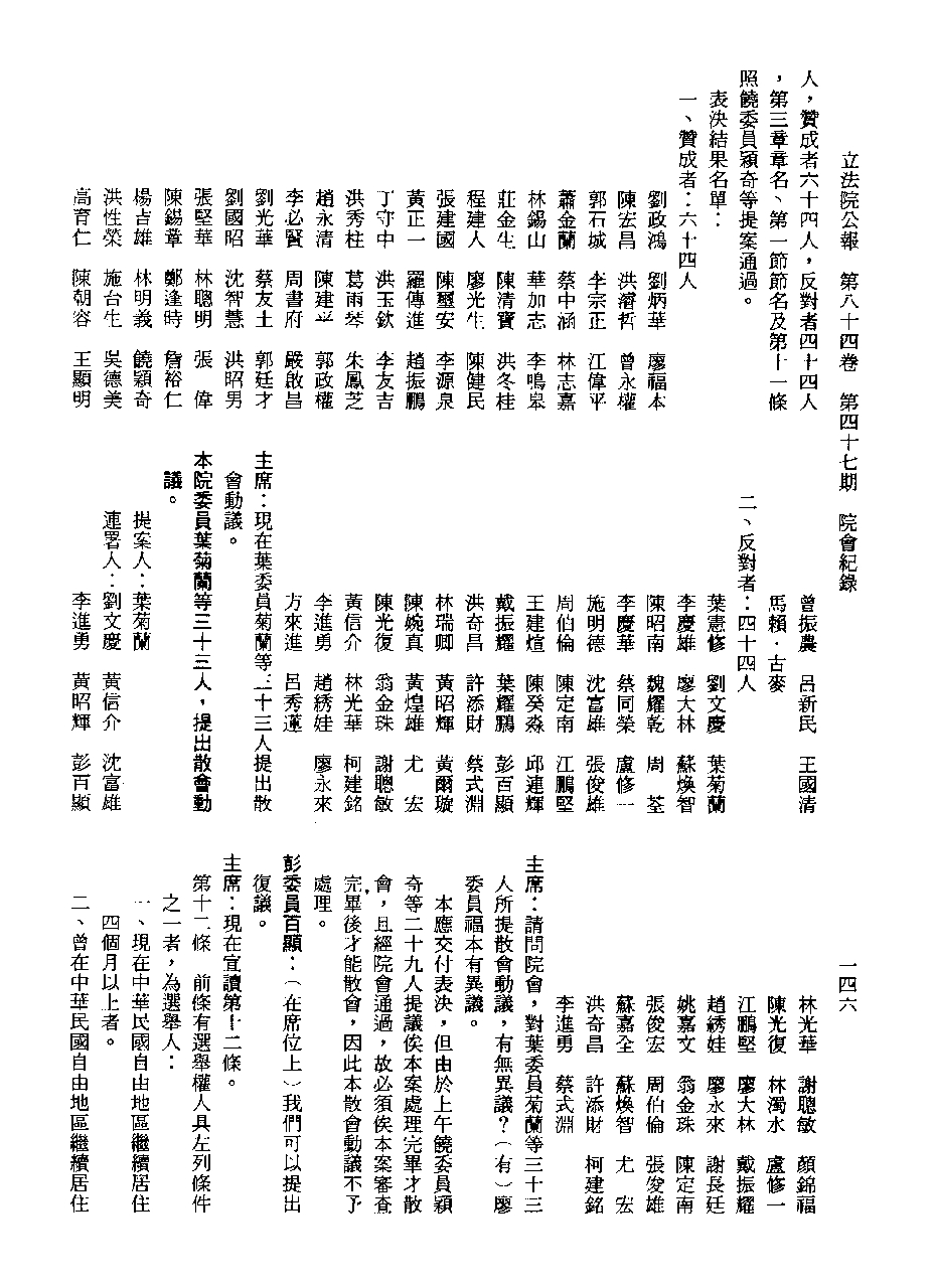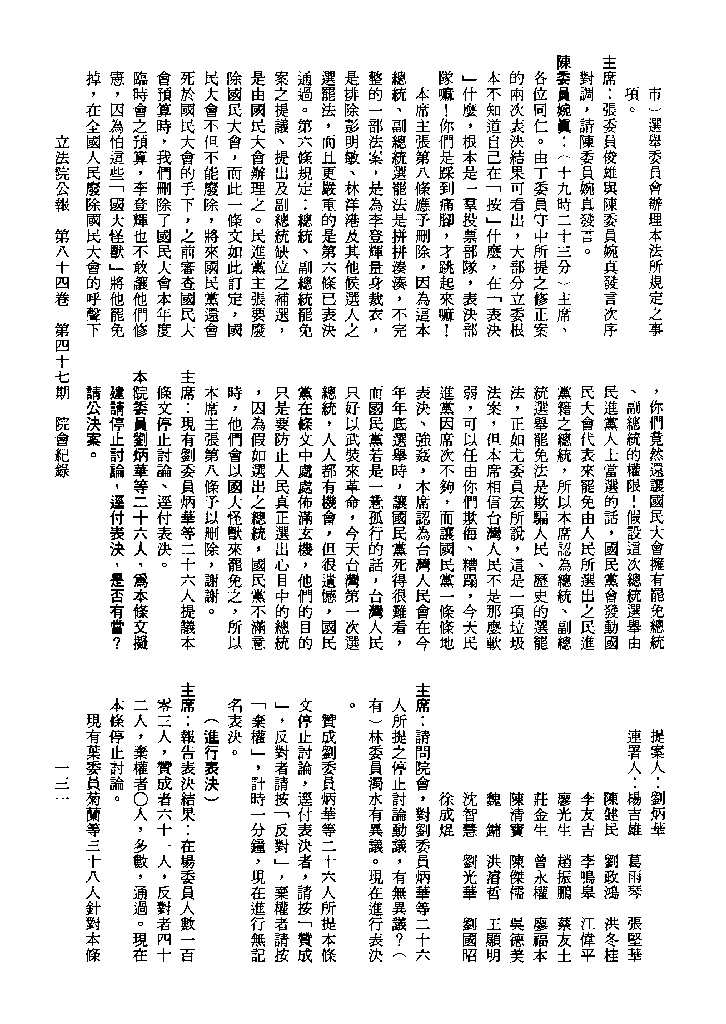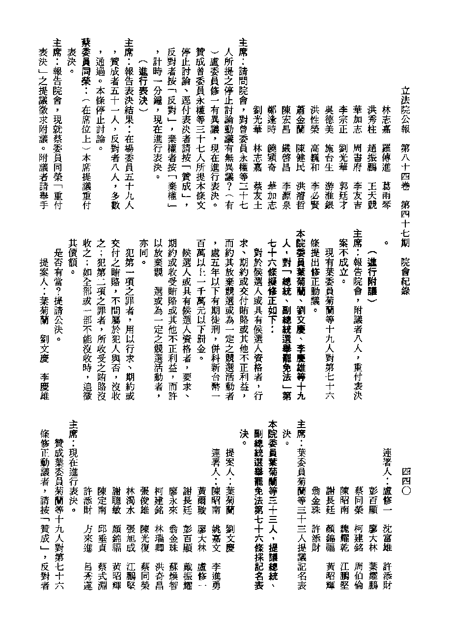 饒穎奇委員等30人提案第2條以下討論及表決經過