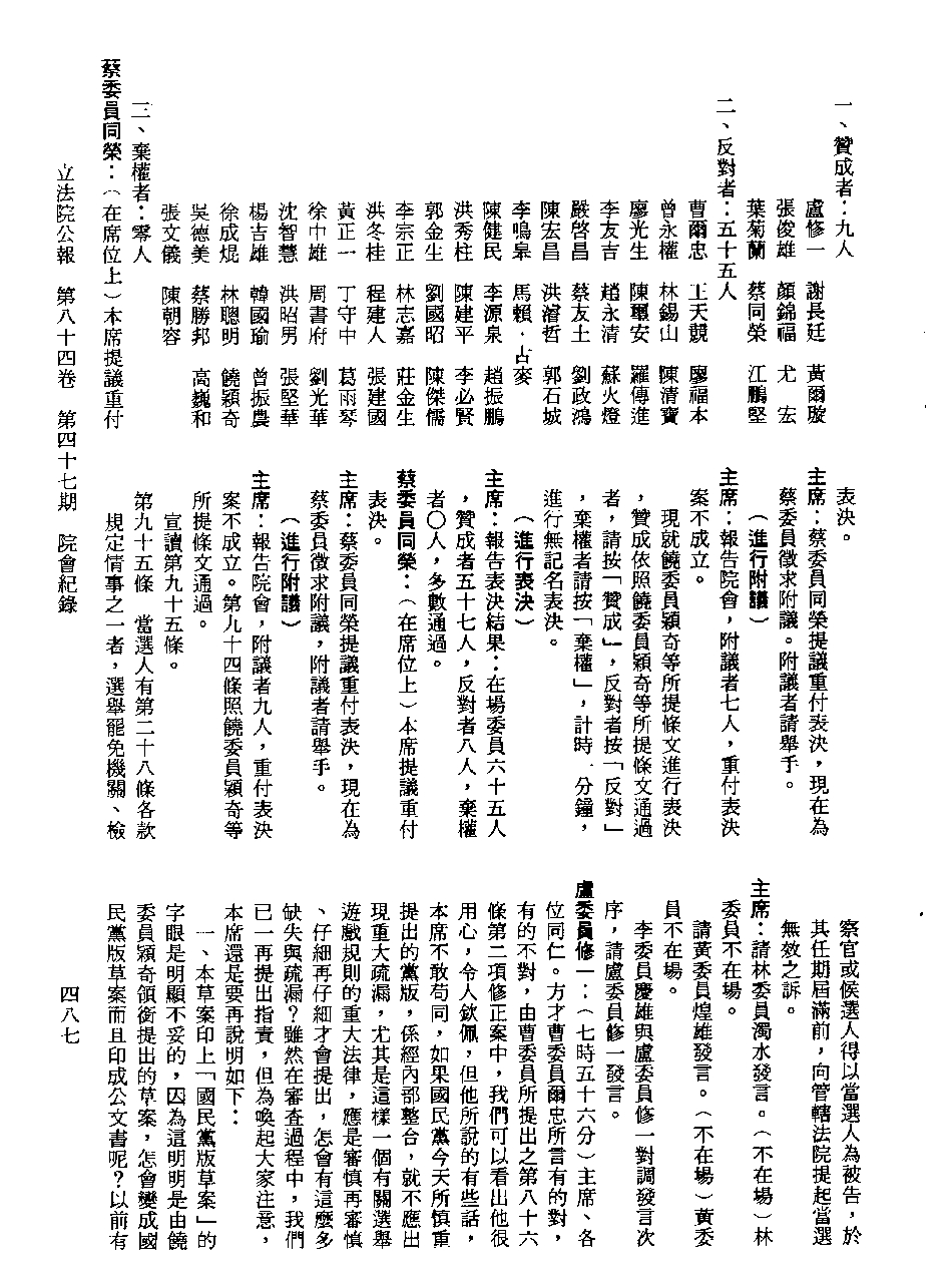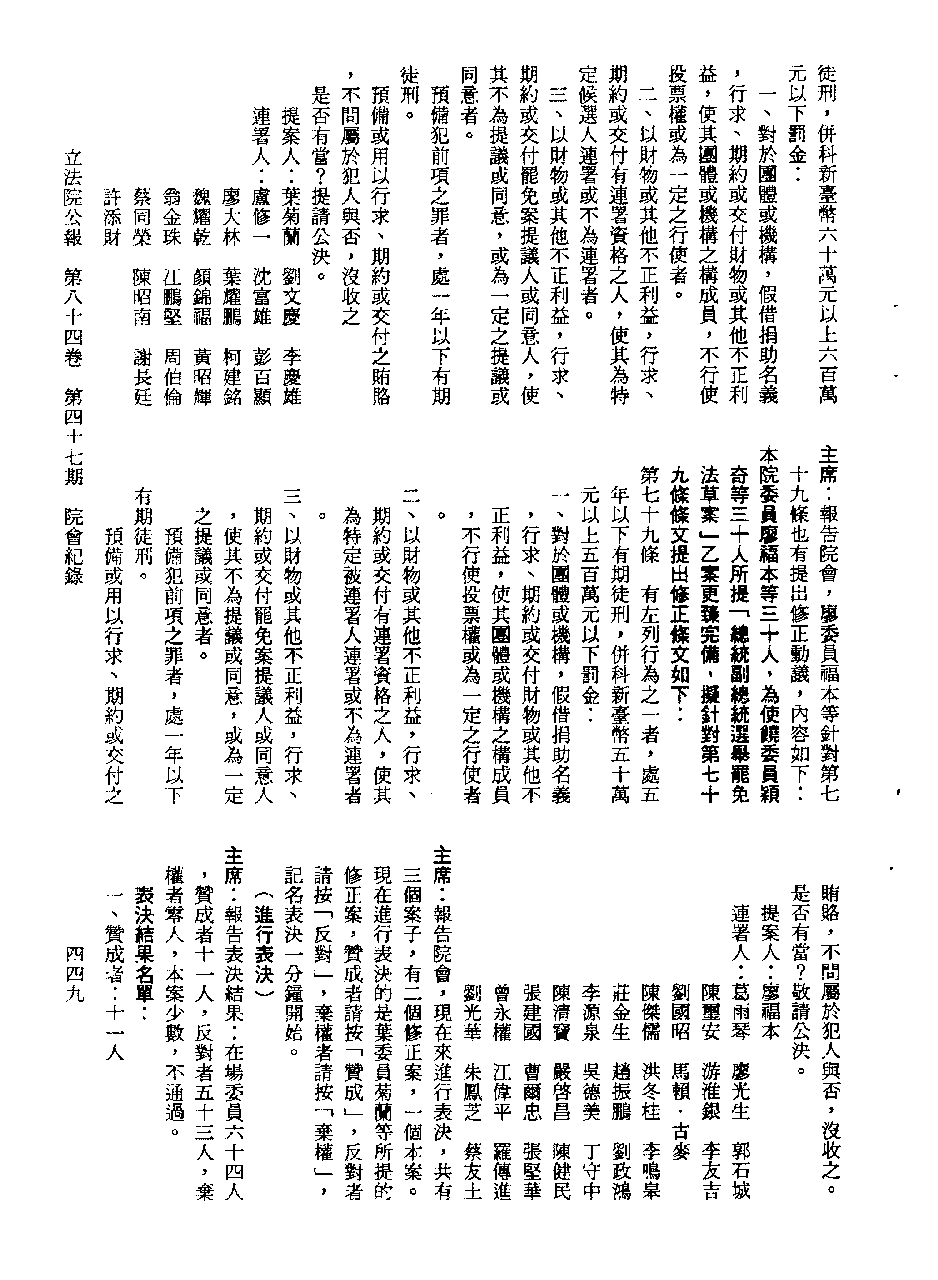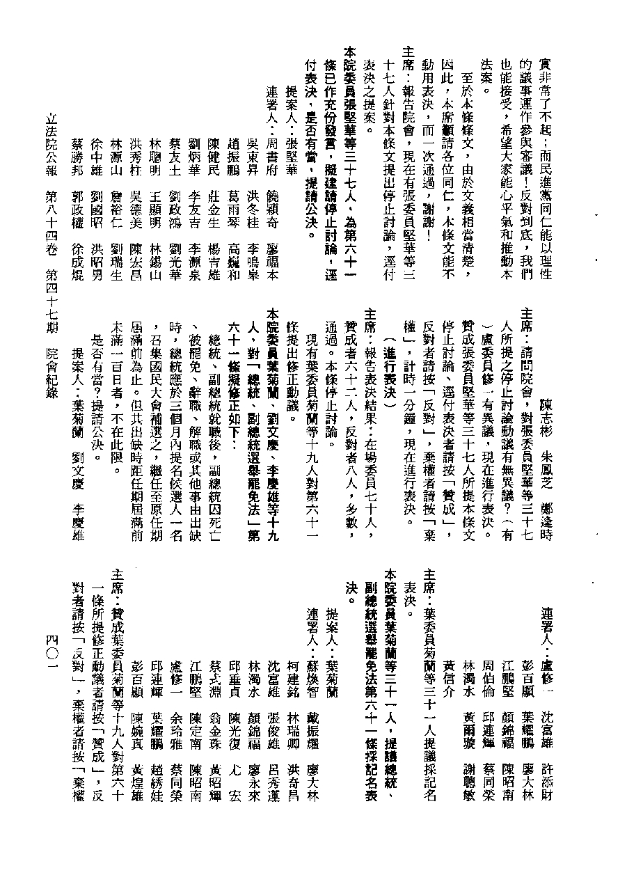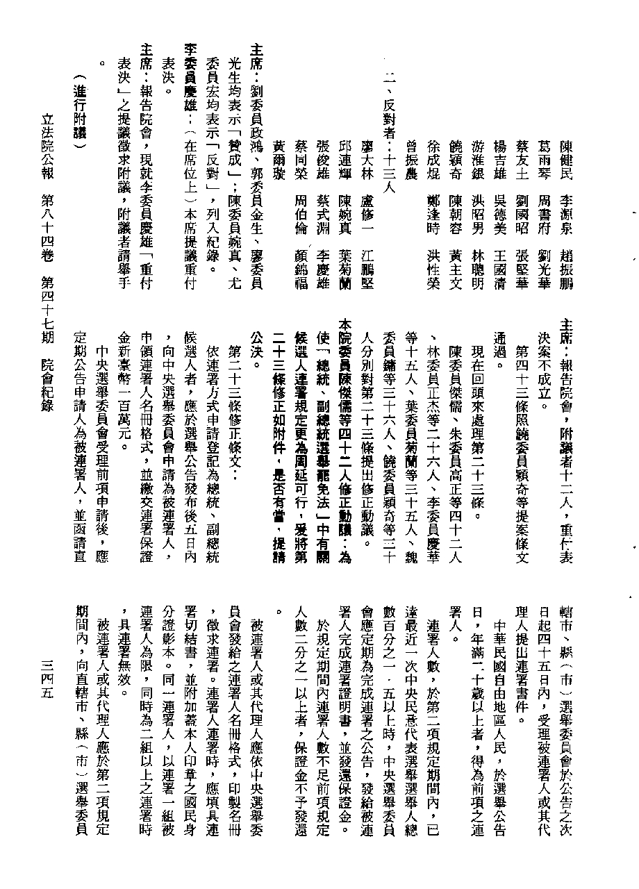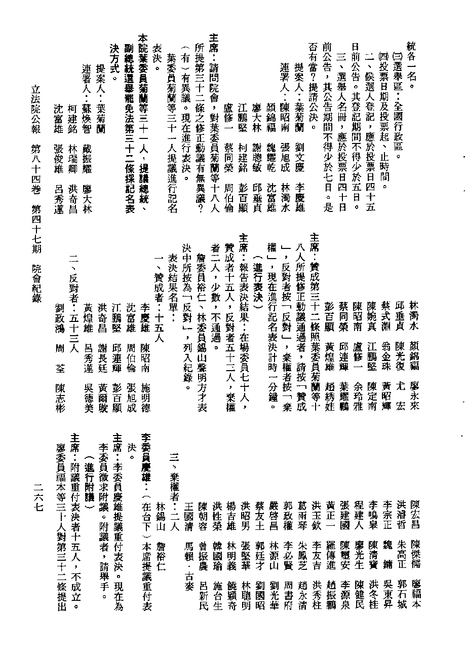 饒穎奇委員等30人提案第2條以下討論及表決經過