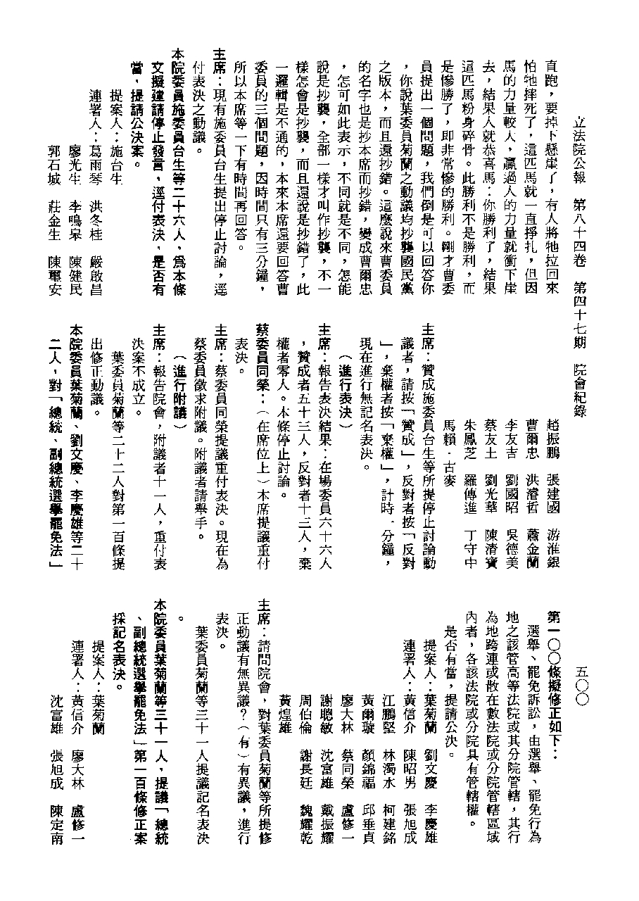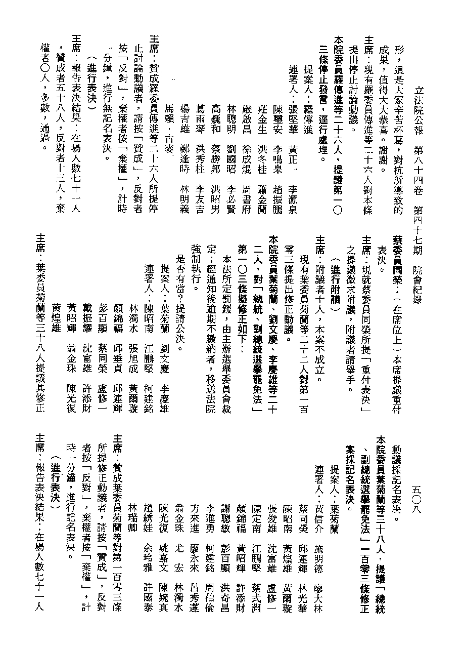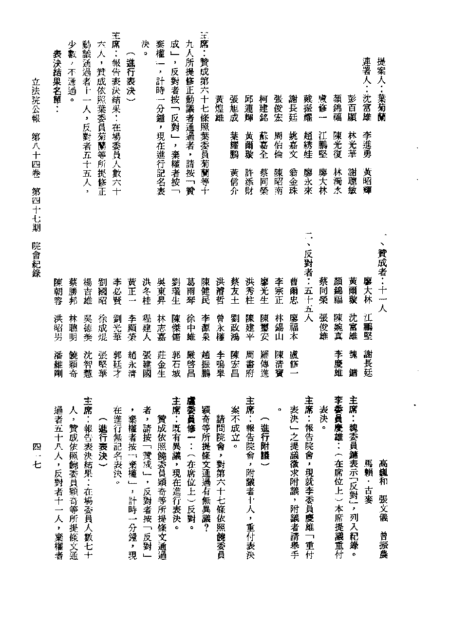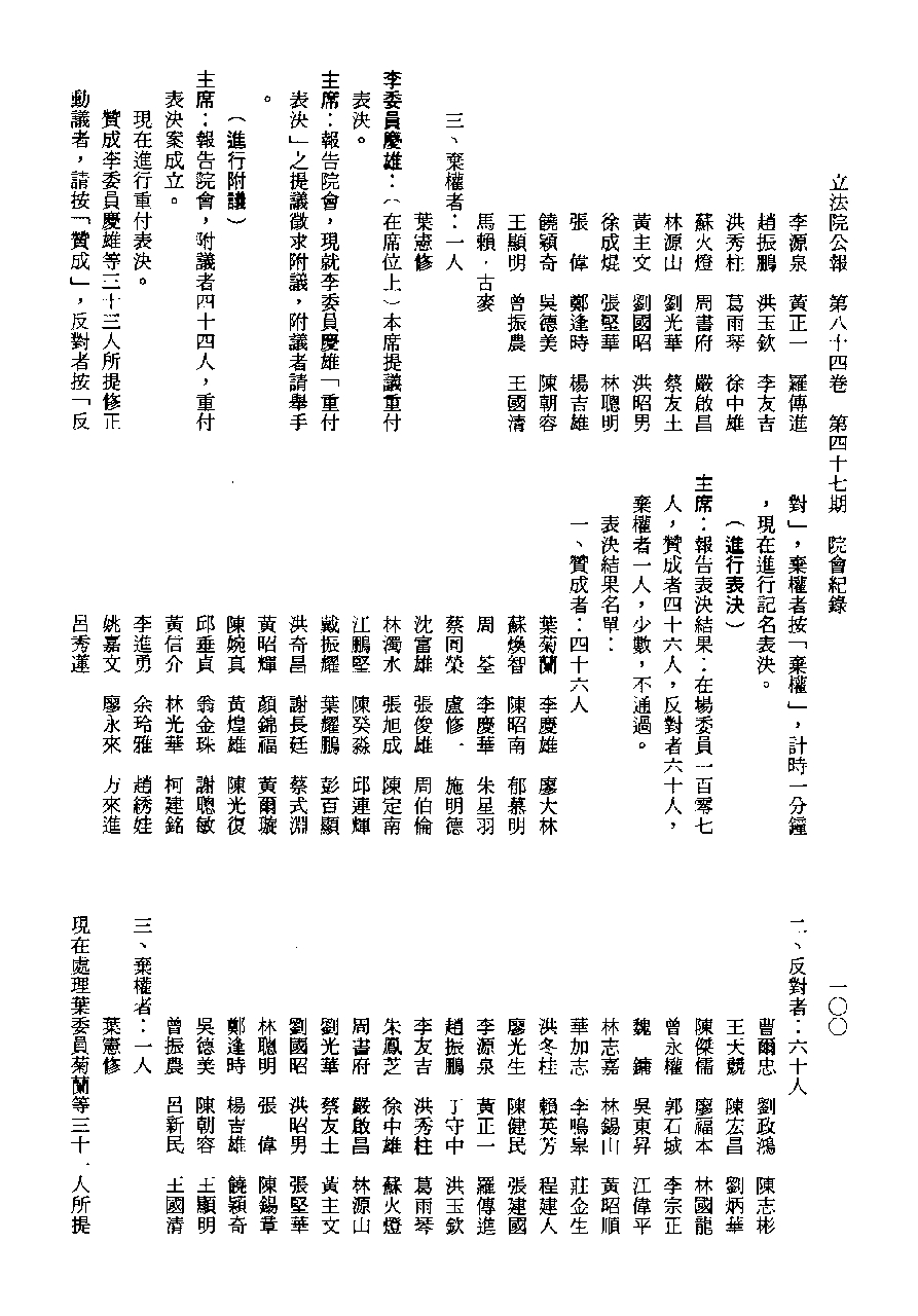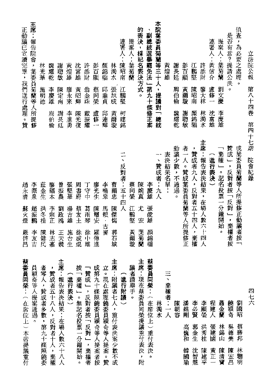 饒穎奇委員等30人提案第2條以下討論及表決經過