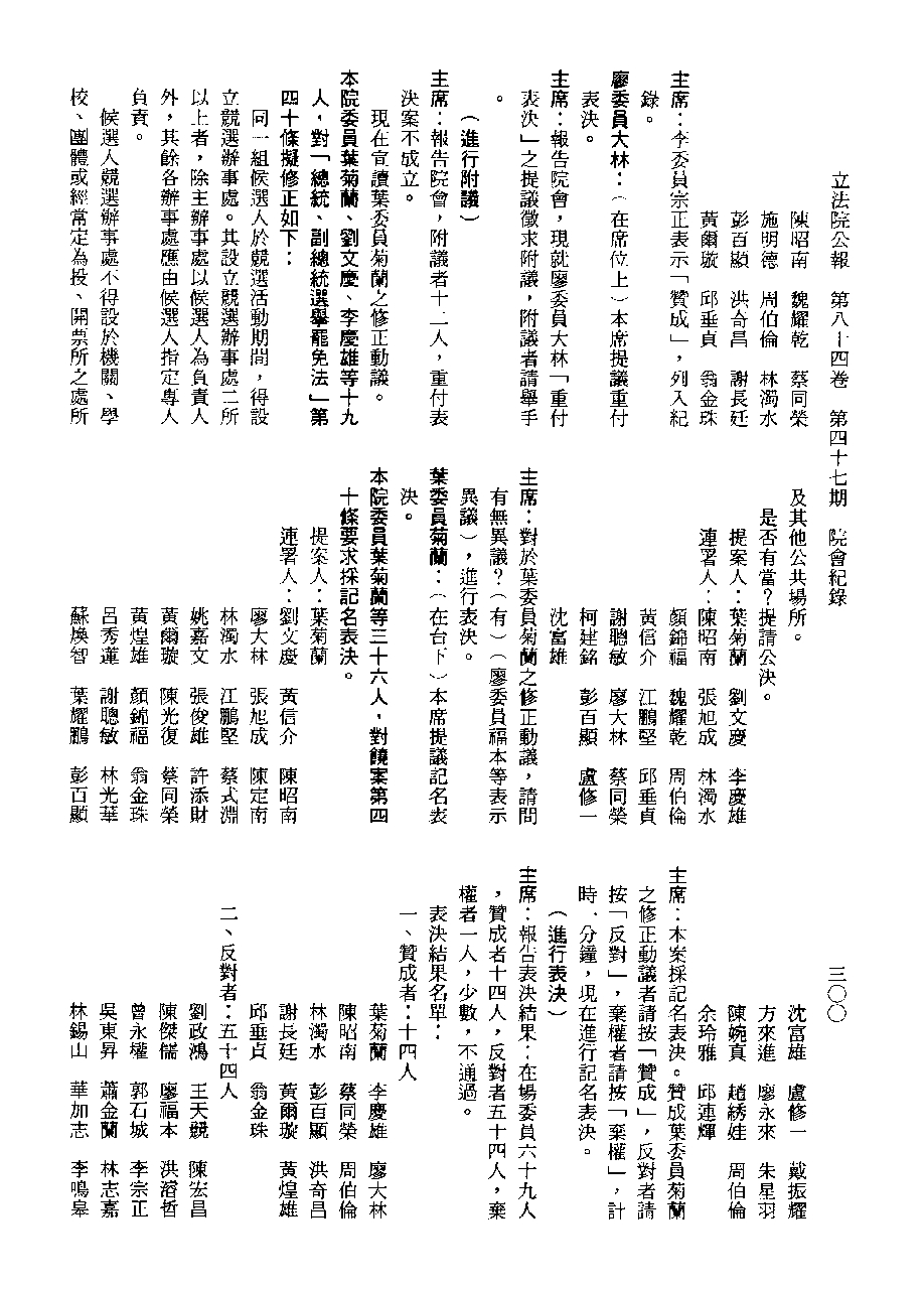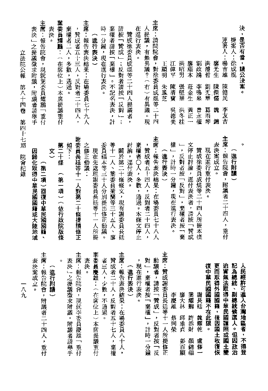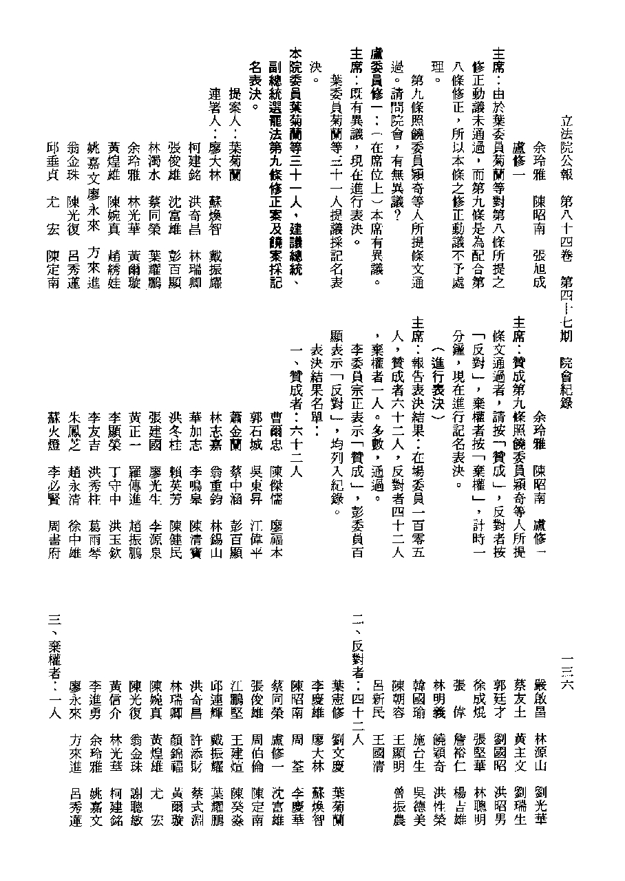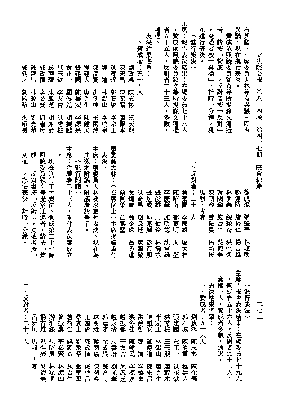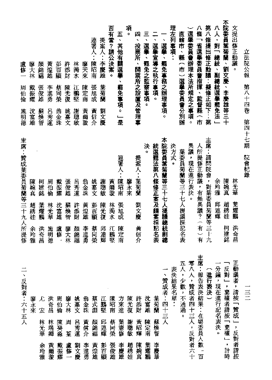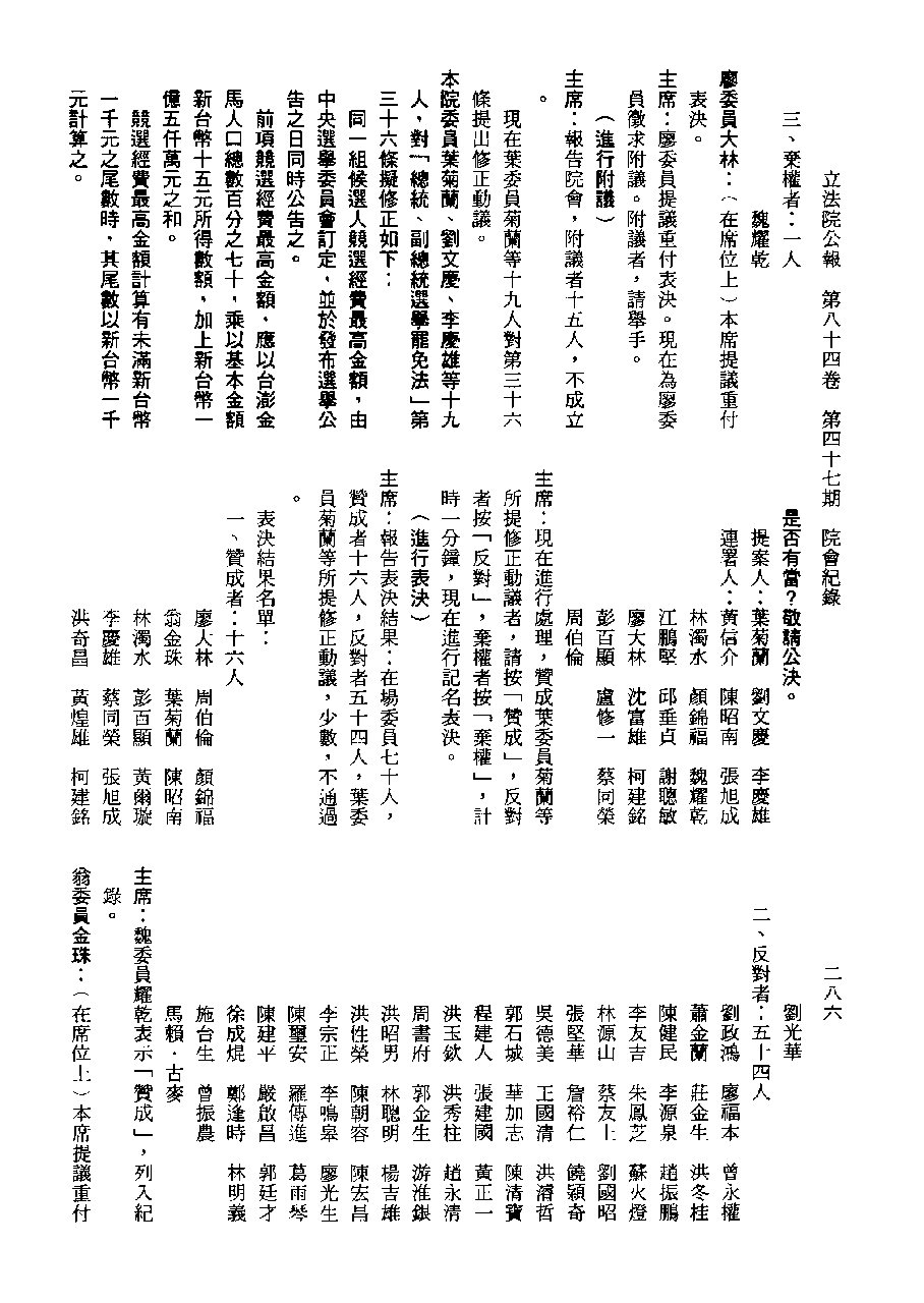饒穎奇委員等30人提案第2條以下討論及表決經過