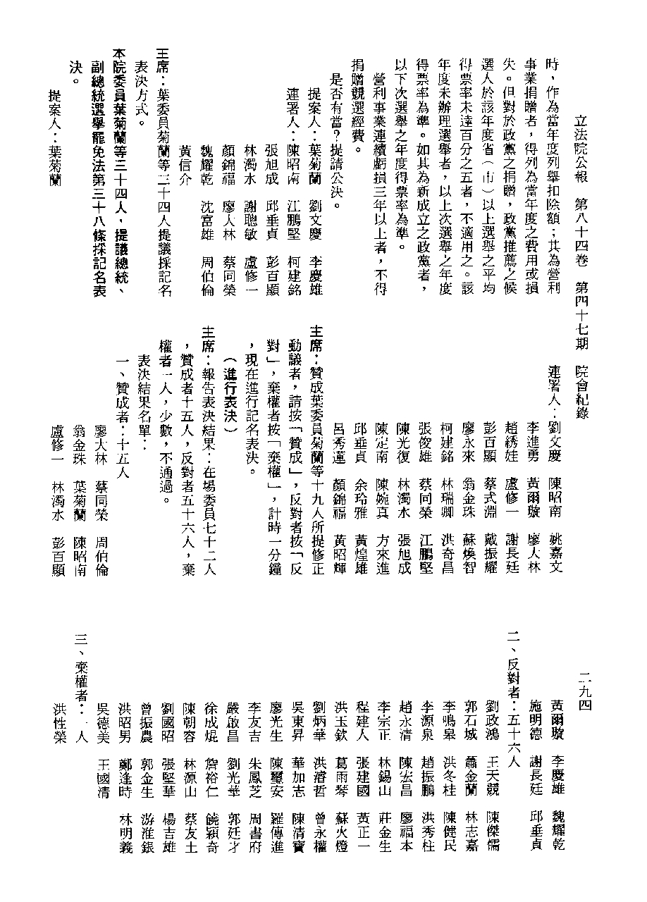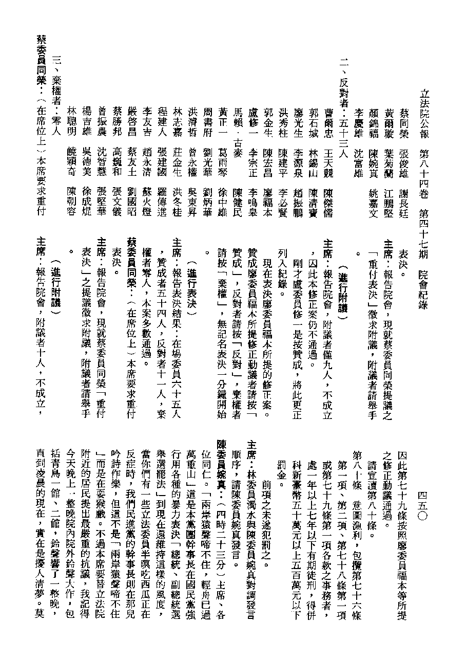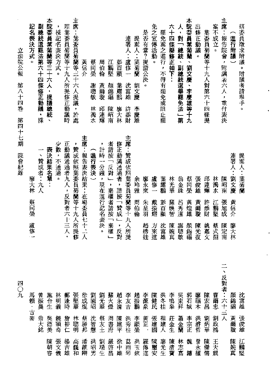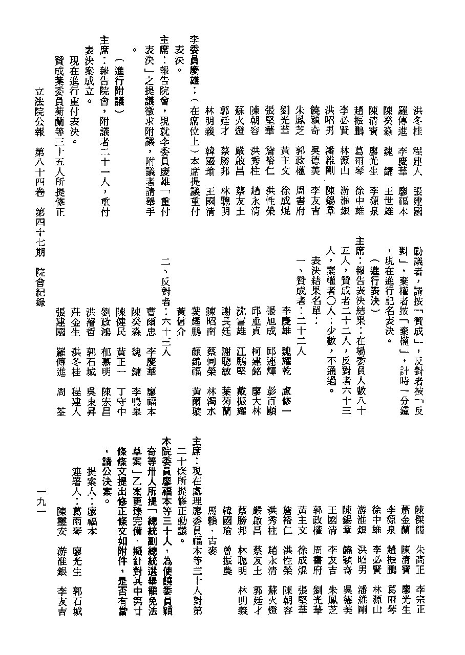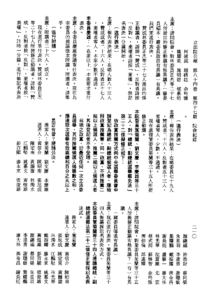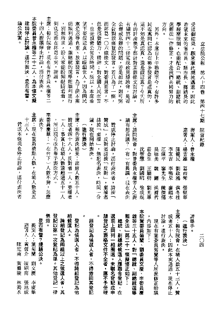 饒穎奇委員等30人提案第2條以下討論及表決經過