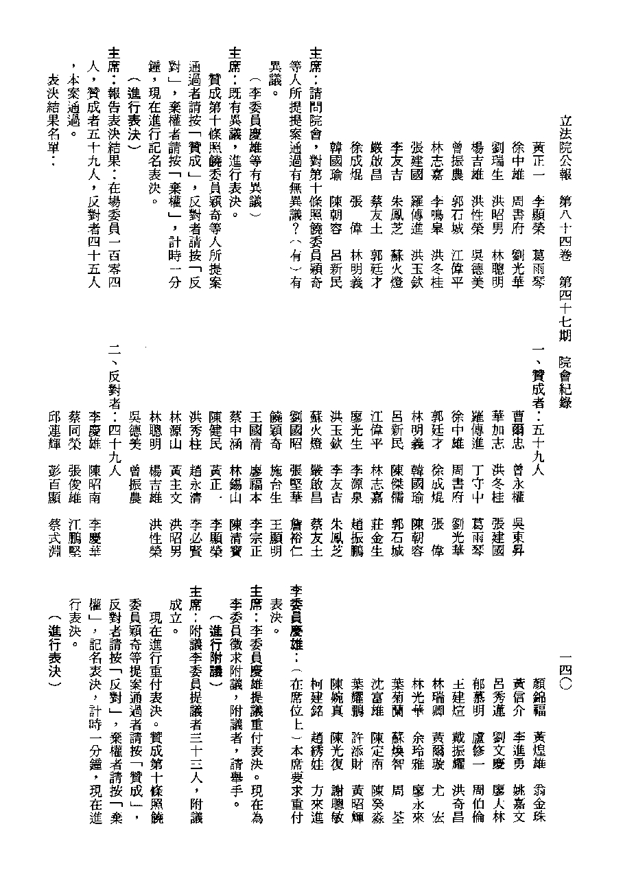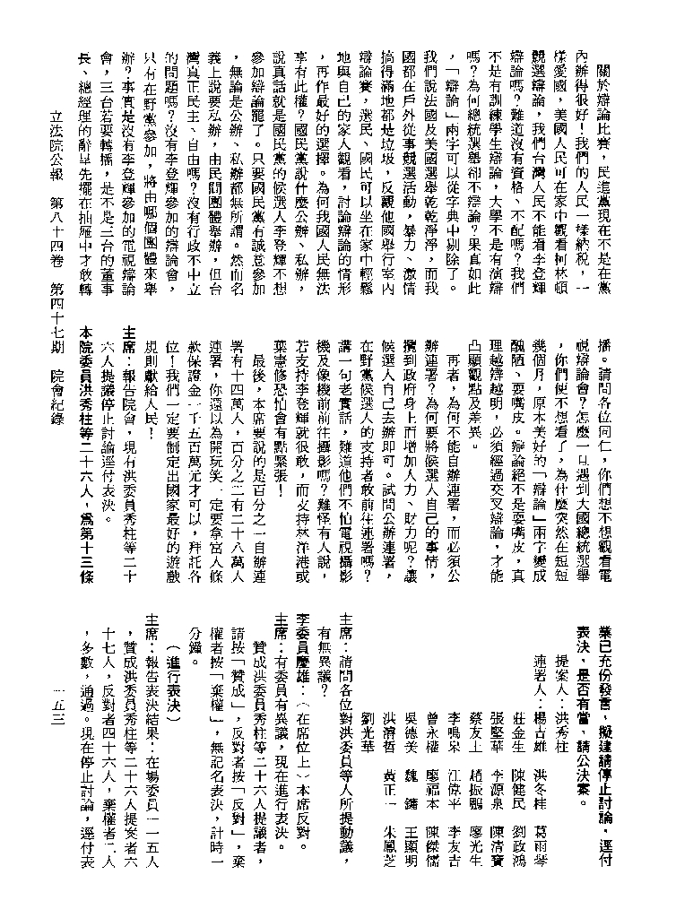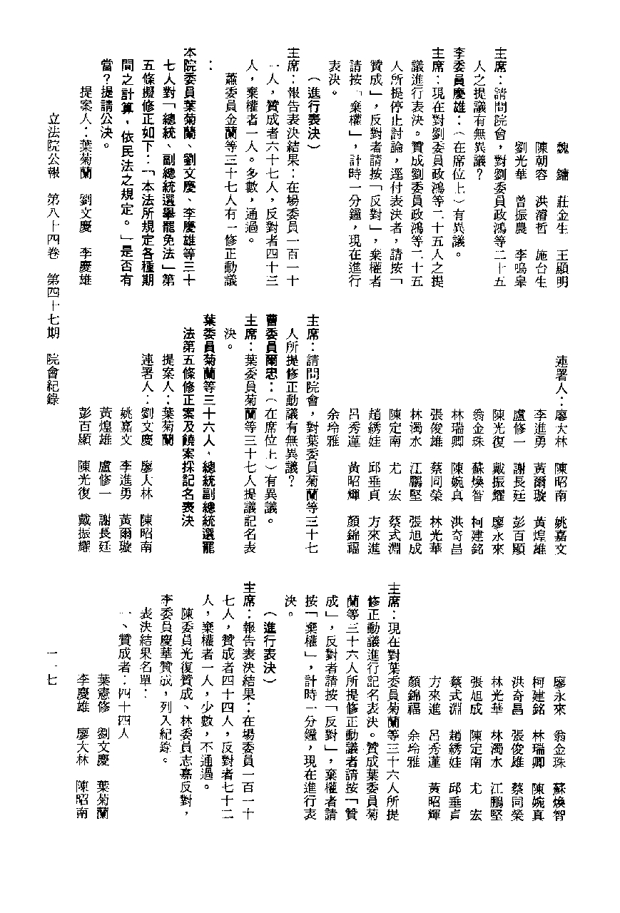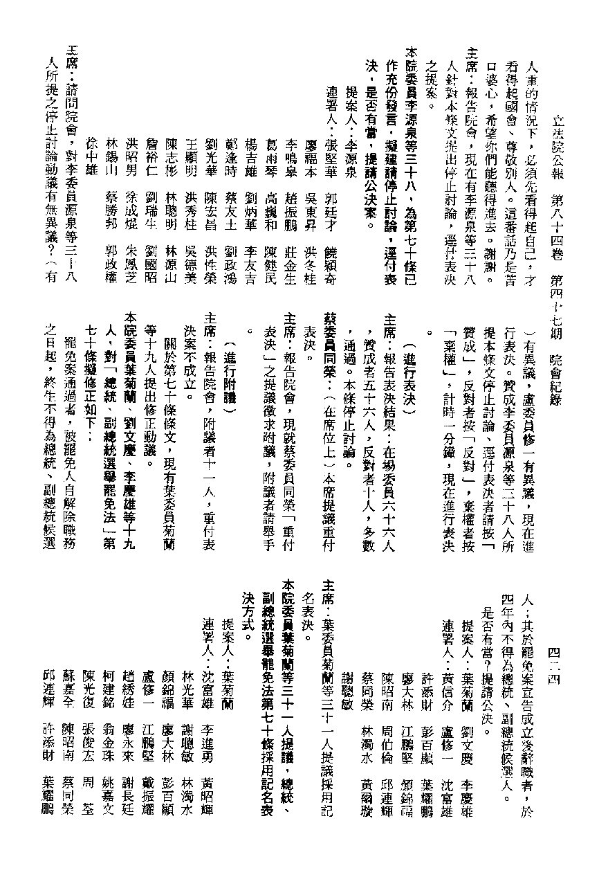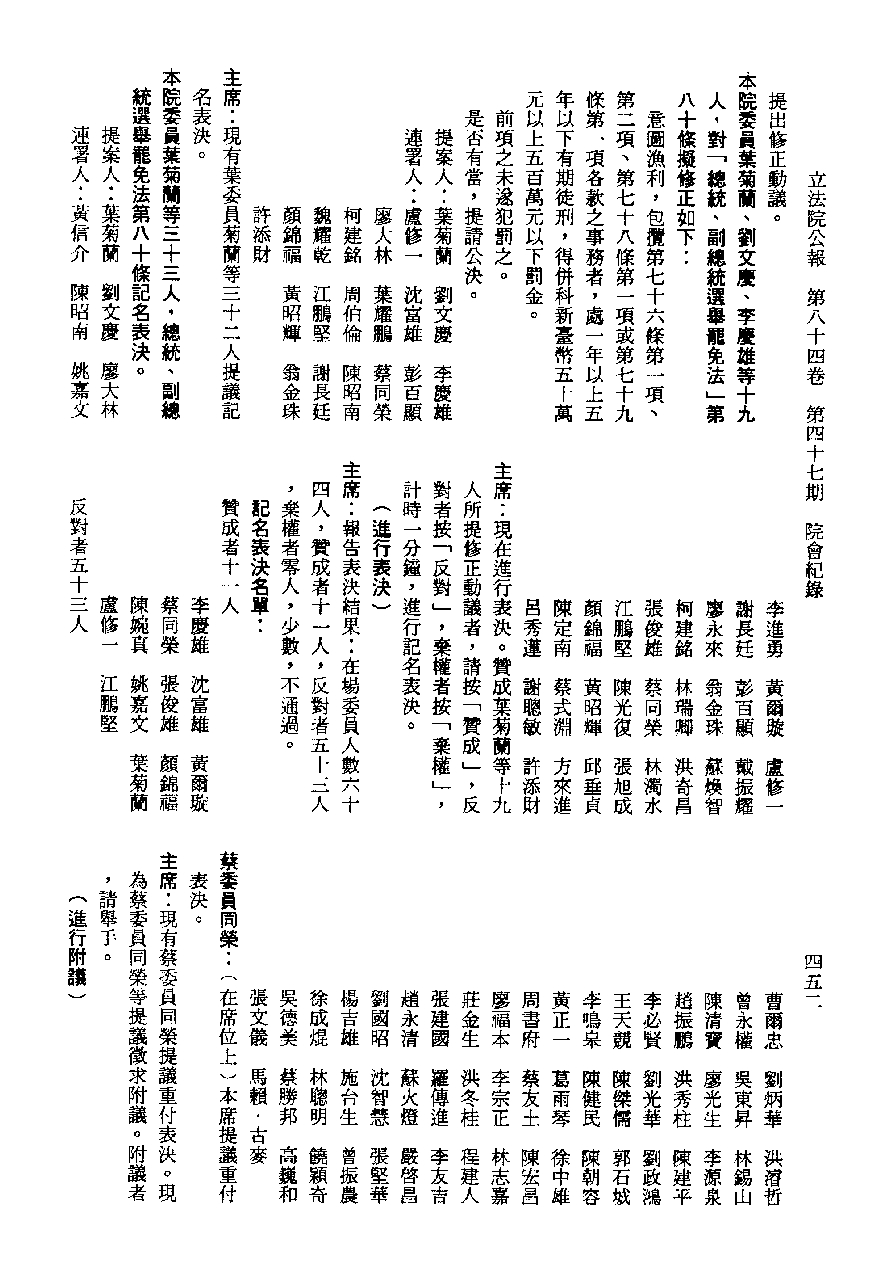 饒穎奇委員等30人提案第2條以下討論及表決經過