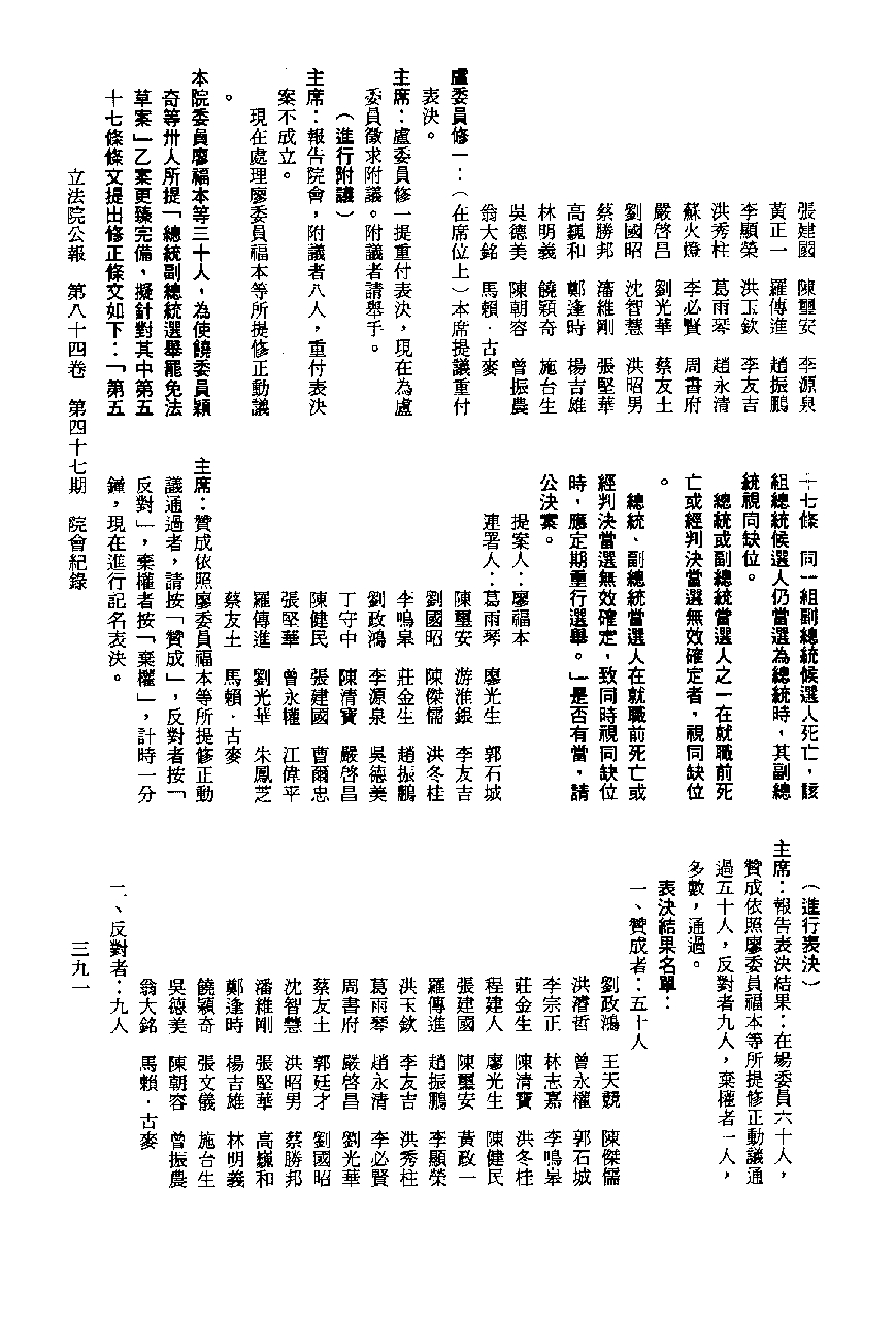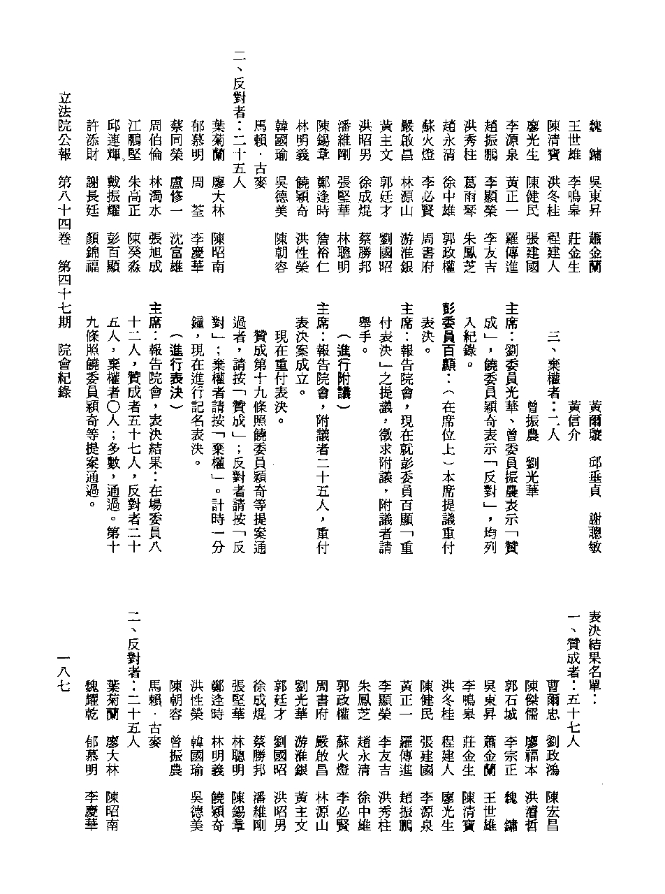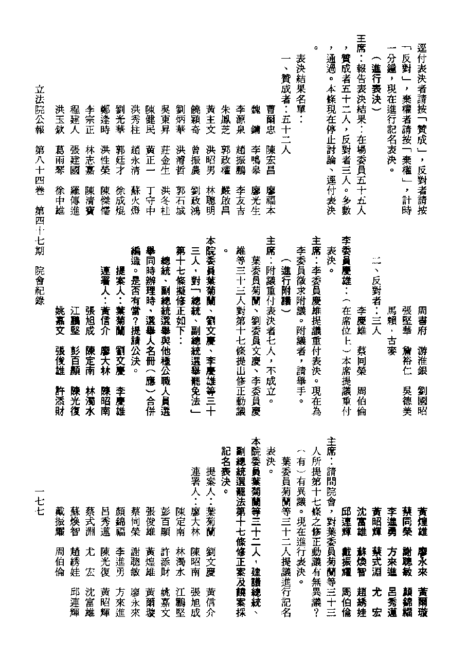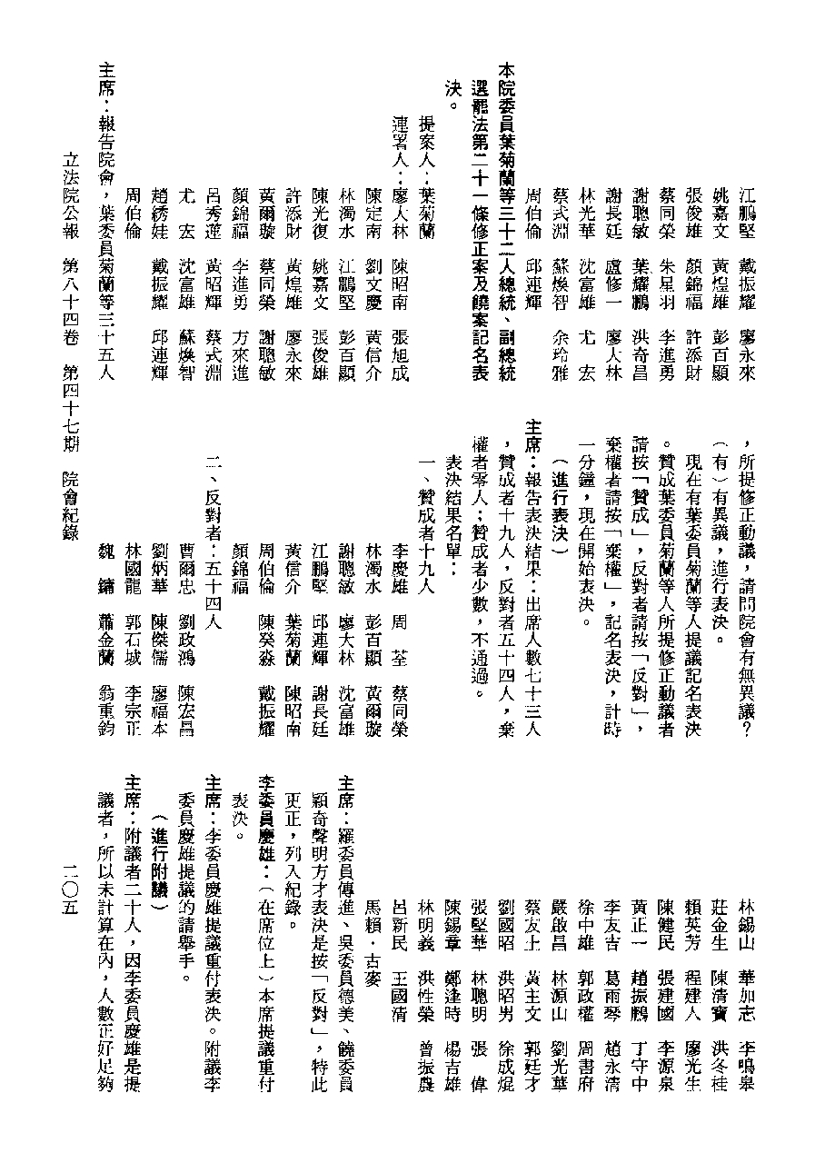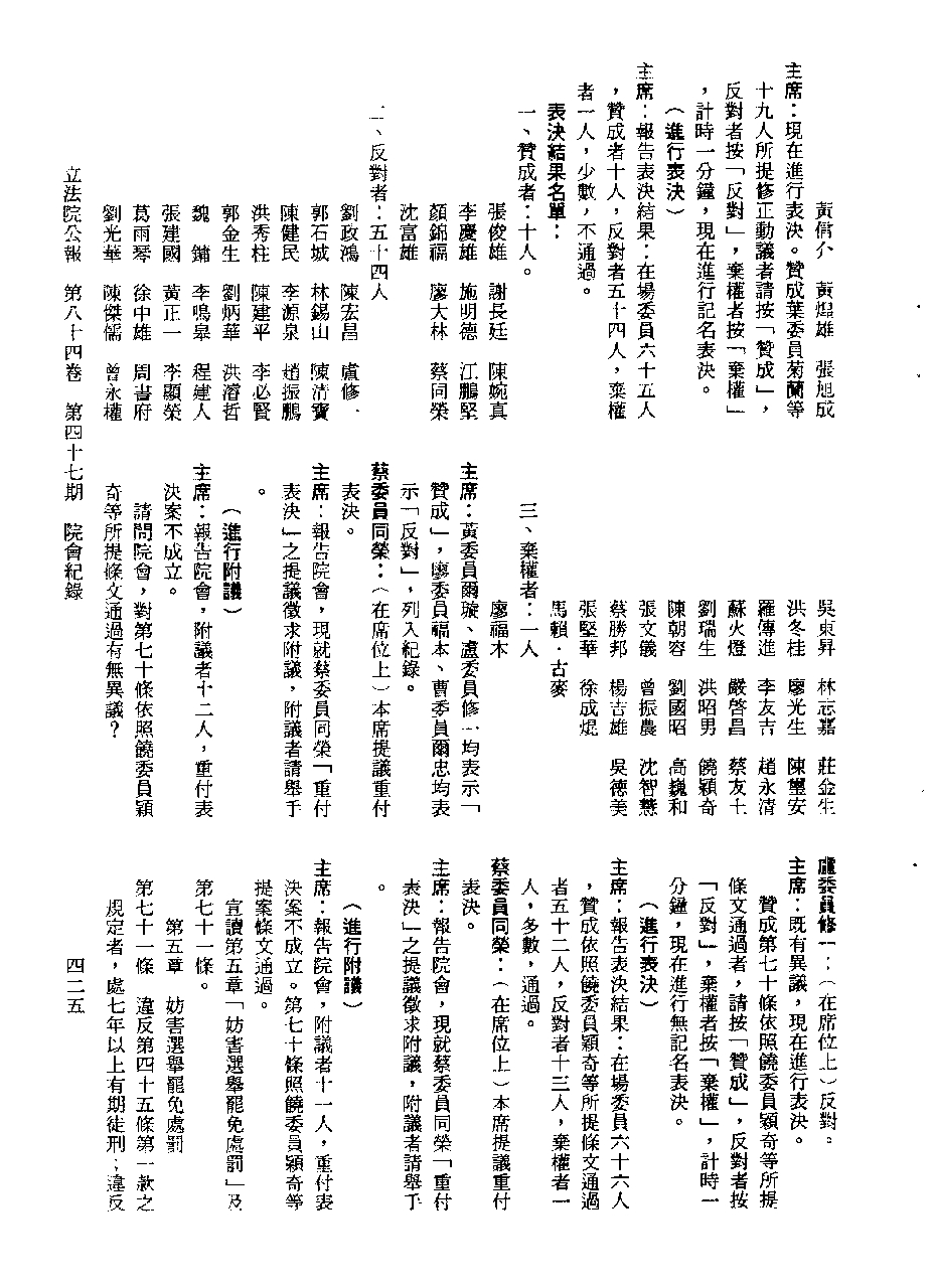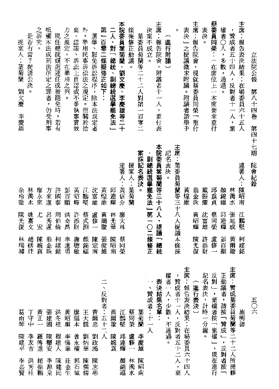 饒穎奇委員等30人提案第2條以下討論及表決經過