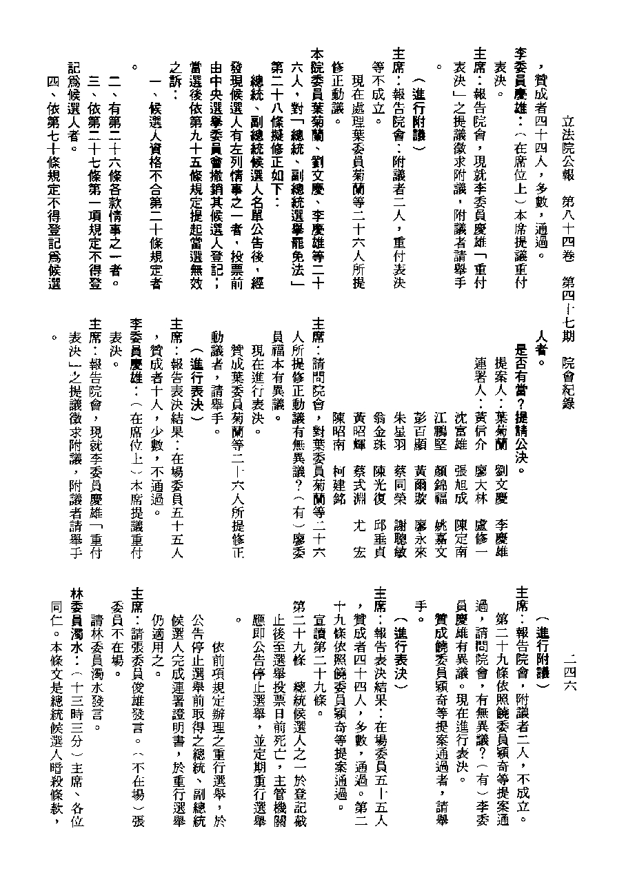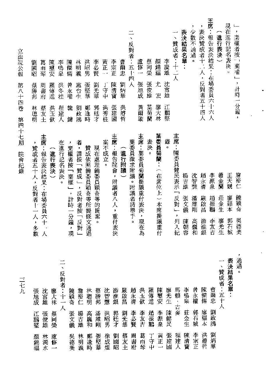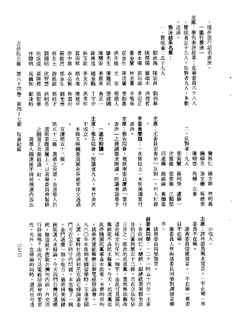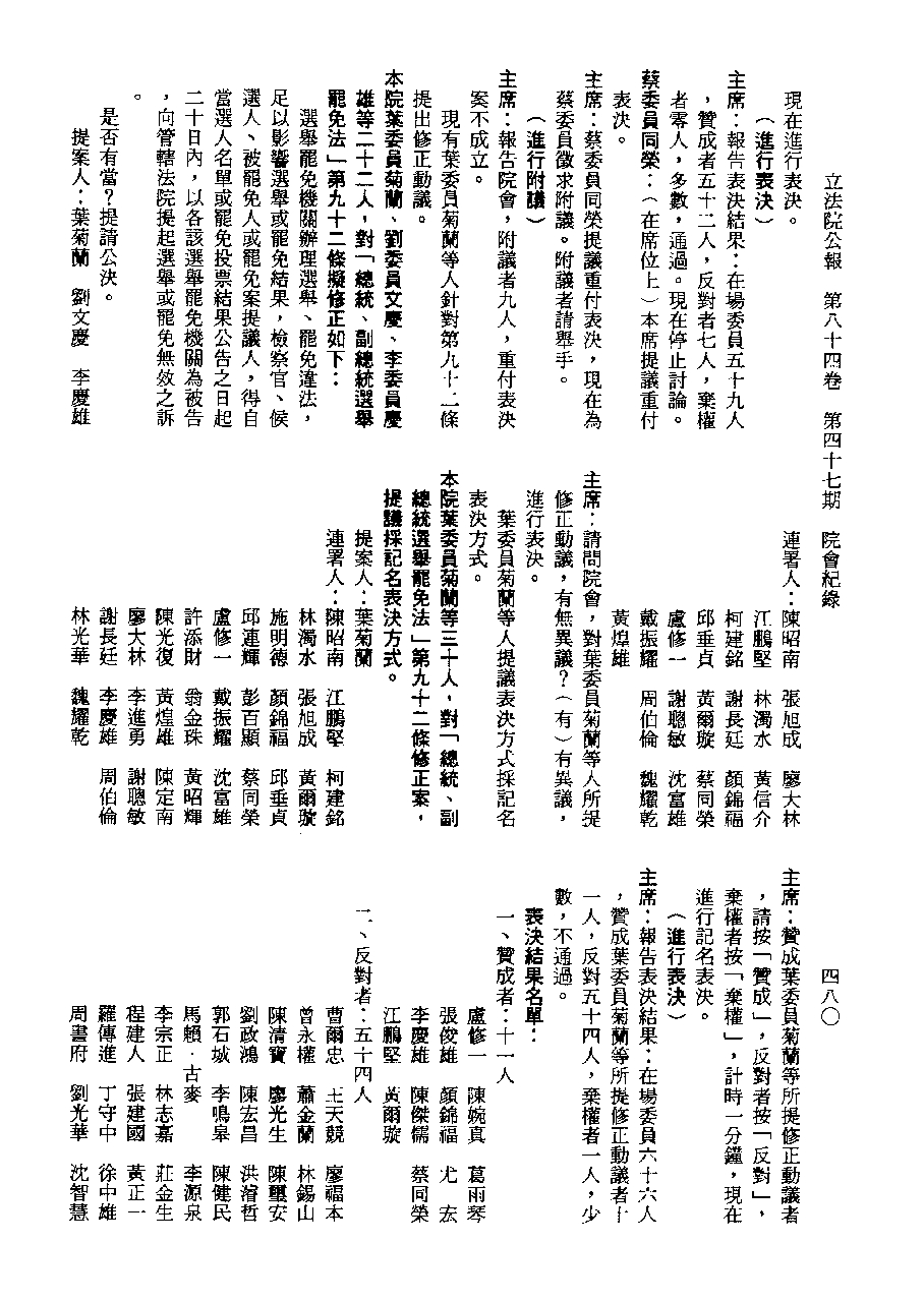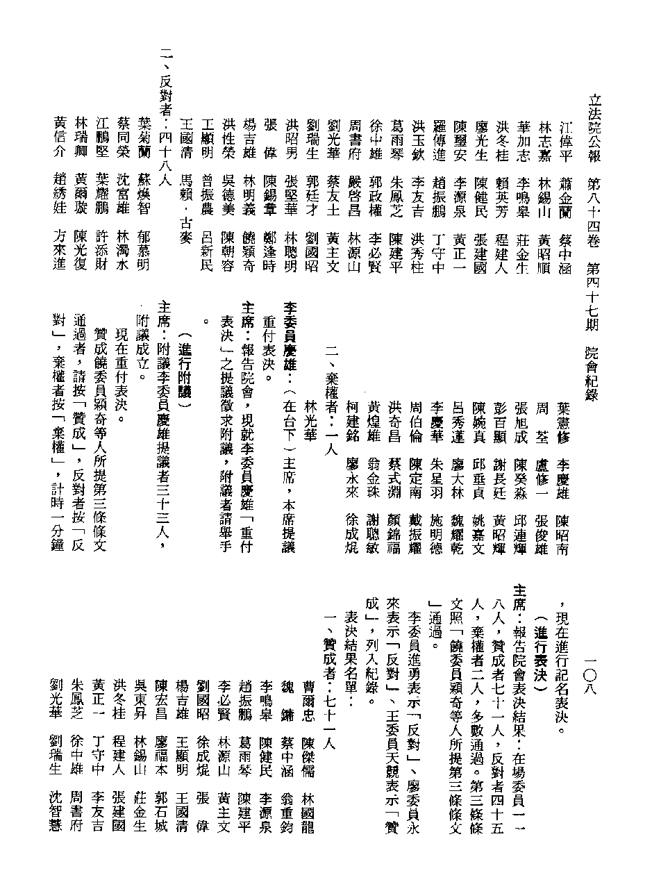 饒穎奇委員等30人提案第2條以下討論及表決經過