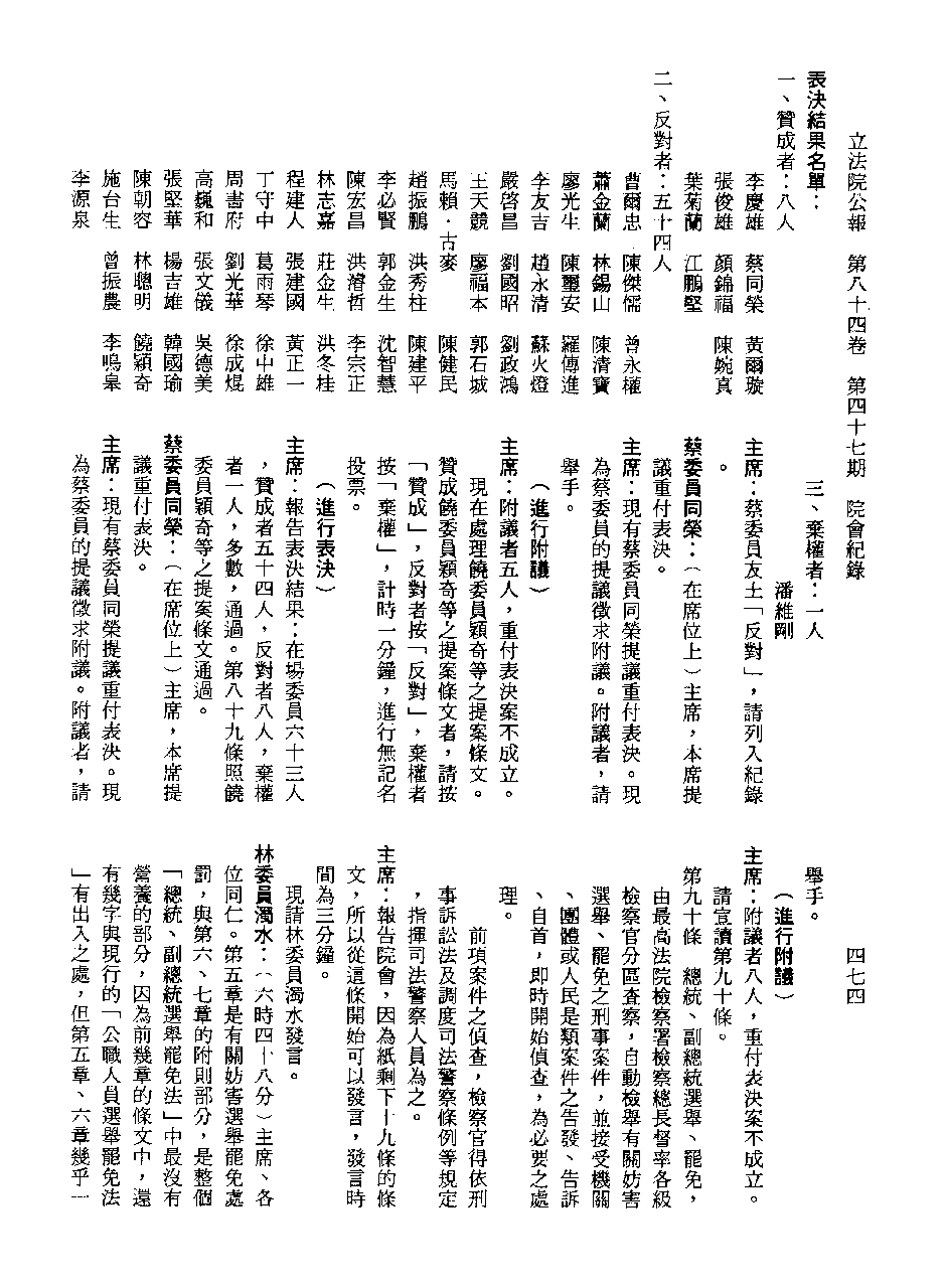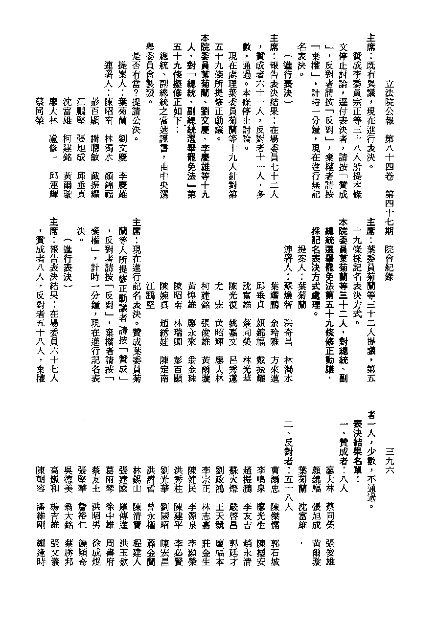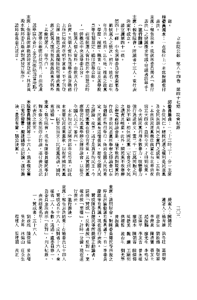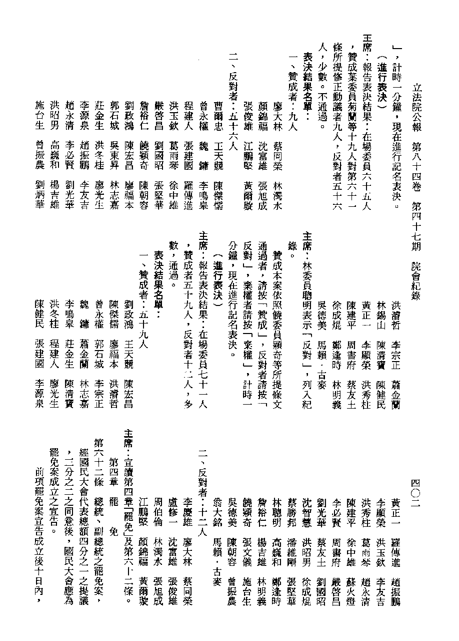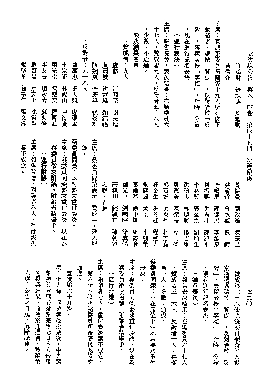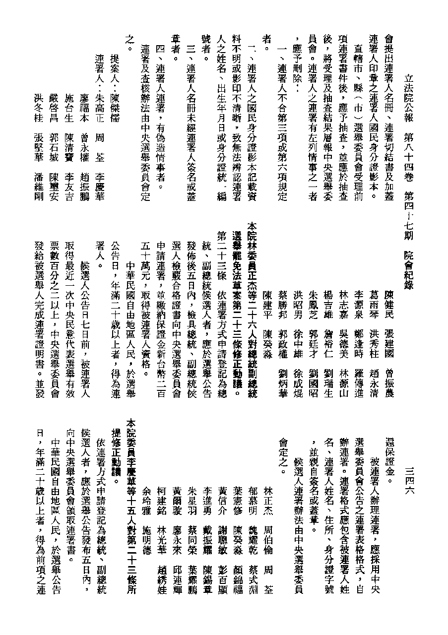 饒穎奇委員等30人提案第2條以下討論及表決經過