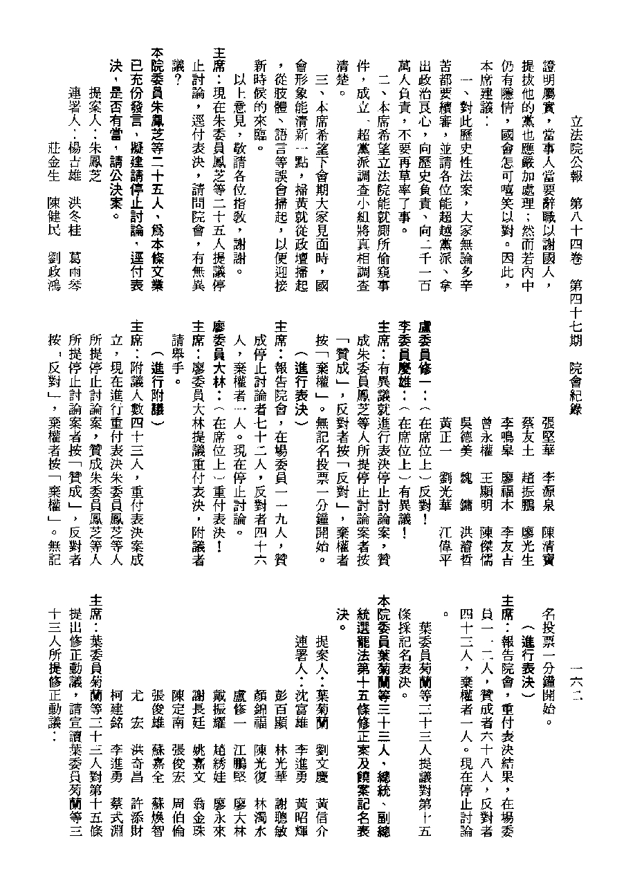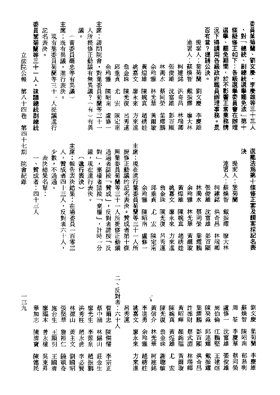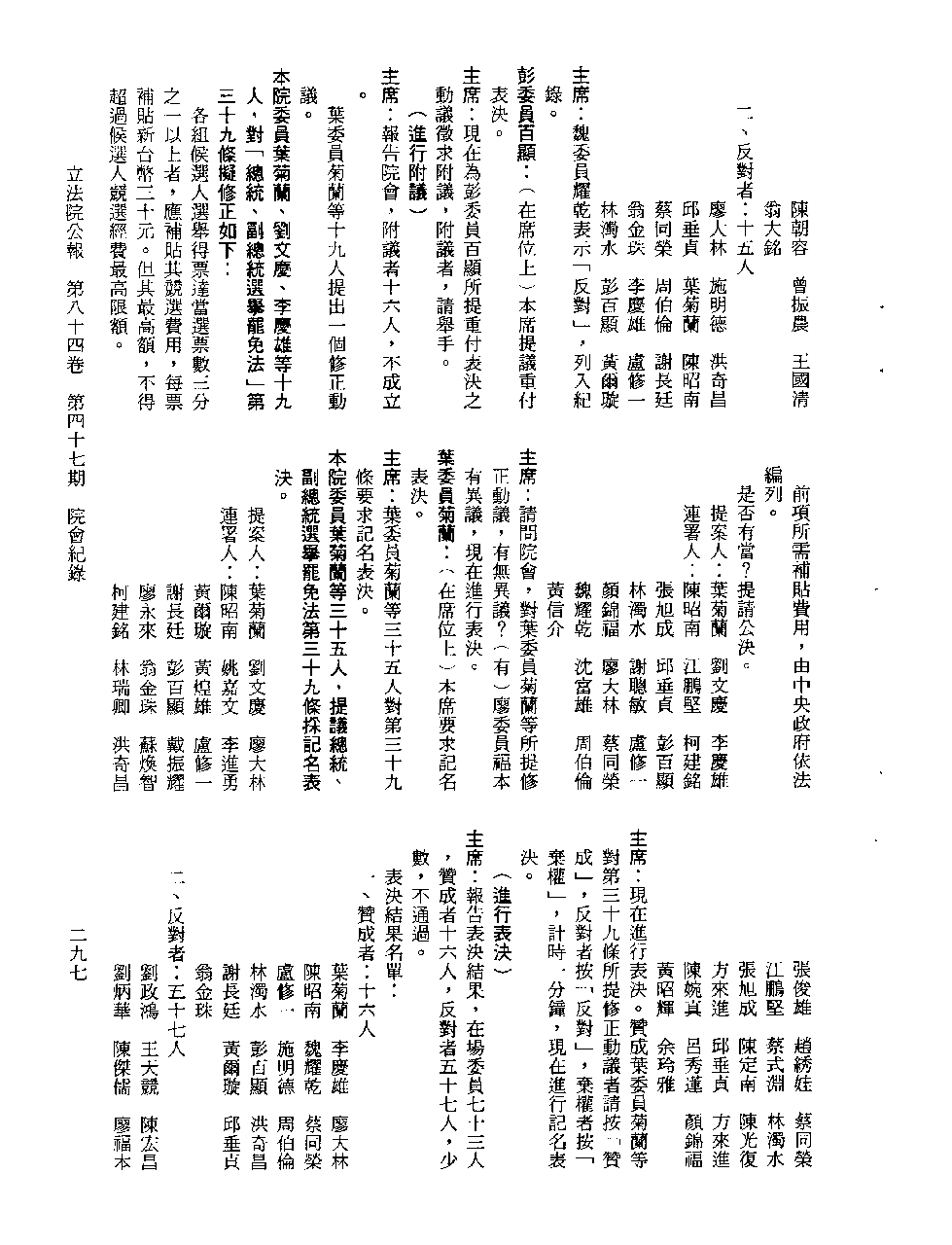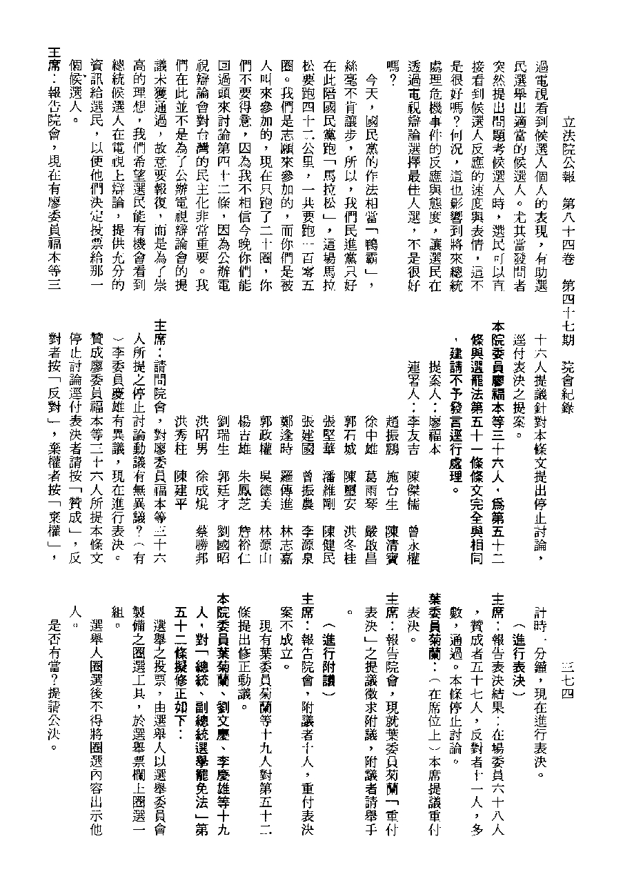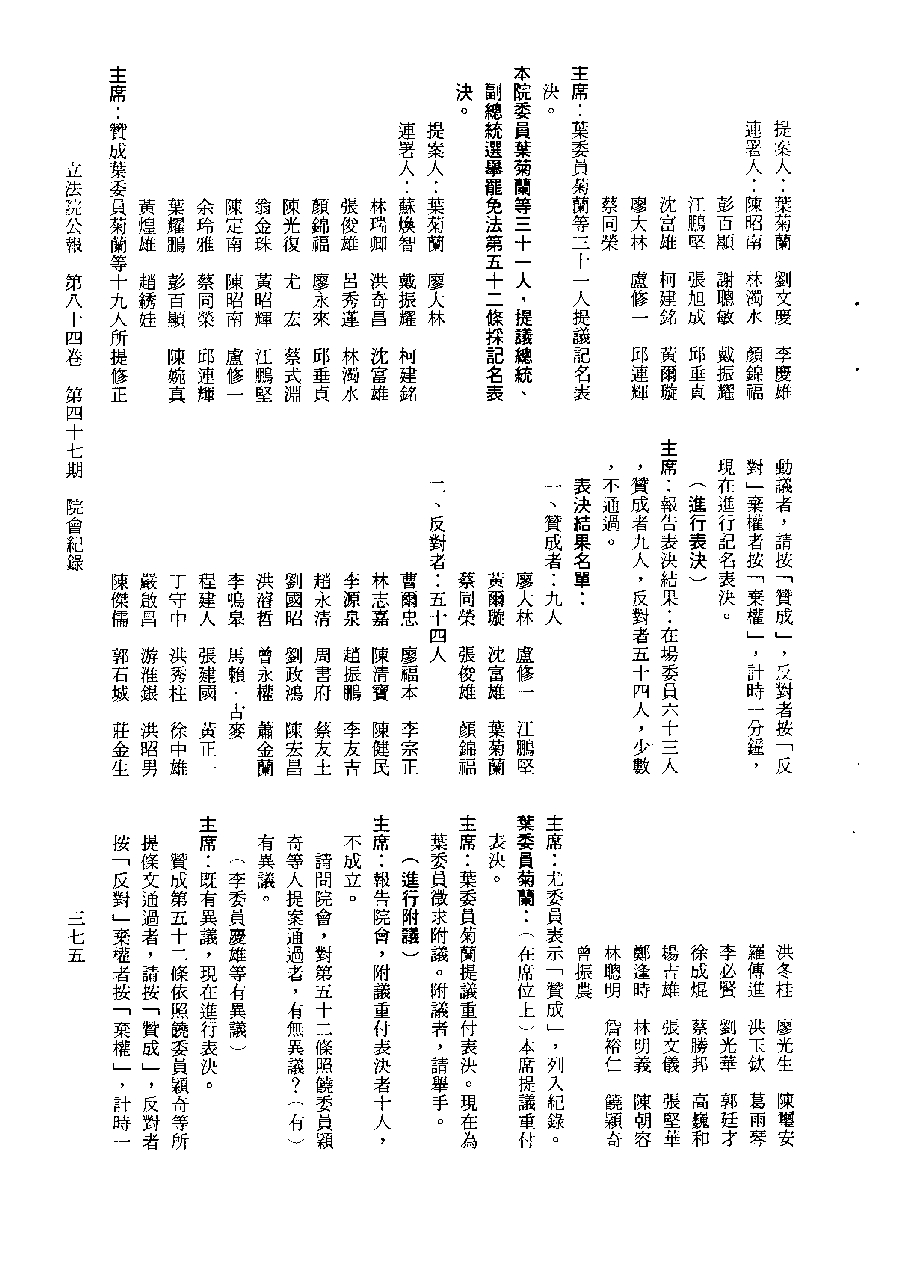 饒穎奇委員等30人提案第2條以下討論及表決經過