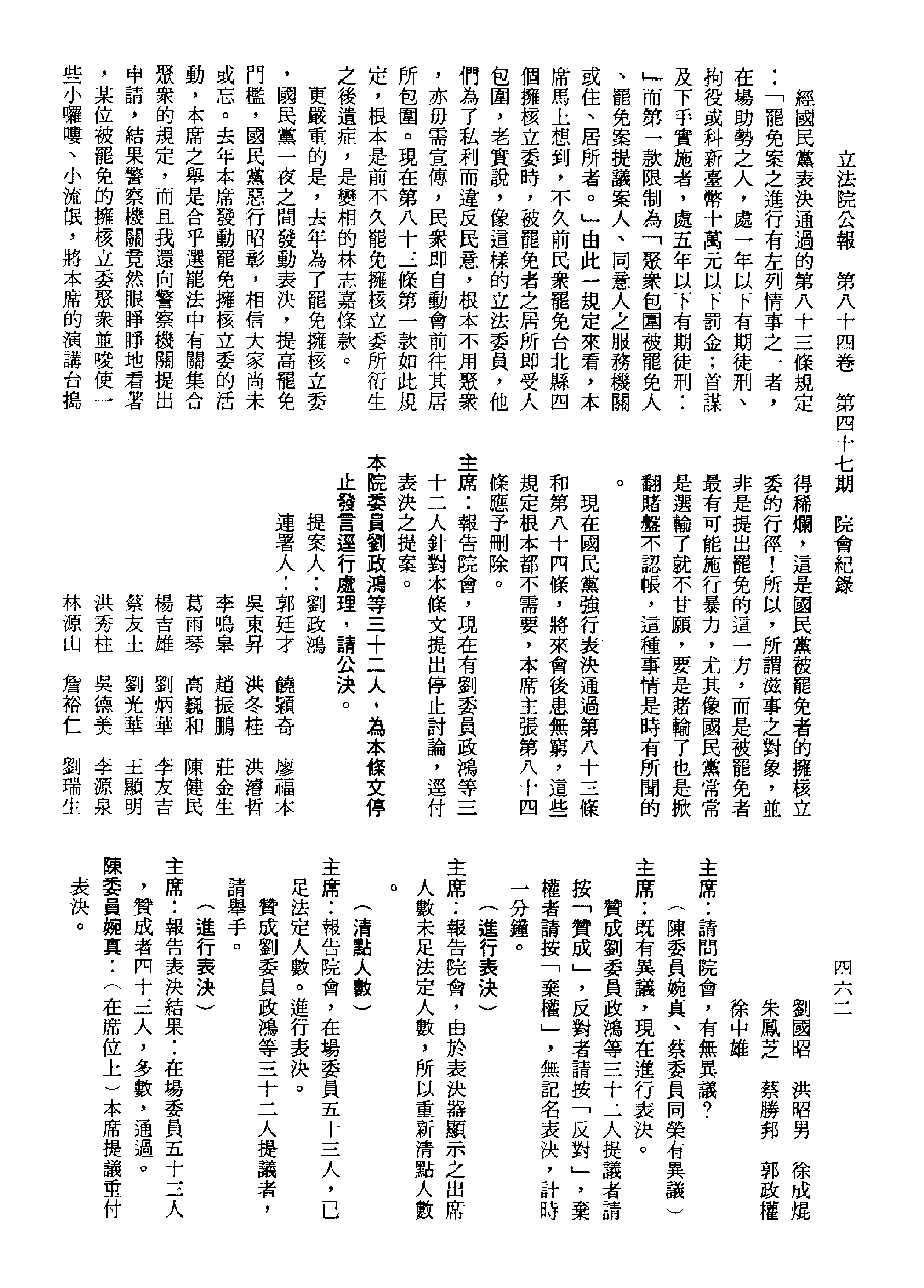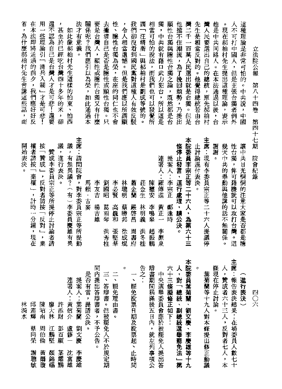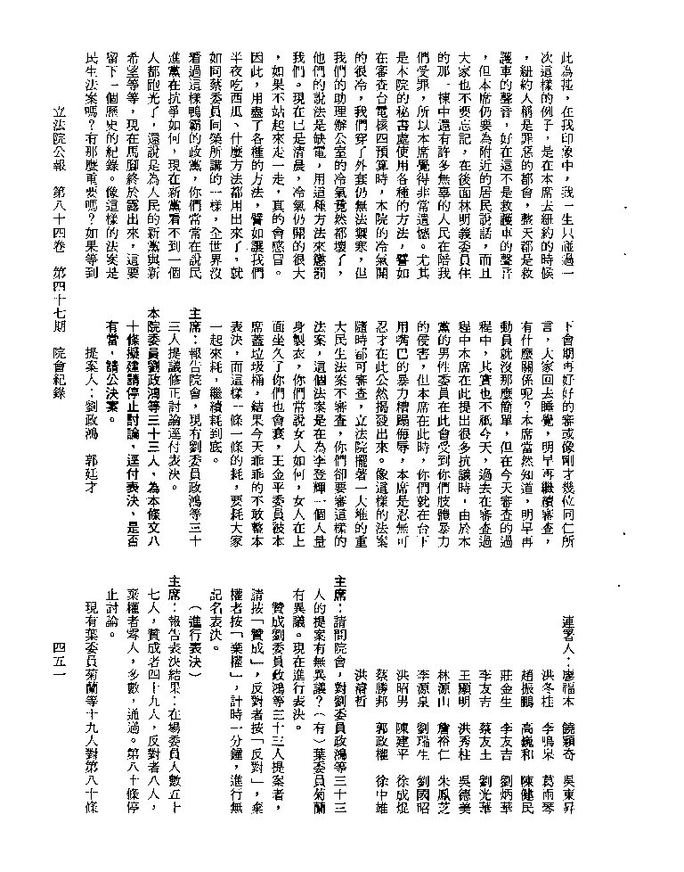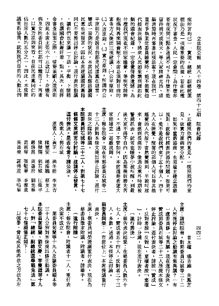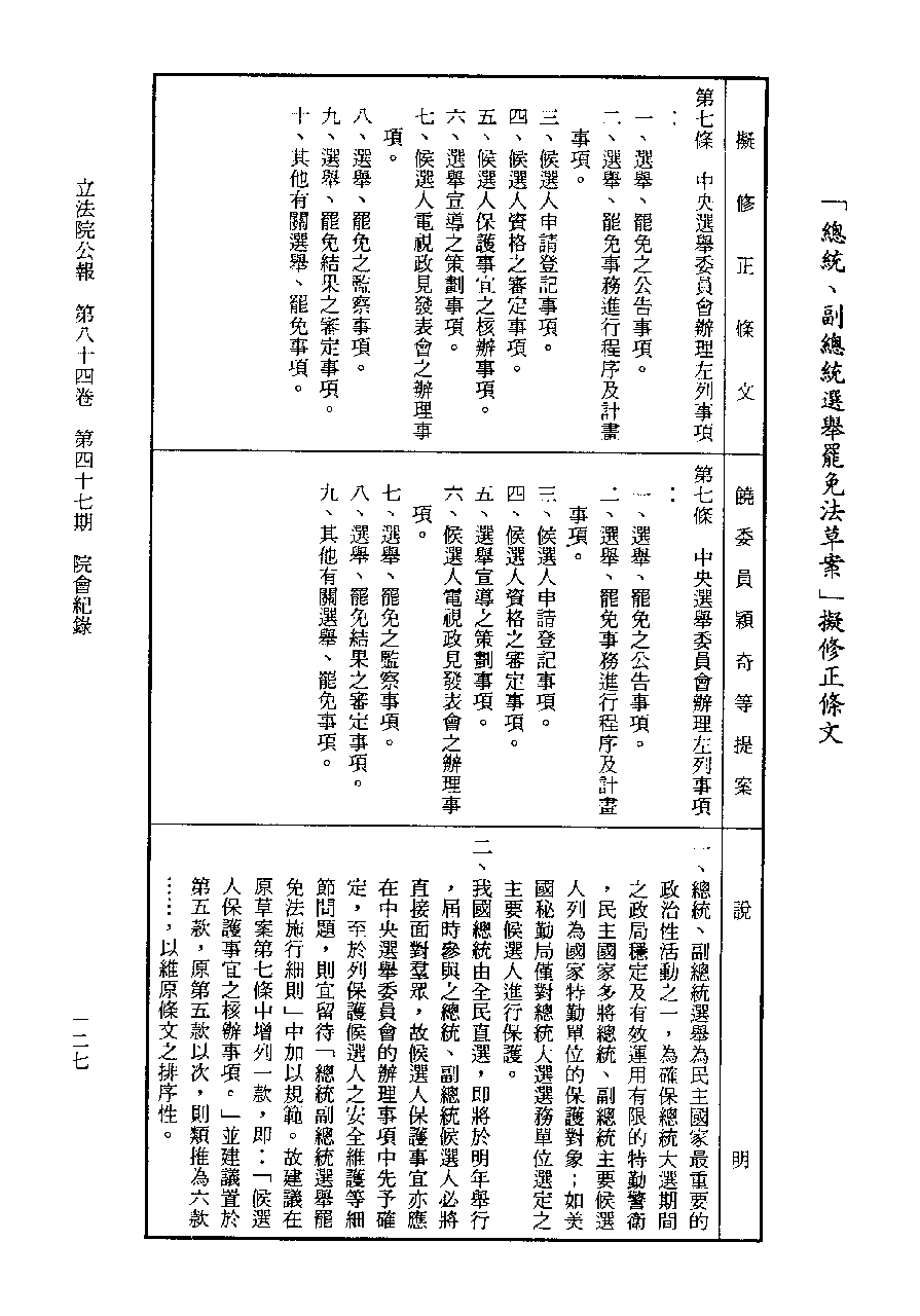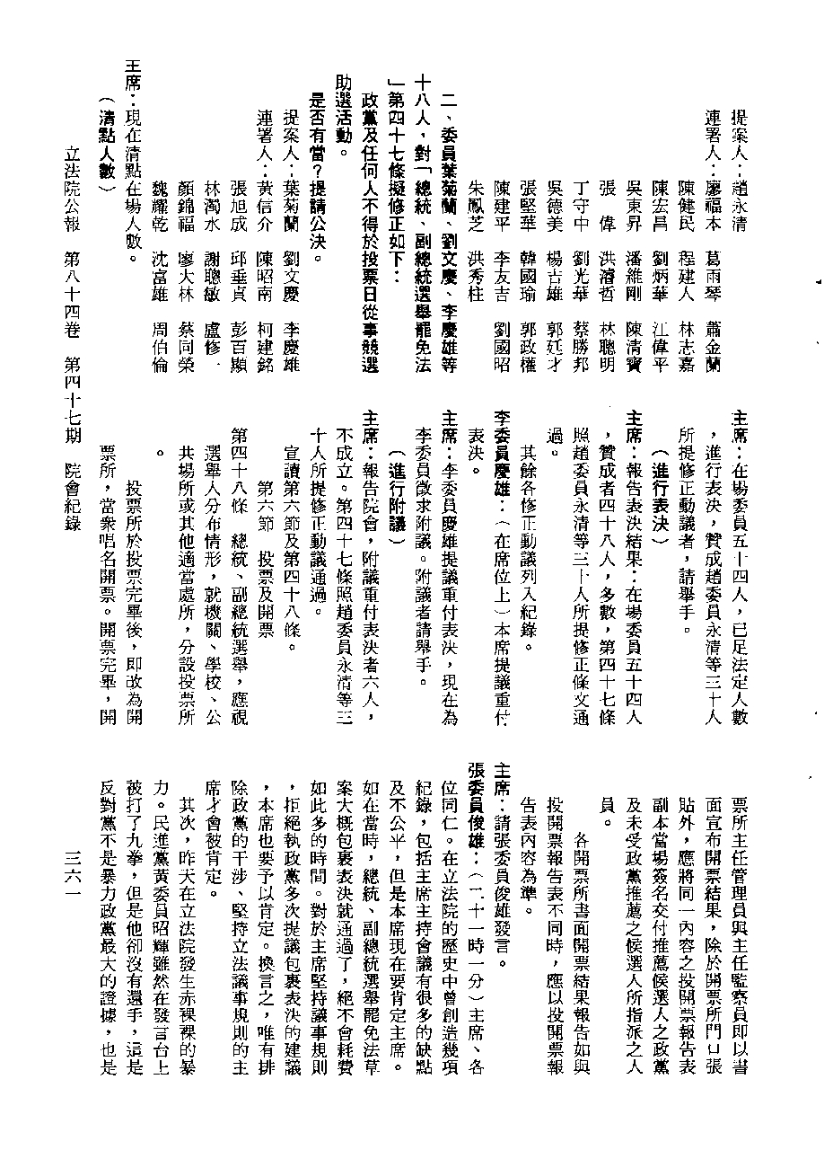 饒穎奇委員等30人提案第2條以下討論及表決經過