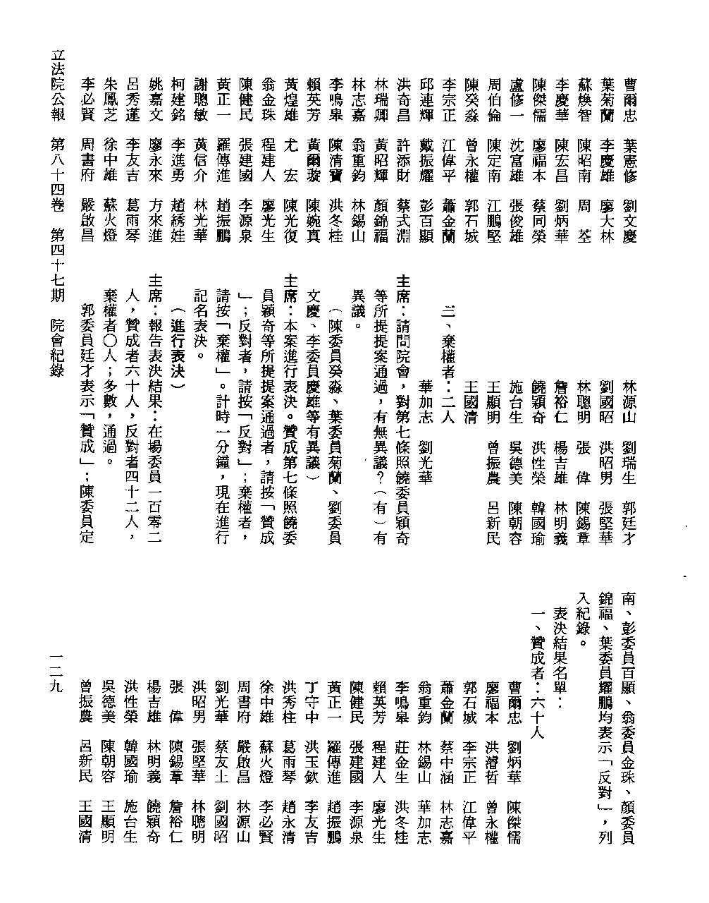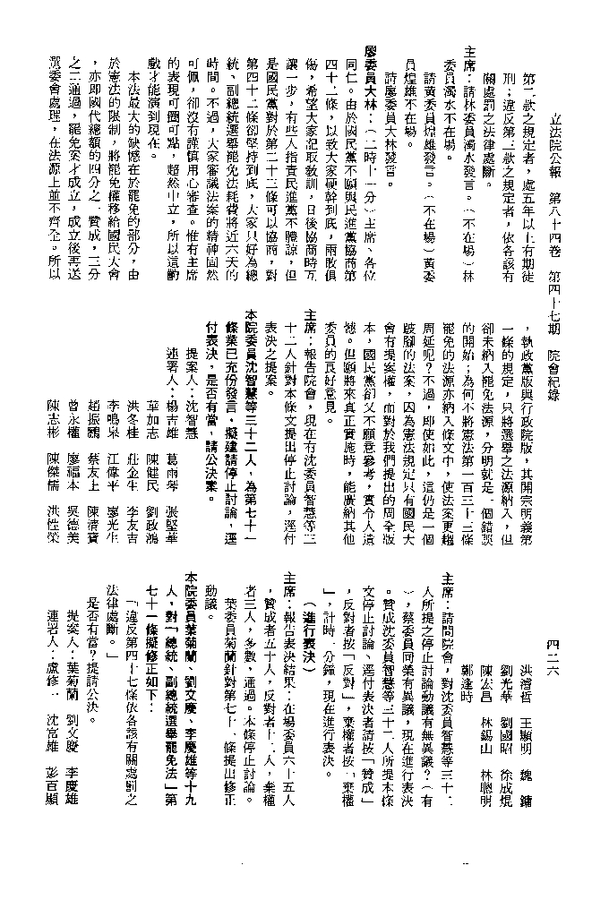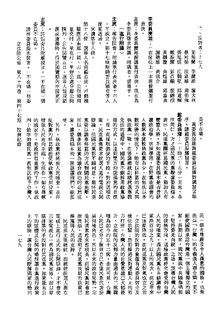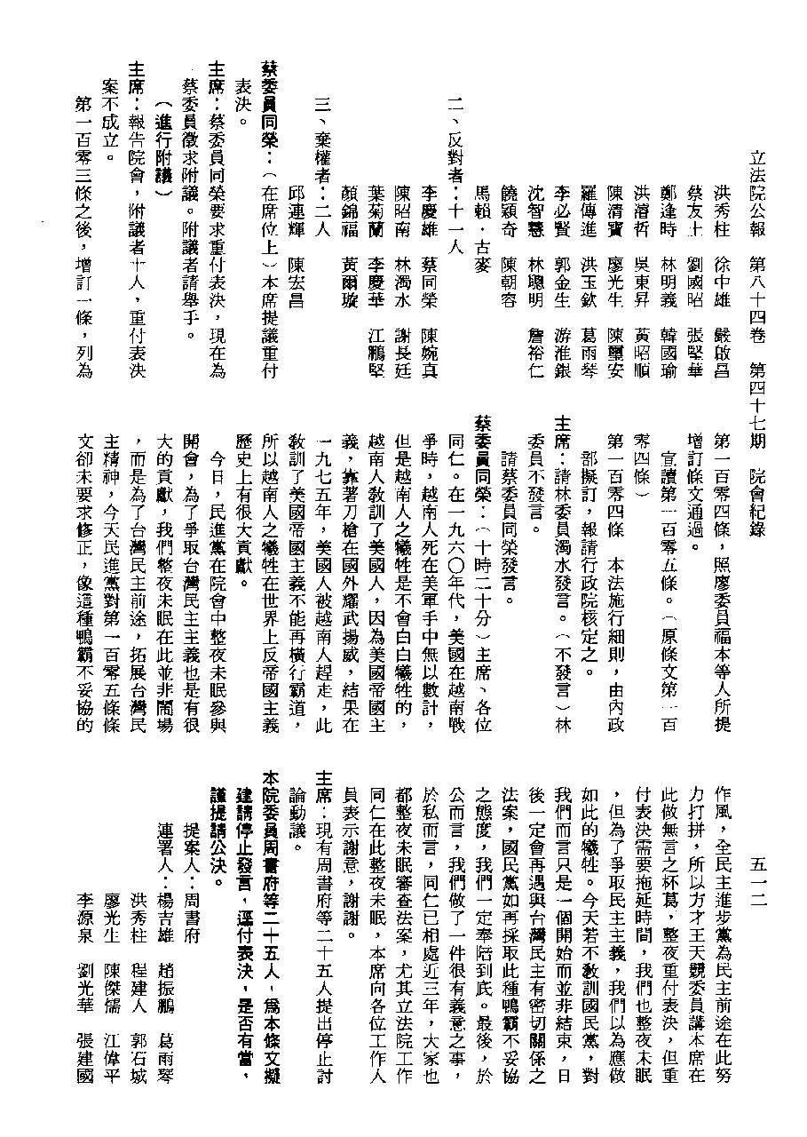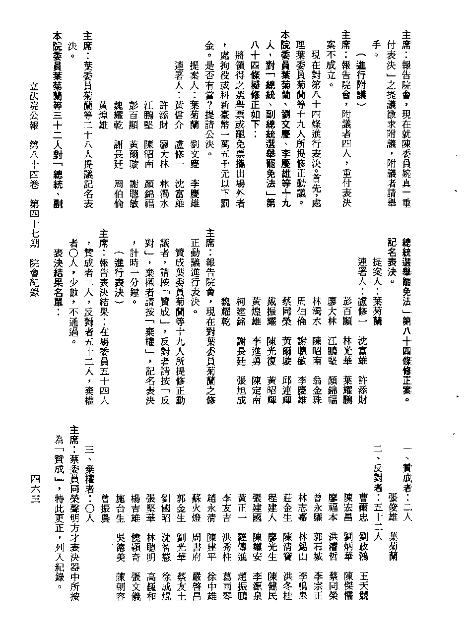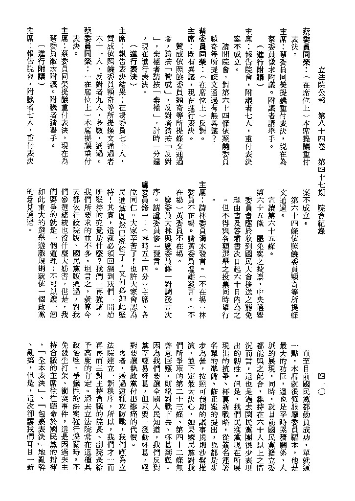 饒穎奇委員等30人提案第2條以下討論及表決經過