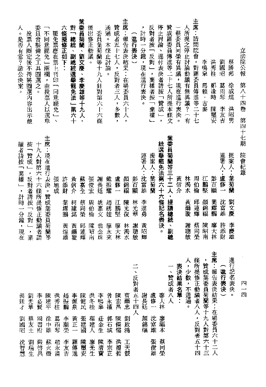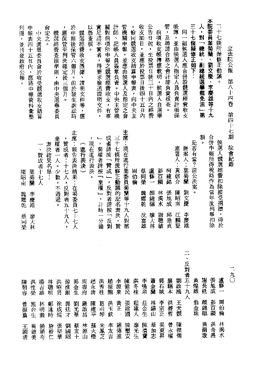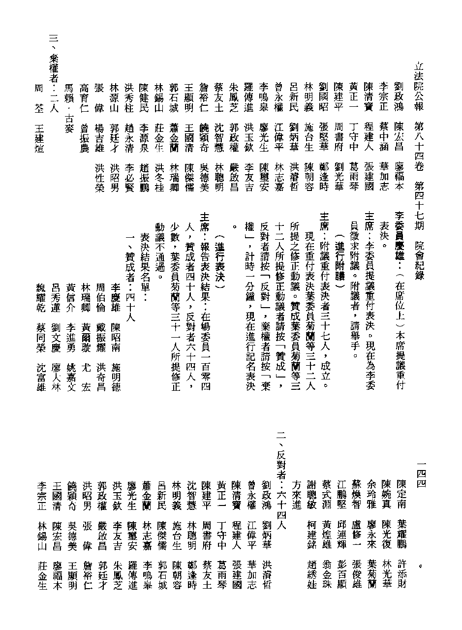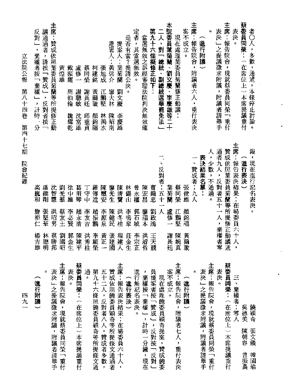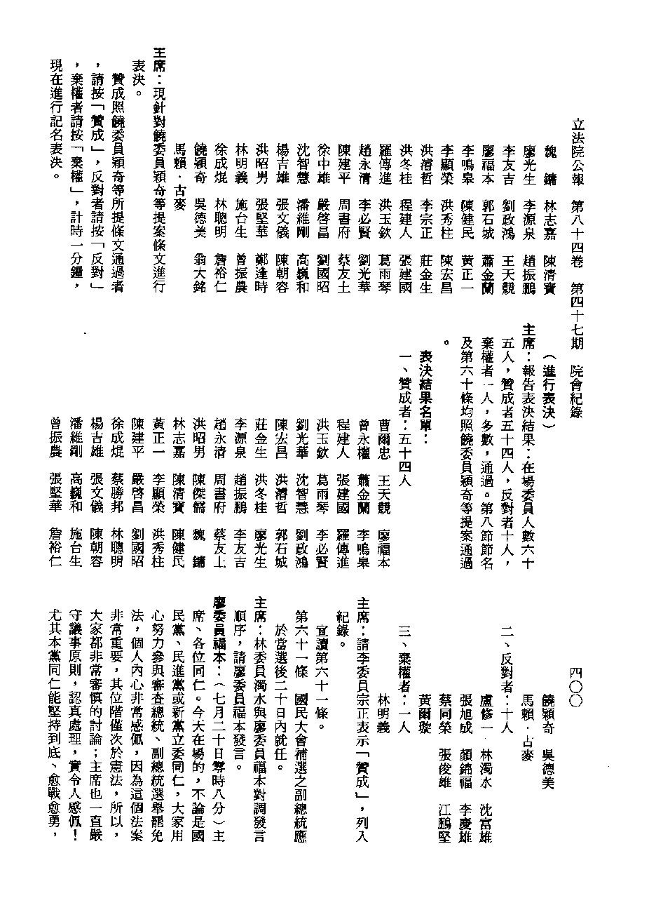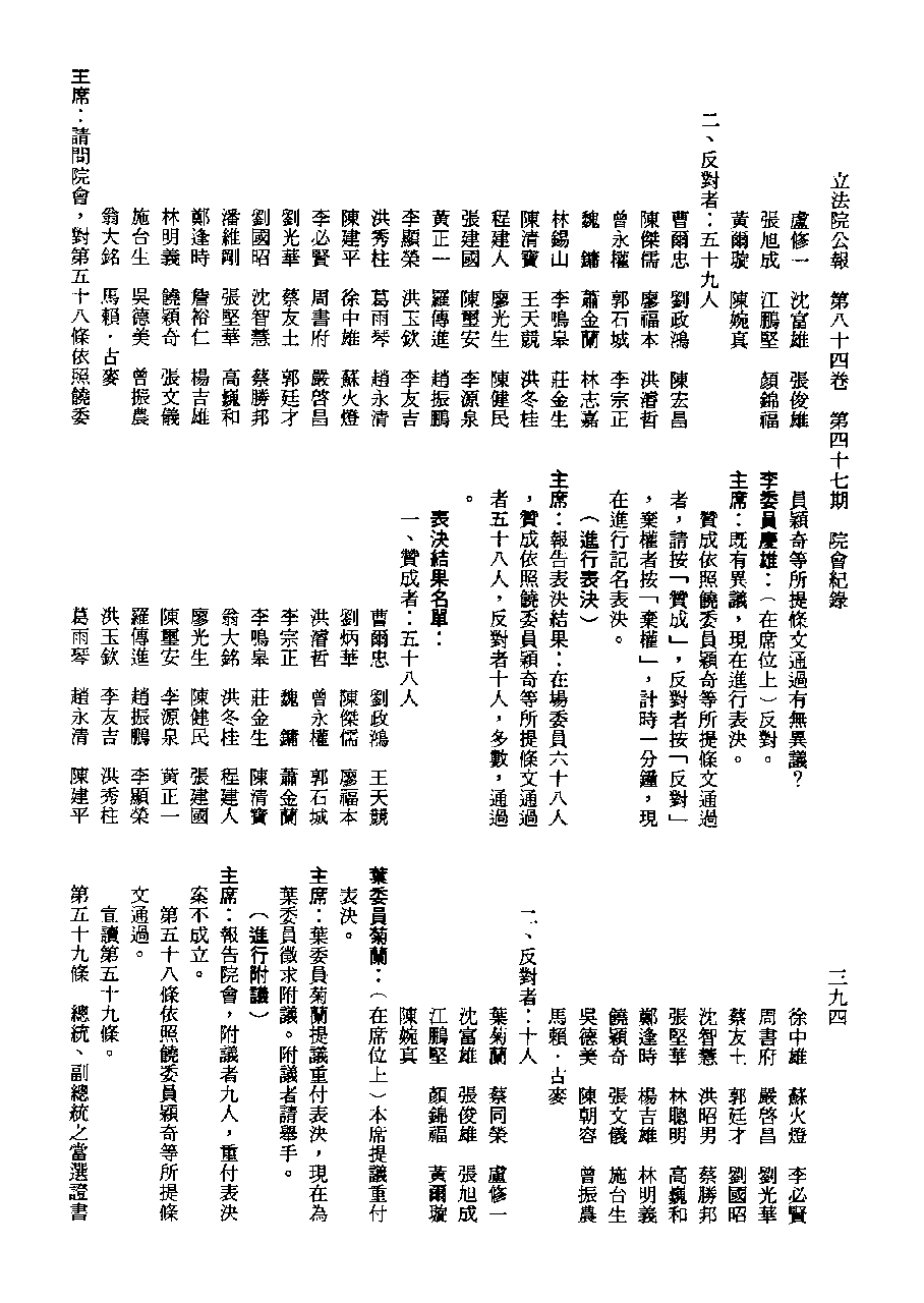 饒穎奇委員等30人提案第2條以下討論及表決經過