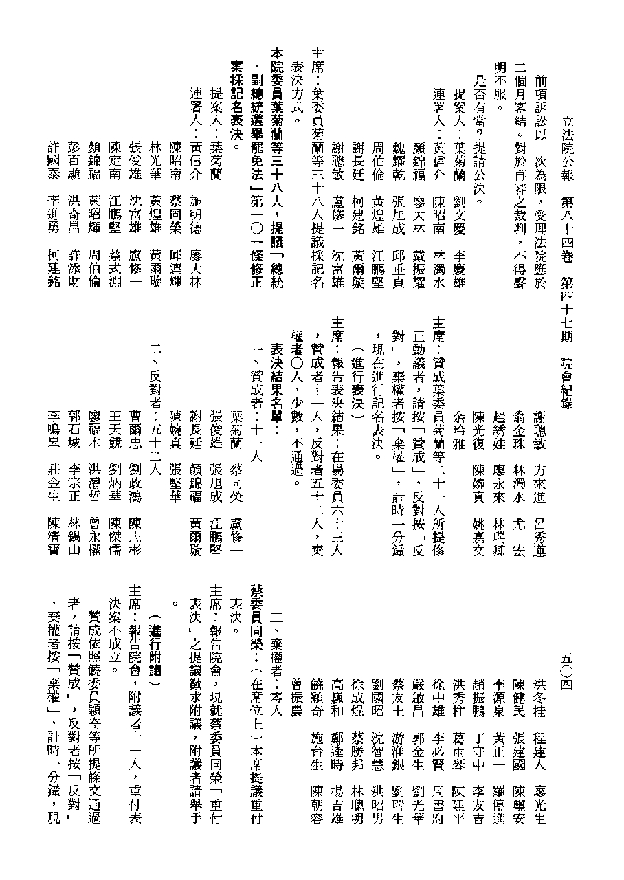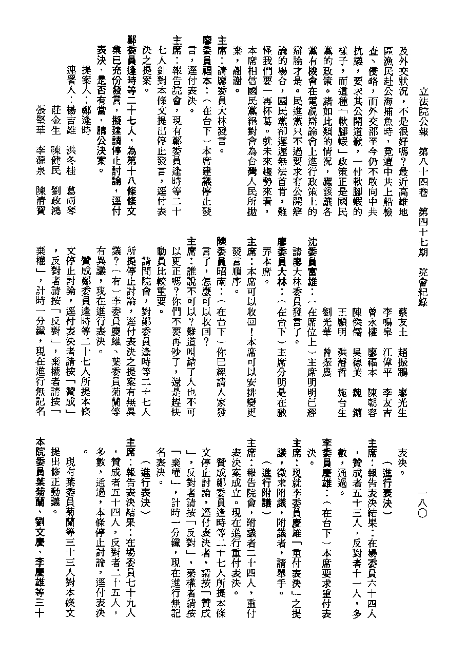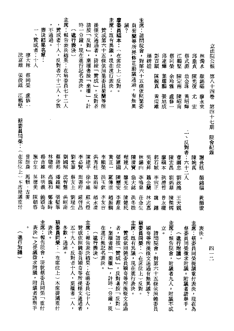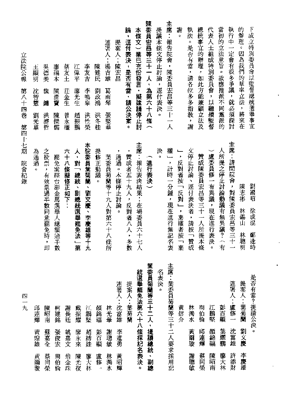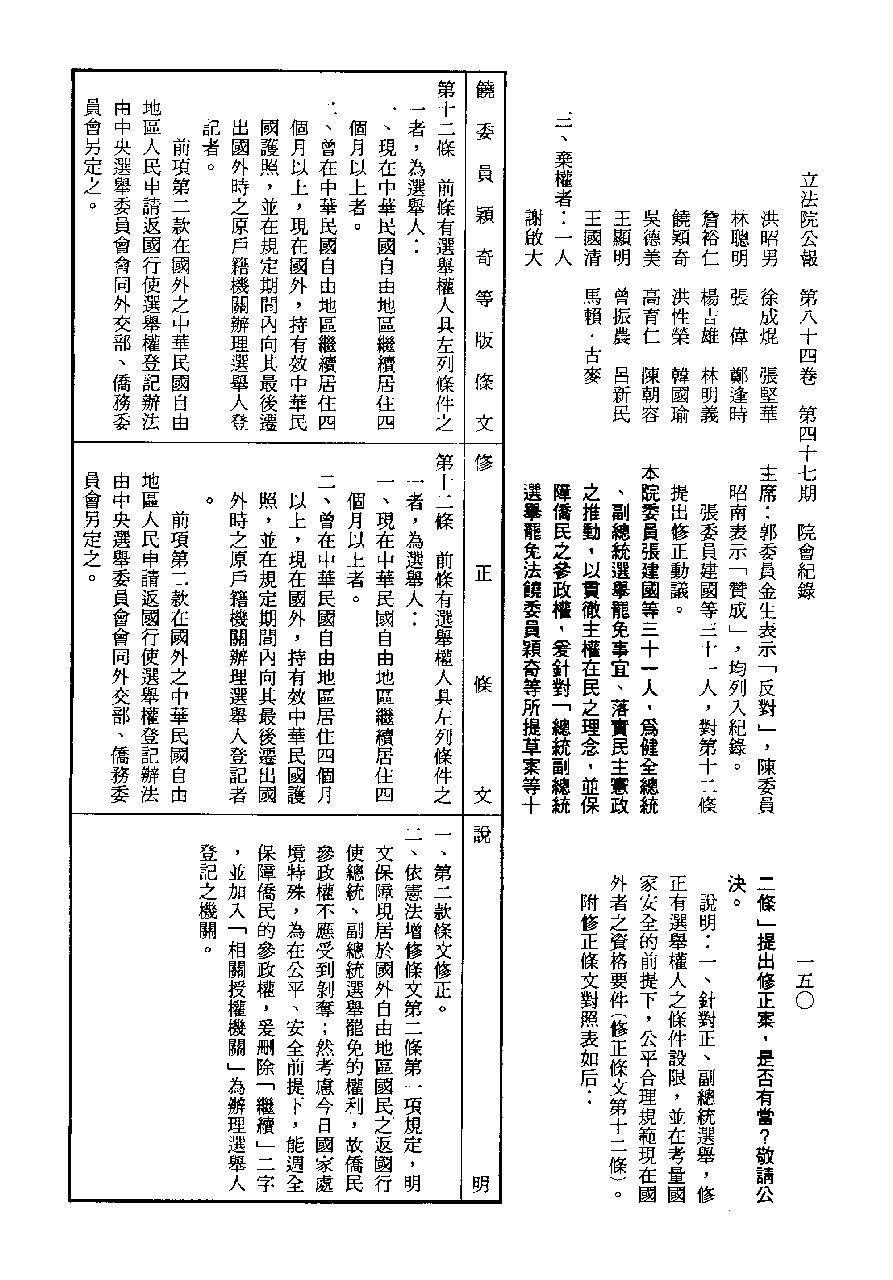 饒穎奇委員等30人提案第2條以下討論及表決經過