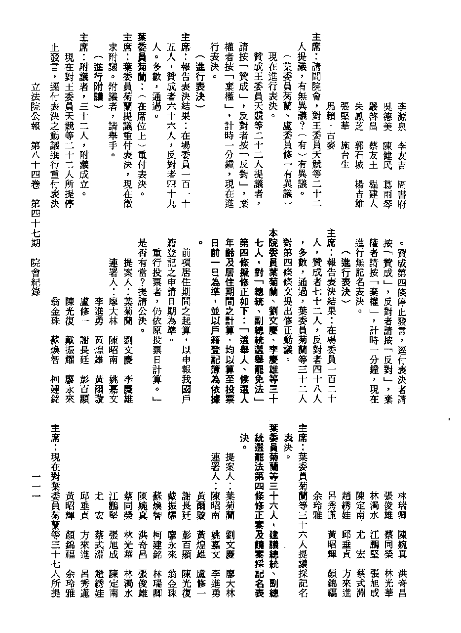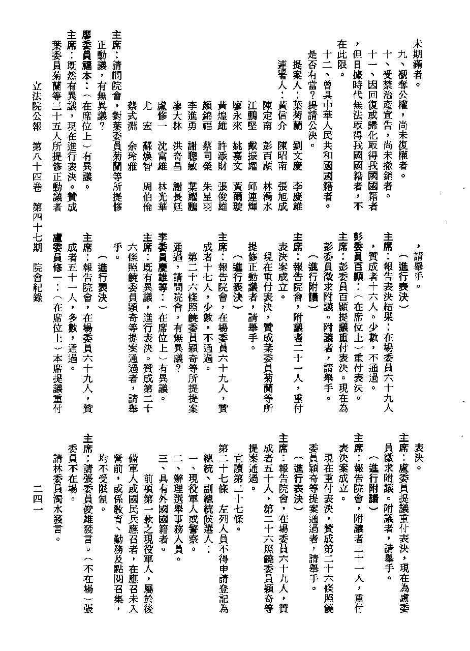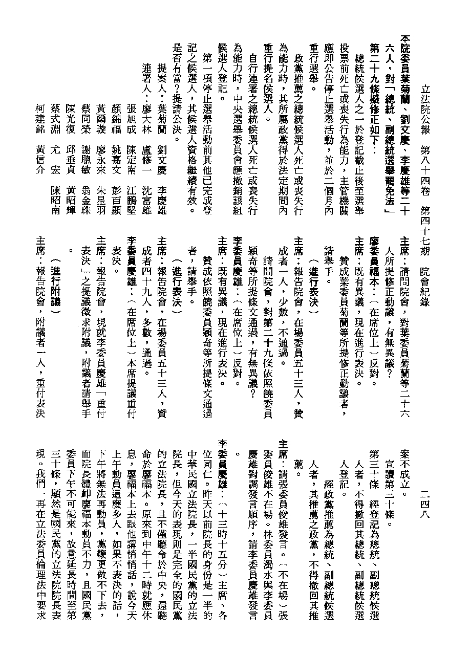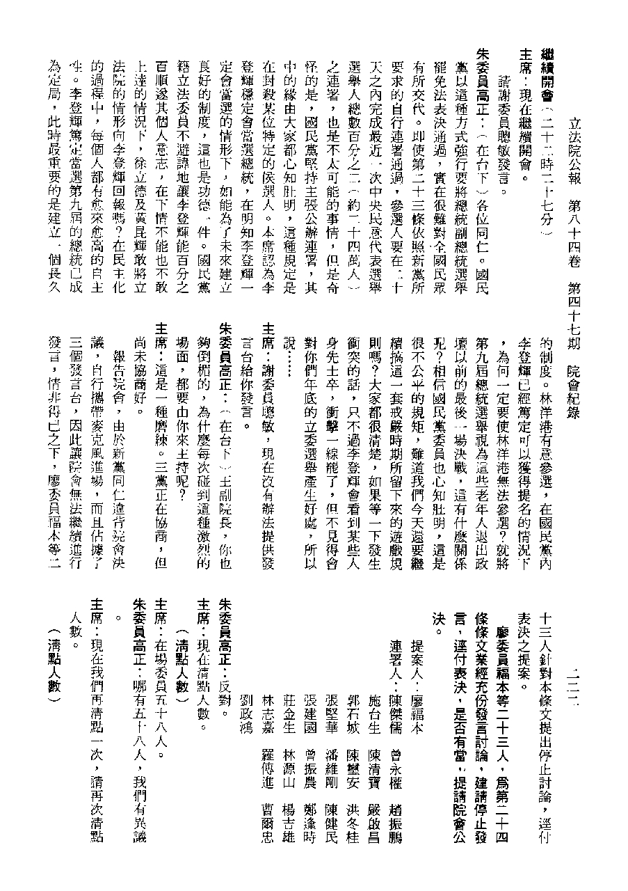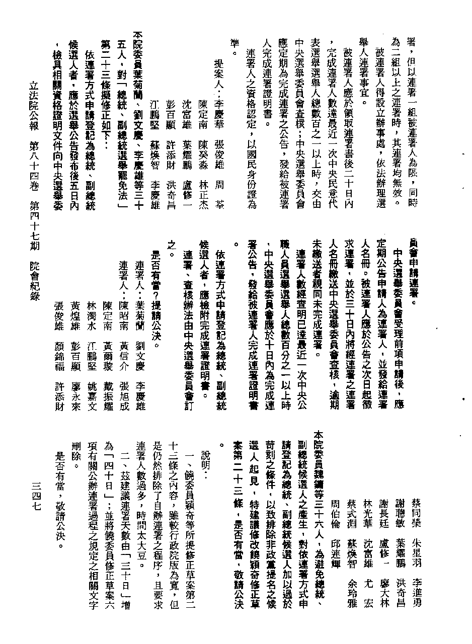 饒穎奇委員等30人提案第2條以下討論及表決經過
