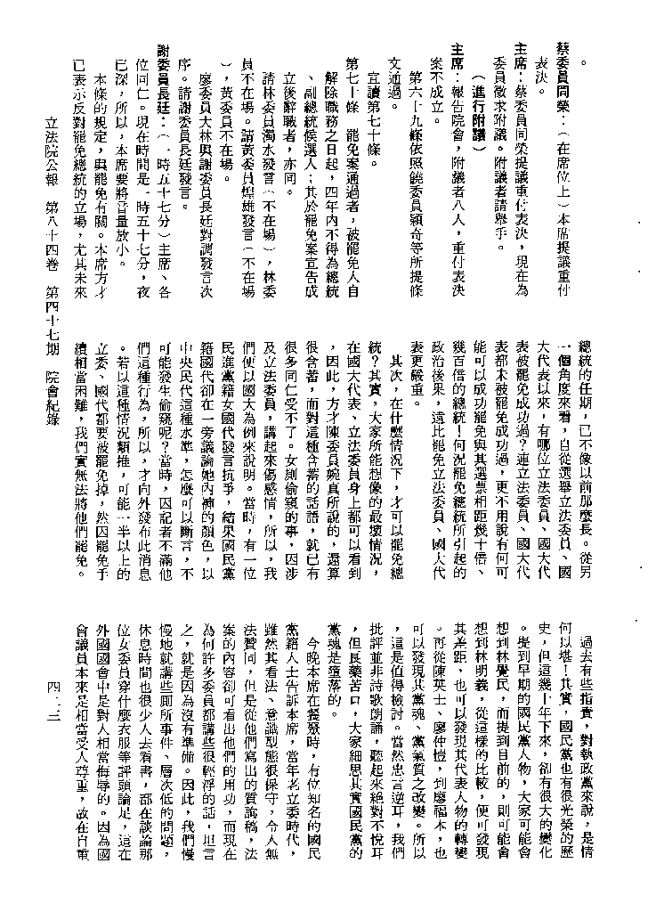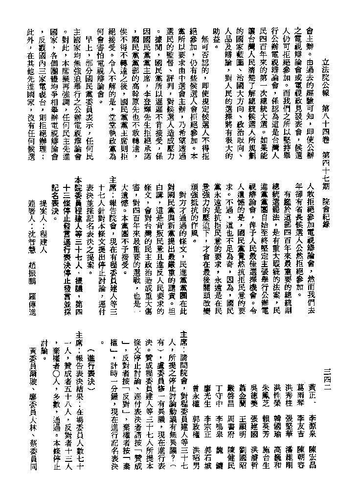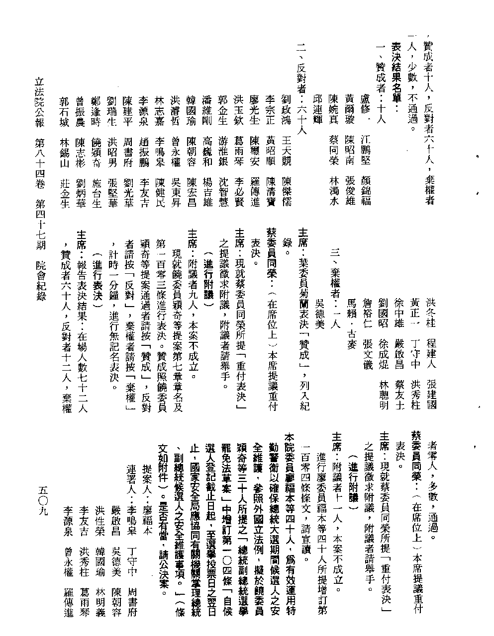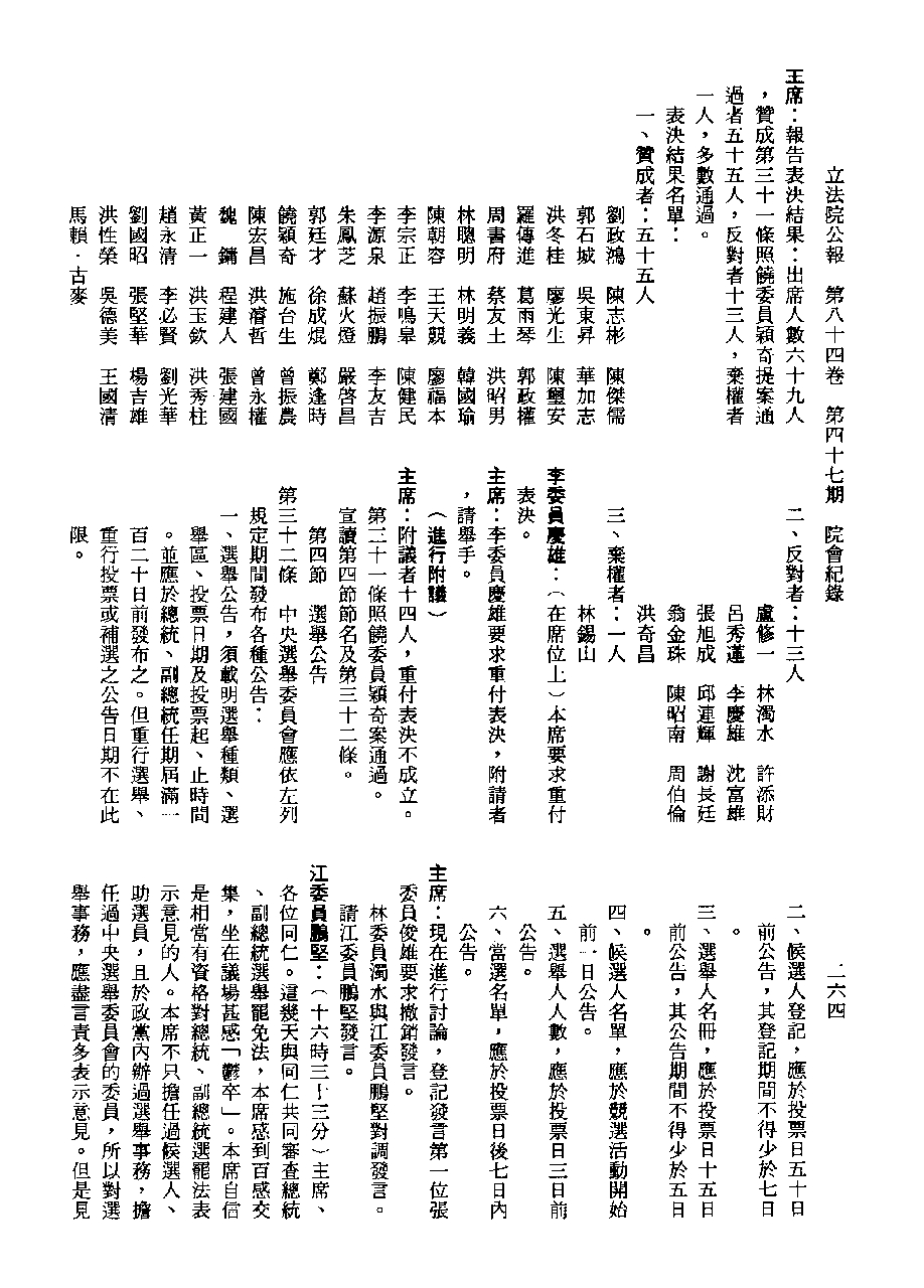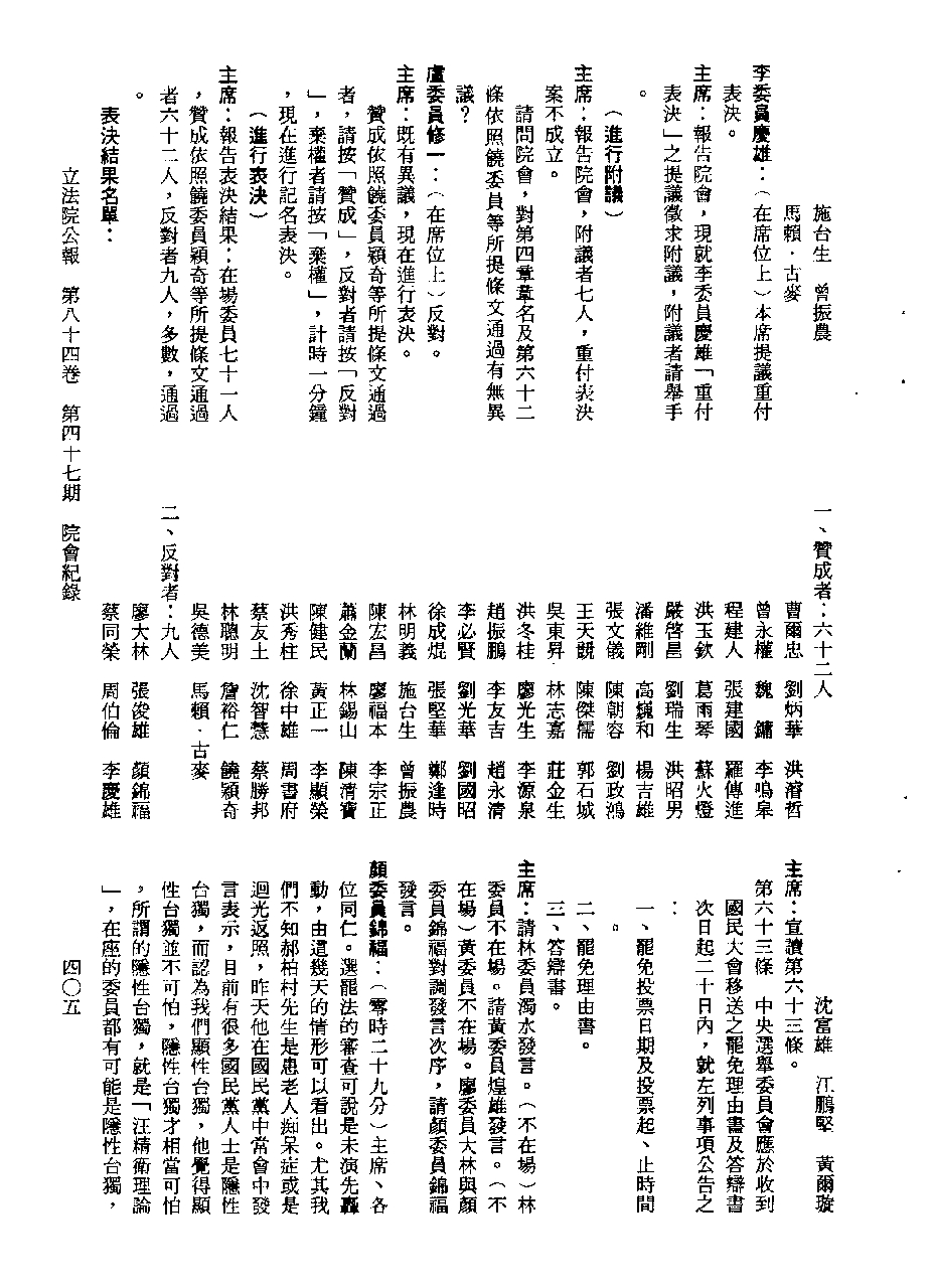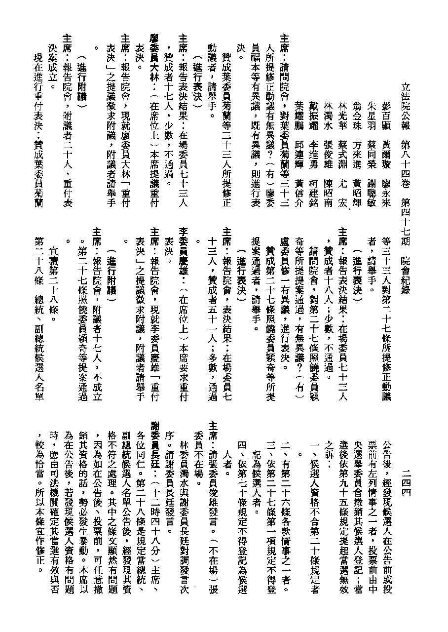 饒穎奇委員等30人提案第2條以下討論及表決經過