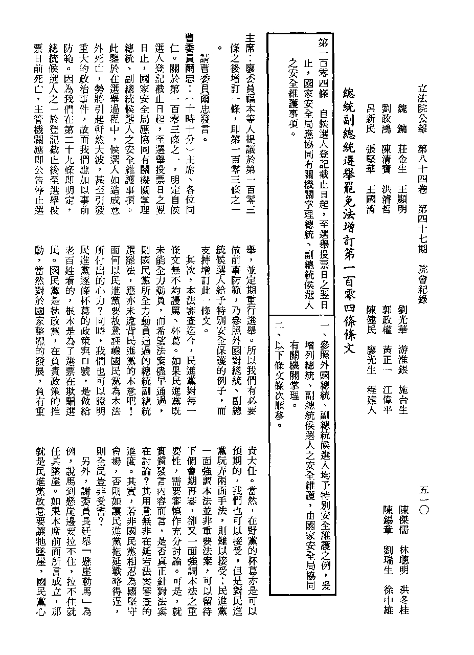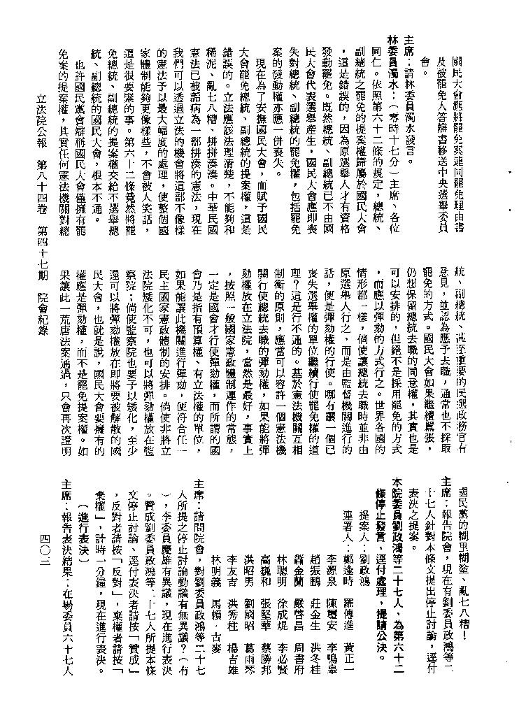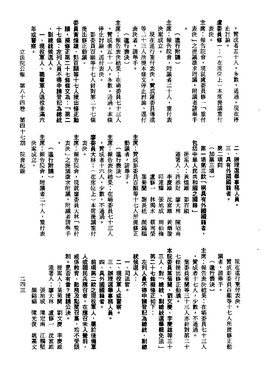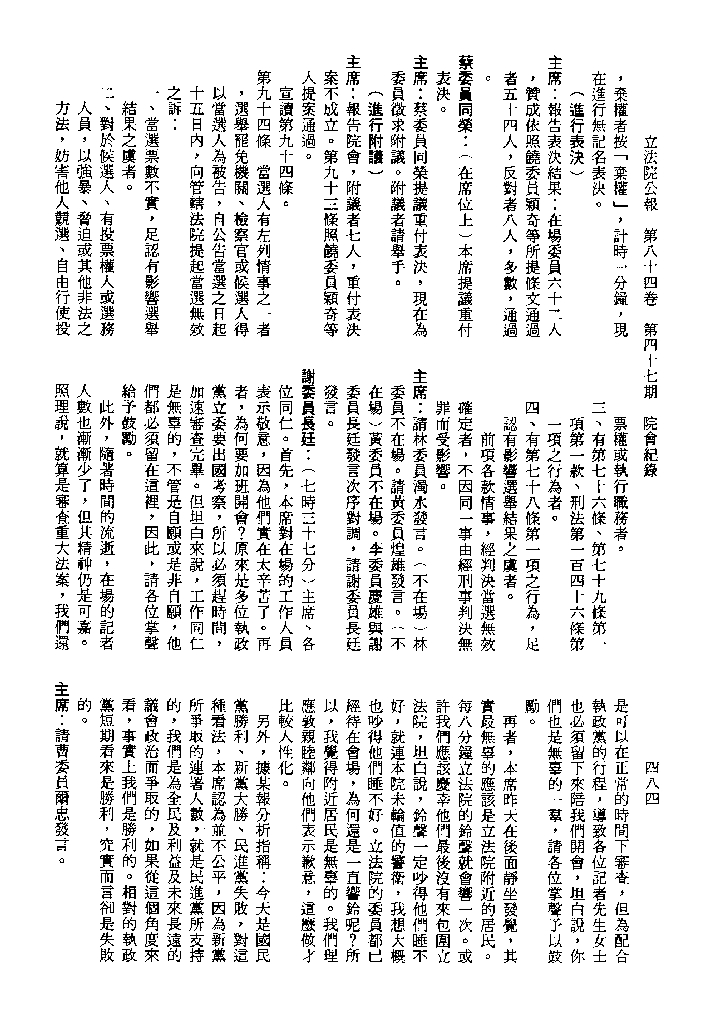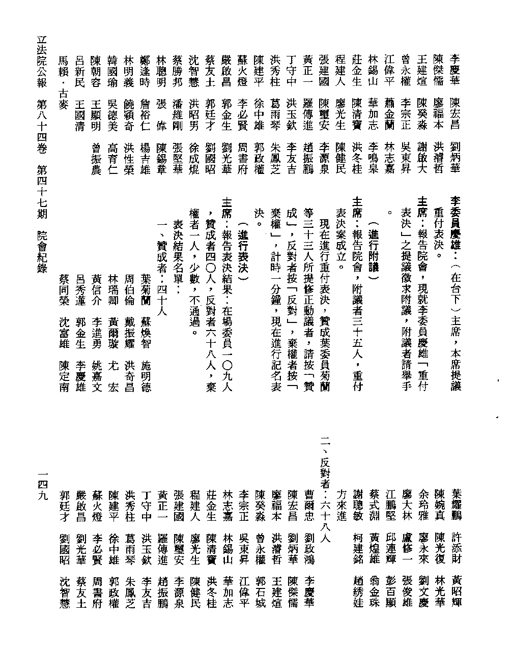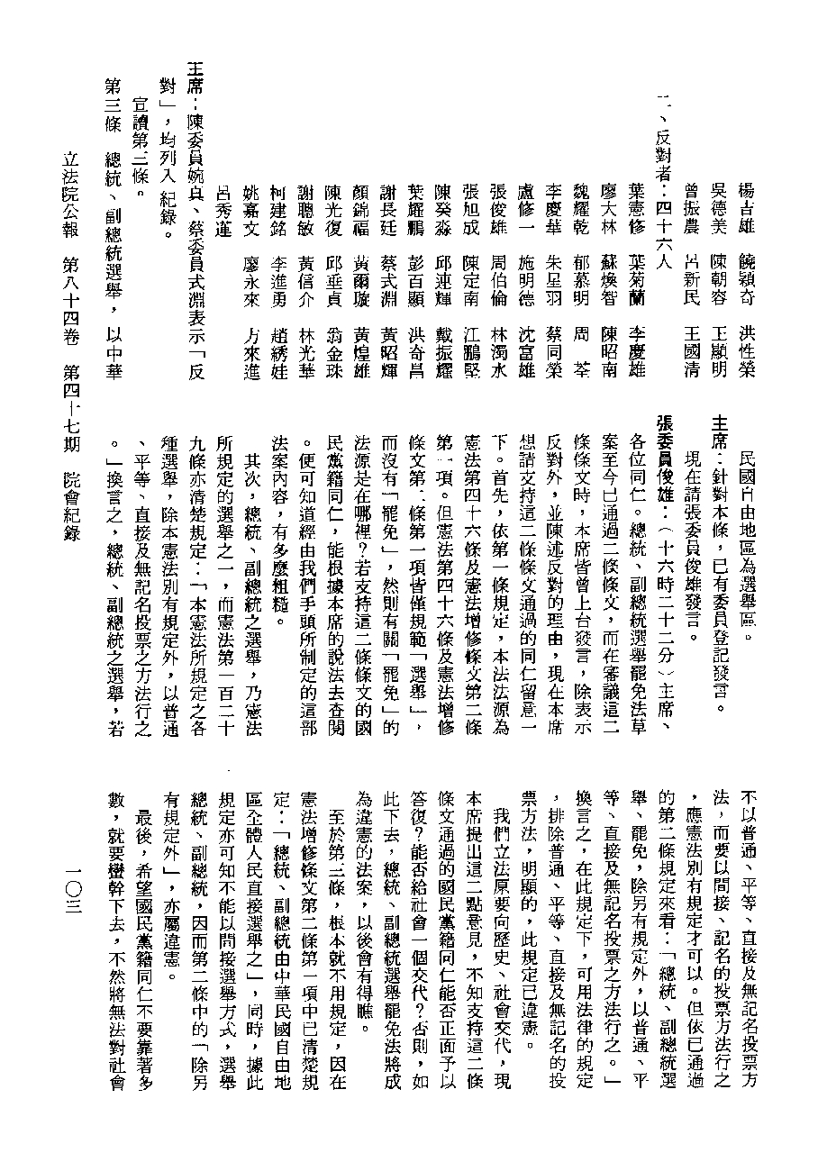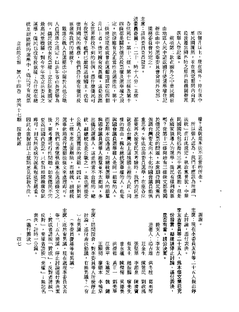 饒穎奇委員等30人提案第2條以下討論及表決經過