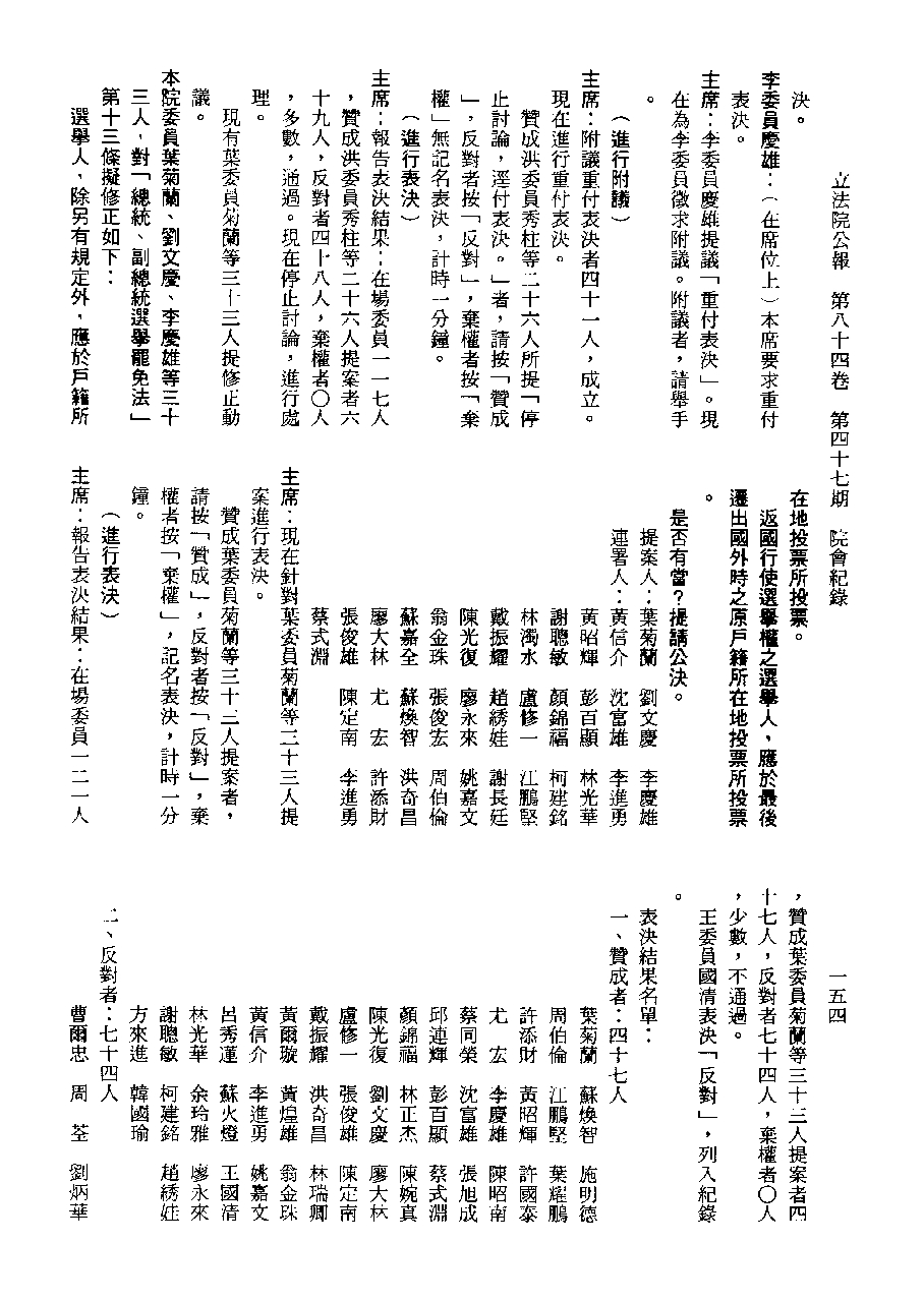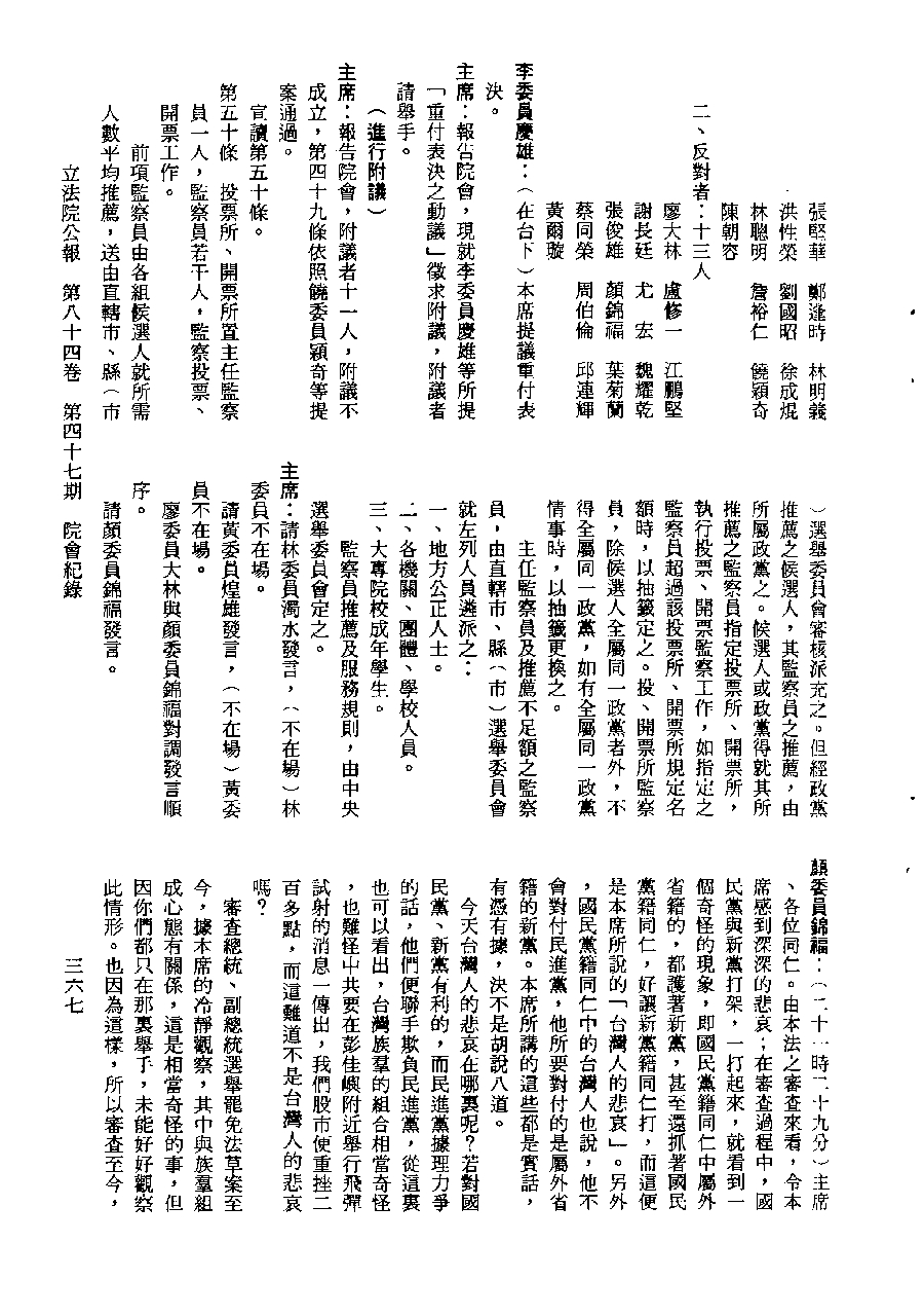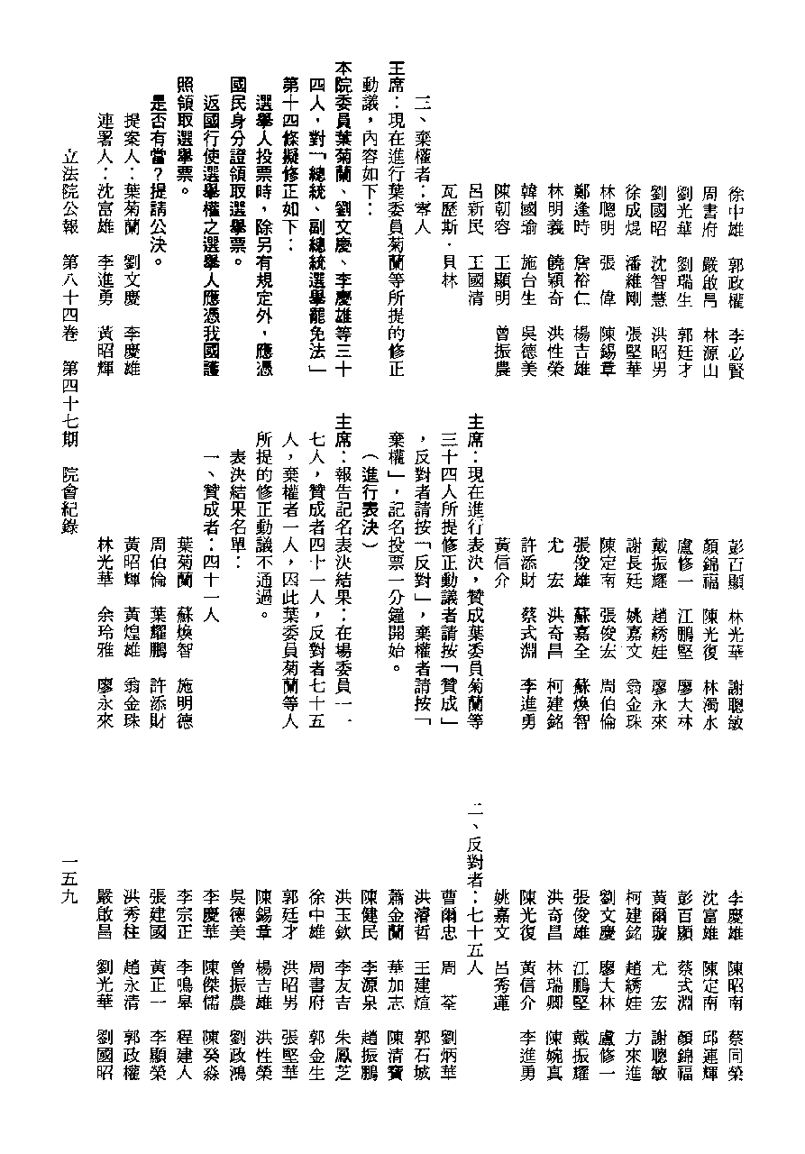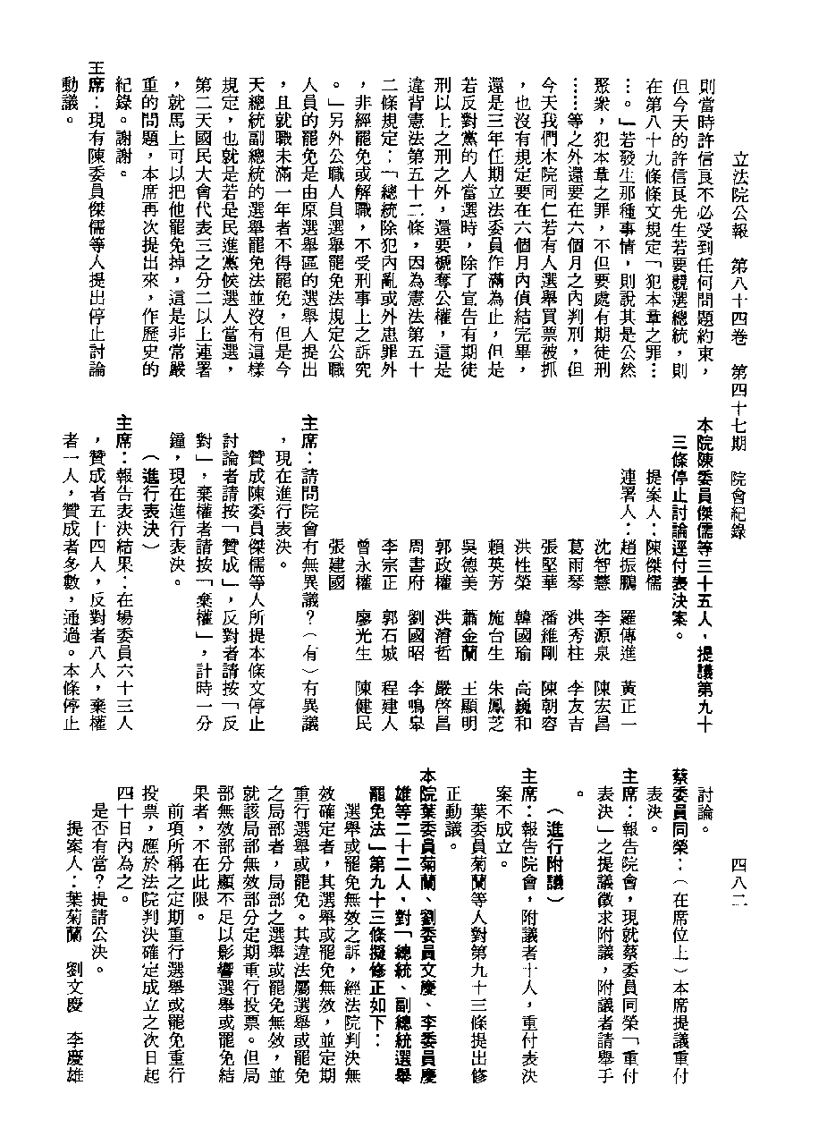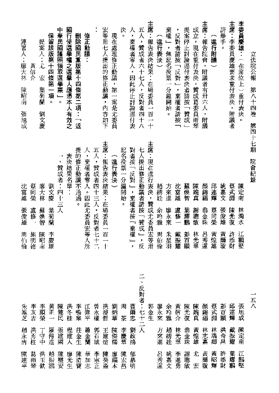饒穎奇委員等30人提案第2條以下討論及表決經過